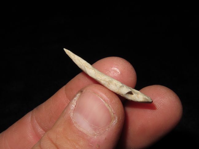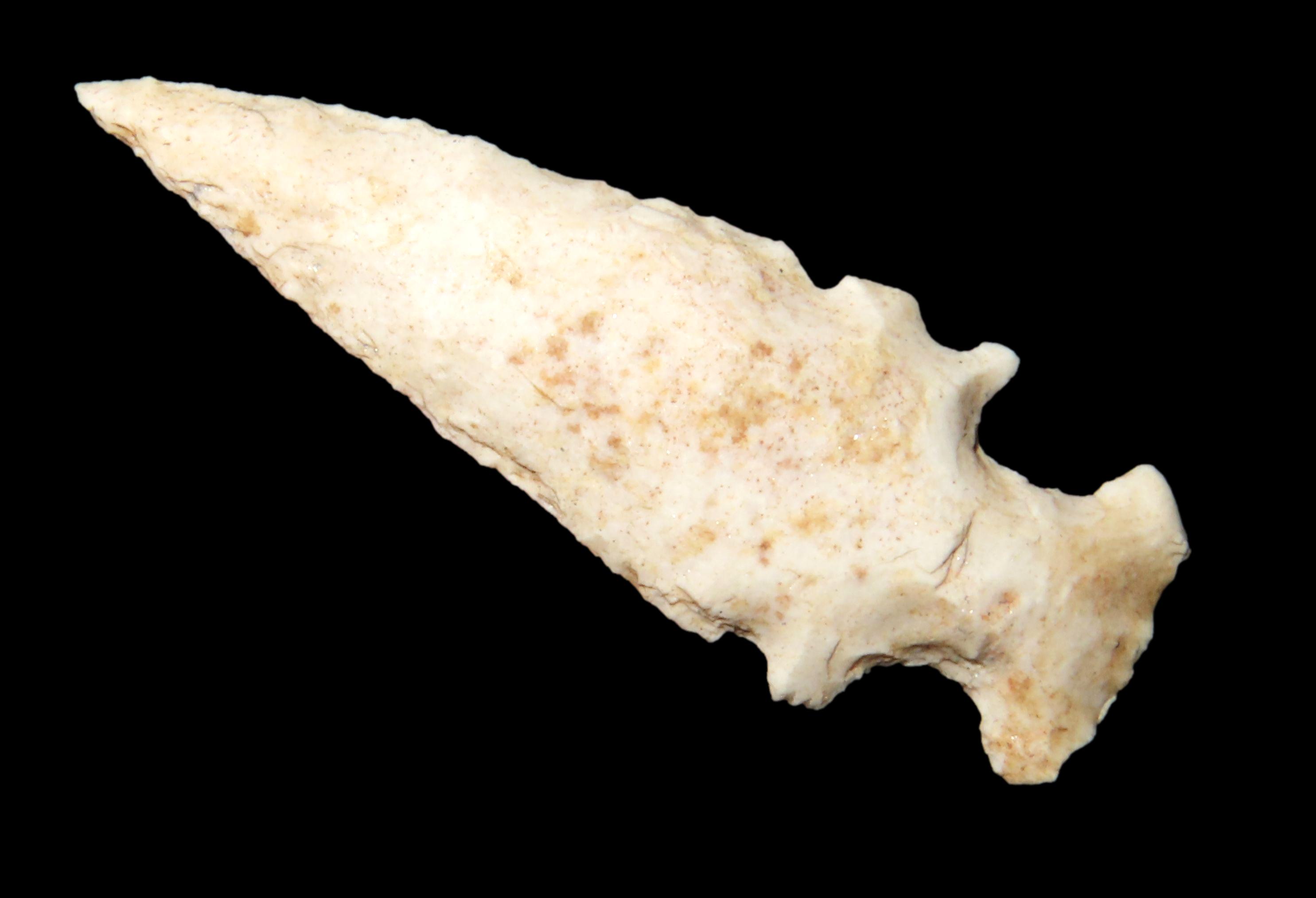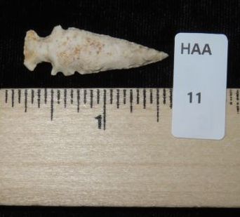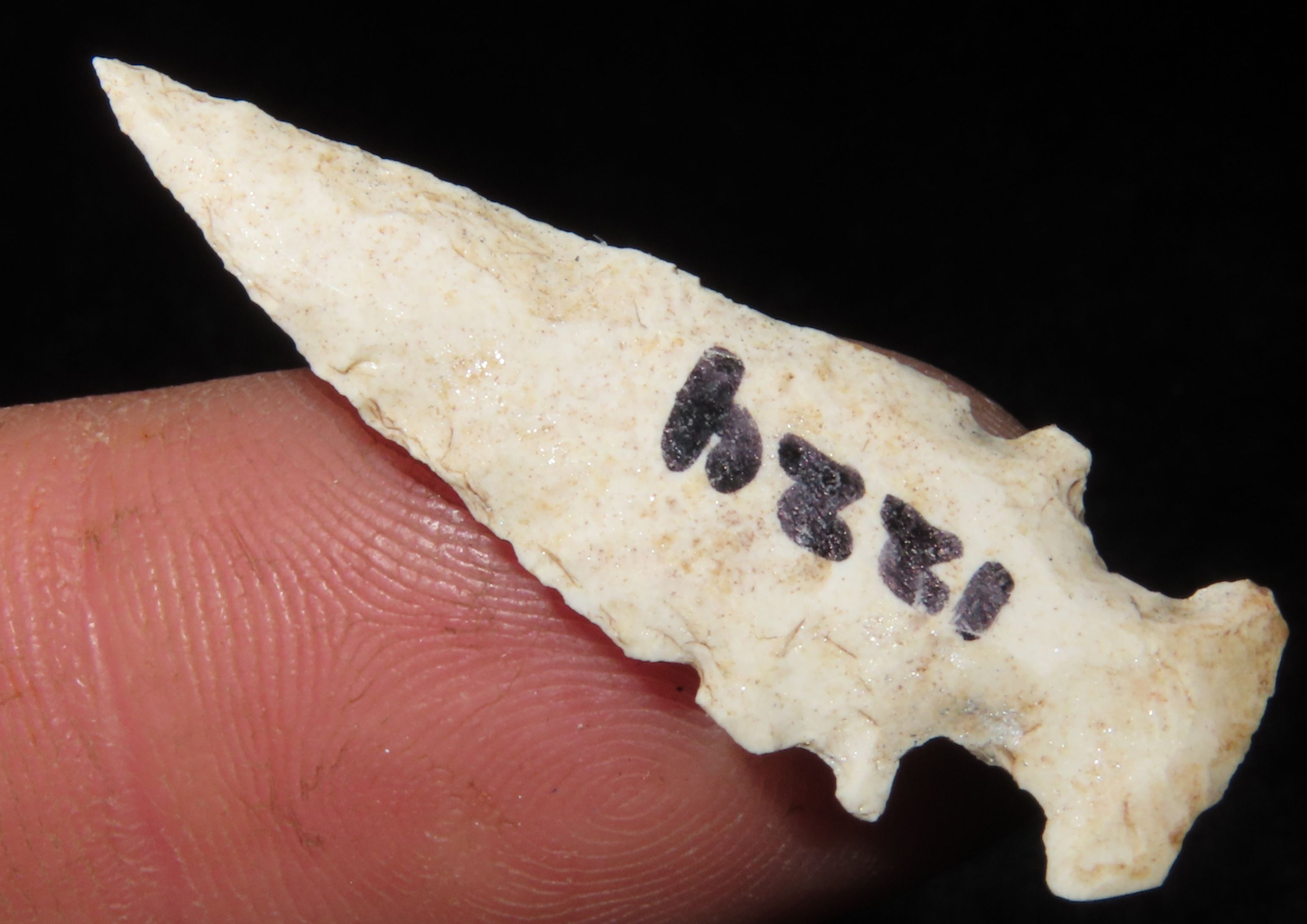 1 7/16″ DOUBLE / TRIPLE NOTCHED SCALLORN BIRD POINT FOUND IN MADISON COUNTY ILLINOIS, VERY INTERESTING UNIQUE EXAMPLE, INDIAN ARROWHEAD