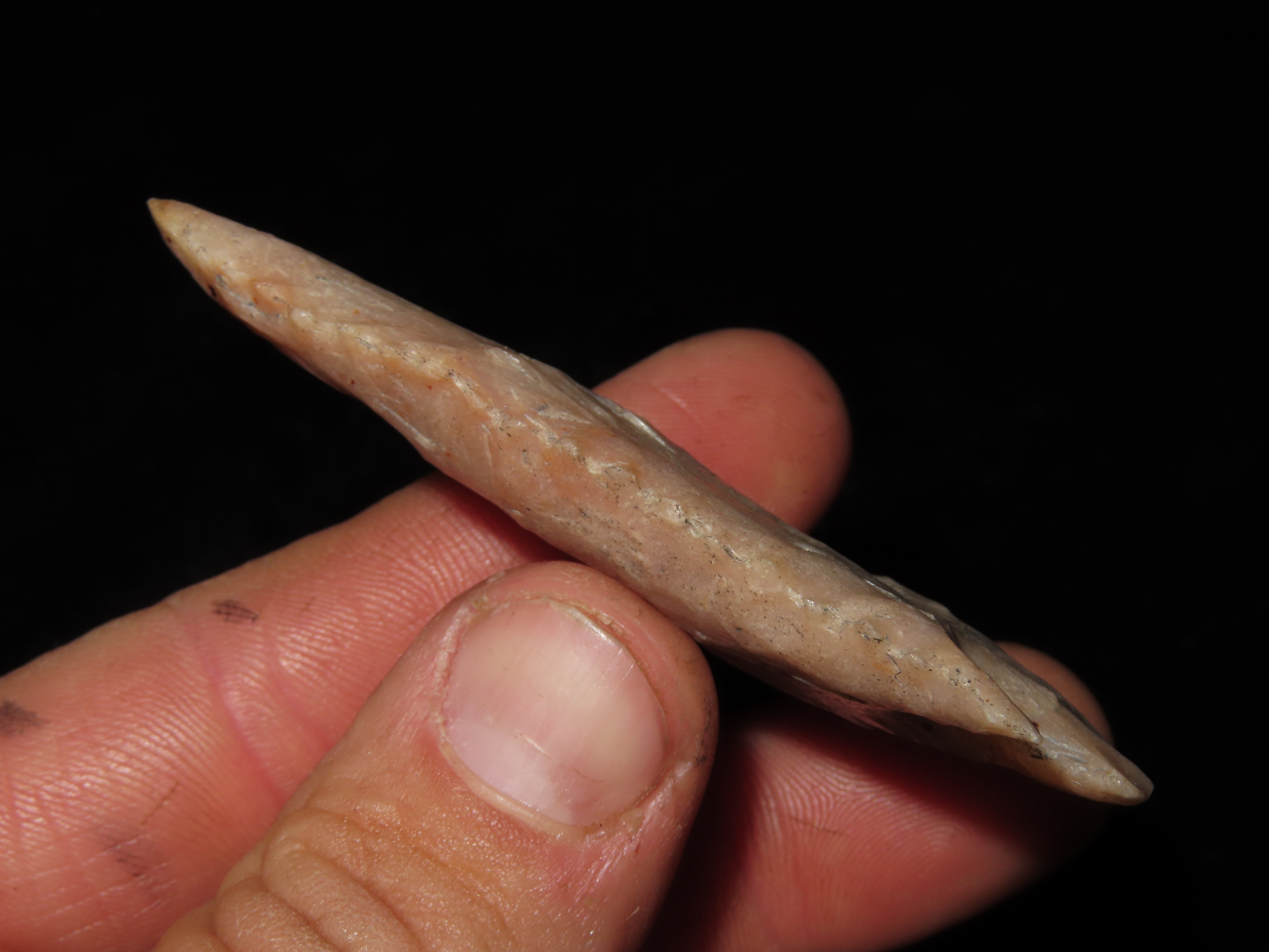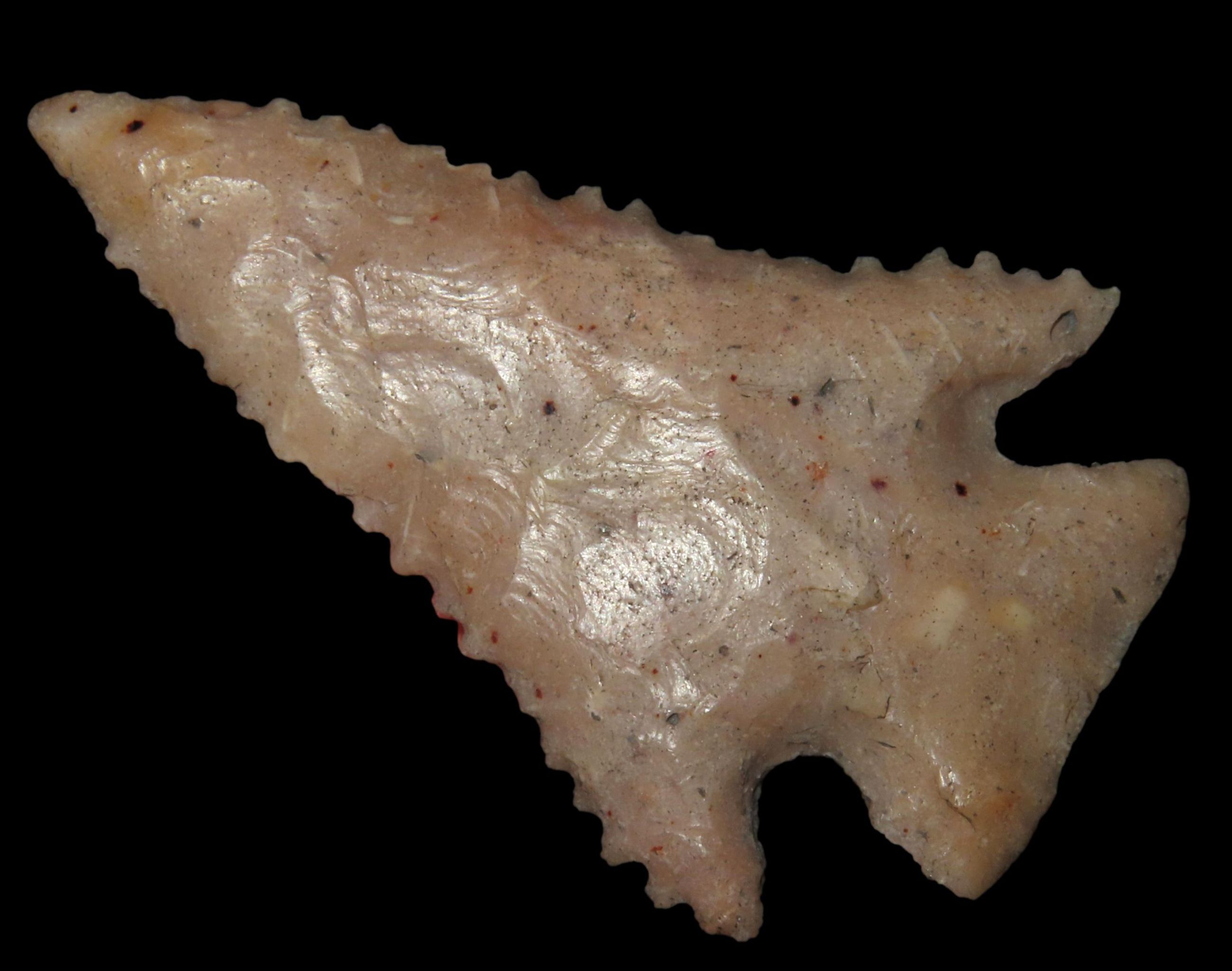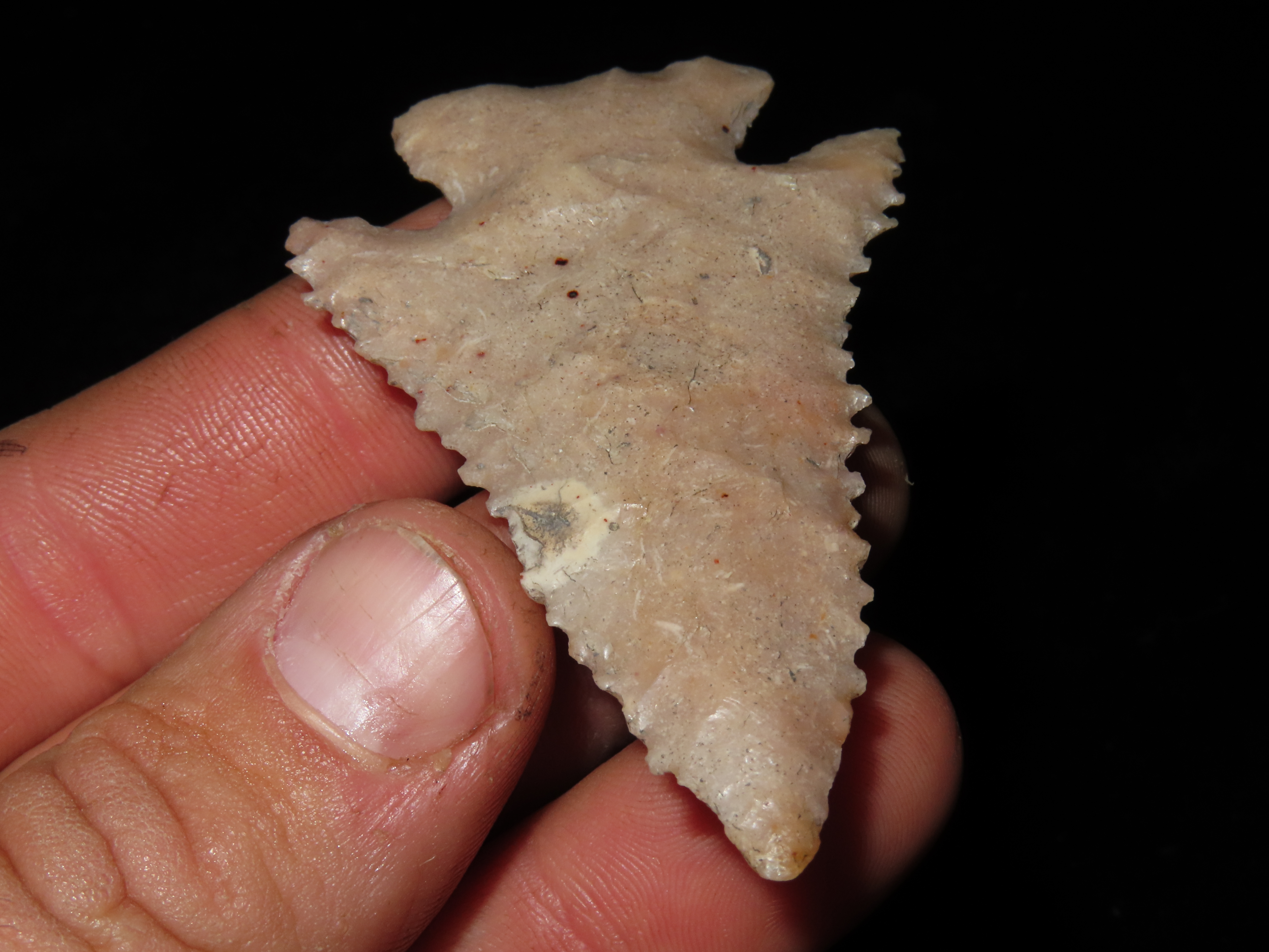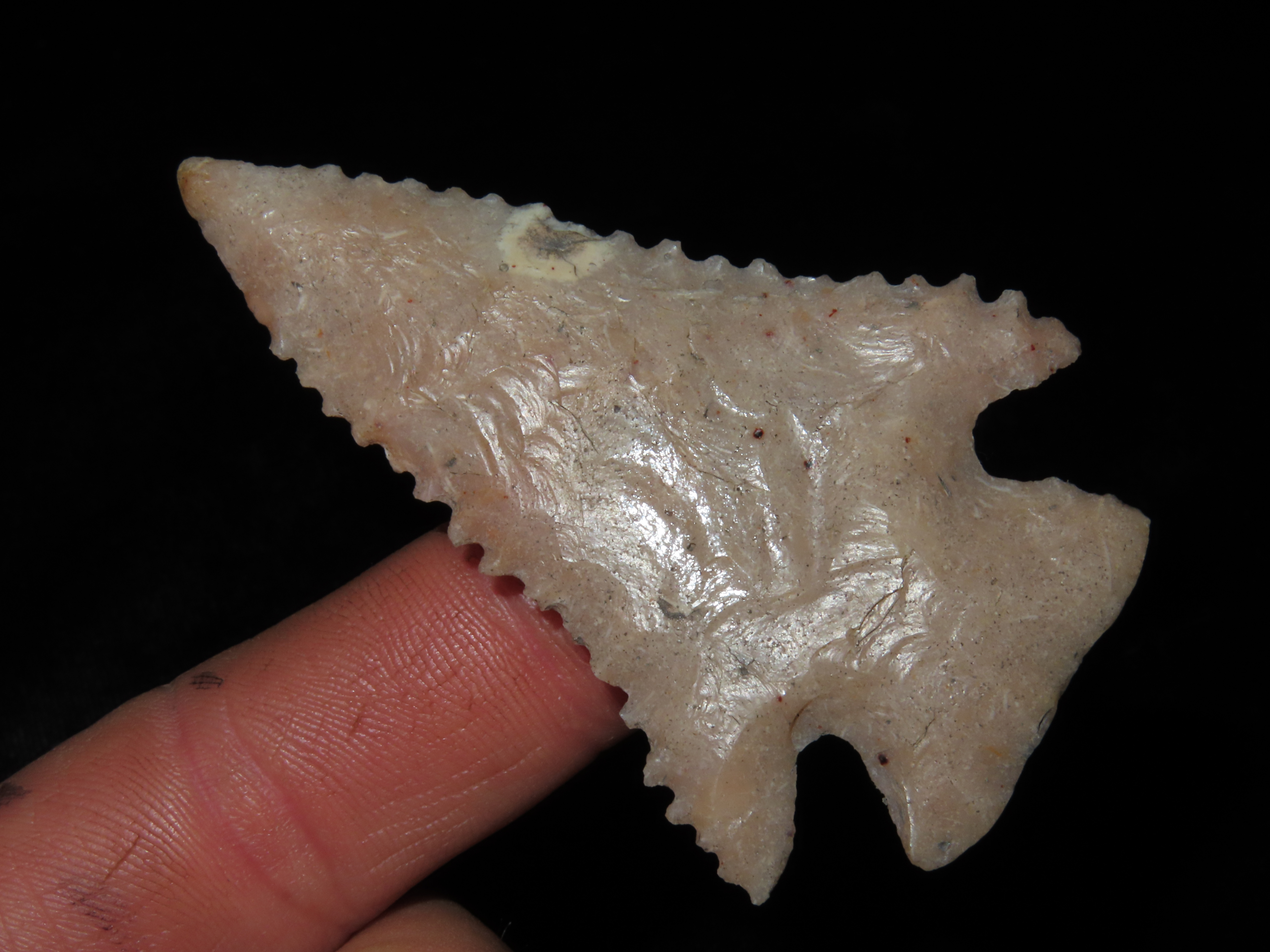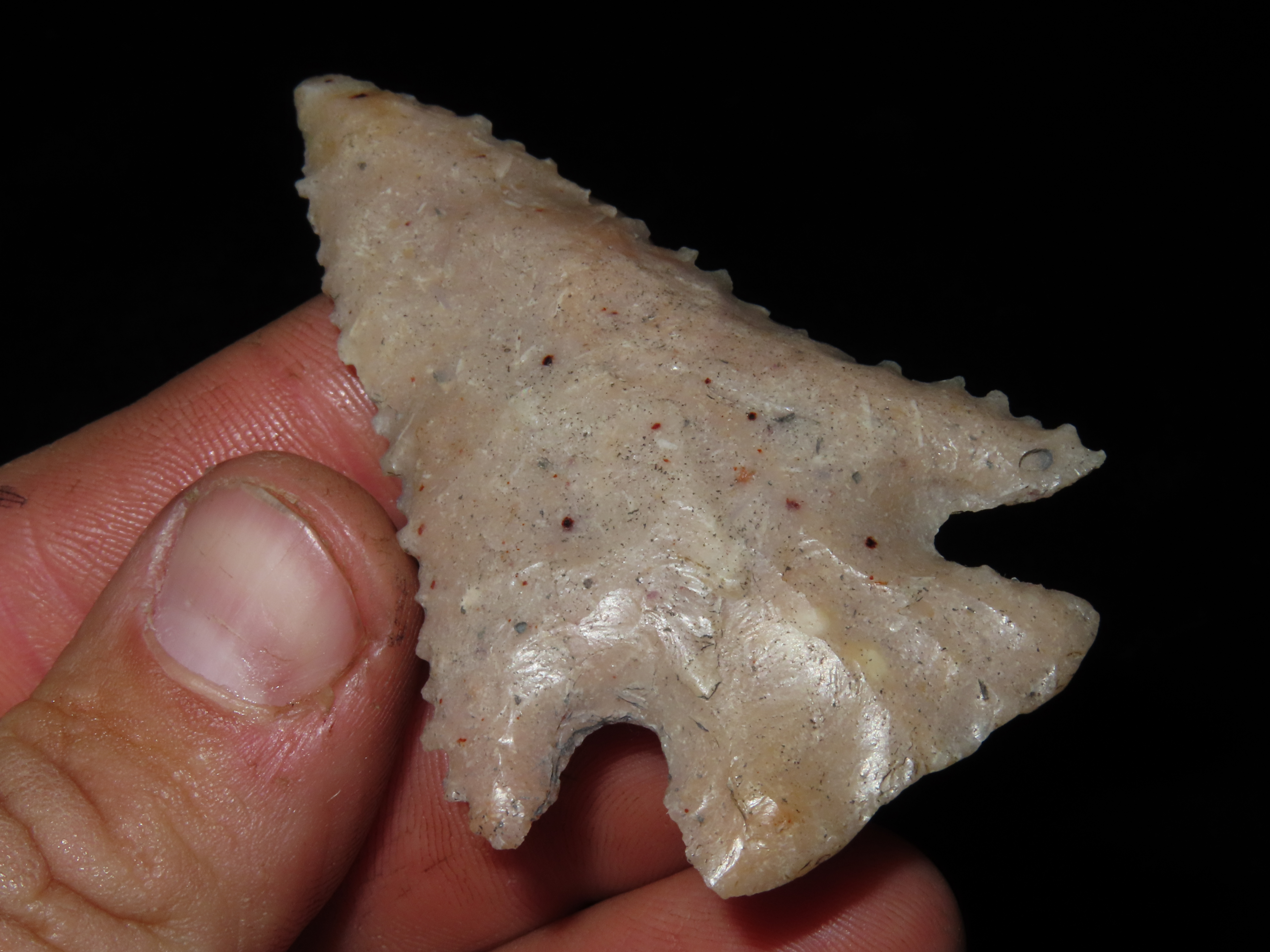 2 7/8″ INCREDIBLE SERRATED LOST LAKE / KIRK CORNER NOTCH, DEEP SOUTH GEORGIA, PHENOMENAL RELIC, DEADLY SERRATIONS, HIGHLY TRANSLUCENT