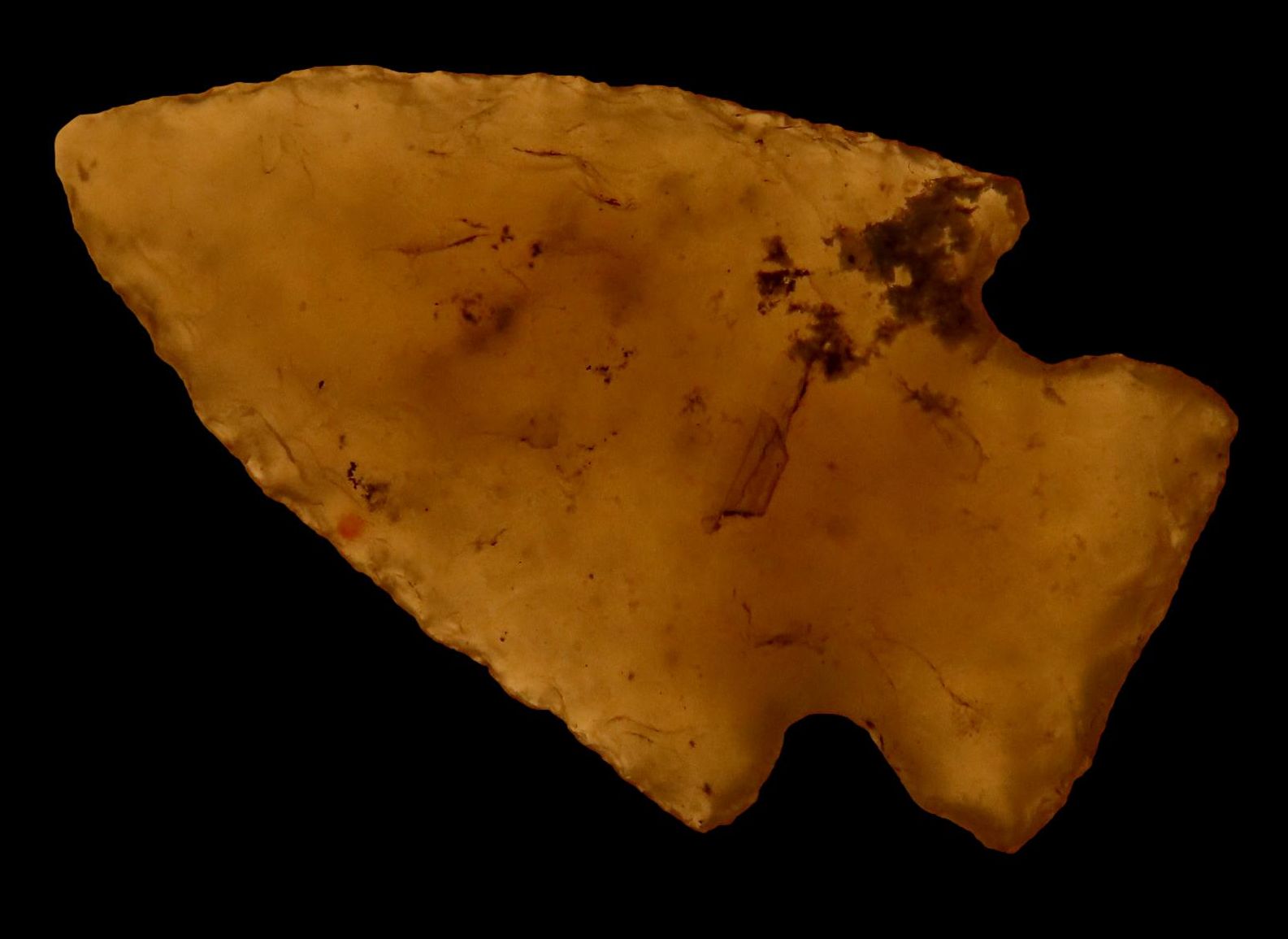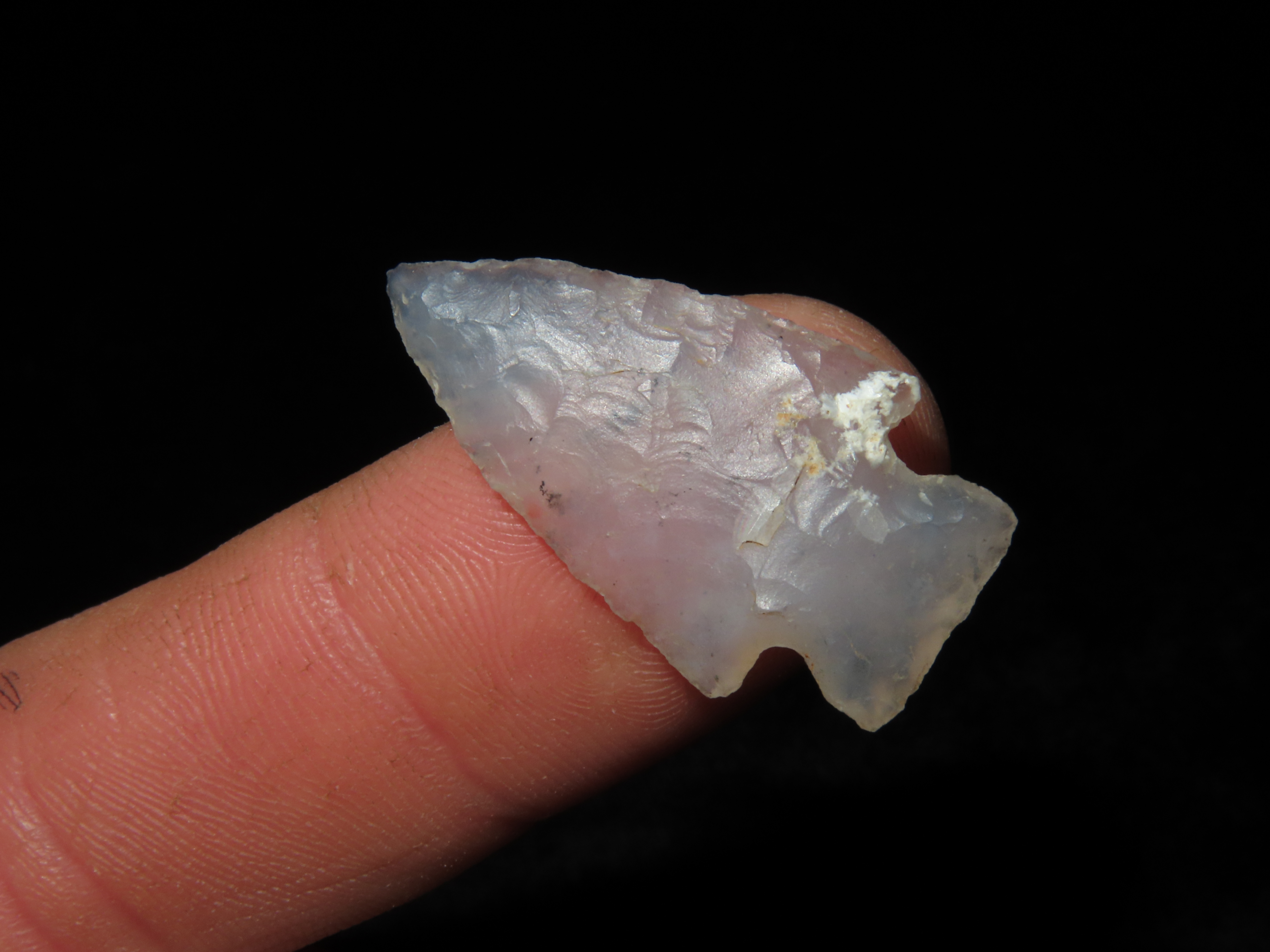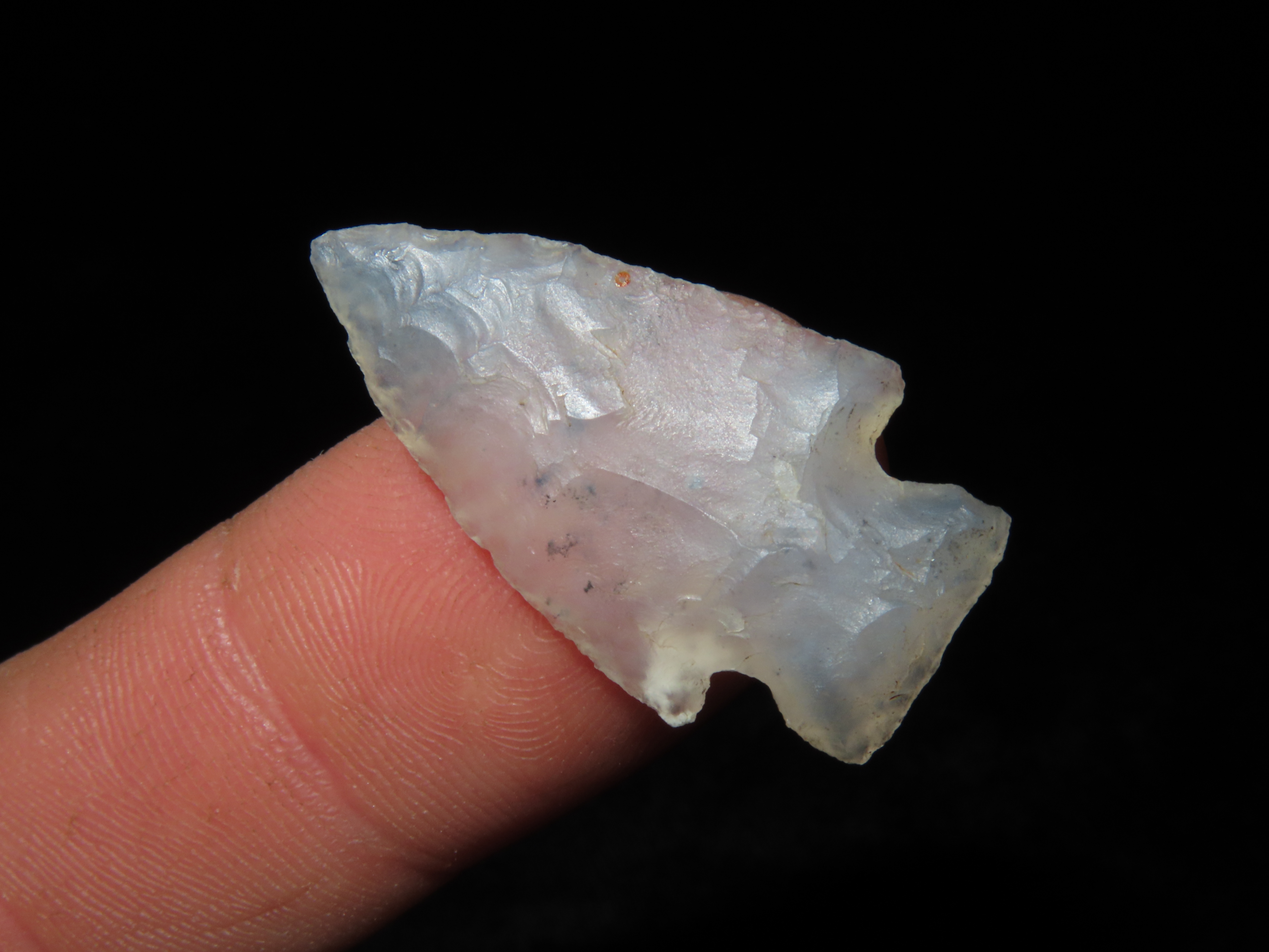 1 3/16″ CLEAR AGATE PELICAN LAKE GEM POINT, LINCOLN COUNTY COLORADO, AMAZING EXAMPLE, CRYSTAL CLEAR AGATE, INDIAN ARROWHEAD, BIRD POINT