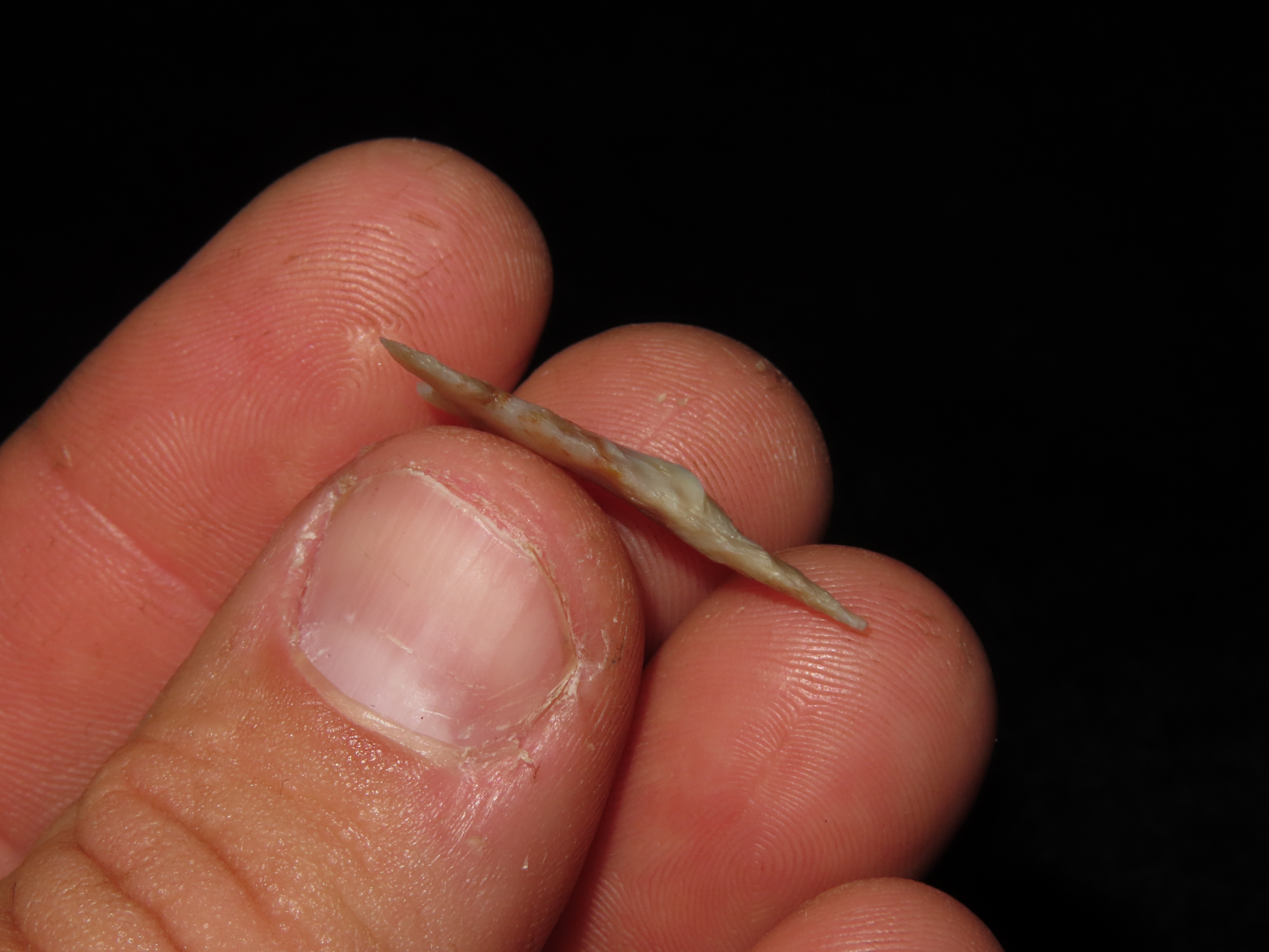 1 1/16″ PHENOMENAL NORTHERN SIDE NOTCH / HASKELL GEM POINT, LINCOLN COUNTY COLORADO, HIGHLY TRANSLUCENT AGATE, THINNER THAN A DIME