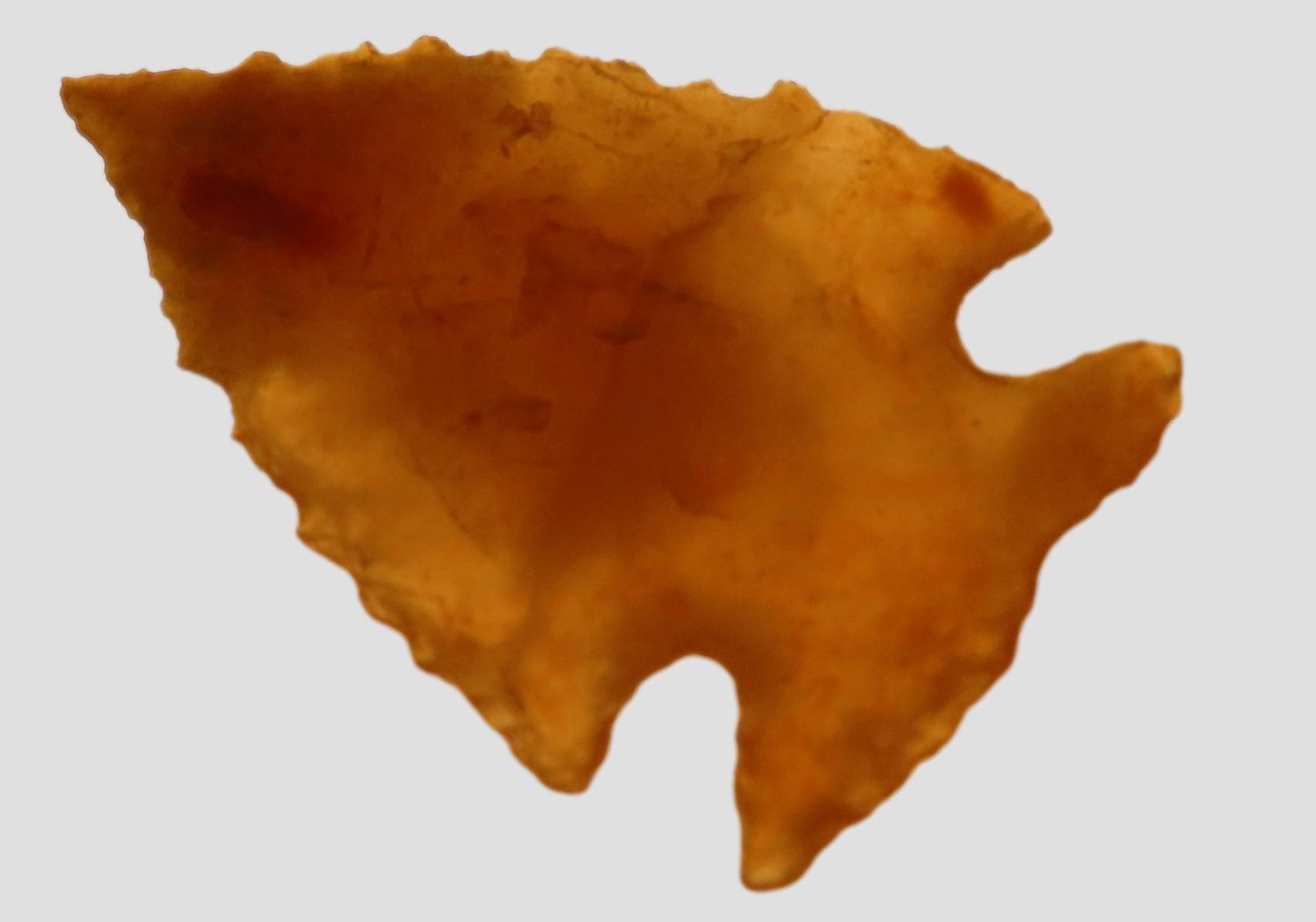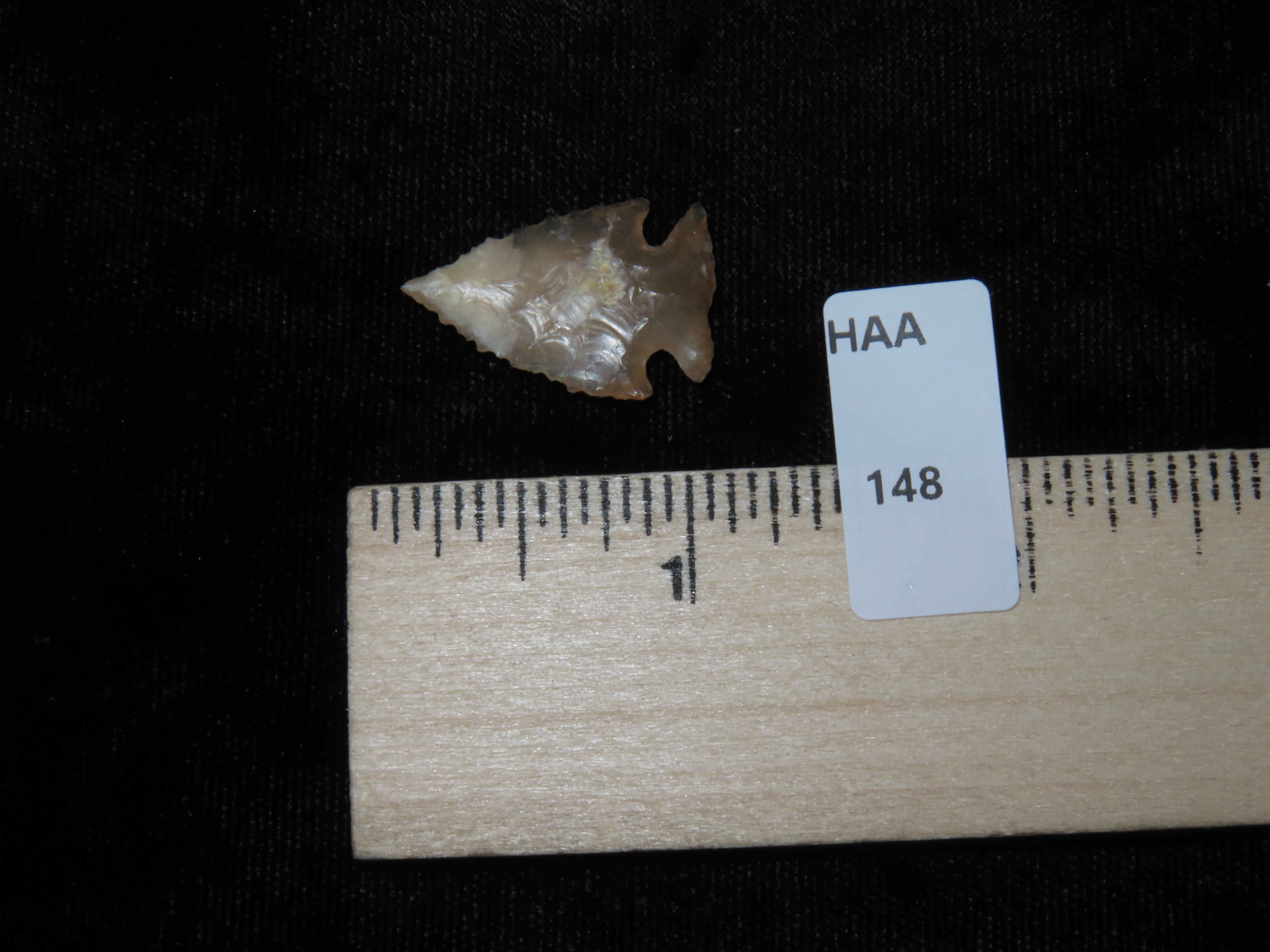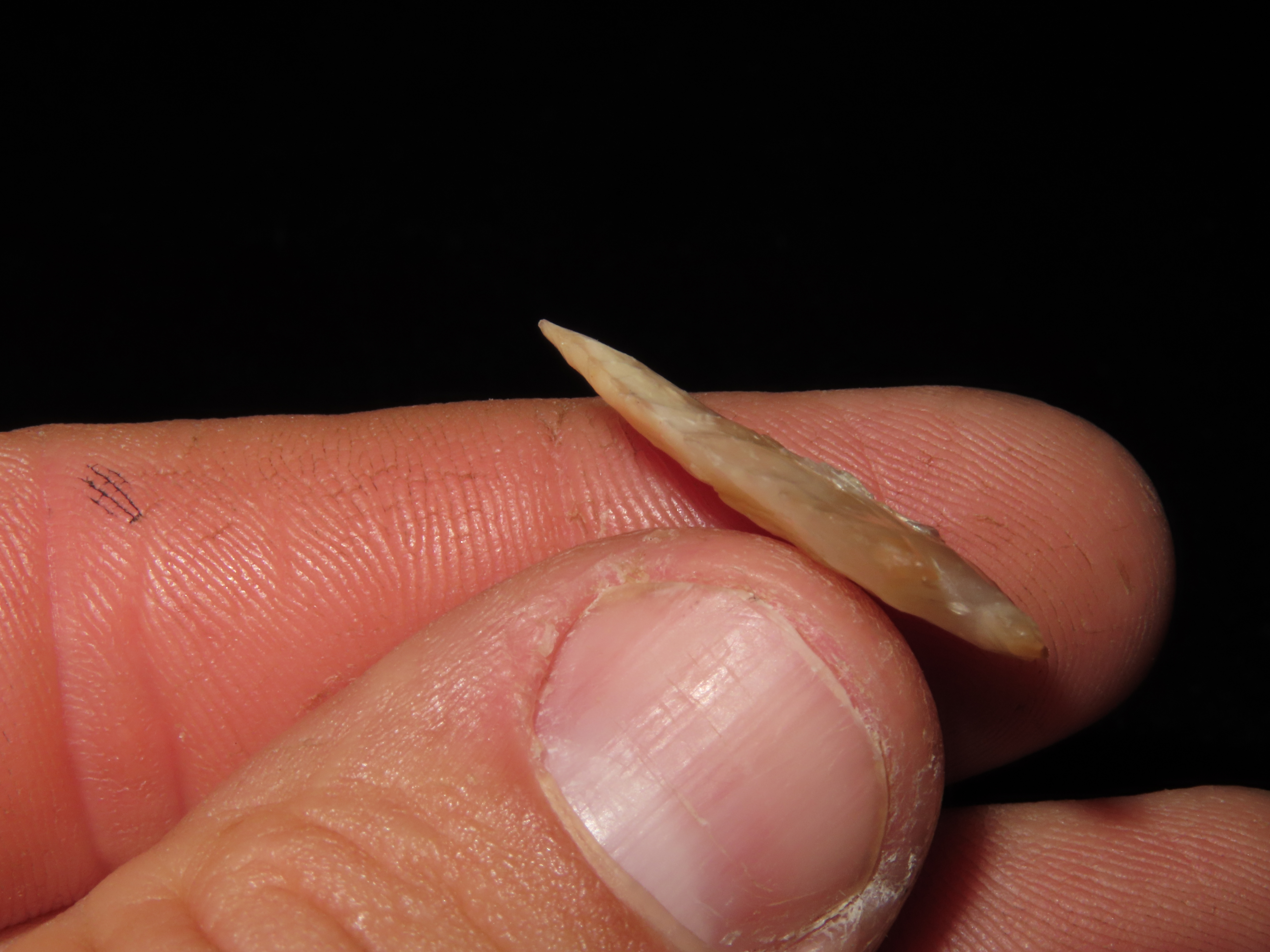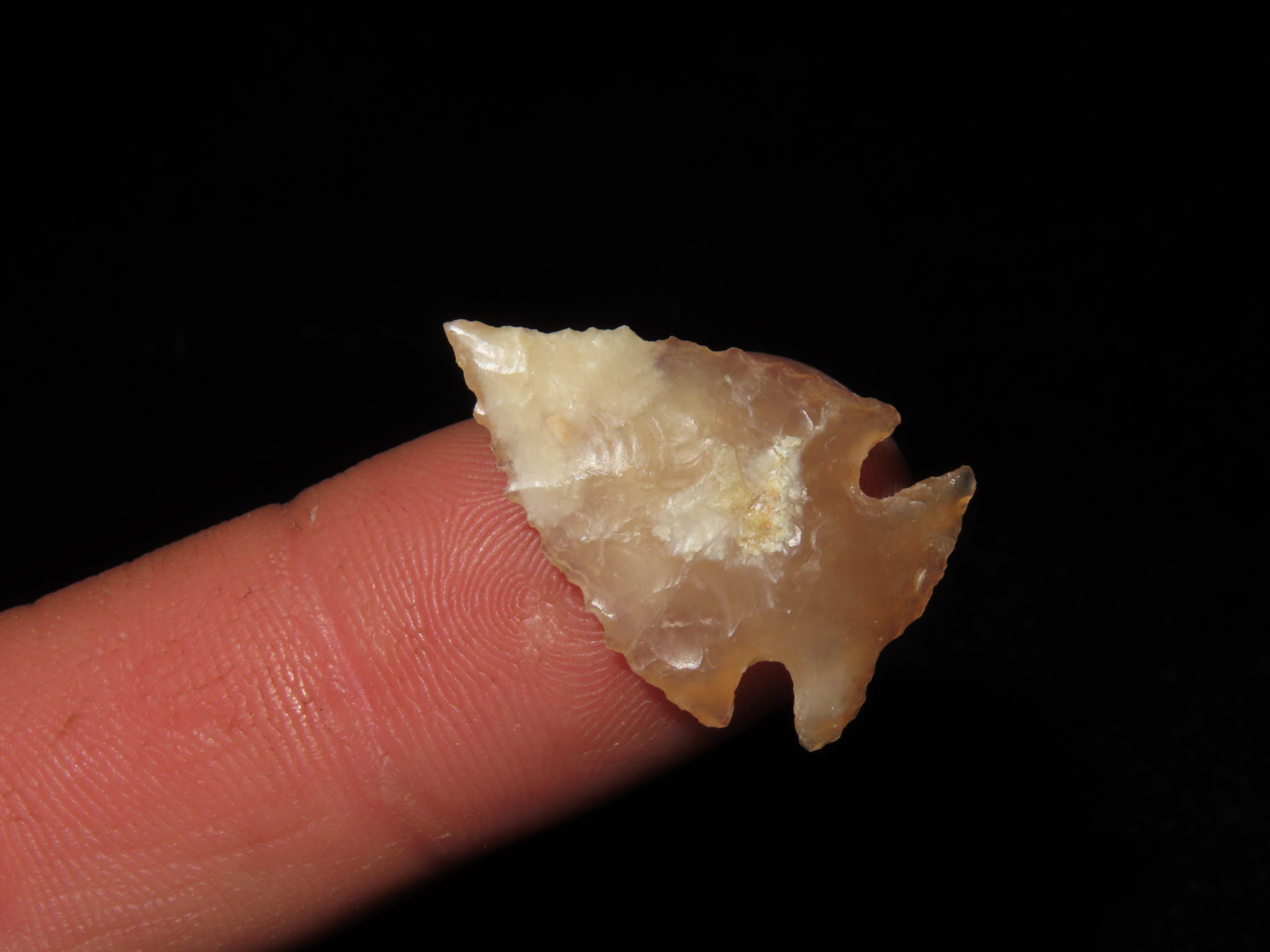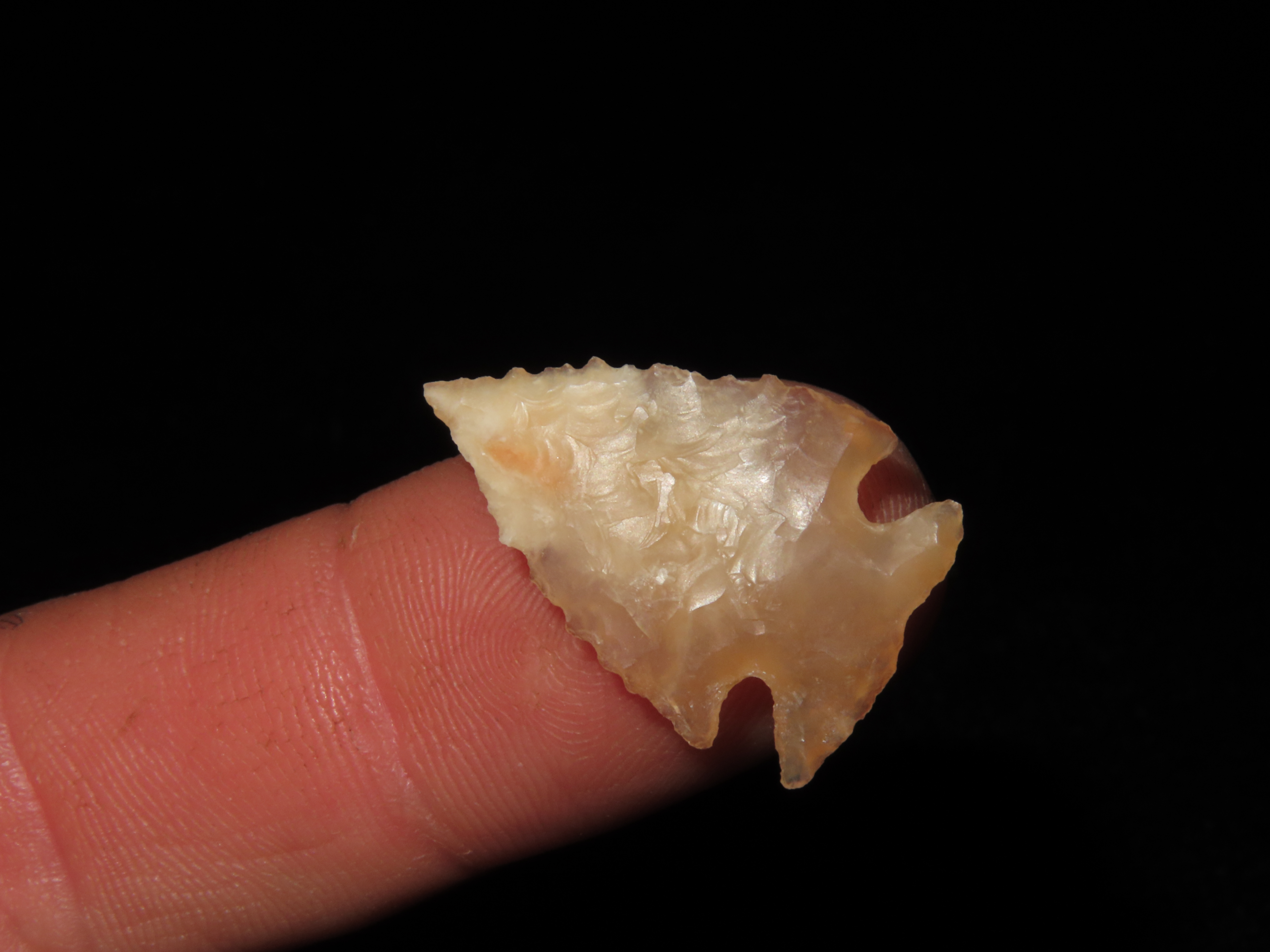 1″ INCREDIBLE MUMMY CAVE GEM POINT CORNER NOTCH, LINCOLN COUNTY COLORADO, HIGHLY TRANSLUCENT PEACH COLORED AGATE, MICRO SERRATED, G10