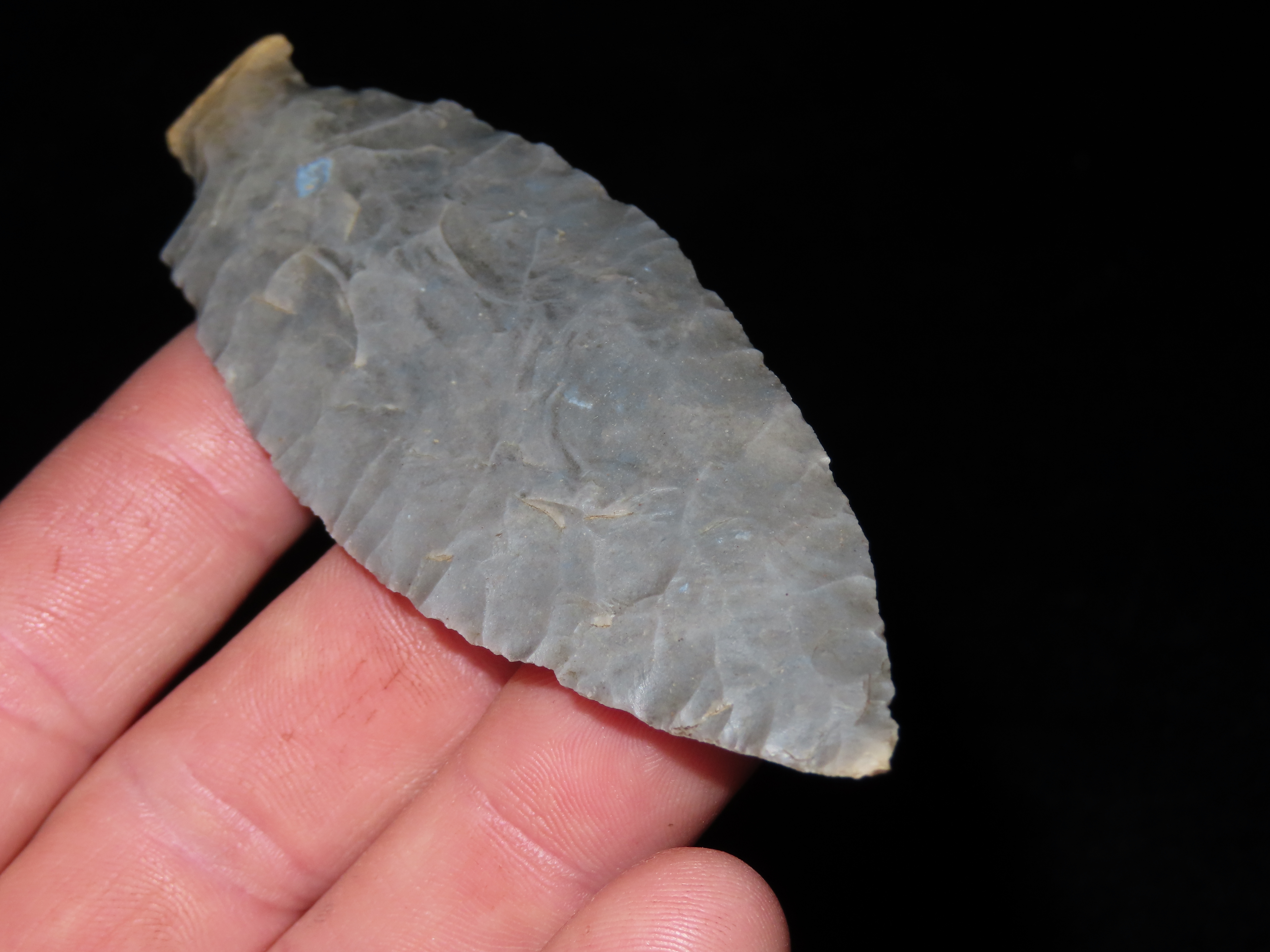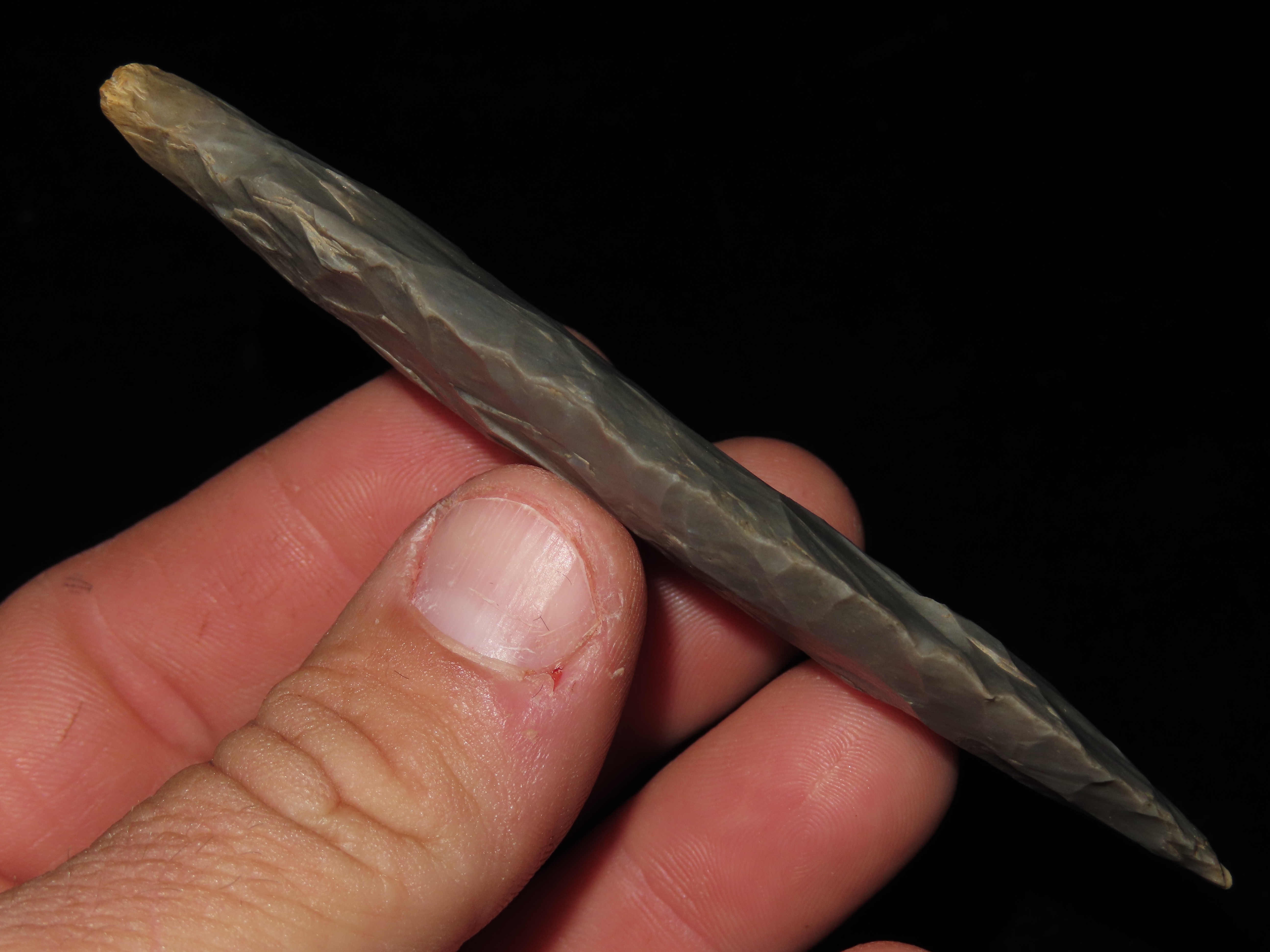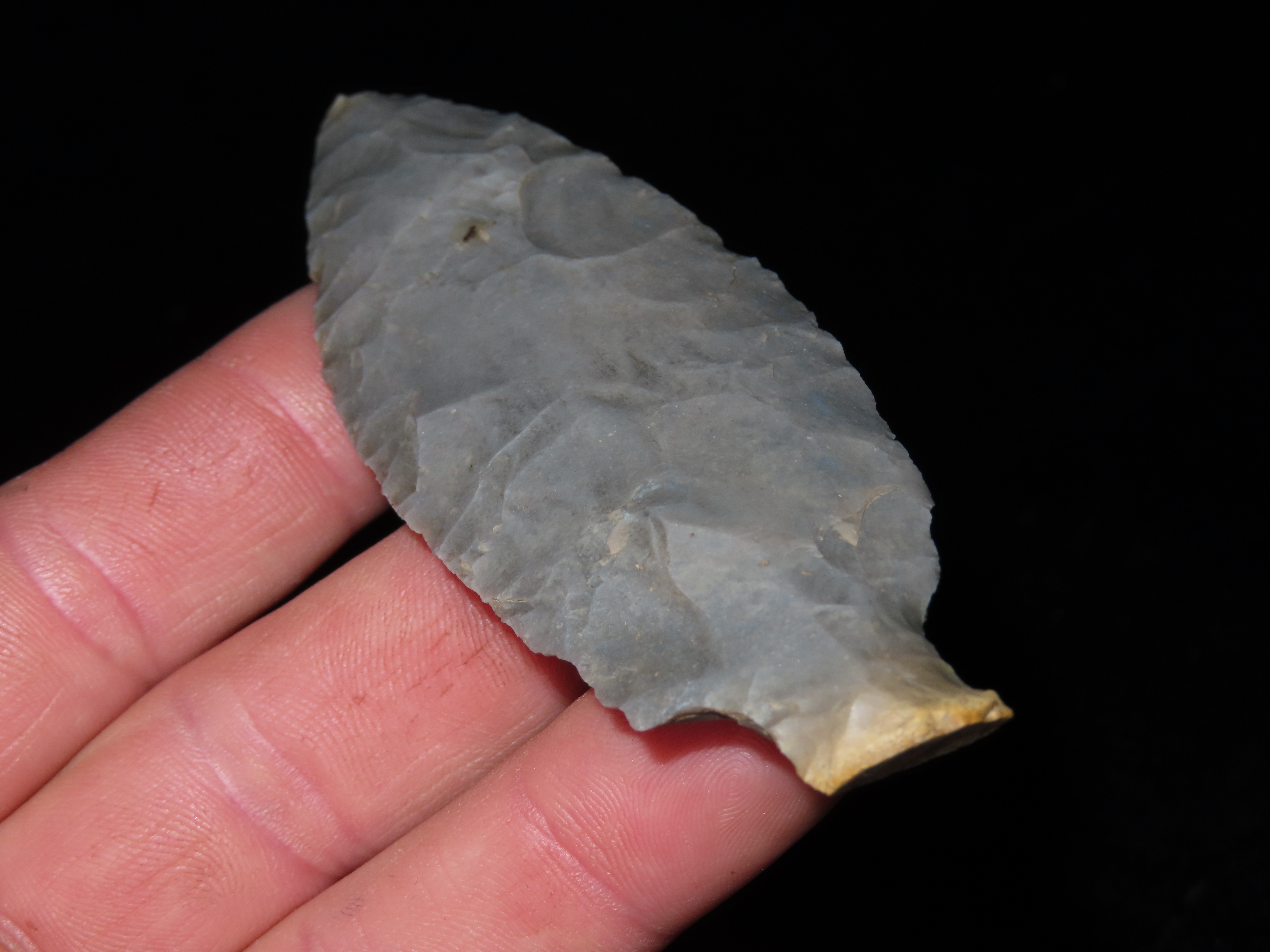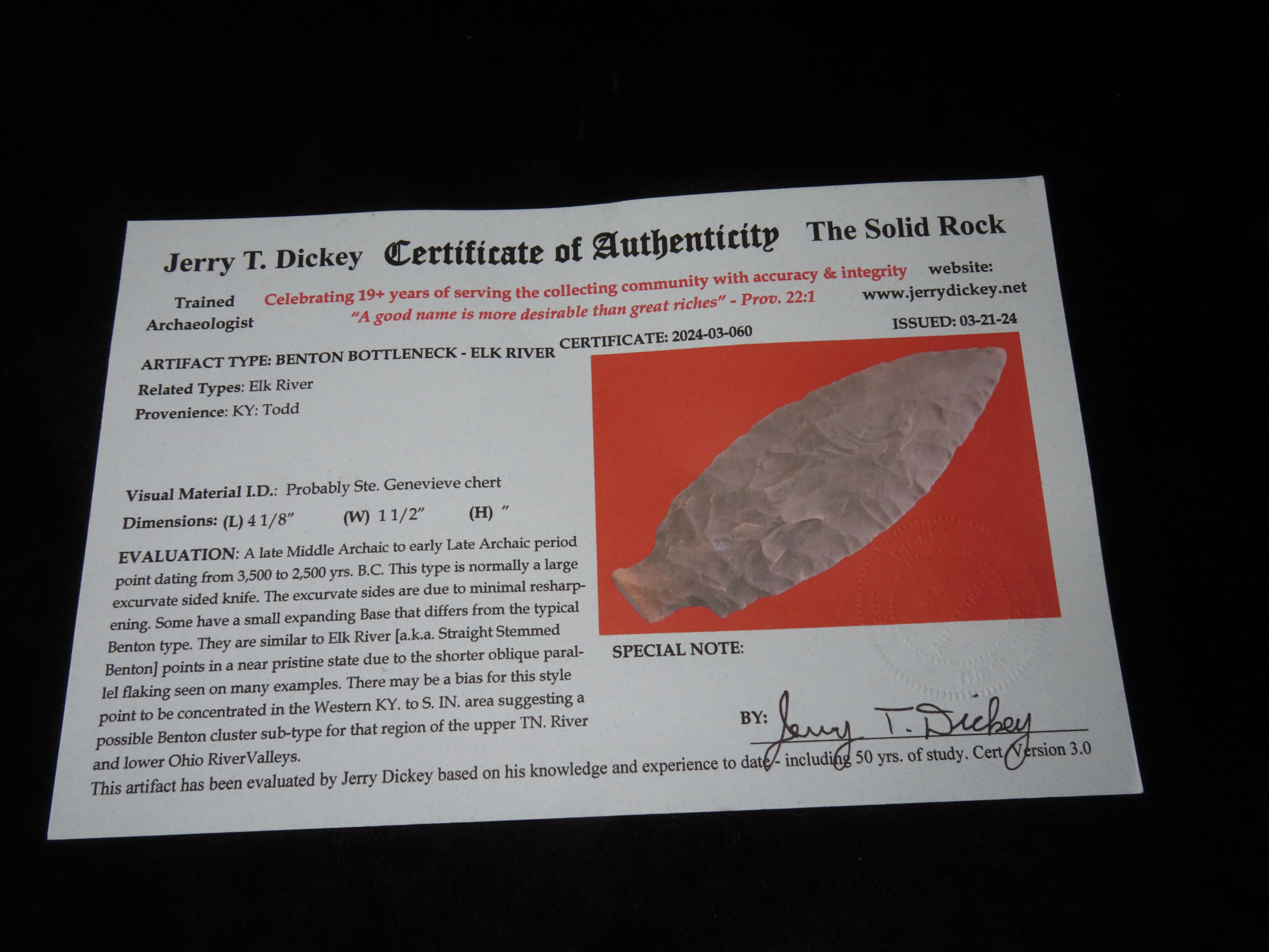 4 1/8″ ELK RIVER BOTTLENECK, DICKEY COA, TODD COUNTY KENTUCKY, VERY WELL MADE EXAMPLE WITH CLASSIC THAT DIAGONAL FLAKING