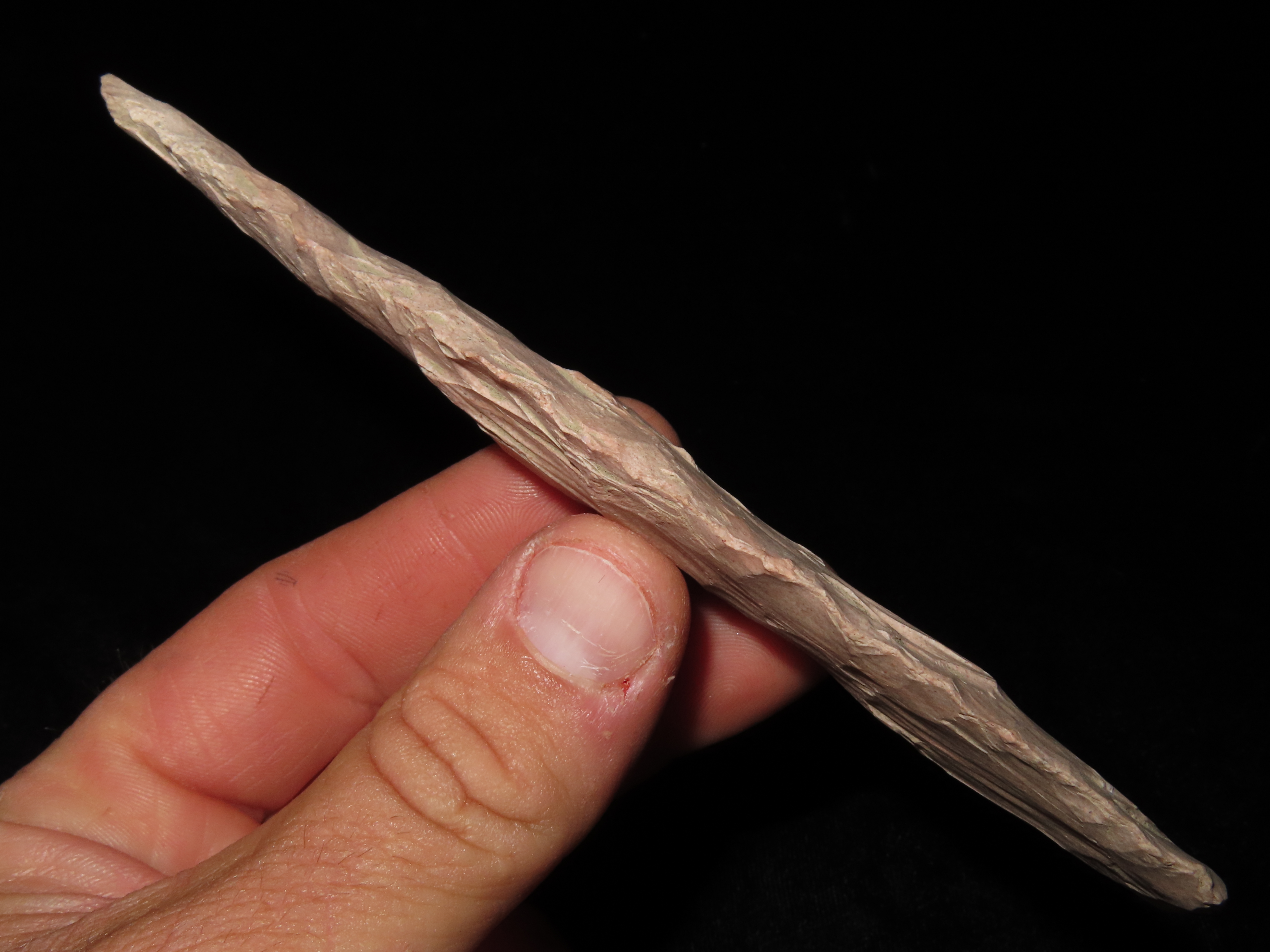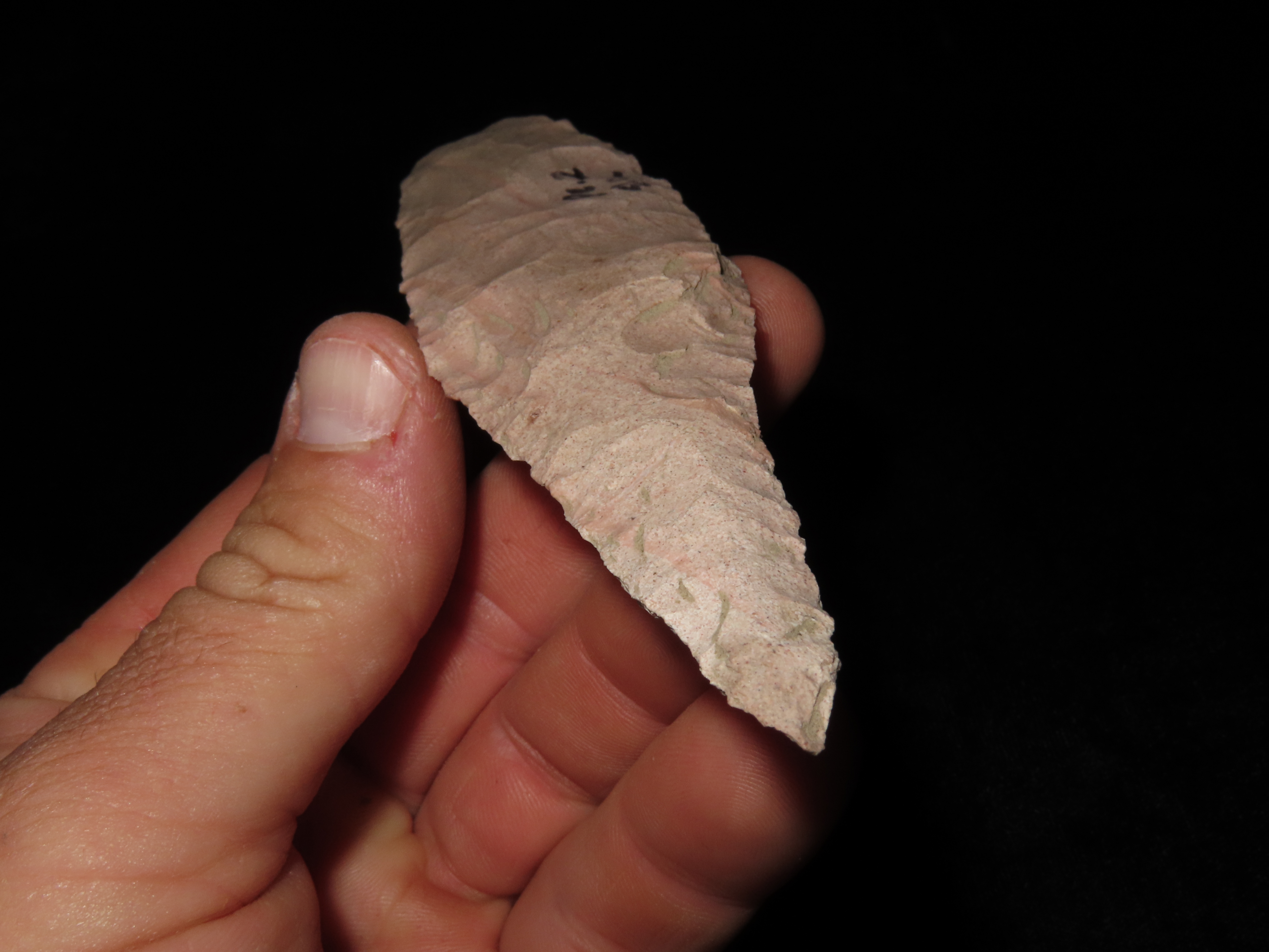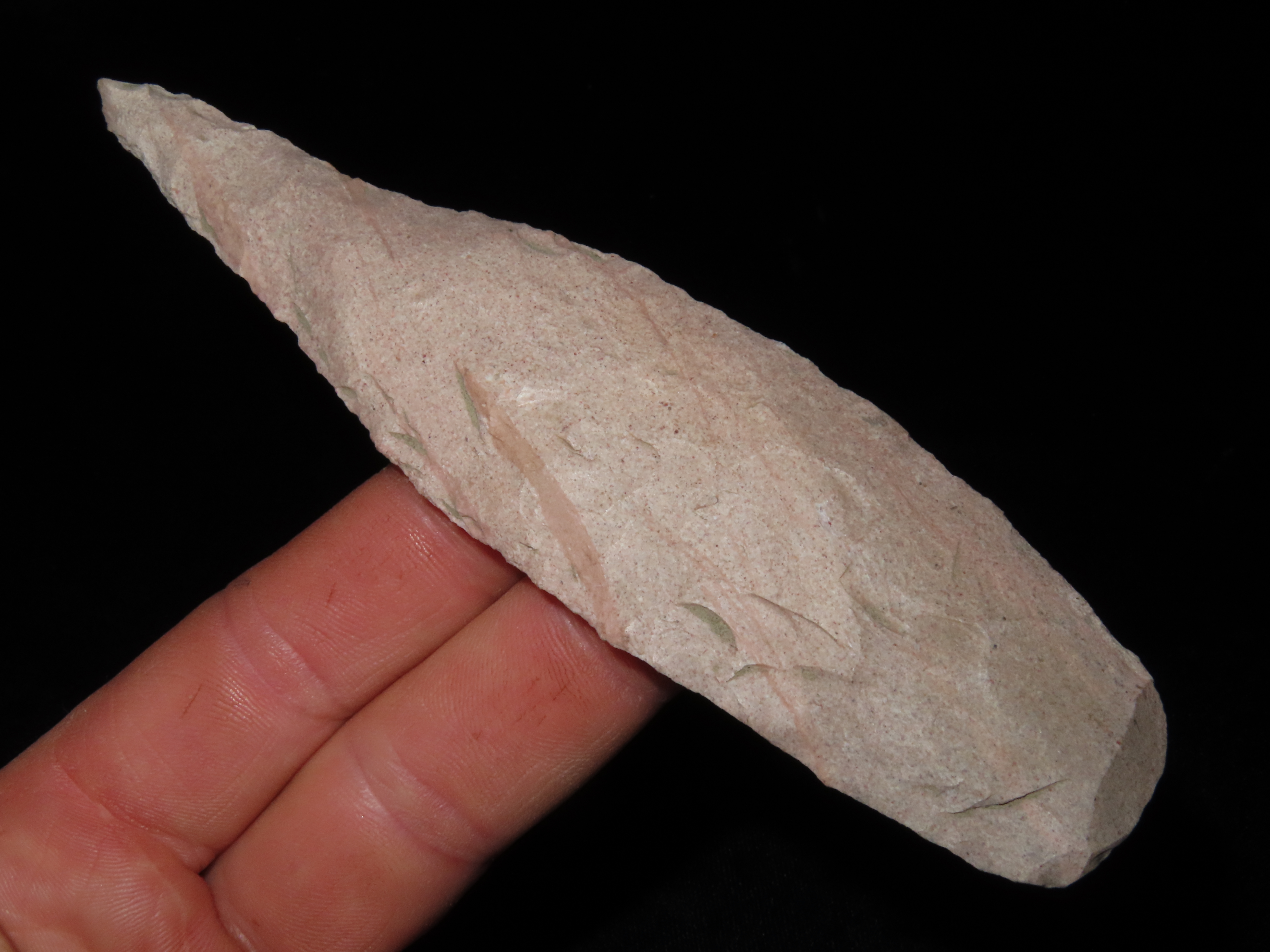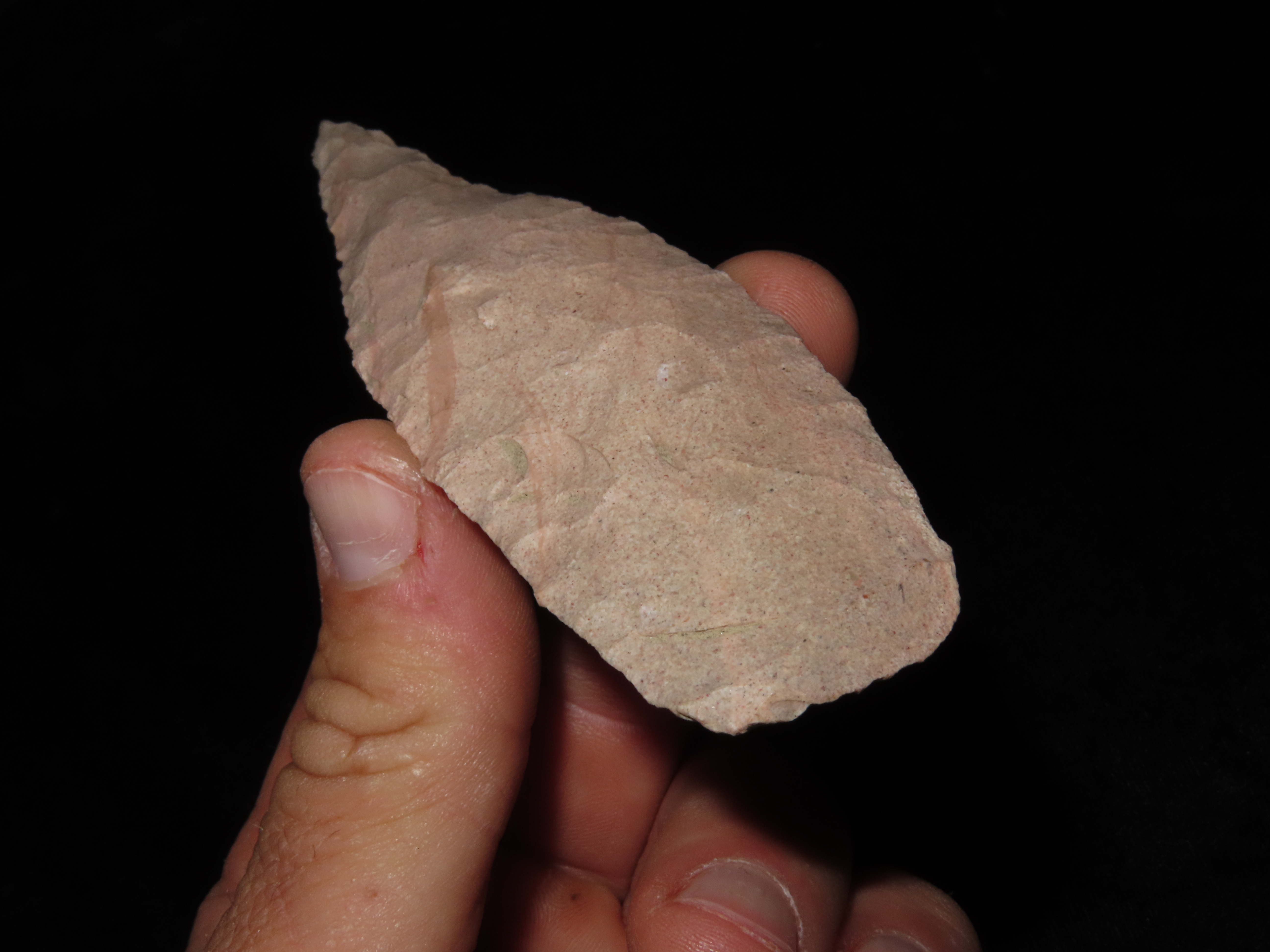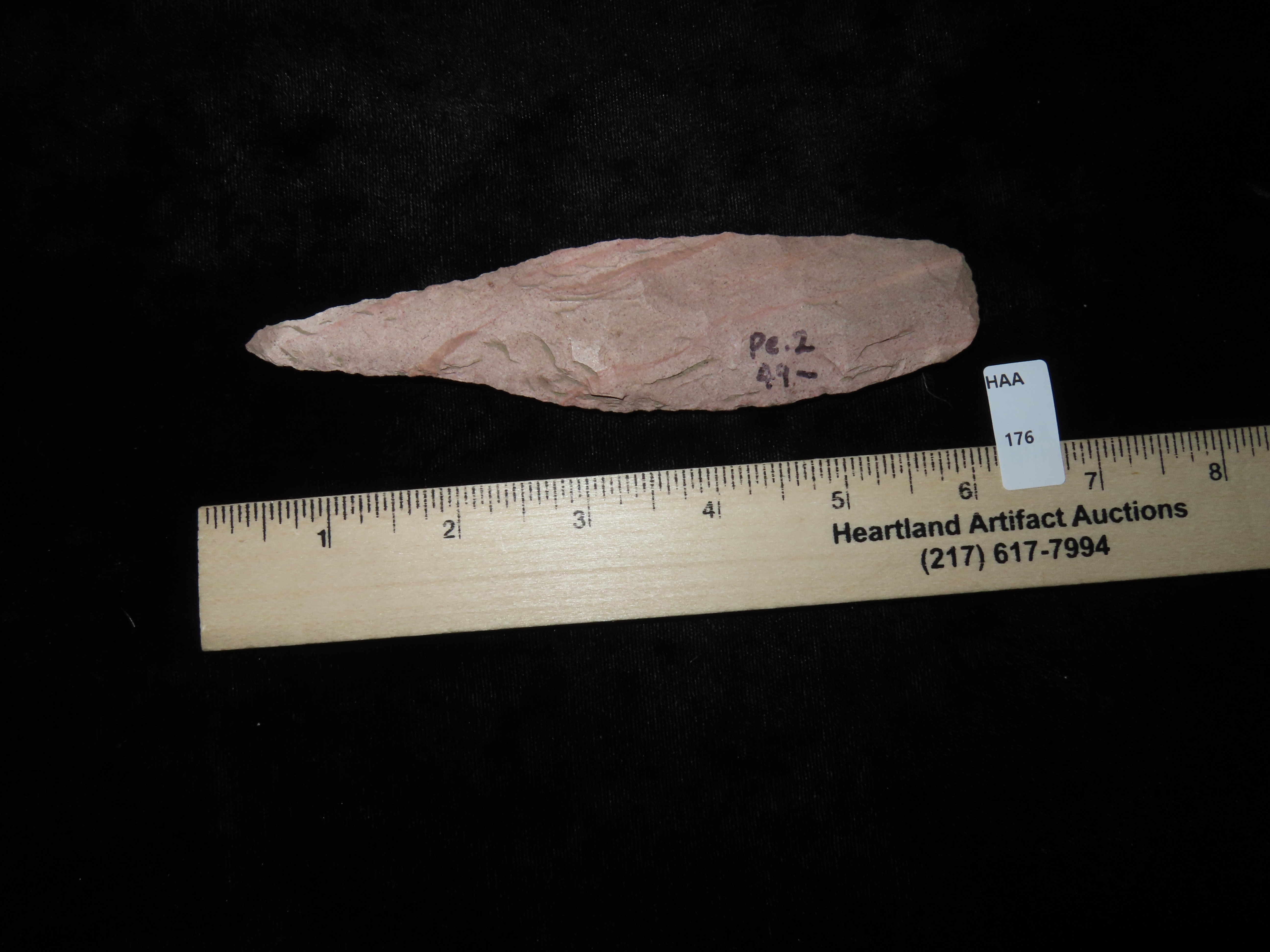 5 13/16″ AMAZING ARCHAIC LERMA BLADE, DICKEY COA, COLORFUL PINK CHERT, FOUND IN PETTIS COUNTY MISSOURI, NICE LARGE WELL MADE EXAMPLE