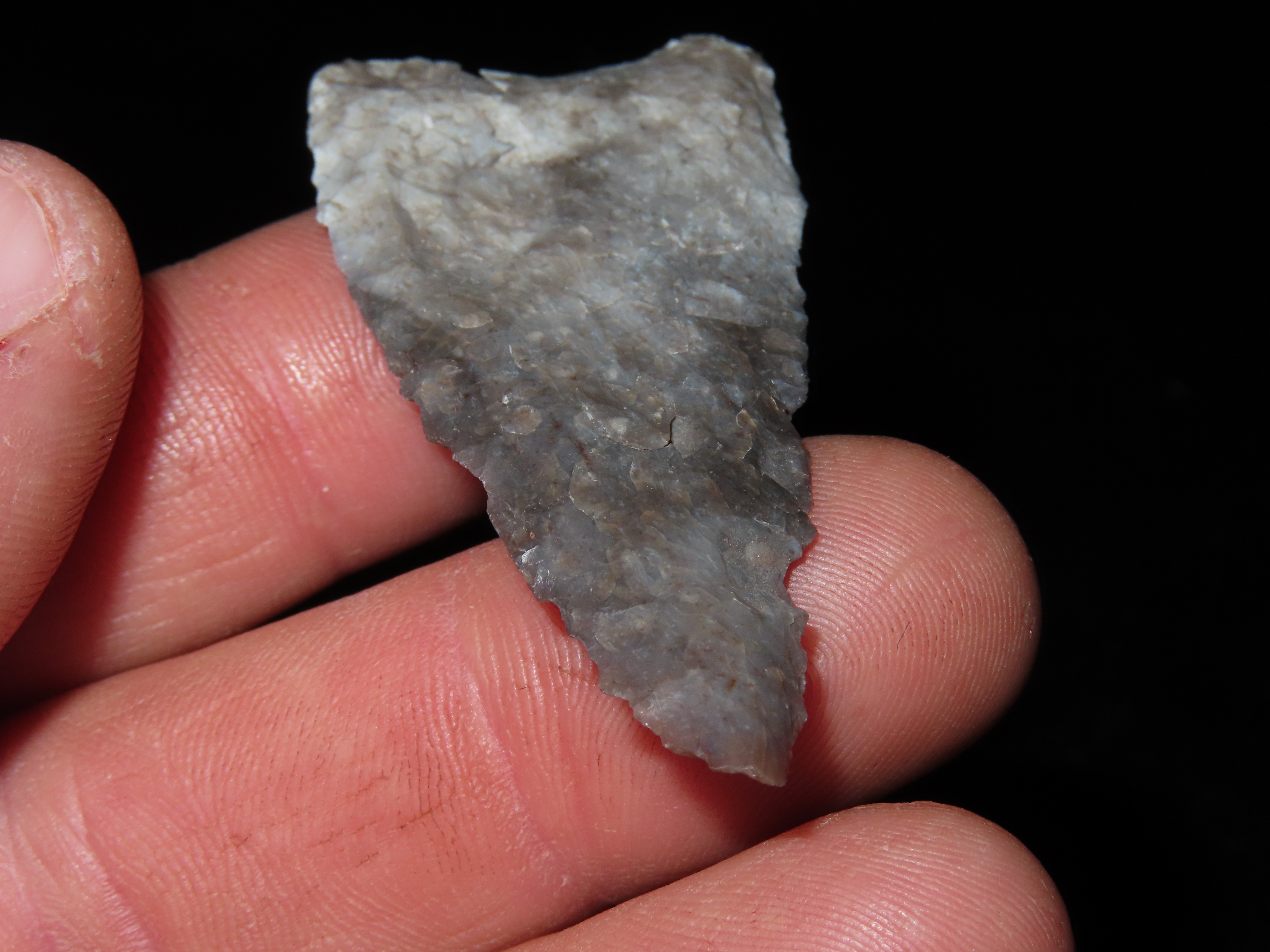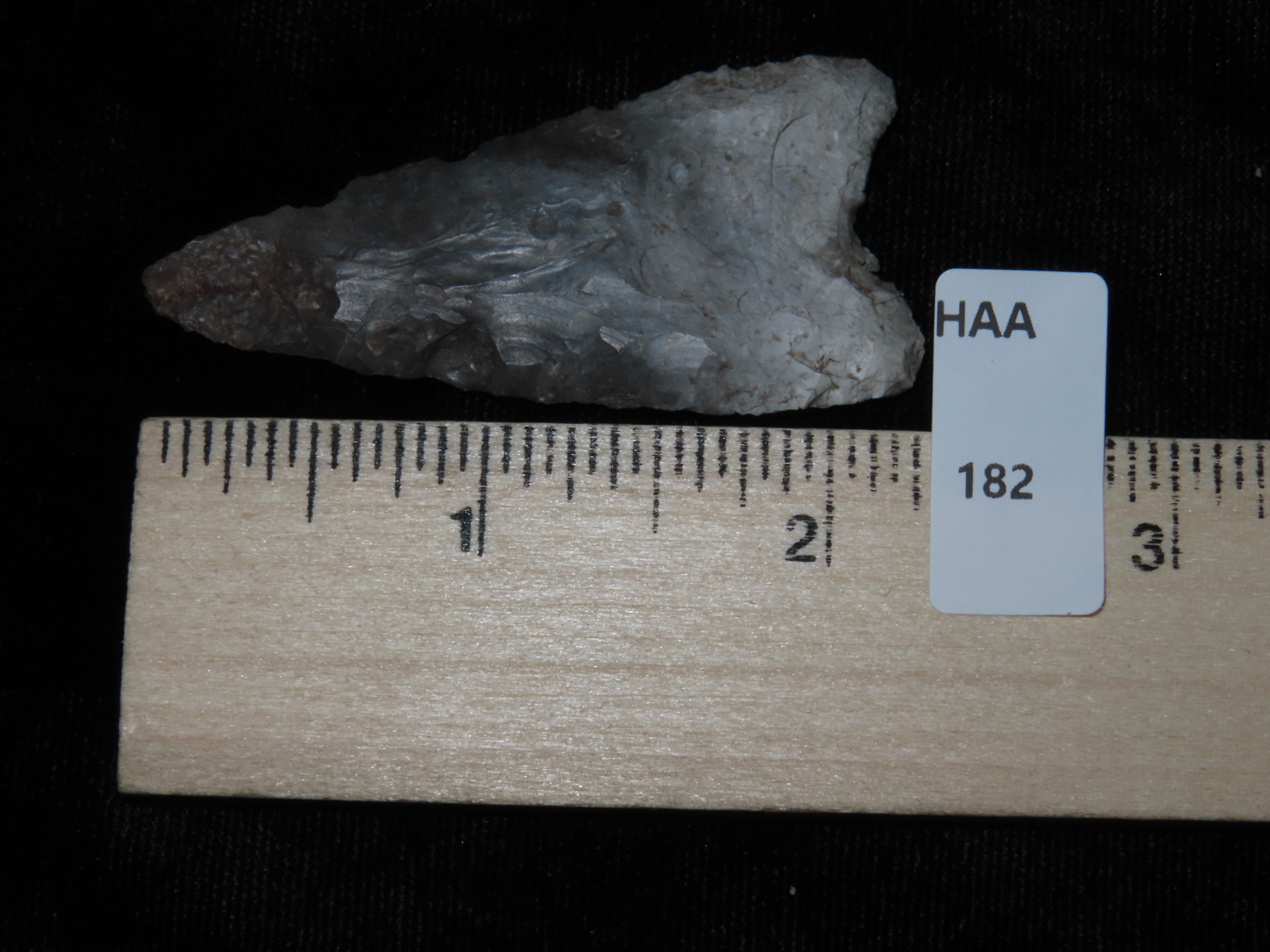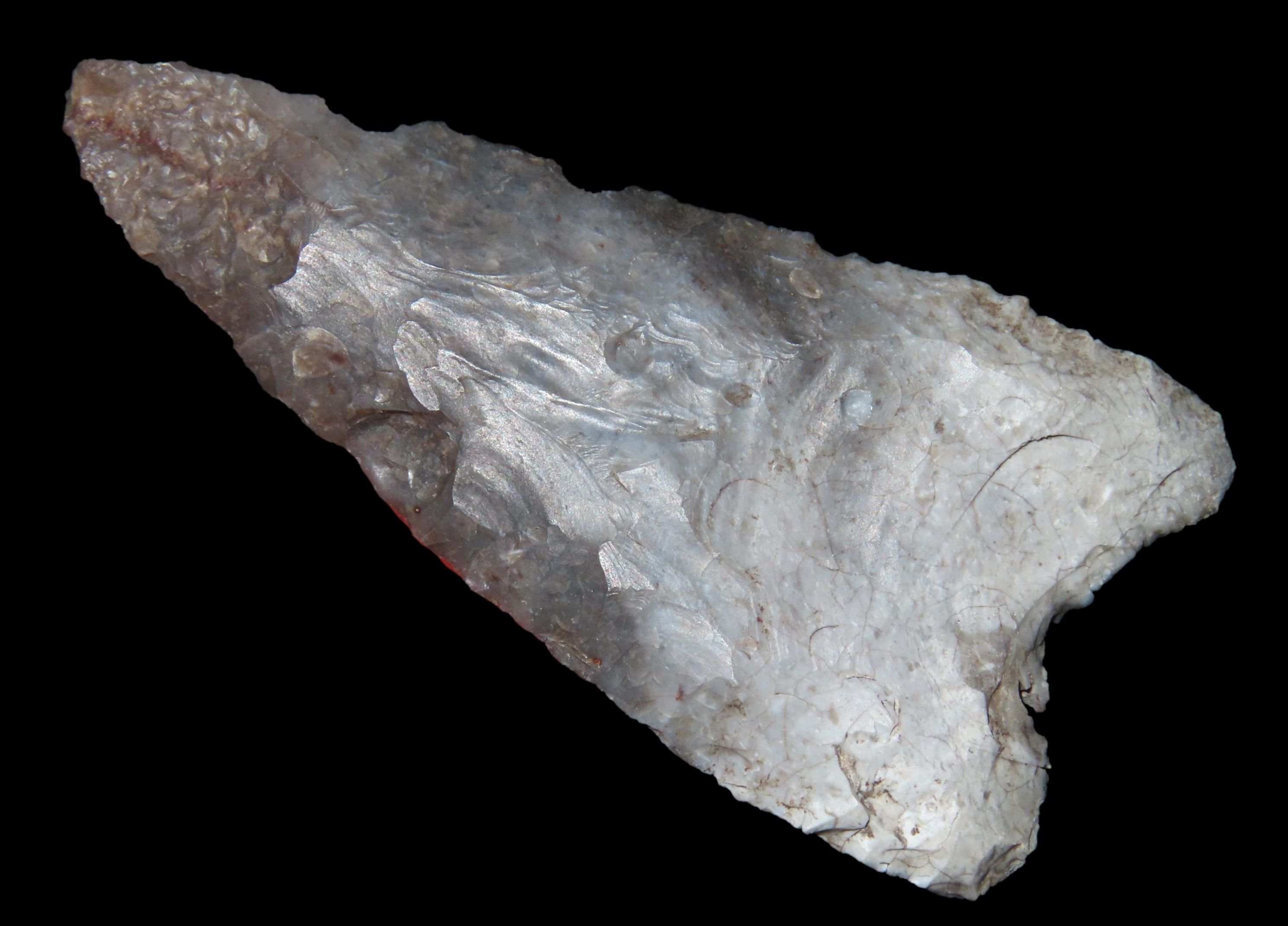 2 3/8″ TEXAS PALEO ERA GOLONDRINA / DALTON, FOUND IN KERR COUNTY TX, INDIAN ARROWHEAD, ARTIFACT, EX DR. TED RAUCK COLLECTION