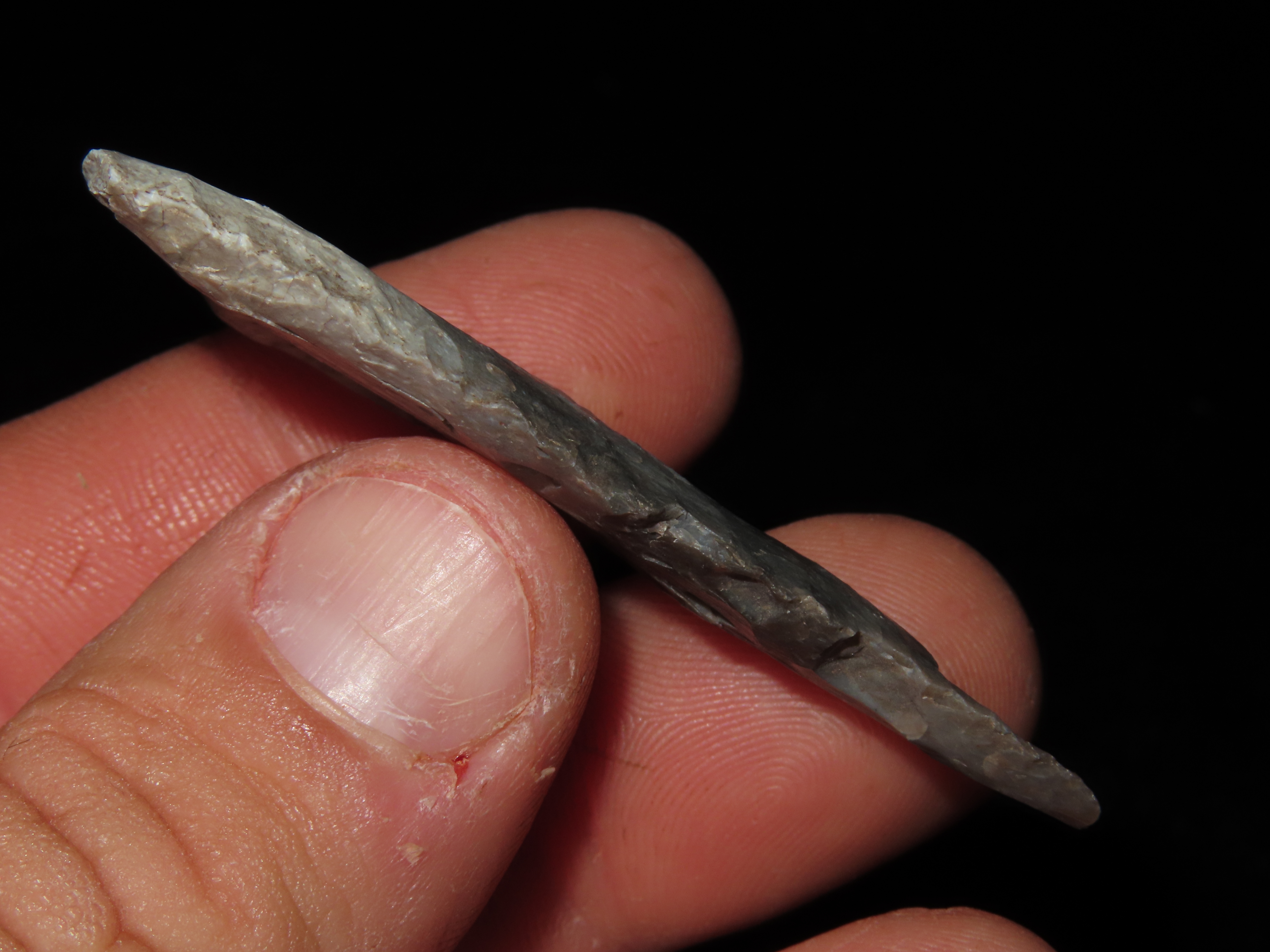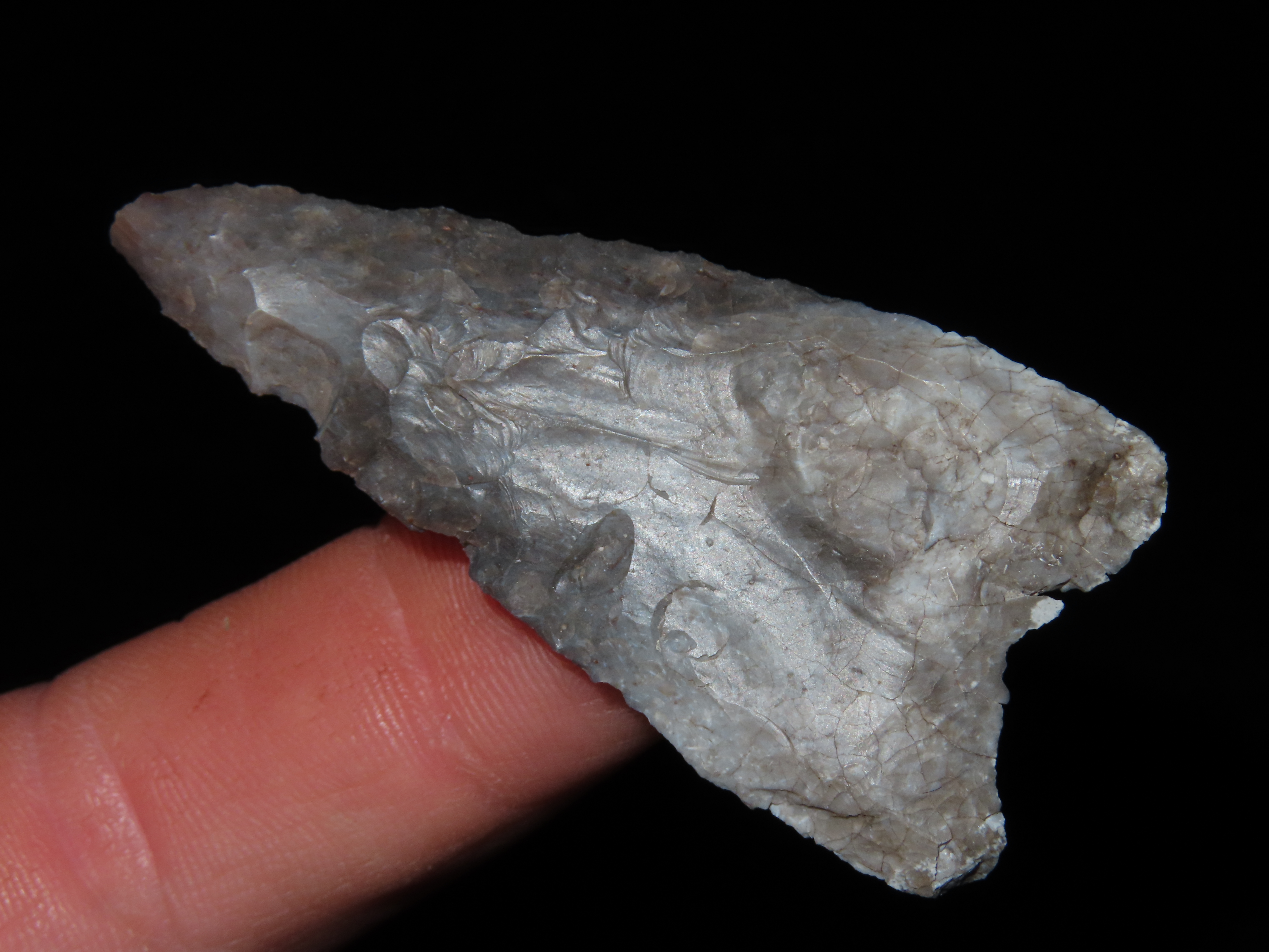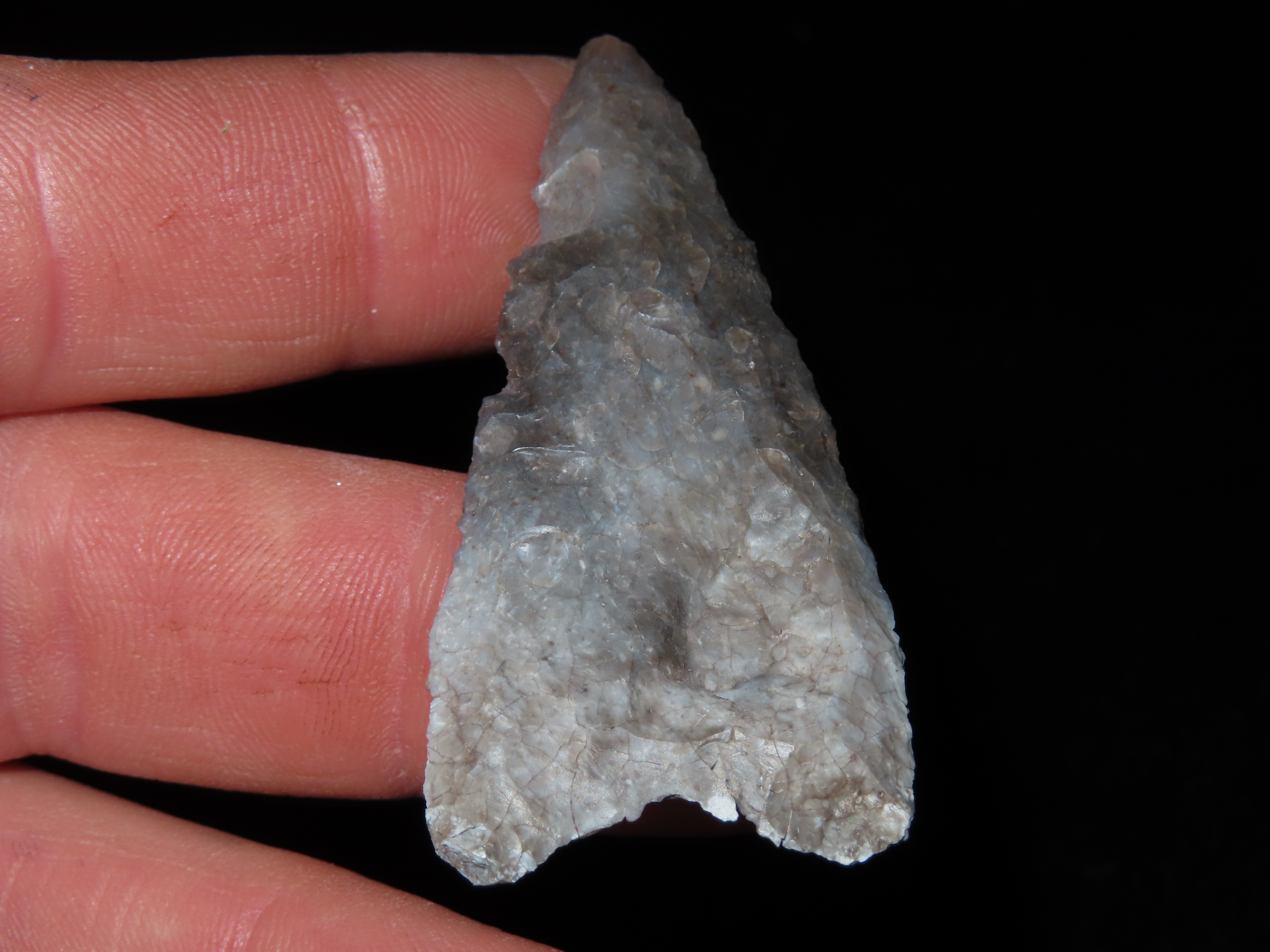 2 3/8″ TEXAS PALEO ERA GOLONDRINA / DALTON, FOUND IN KERR COUNTY TX, INDIAN ARROWHEAD, ARTIFACT, EX DR. TED RAUCK COLLECTION