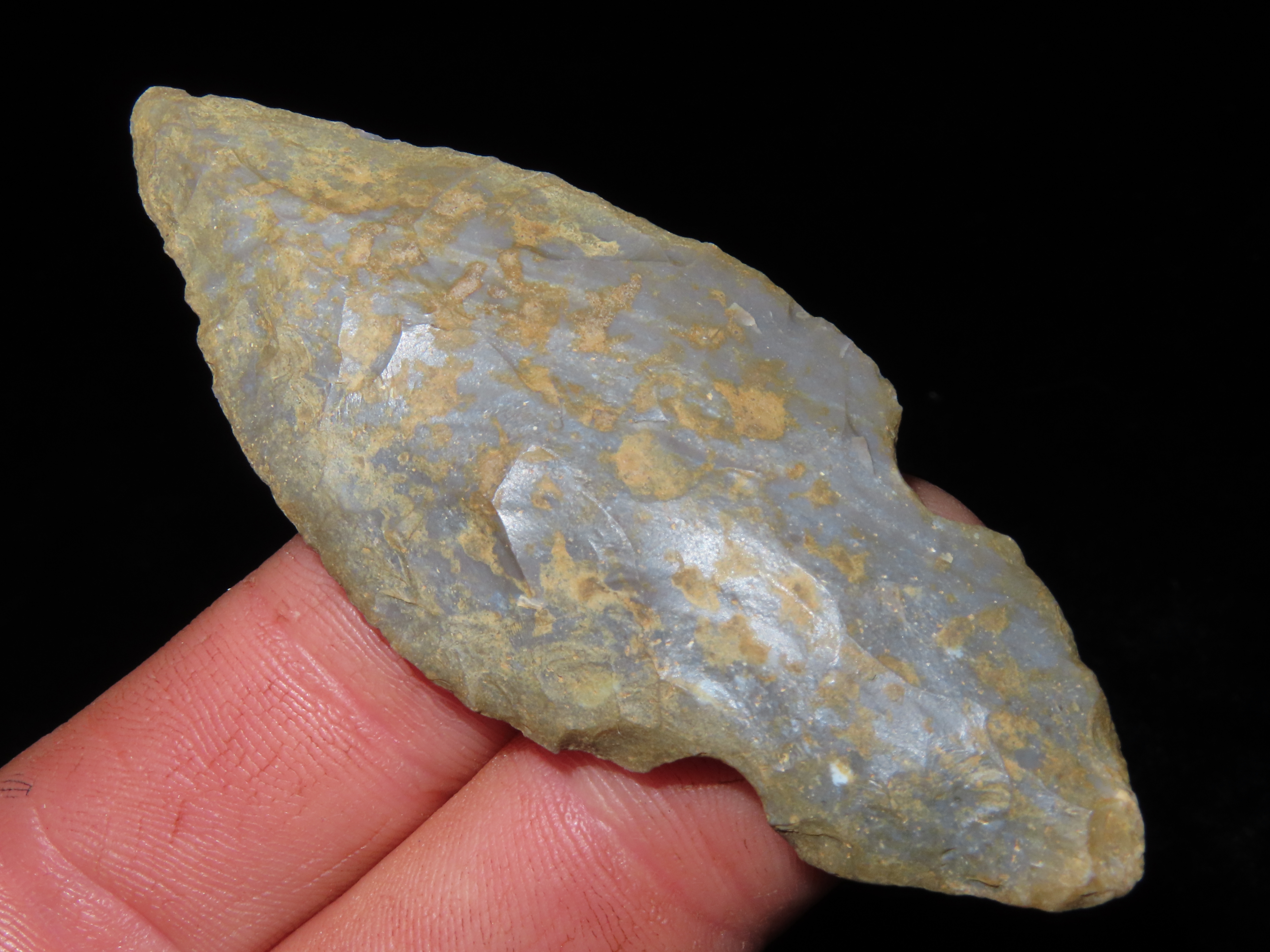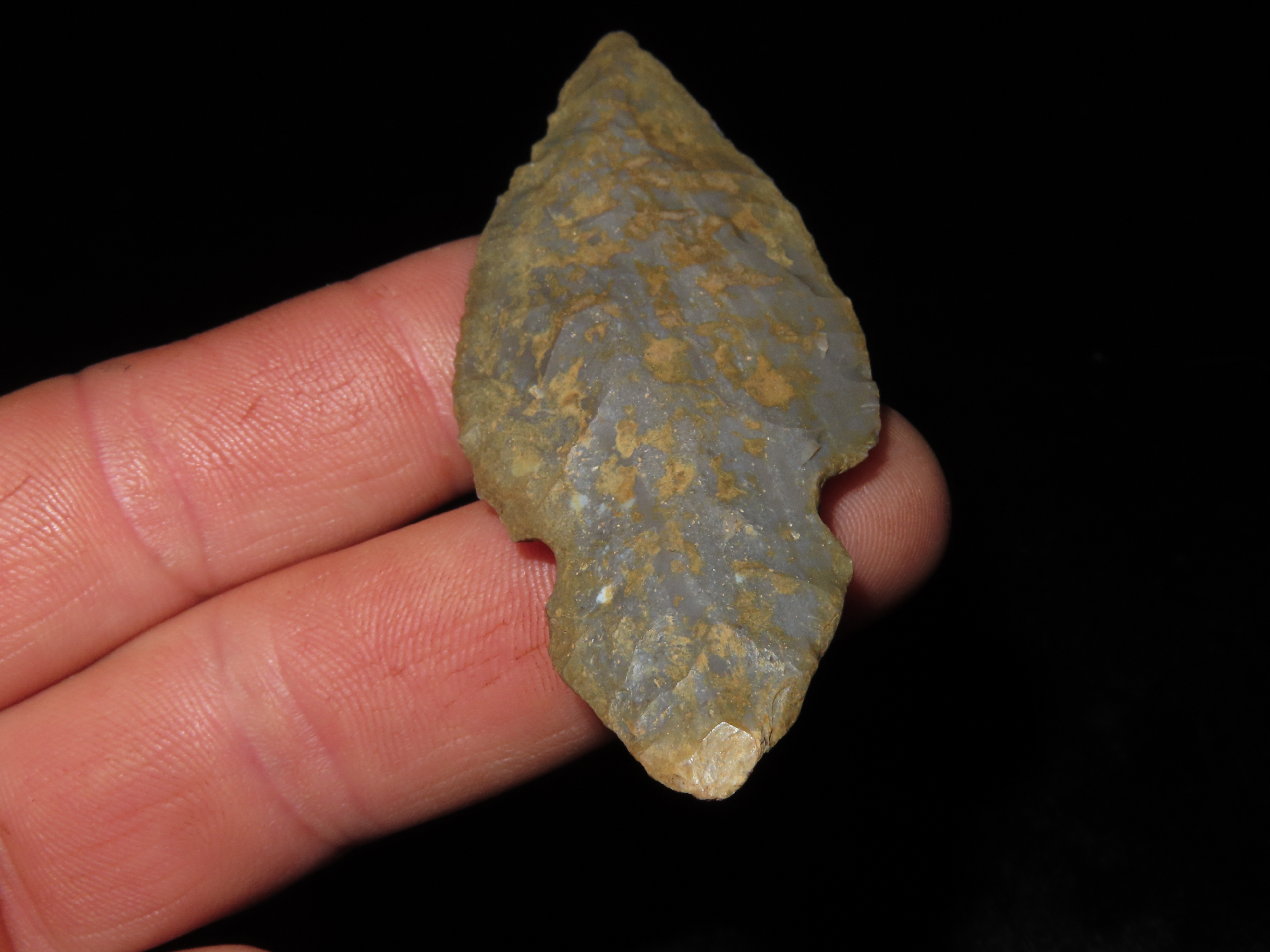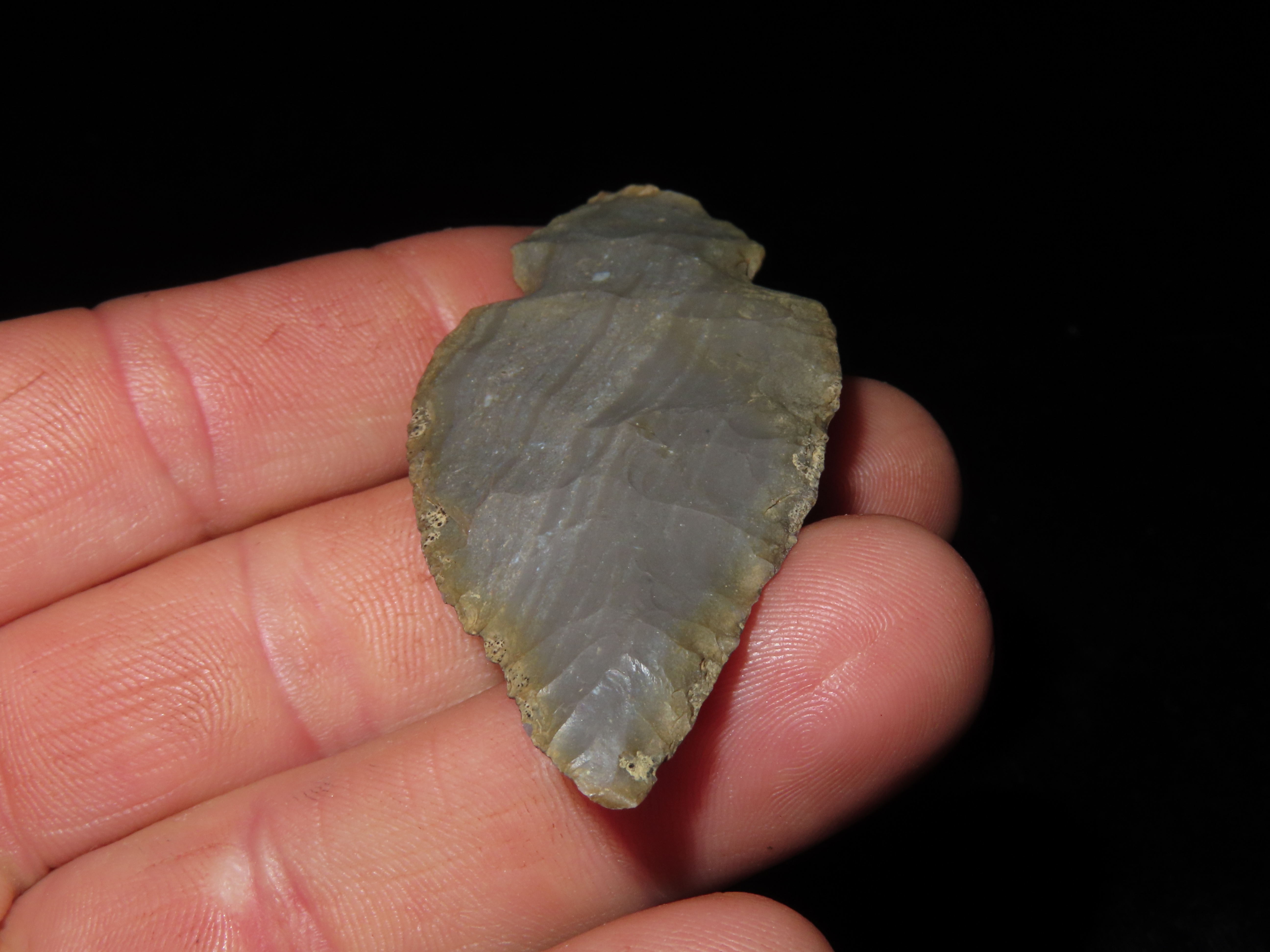 3 1/16″ TURKEYTAIL FROM BRECKENRIDGE COUNTY KENTUCKY, NICE CLASSIC EXAMPLE, STRIPED HORNSTONE, INDIAN ARROWHEAD, ARTIFACT