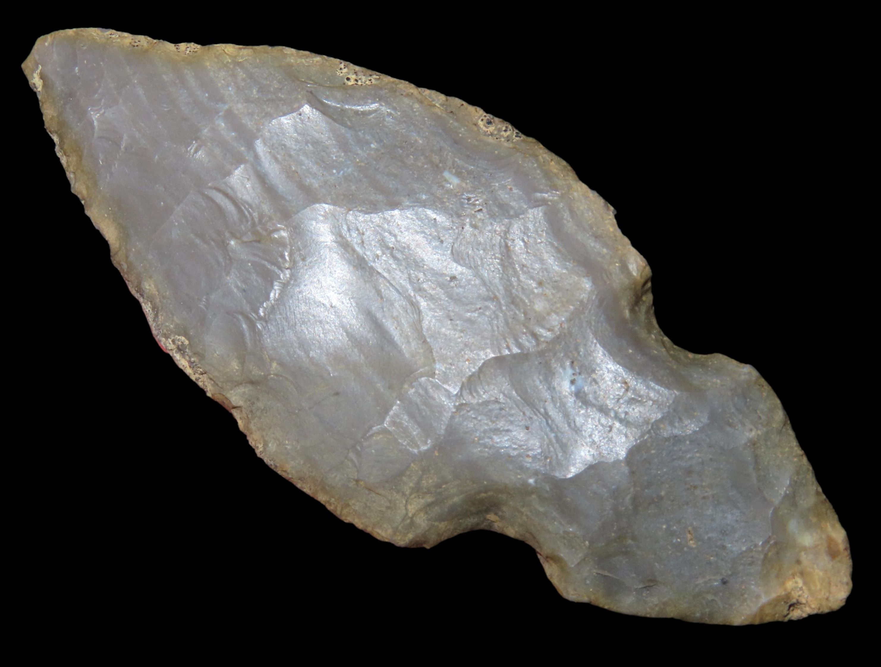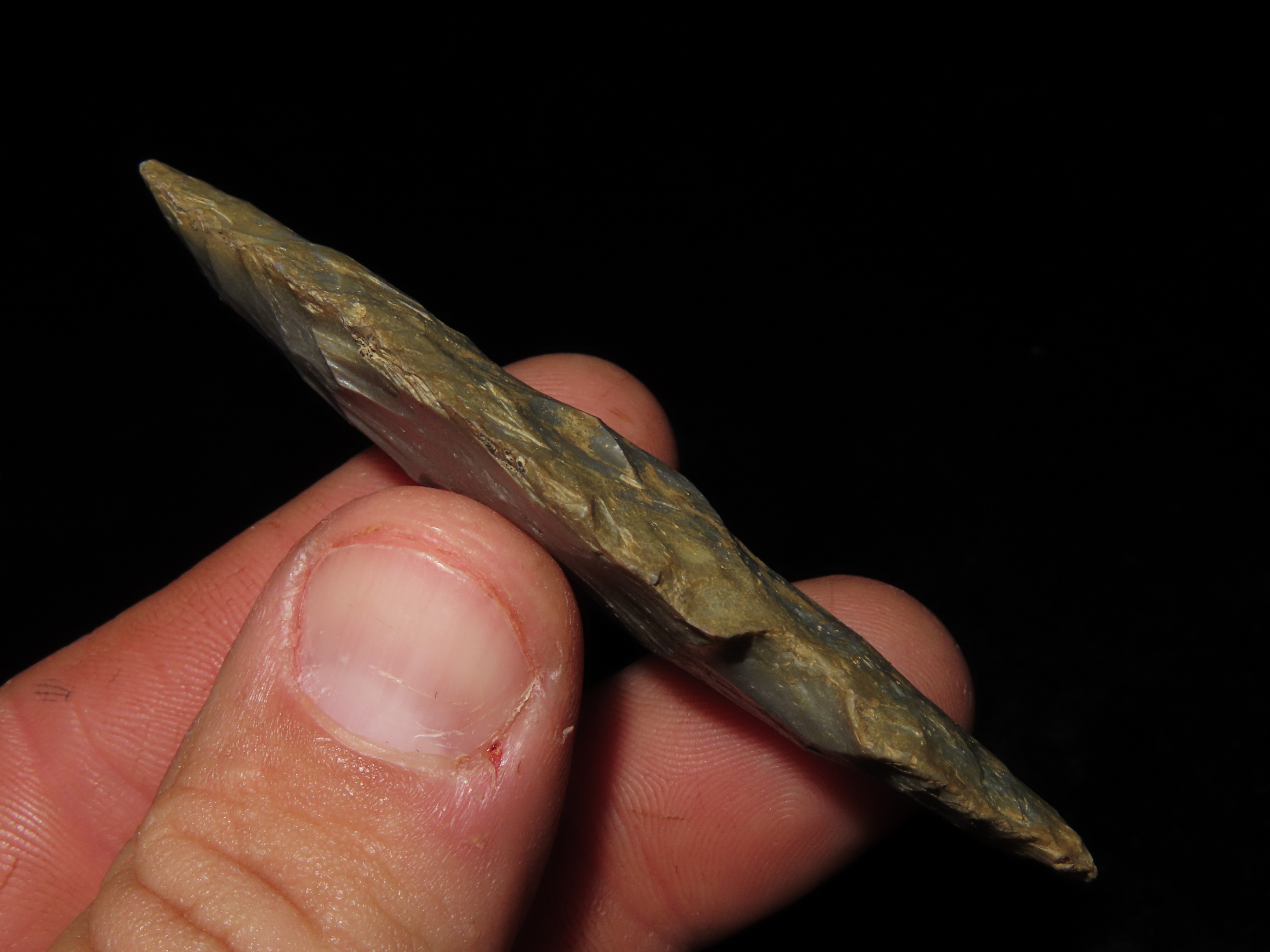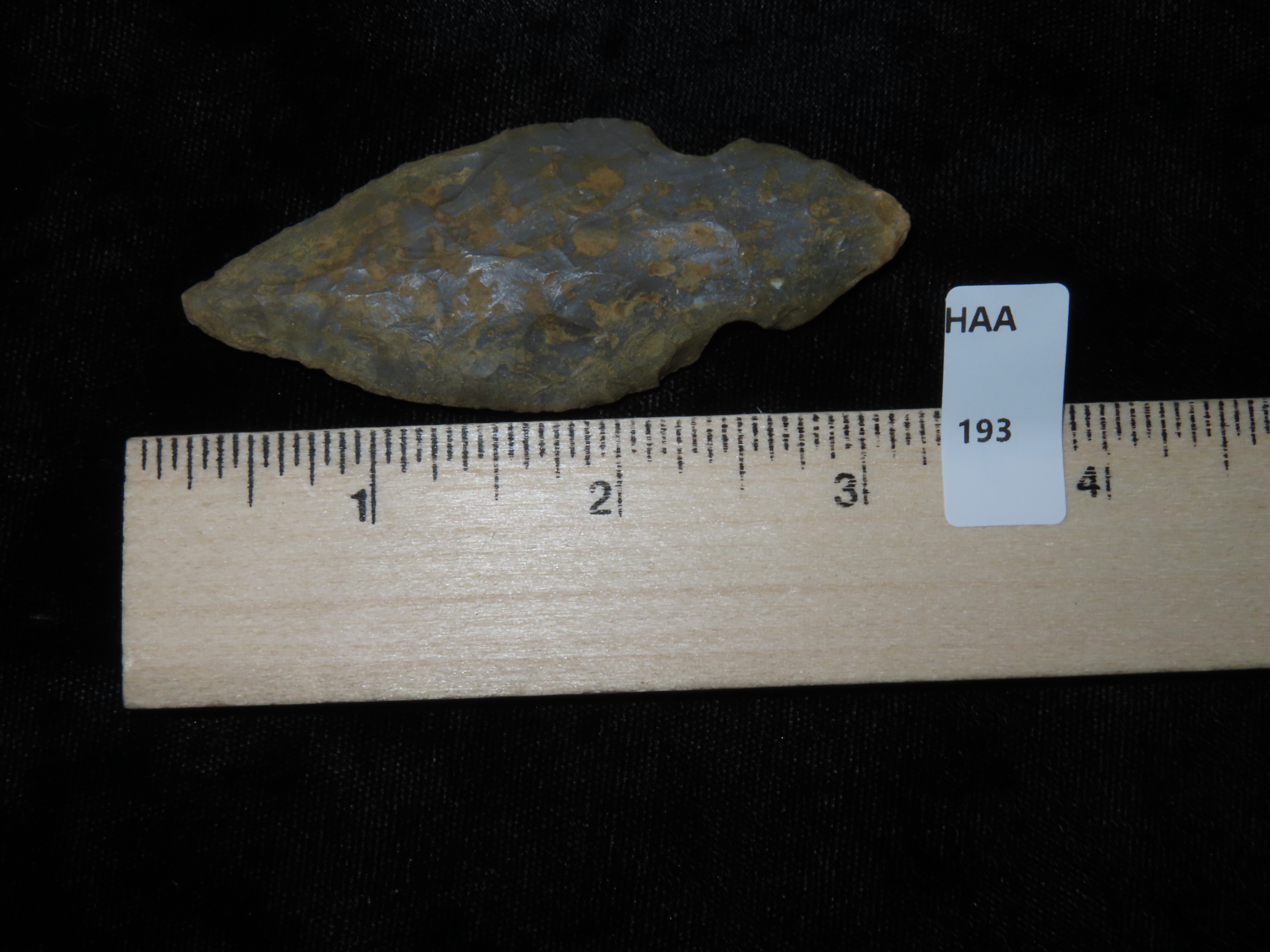 3 1/16″ TURKEYTAIL FROM BRECKENRIDGE COUNTY KENTUCKY, NICE CLASSIC EXAMPLE, STRIPED HORNSTONE, INDIAN ARROWHEAD, ARTIFACT