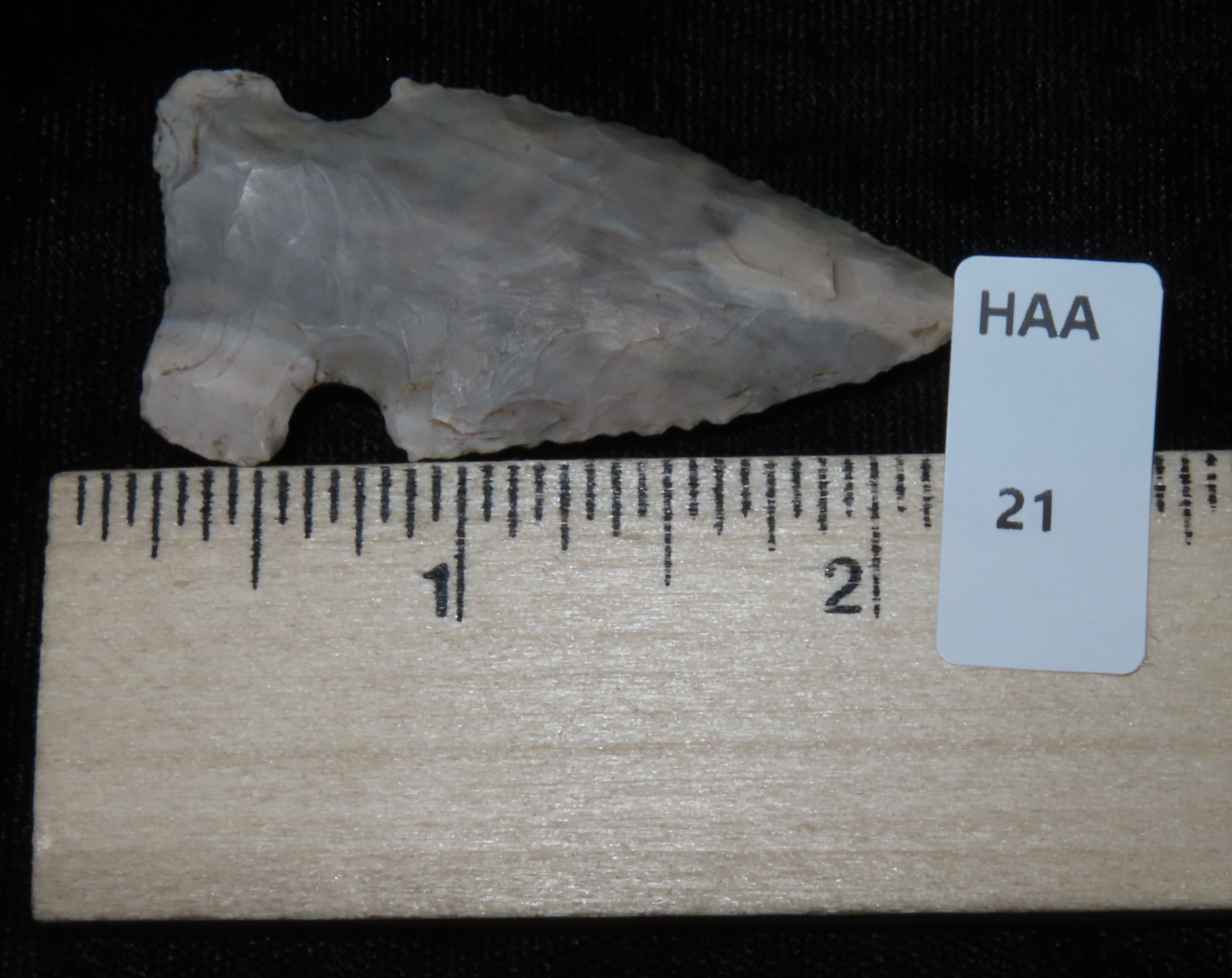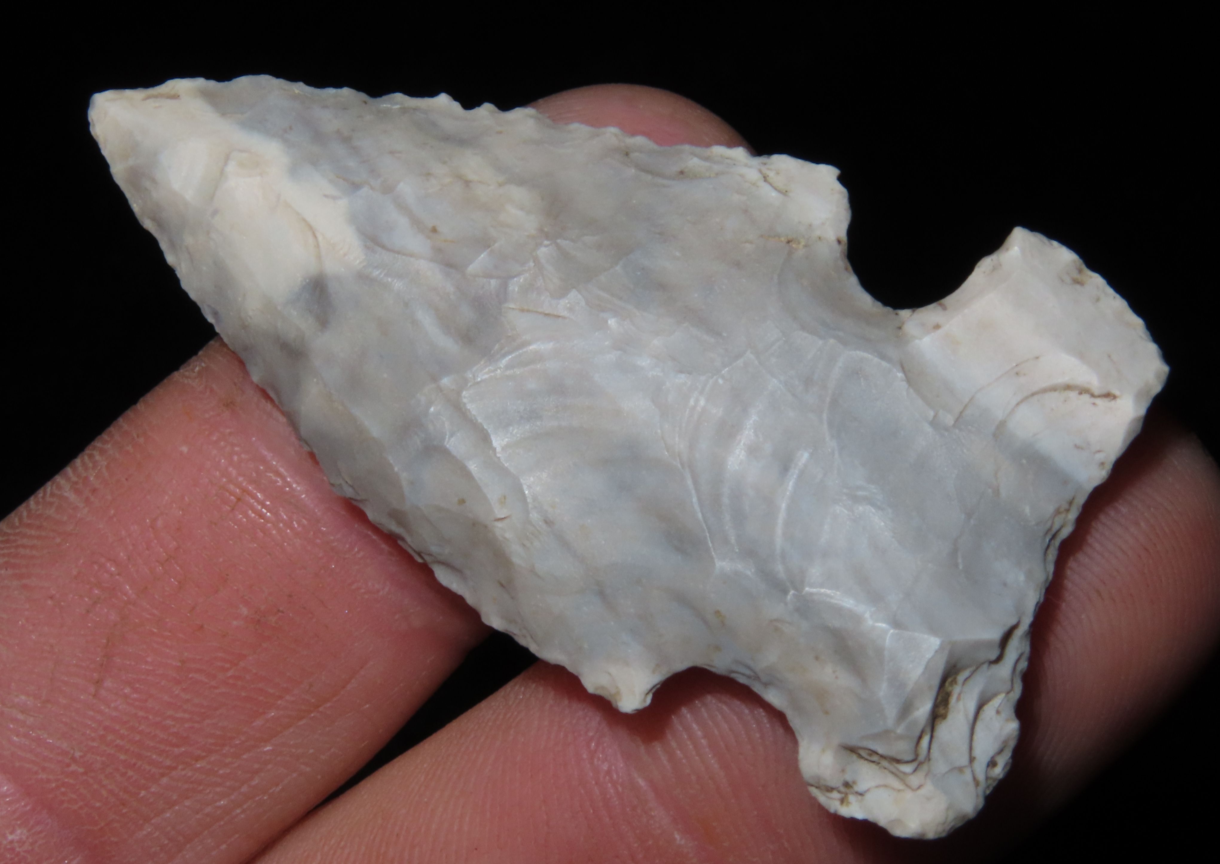 2 1/8″ HOWARD COUNTY / OSCEOLA FOUND IN COOPER COUNTY MISSOURI, REALLY WELL FLAKED EXAMPLE WITH NICE COLOR, INDIAN ARROWHEAD, ARTIFACT