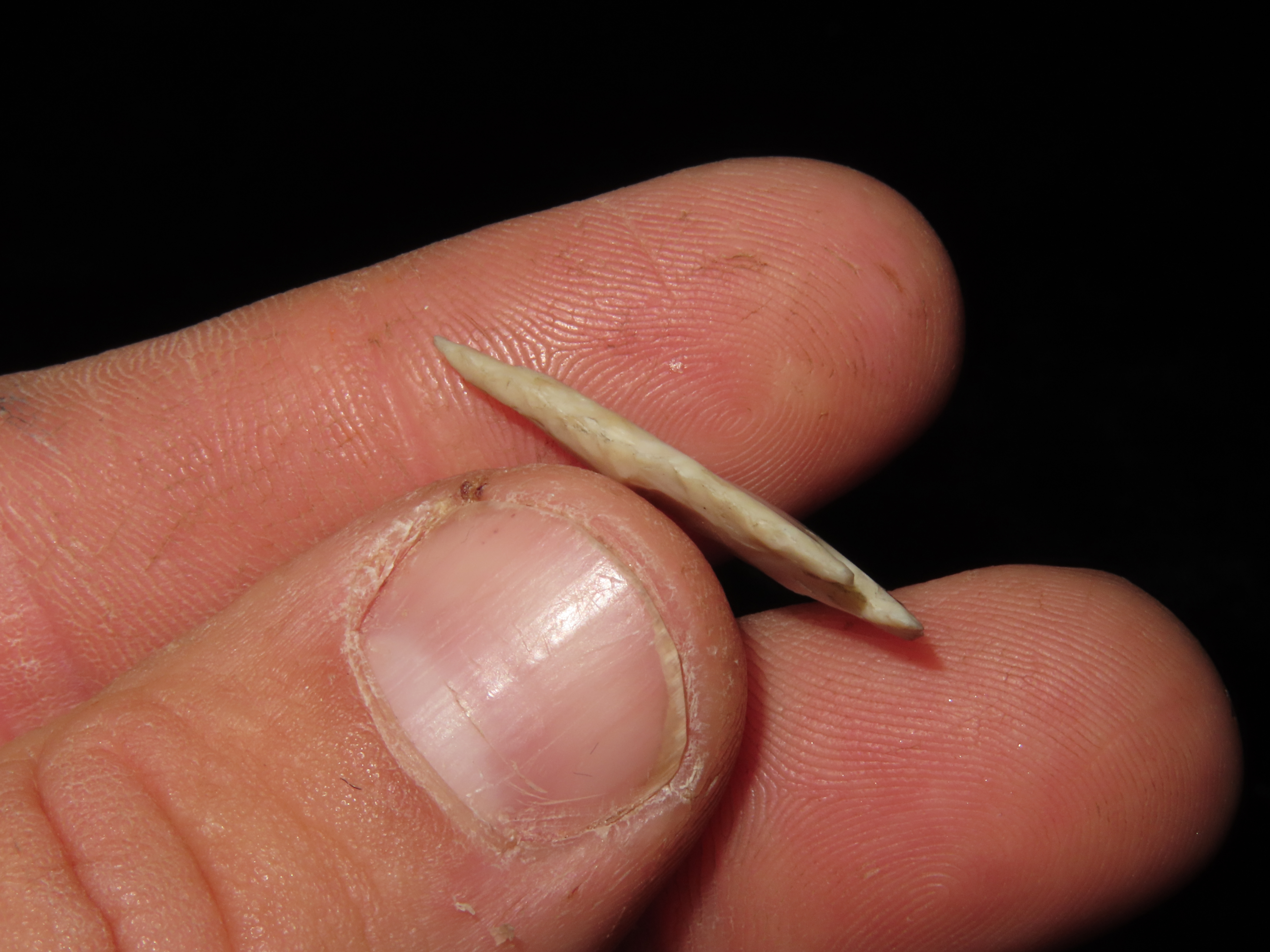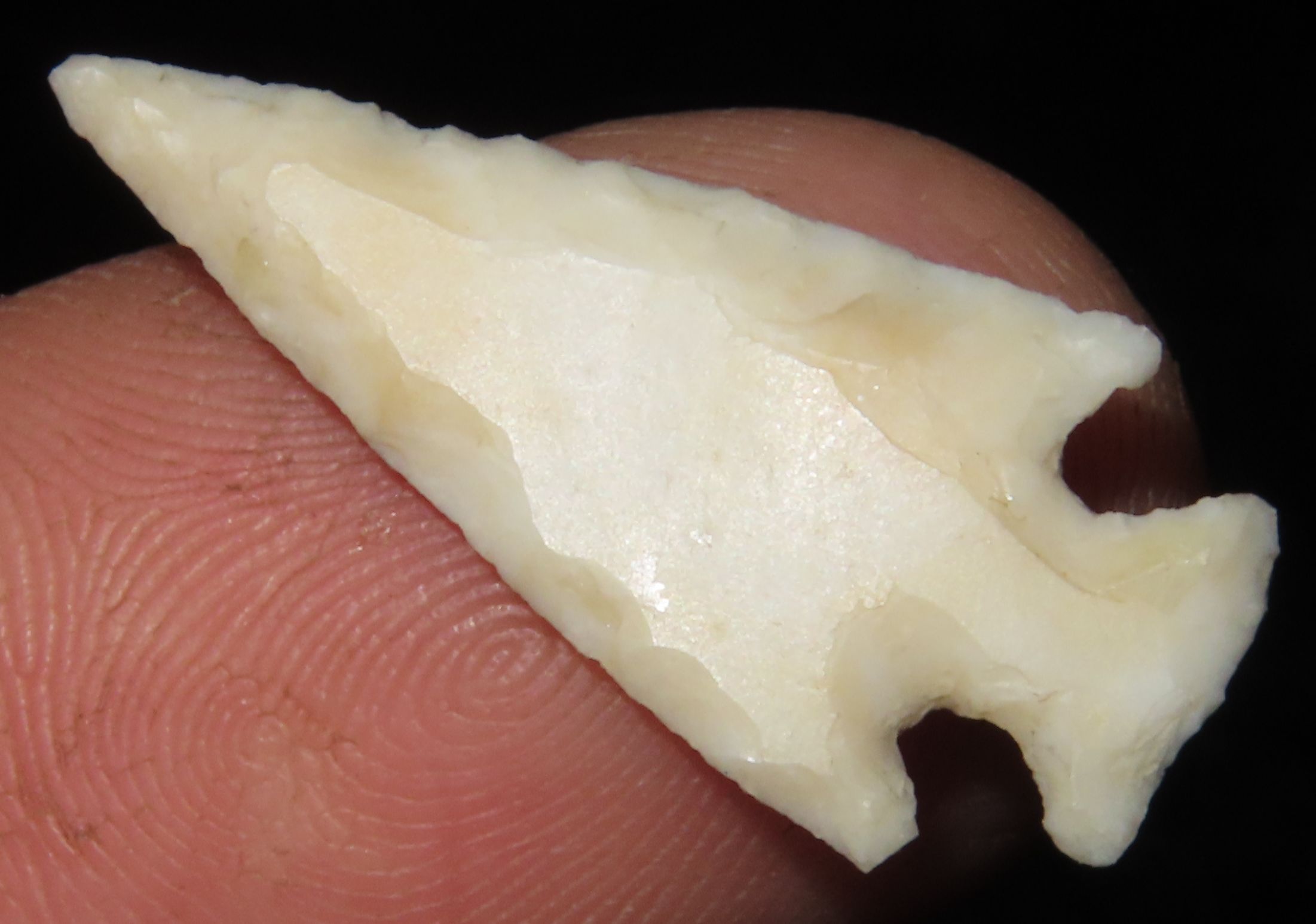 1 1/16″ INCREDIBLE SCALLORN BIRD POINT FOUND IN JERSEY COUNTY ILLINOIS, JUST AN AMAZING EXAMPLE, VERY THIN, HIGHLY TRANSLUCENT, NEEDLE TIP