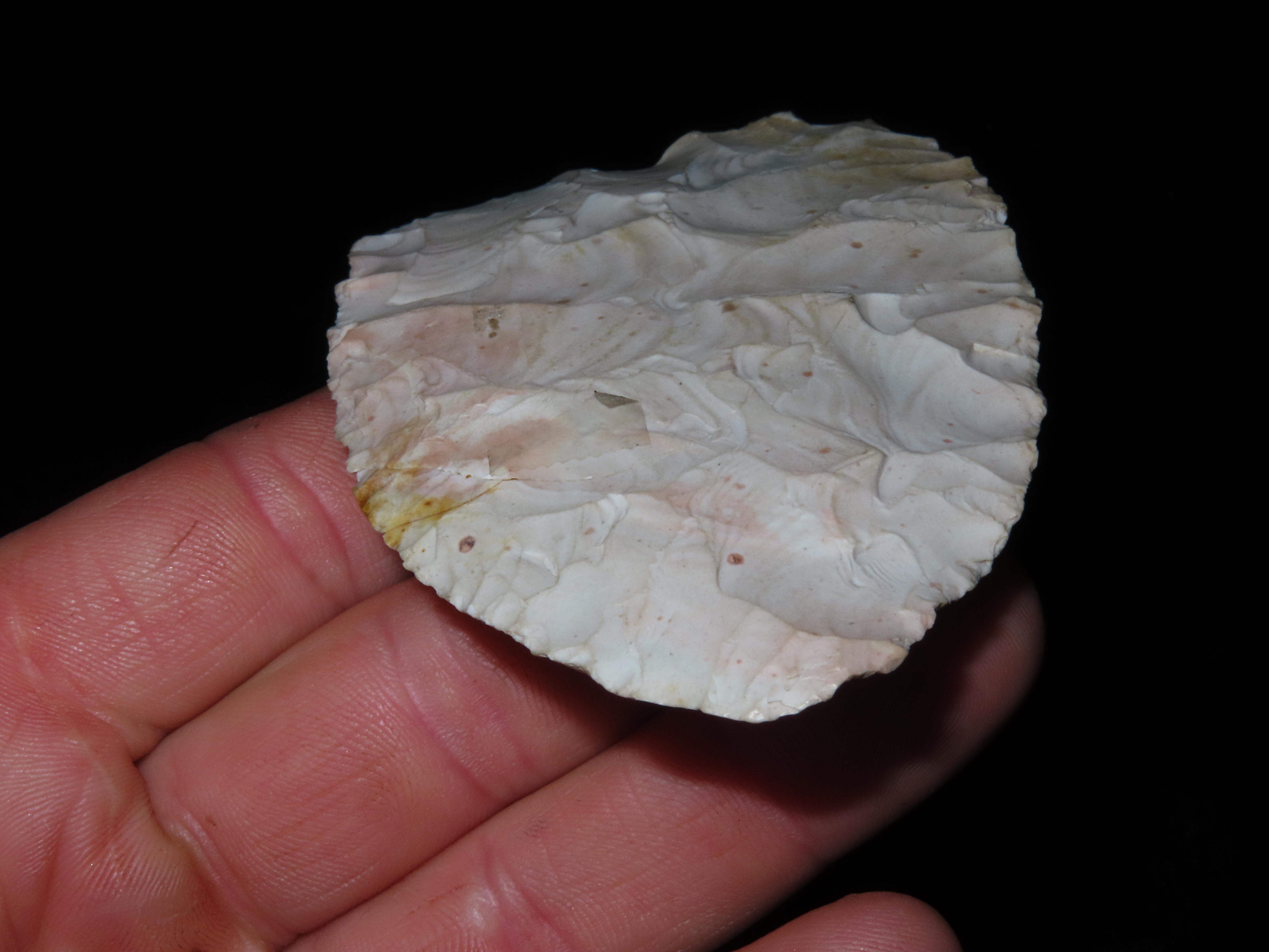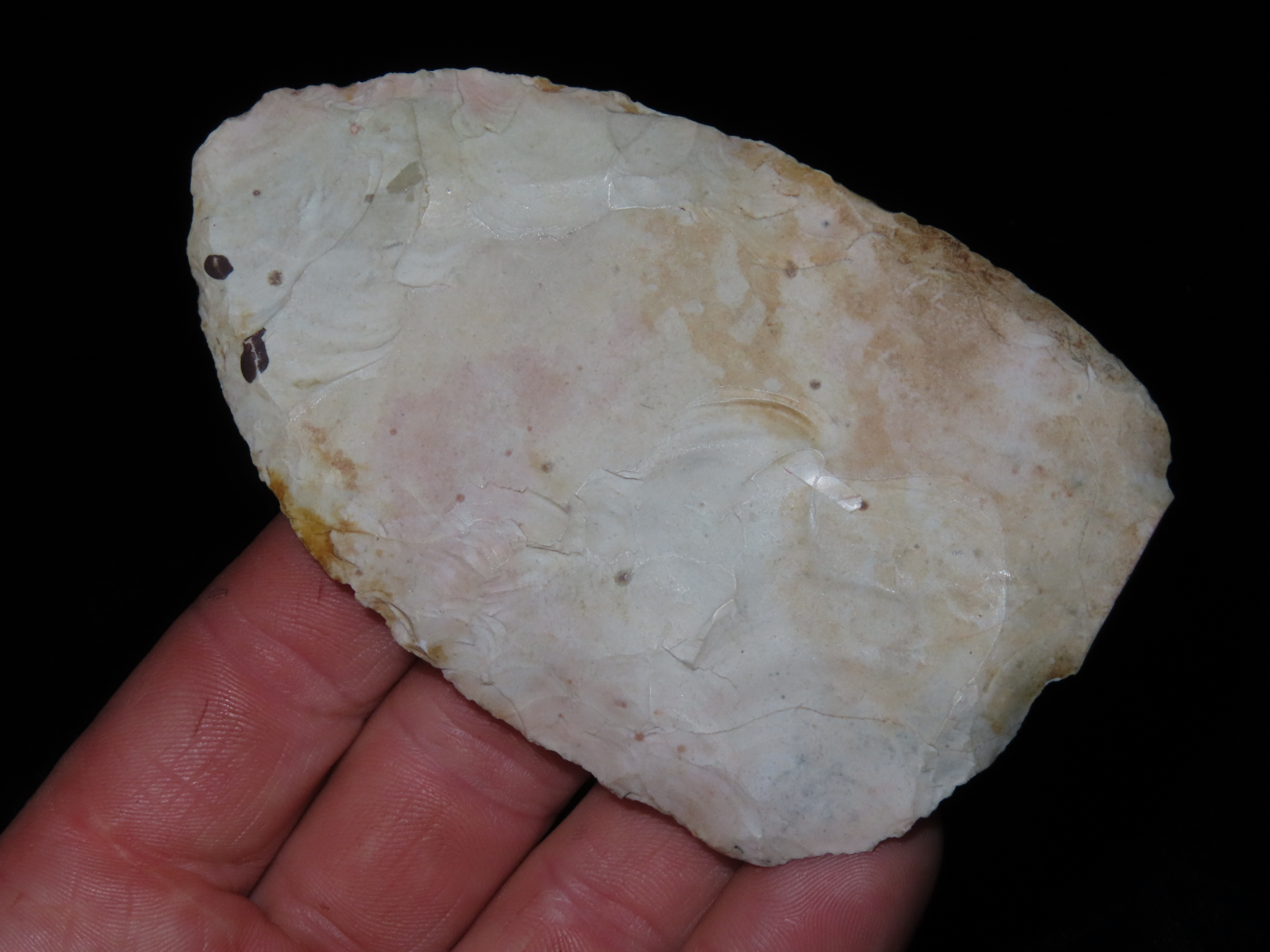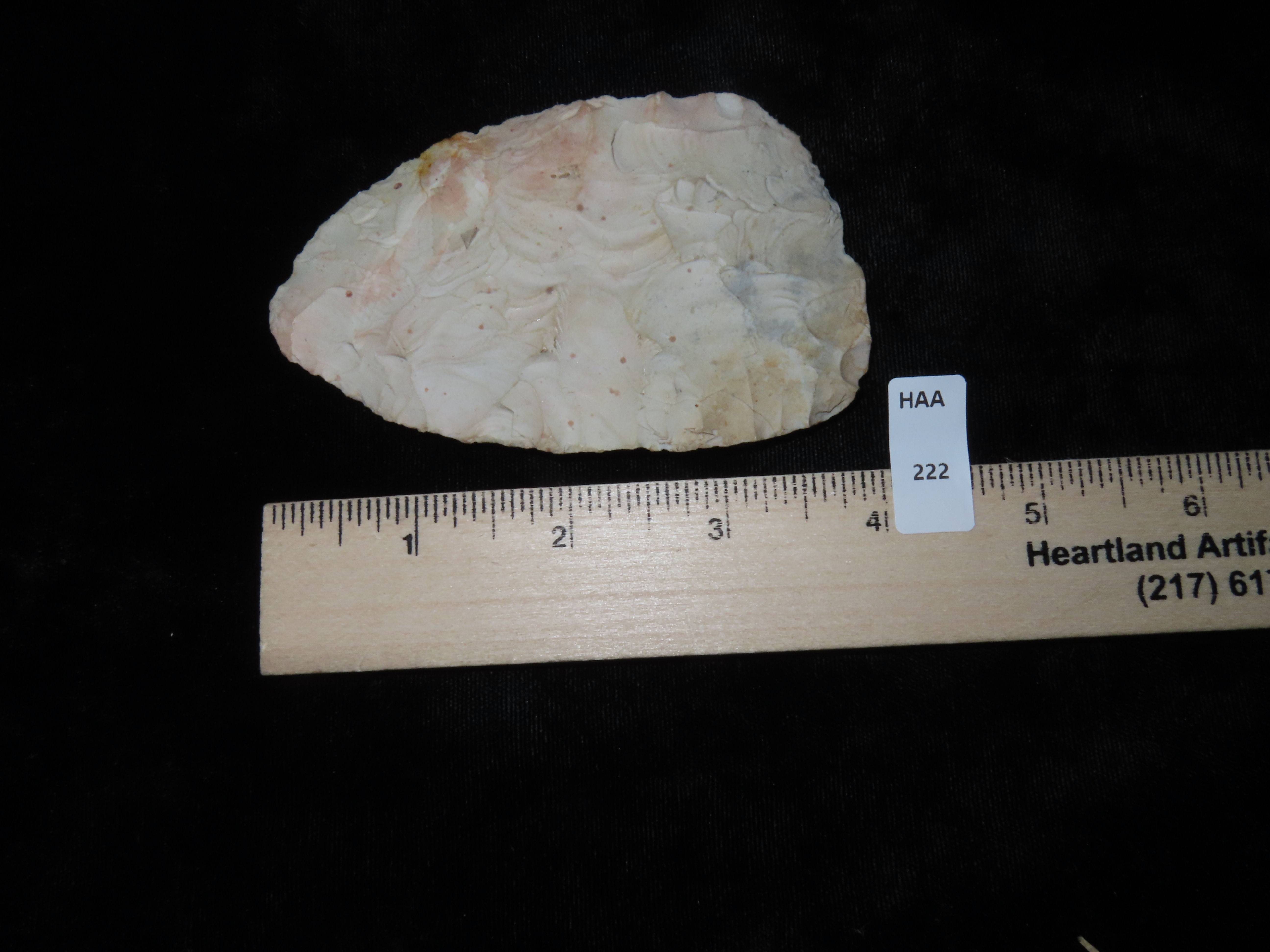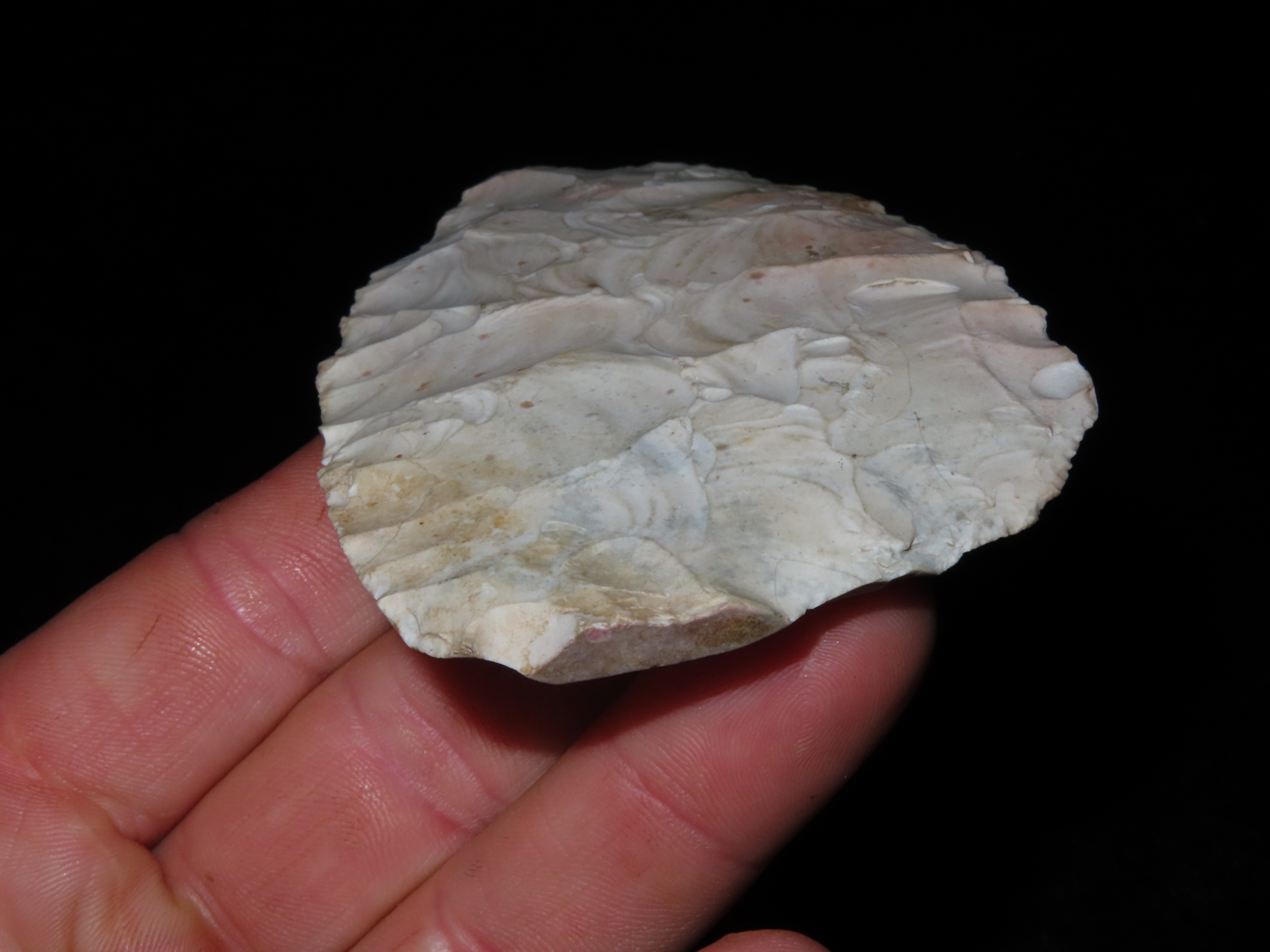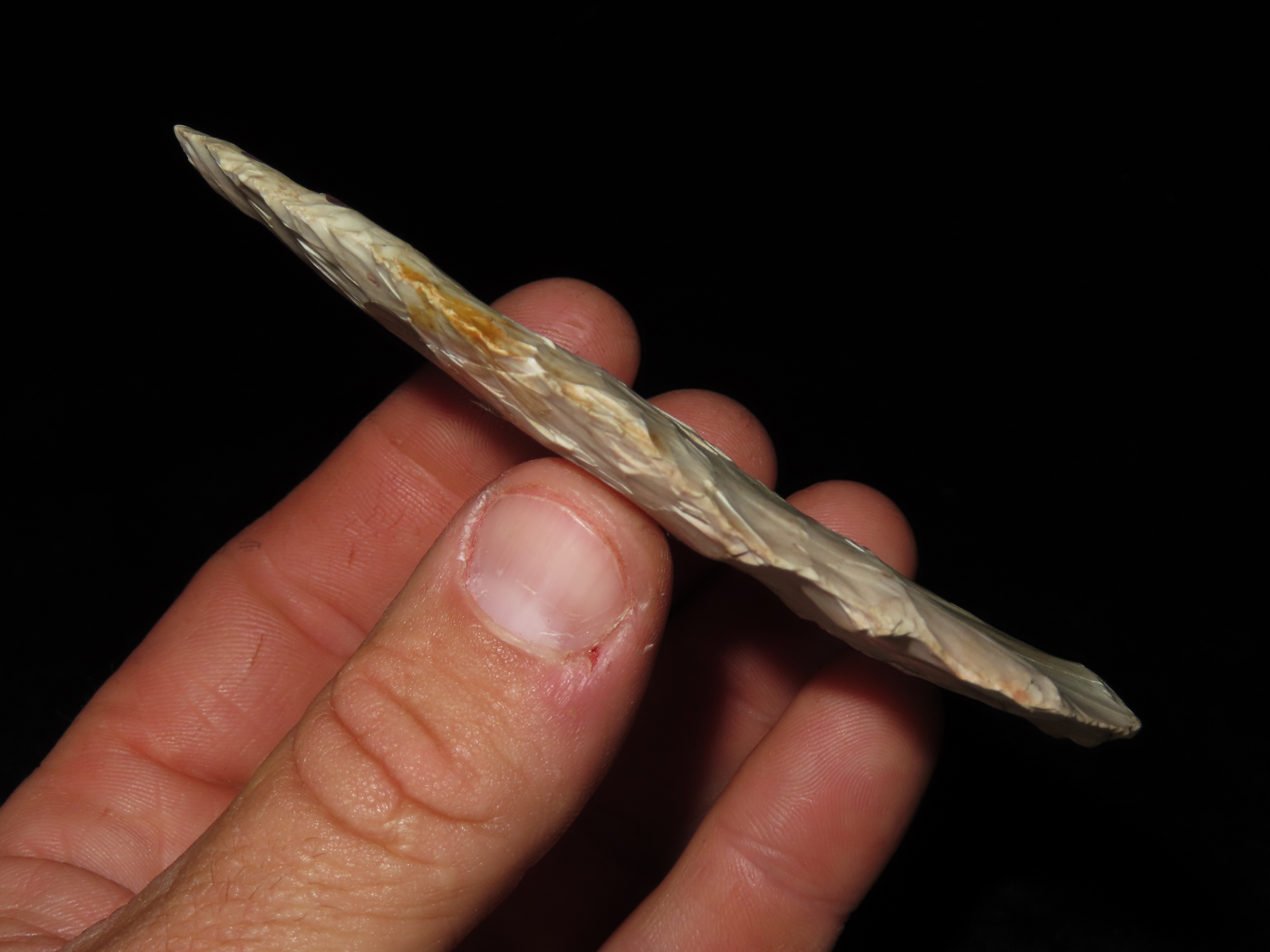 4″ VERY THIN HOPEWELL NORTH BLADE, BROWN COUNTY ILLINOIS, GREAT FLAKING AND NO BRAINER PATINA, INDIAN ARROWEHAD, ARTIFACT