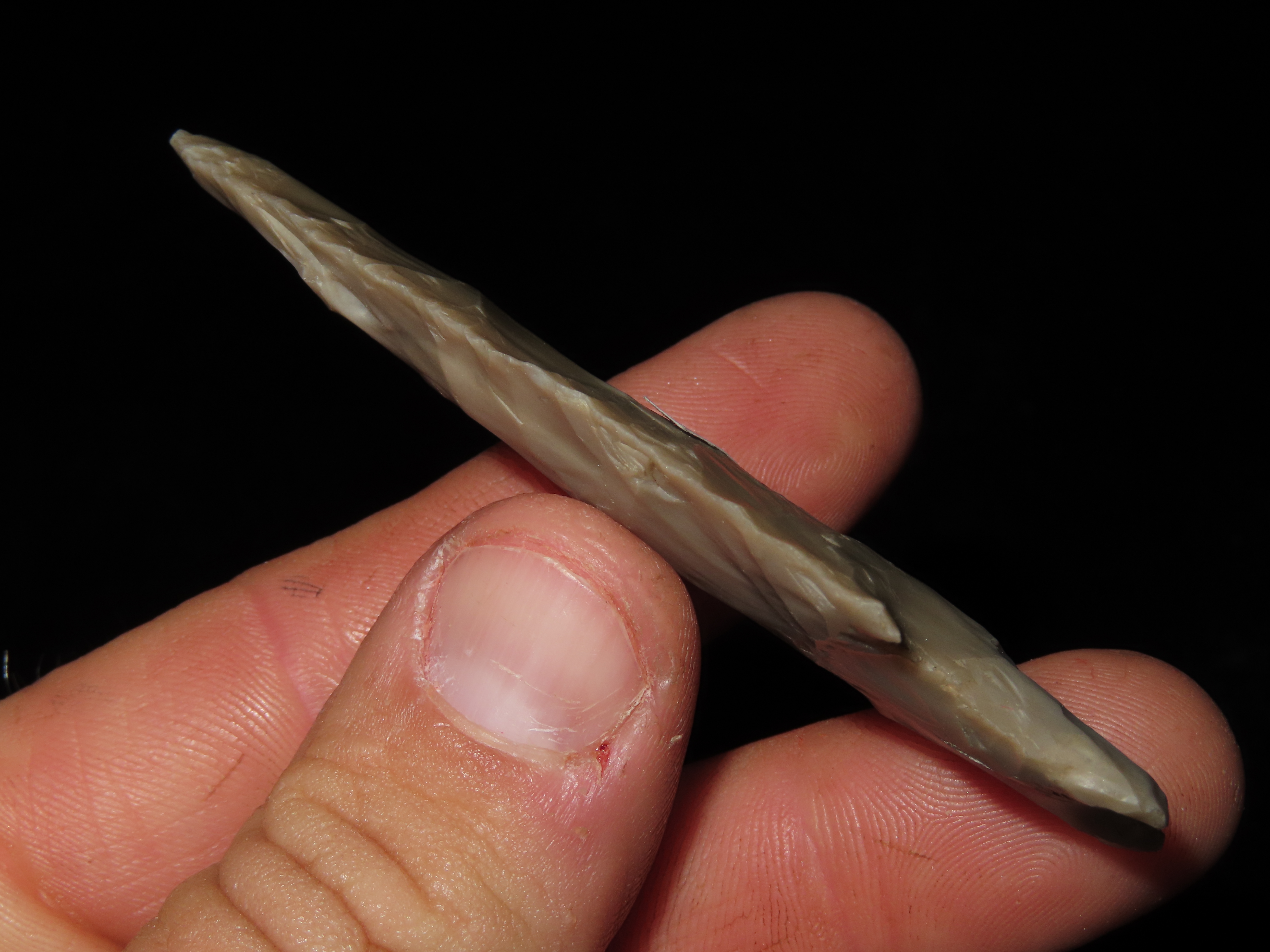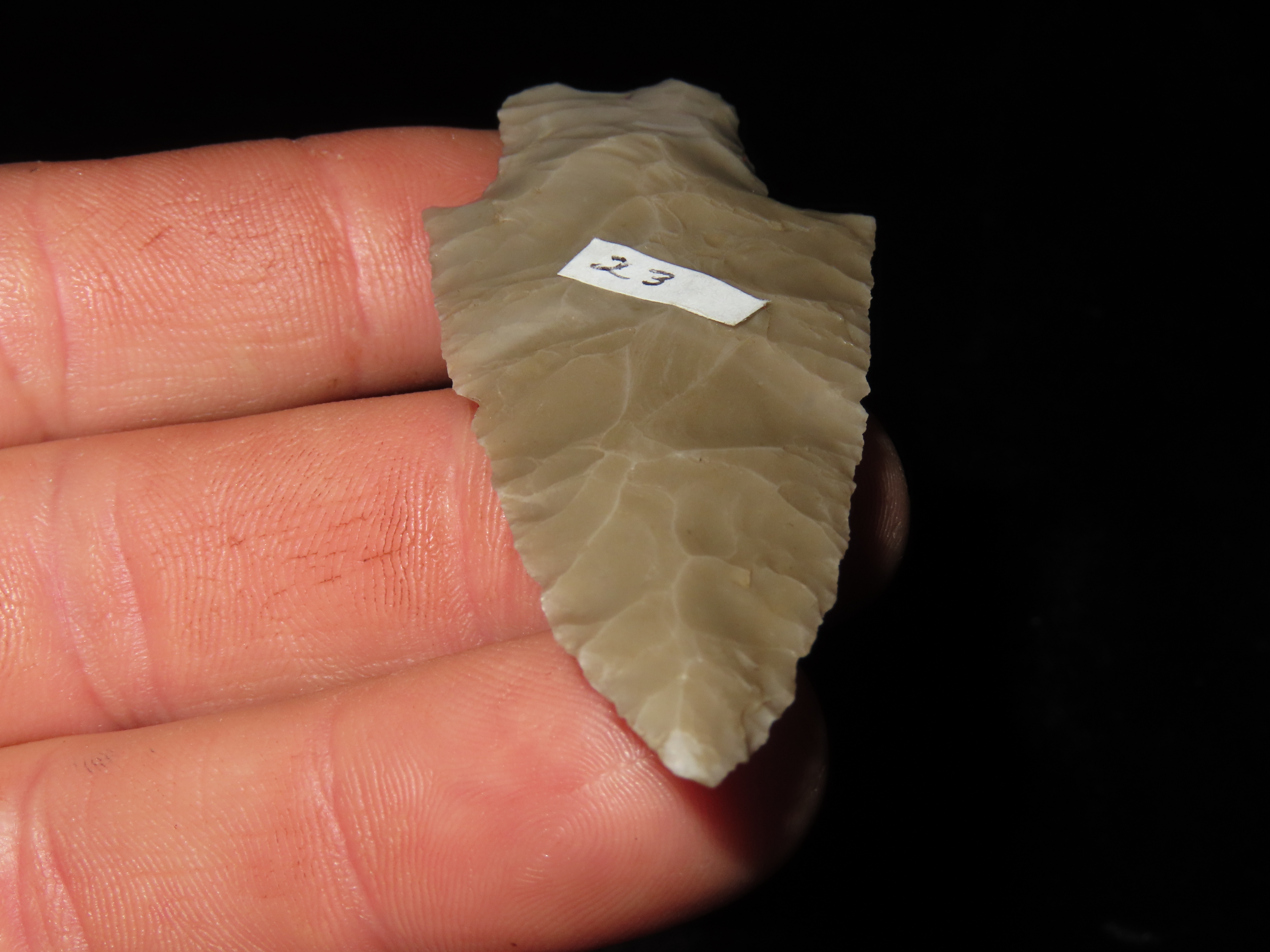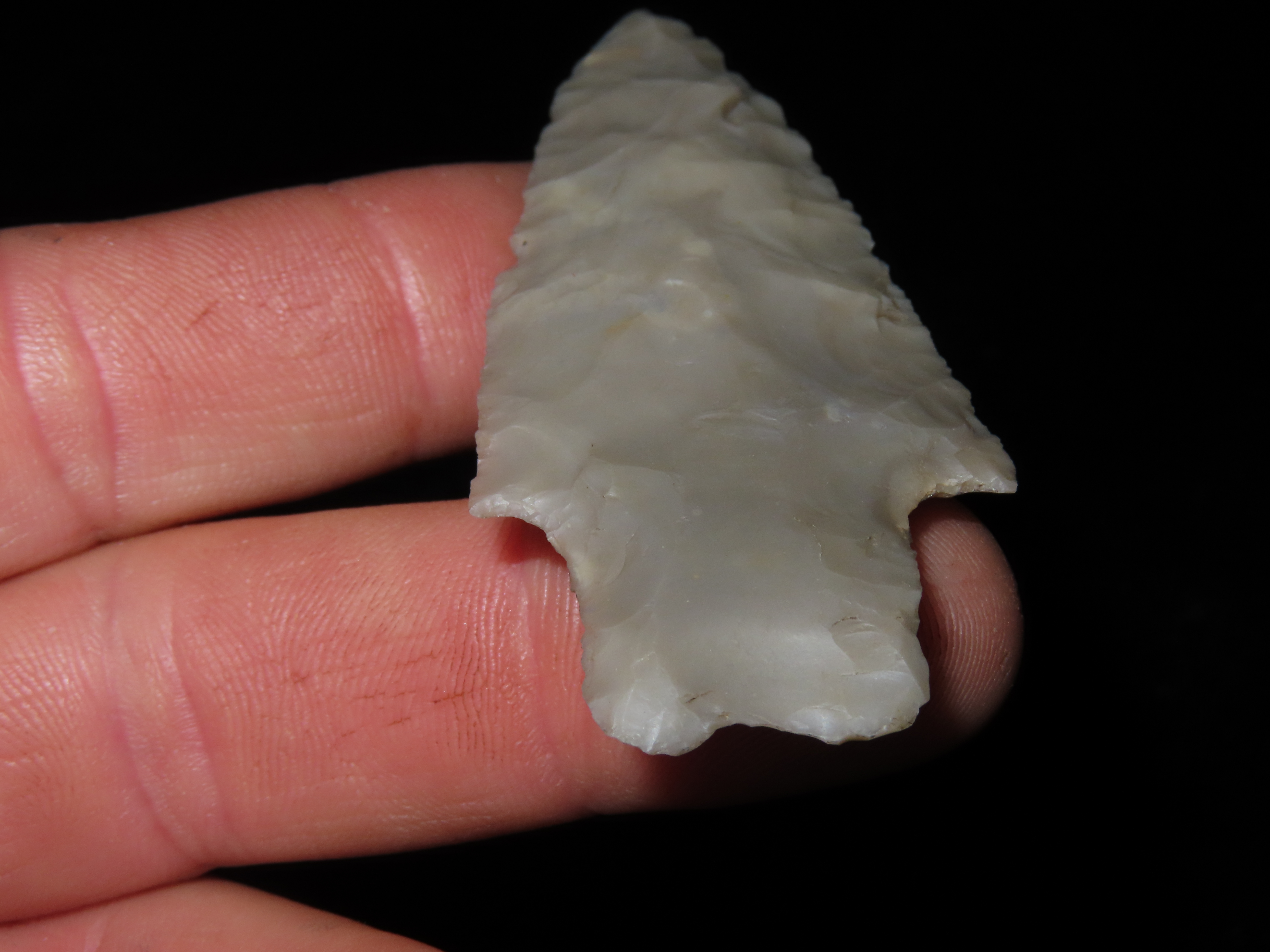 3 1/4" PEDERNALES, BELL COUNTY TEXAS, NICE PERD, HIGHLY TRANSLUCENT & VERY WELL FLAKED EXAMPLE, EX DR. TED RAUCK COLLECTION, INDIAN ARROWHEAD