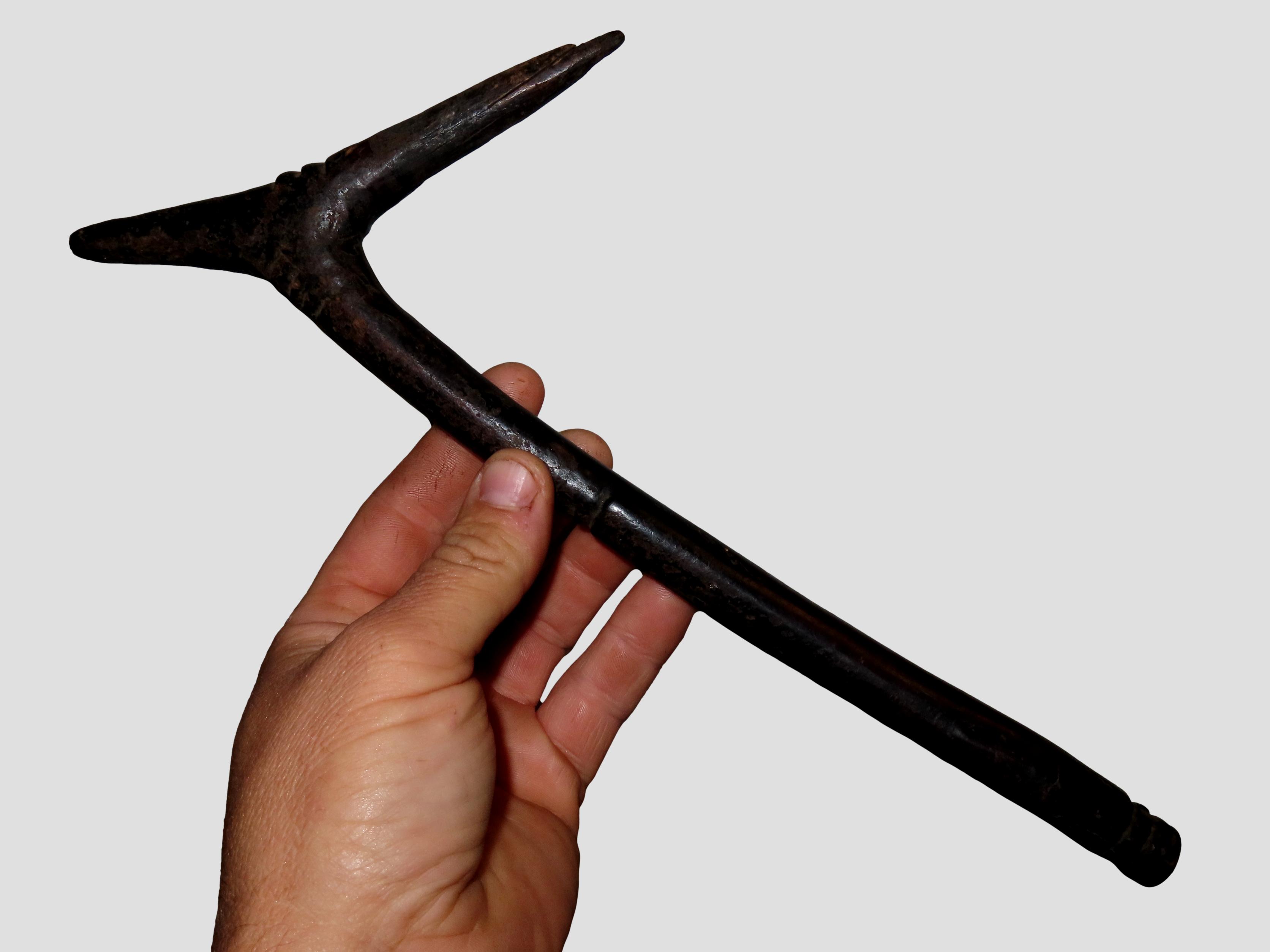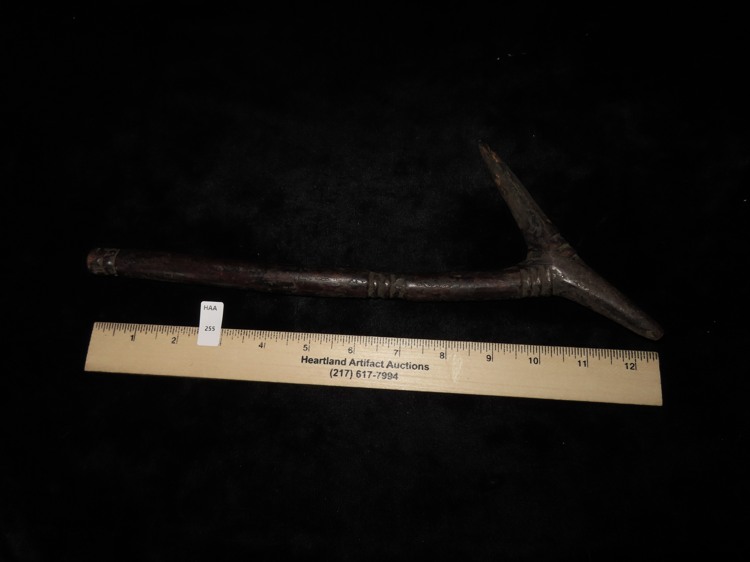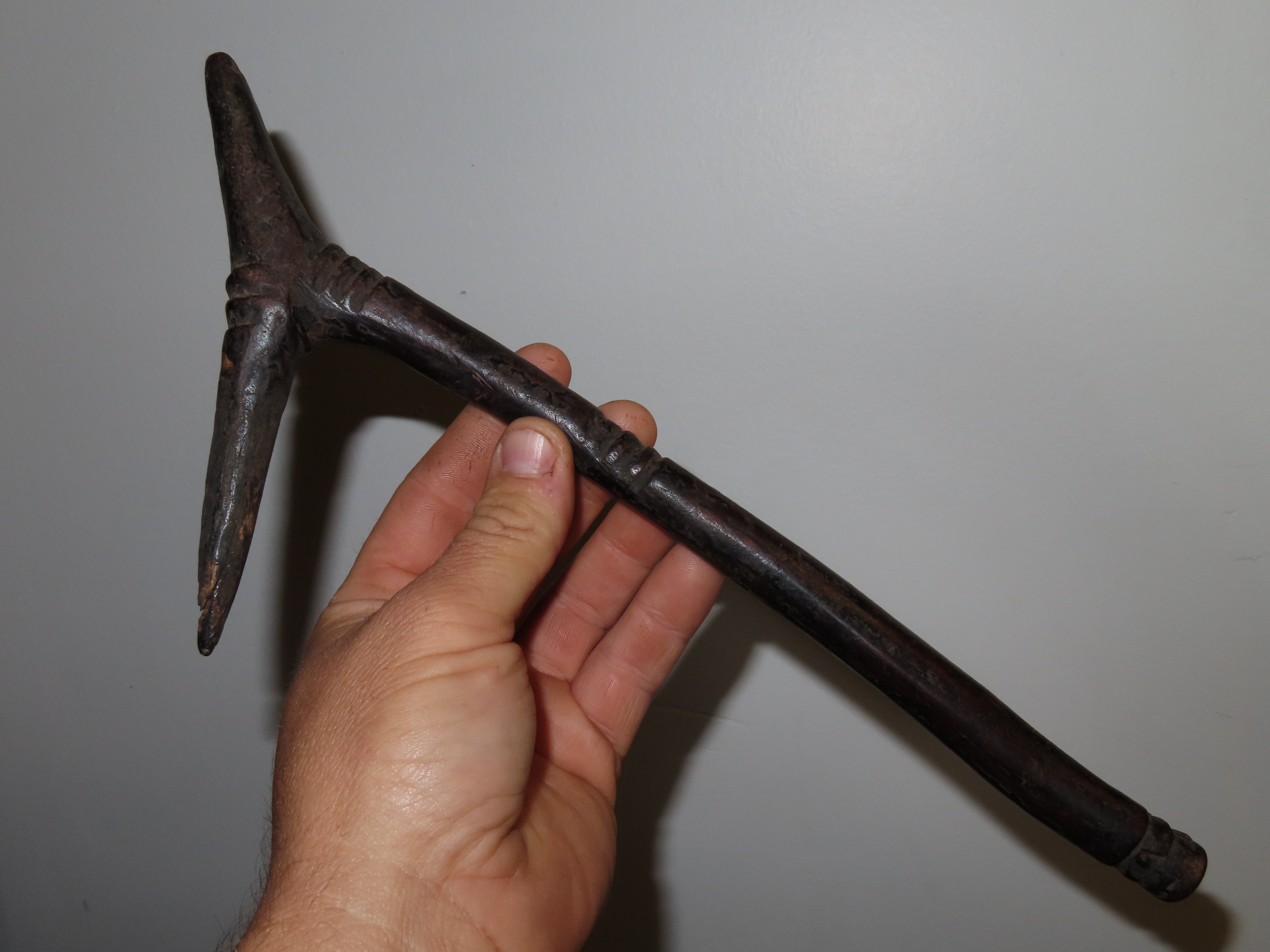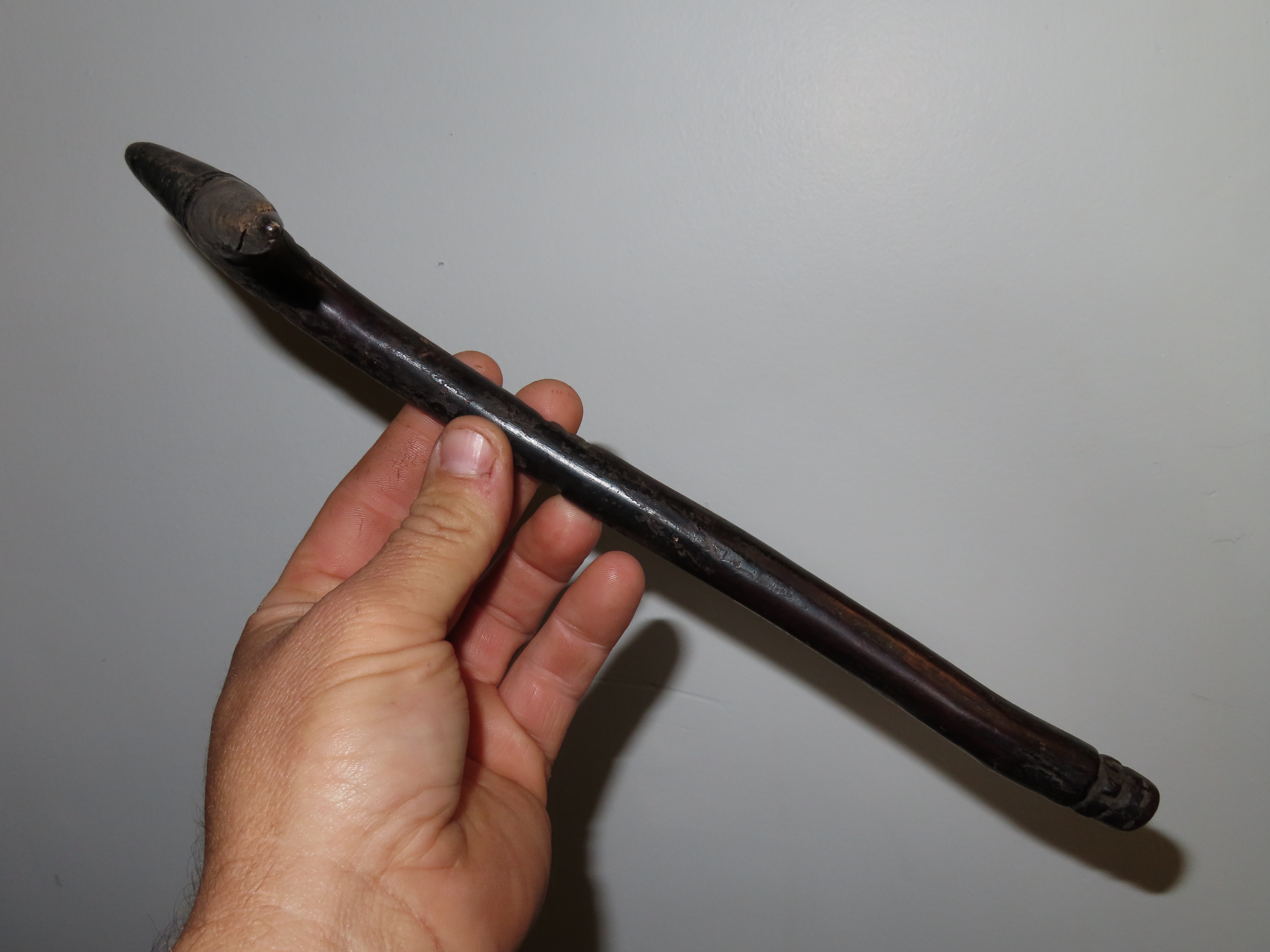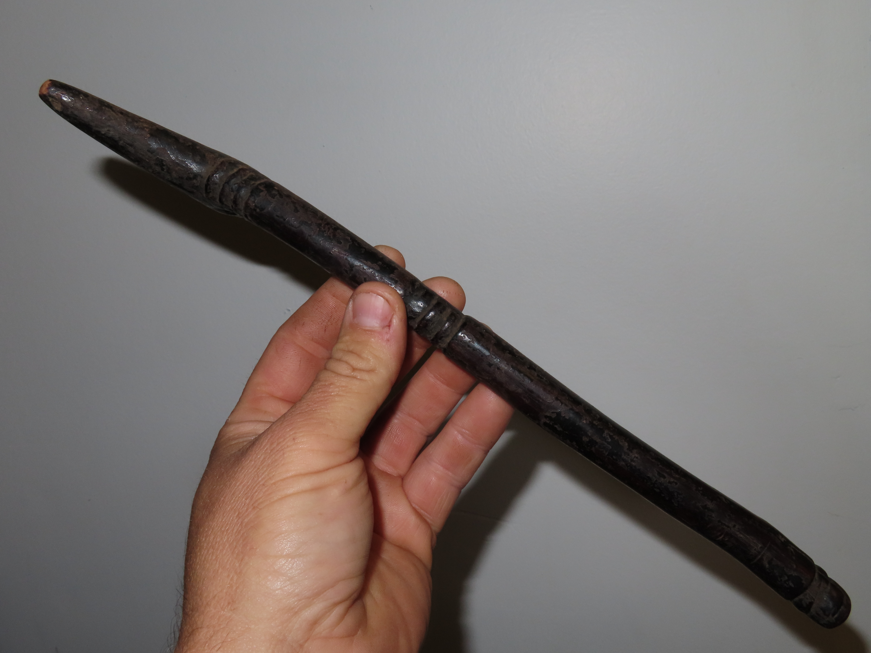 12 5/8″ CARVED WOODEN MACE, SCEPTRE, STAFF, NORTHWEST COAST, DEEP RICH PATINA & GREAT USE / HANDLING WEAR, EX DR TED RAUCK COLLECTION