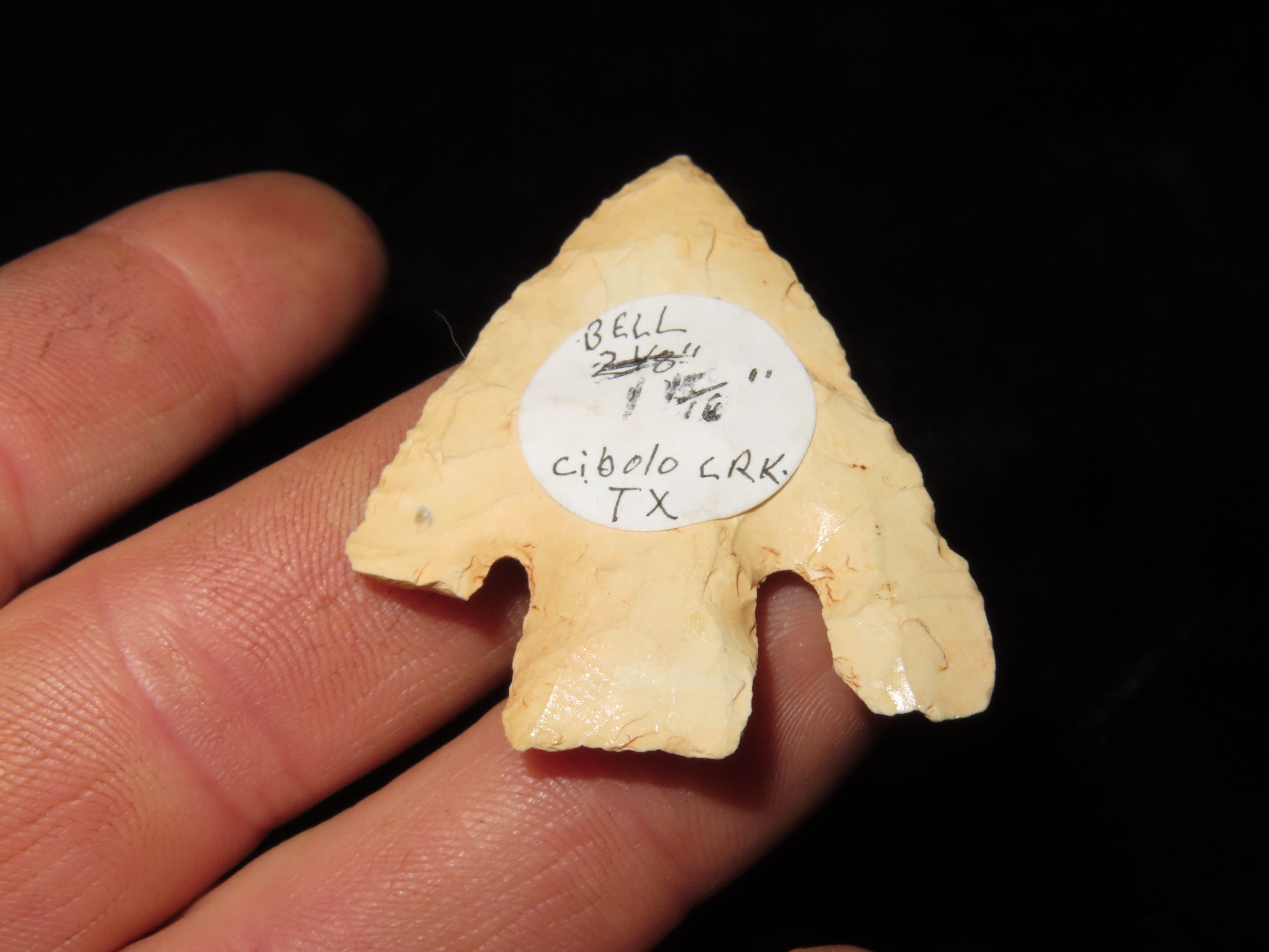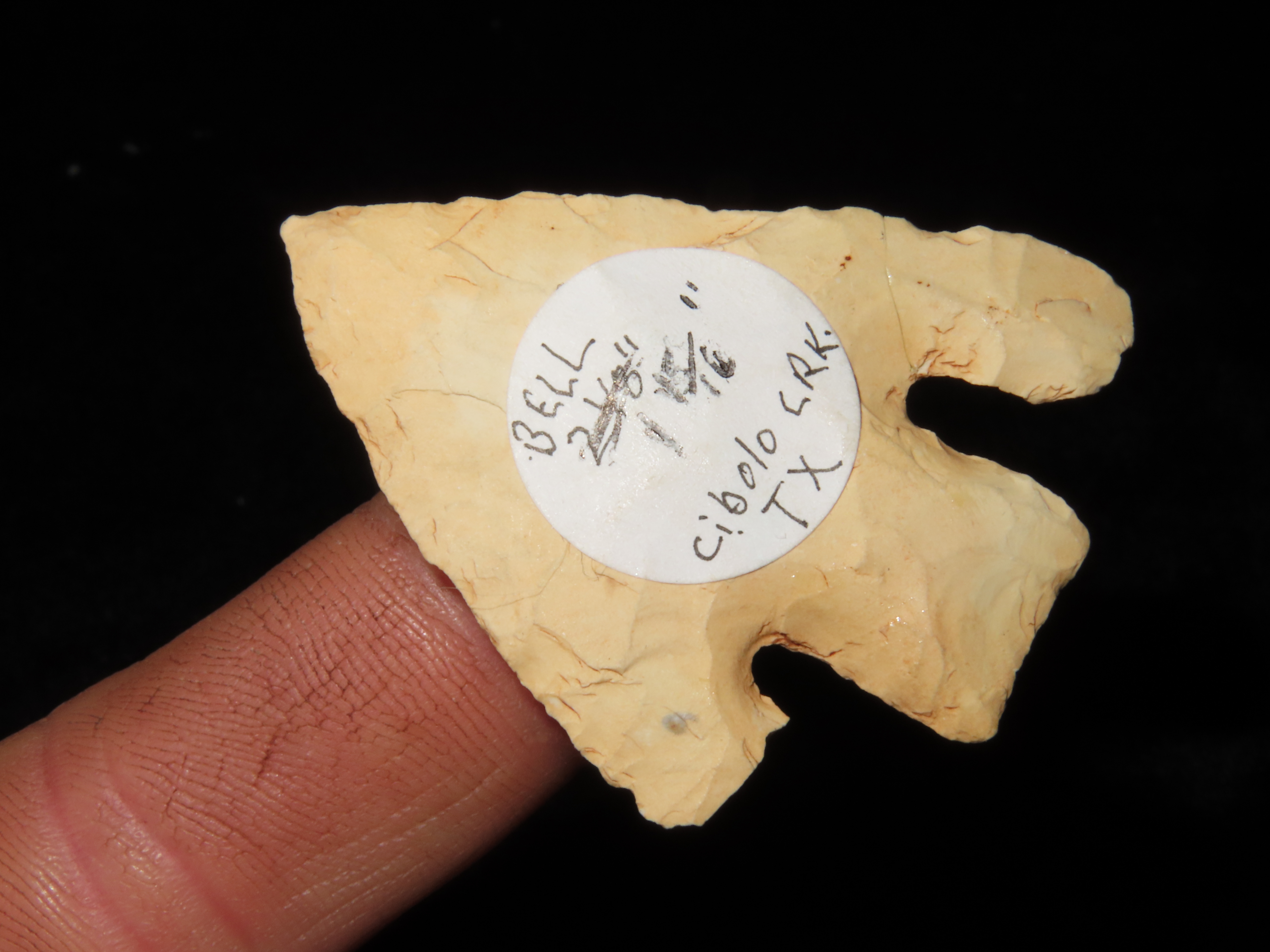 1 15/16″ ANDICE / BELL, GUADALUPE COUNTY TEXAS, FOUND NEAR CIBOLO CREEK, ONE EAR BROKEN AND GLUED