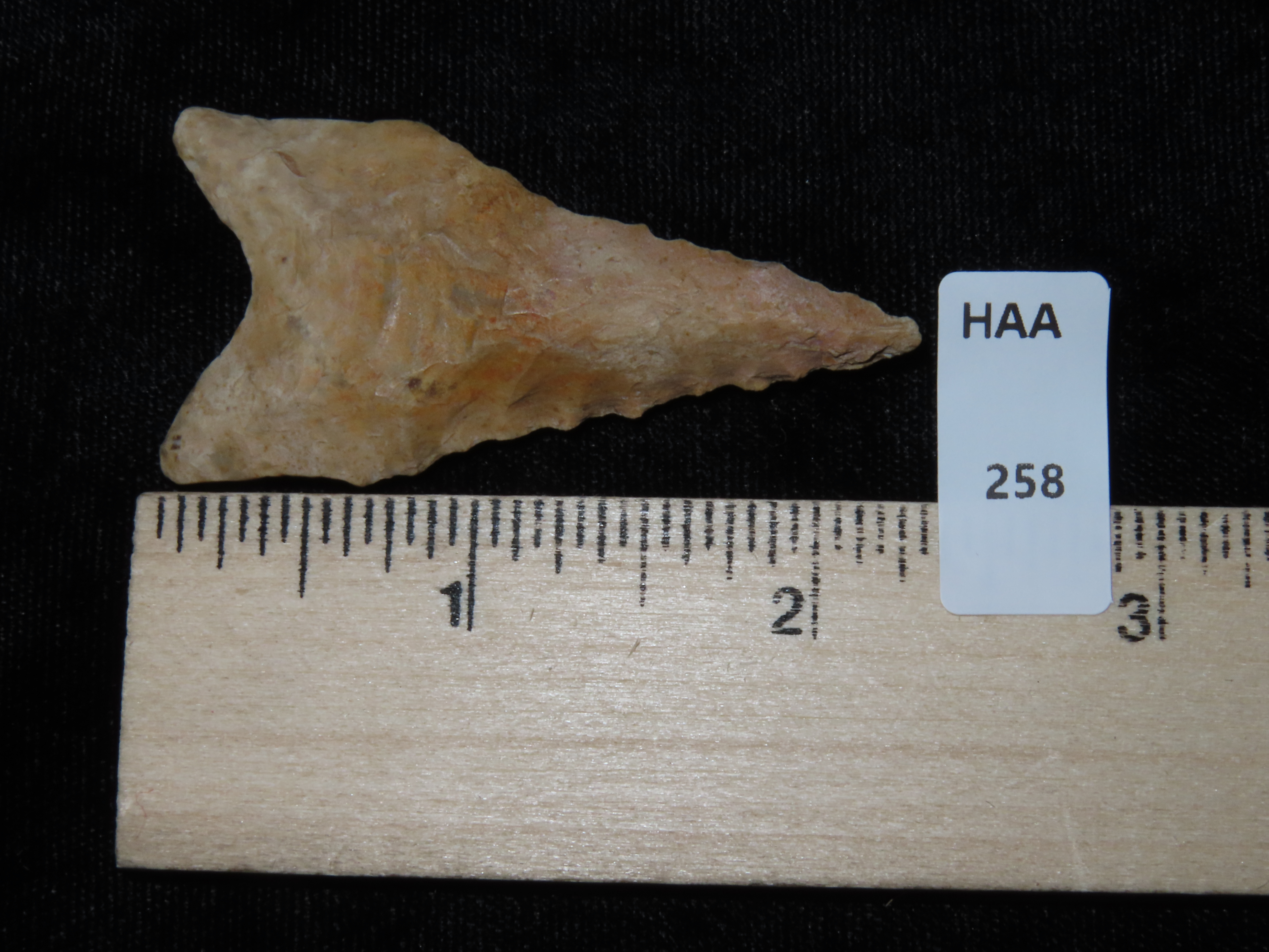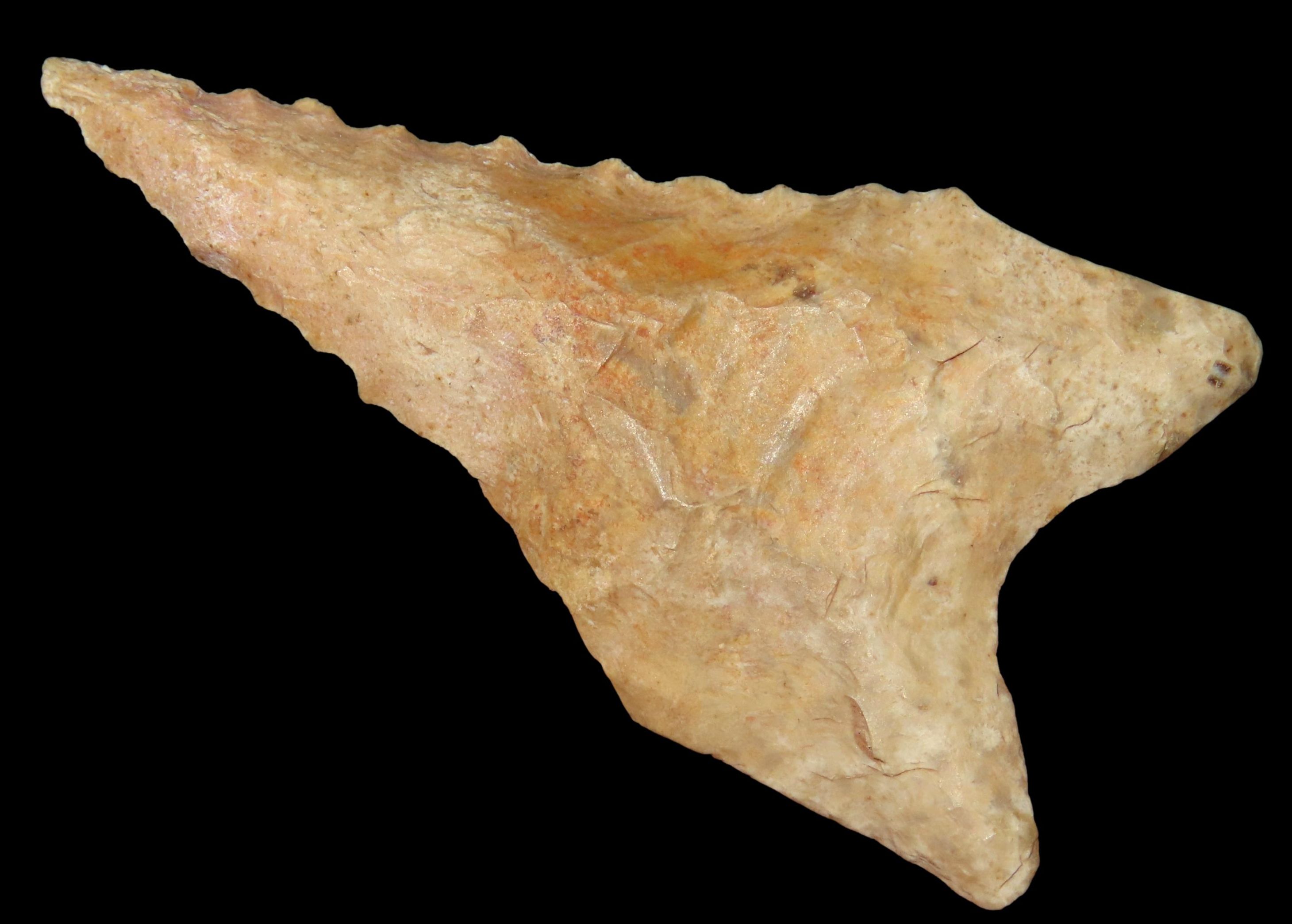 2 3/8″ CLASSIC SERRATED DALTON, ADAMS COUNTY ILLINOIS, EX DALE RECTOR COLLECTION, OUTSTANDING EXAMPLE, WELL FLAKED AND HEAVILY PATINATED