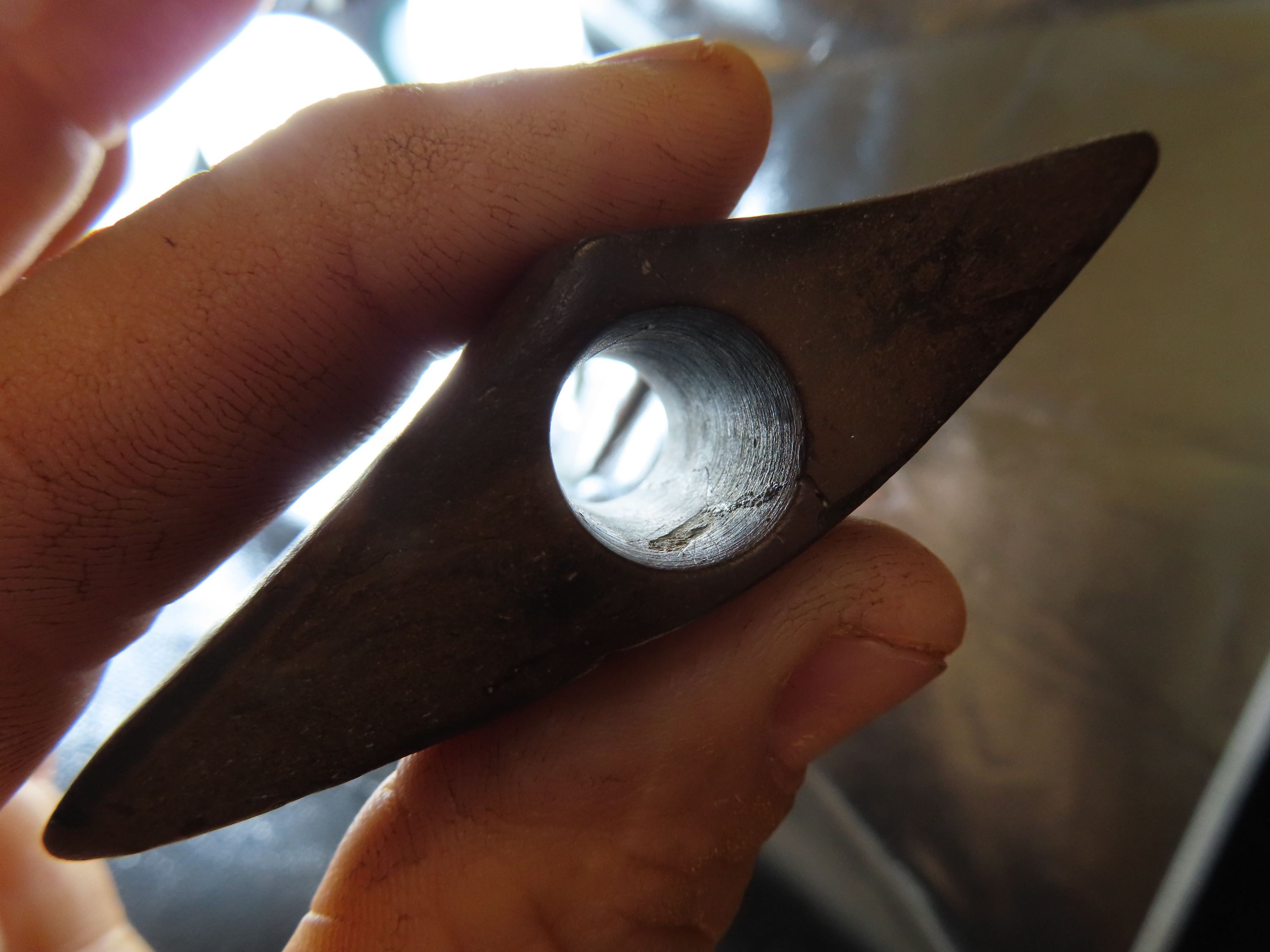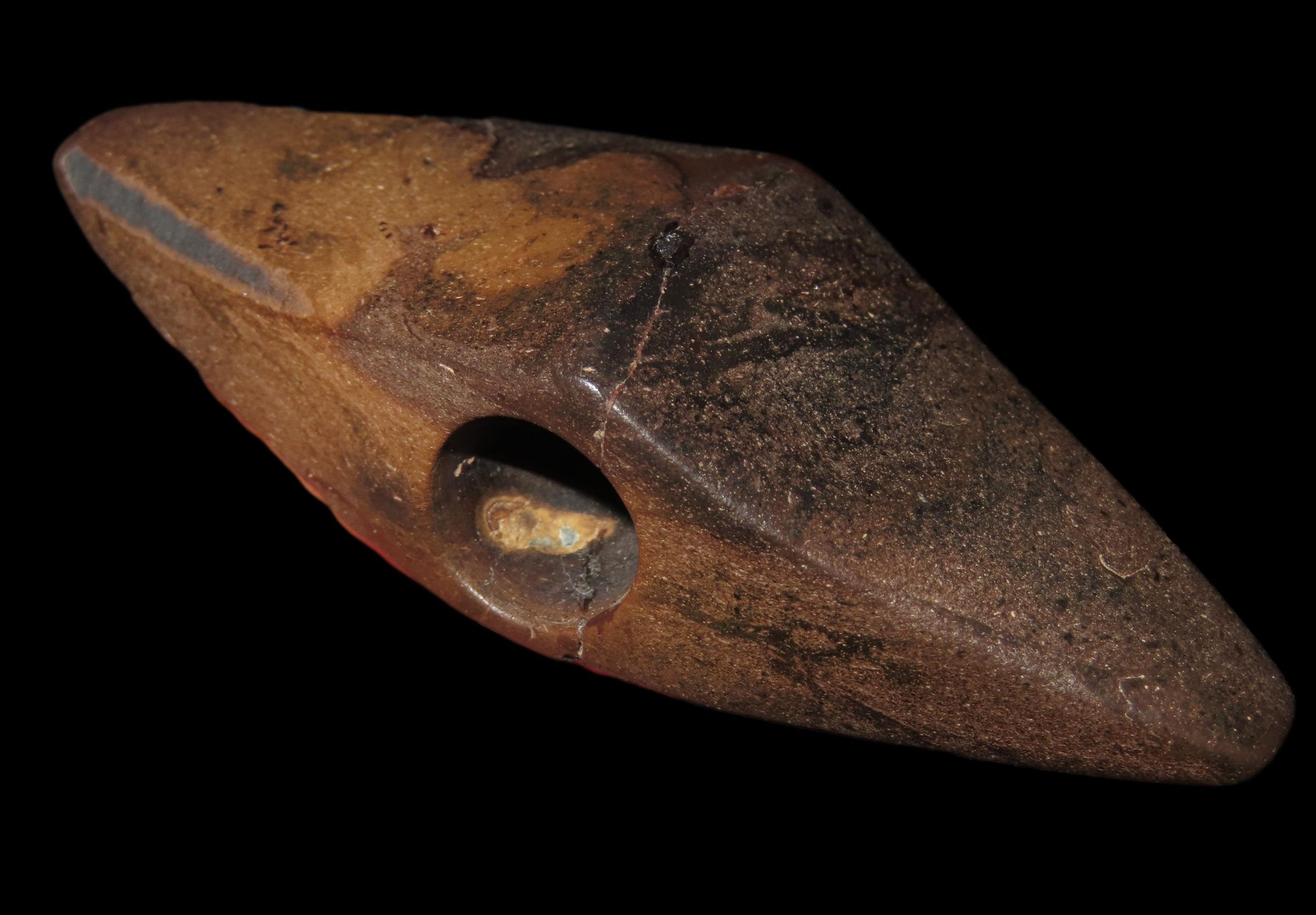 3 1/8″ SHUTTLE BANNERSTONE, DICKEY & DAVIS G10 COA, TENNESSEE, CLAYSTONE, BROKEN & GLUED TIGHT, NICELY SHAPED AND WELL POLISHED EXAMPLE
