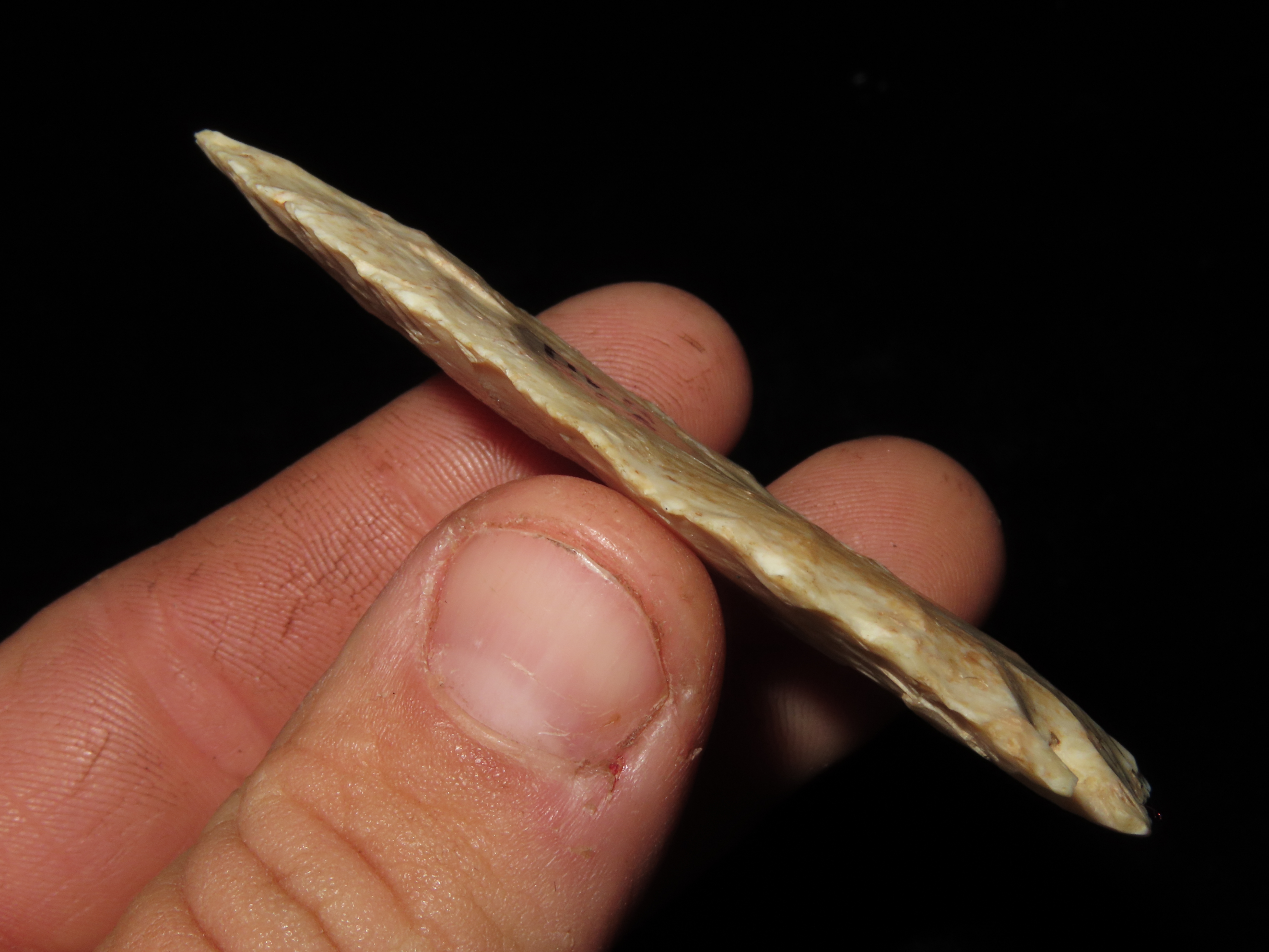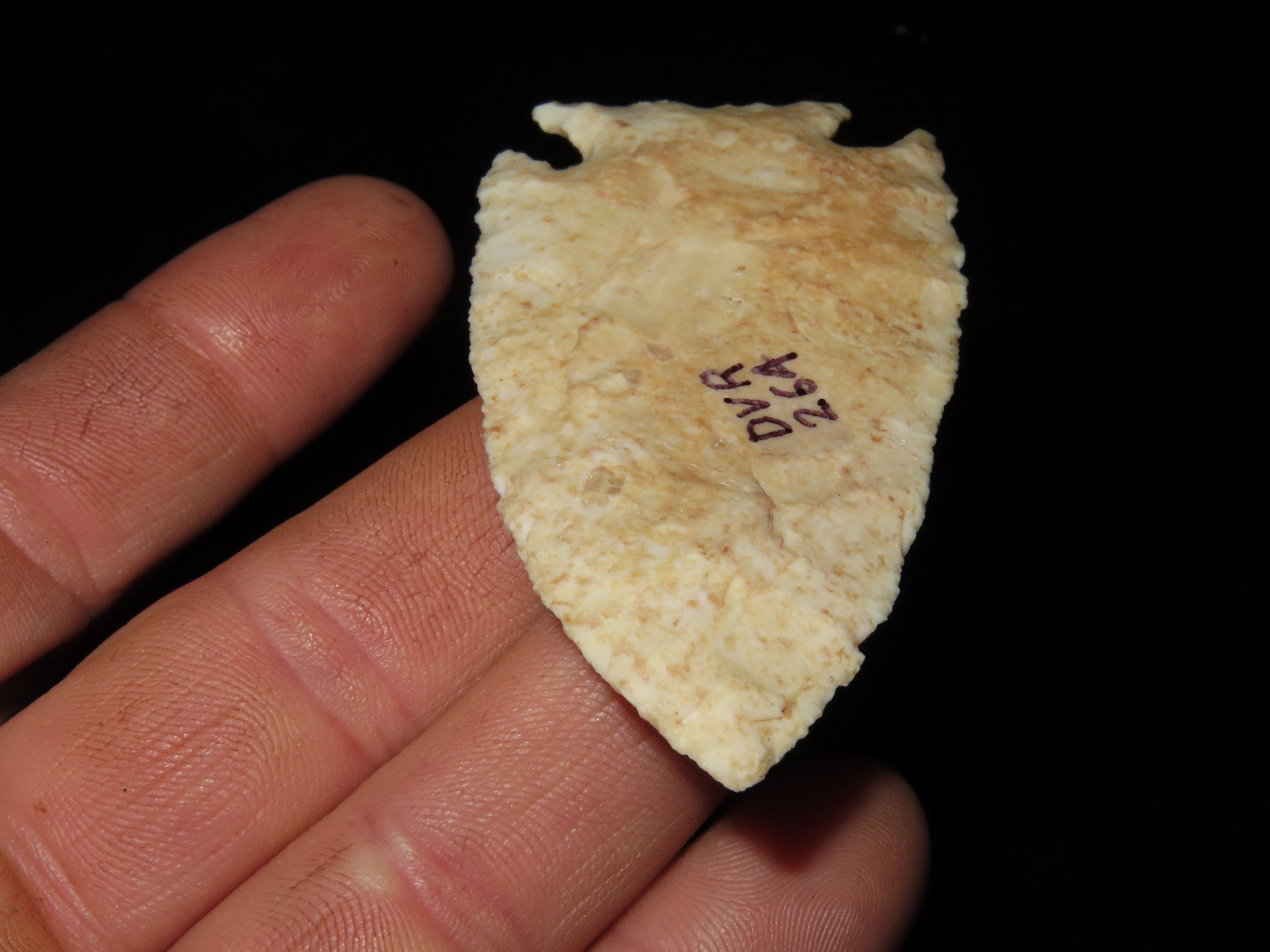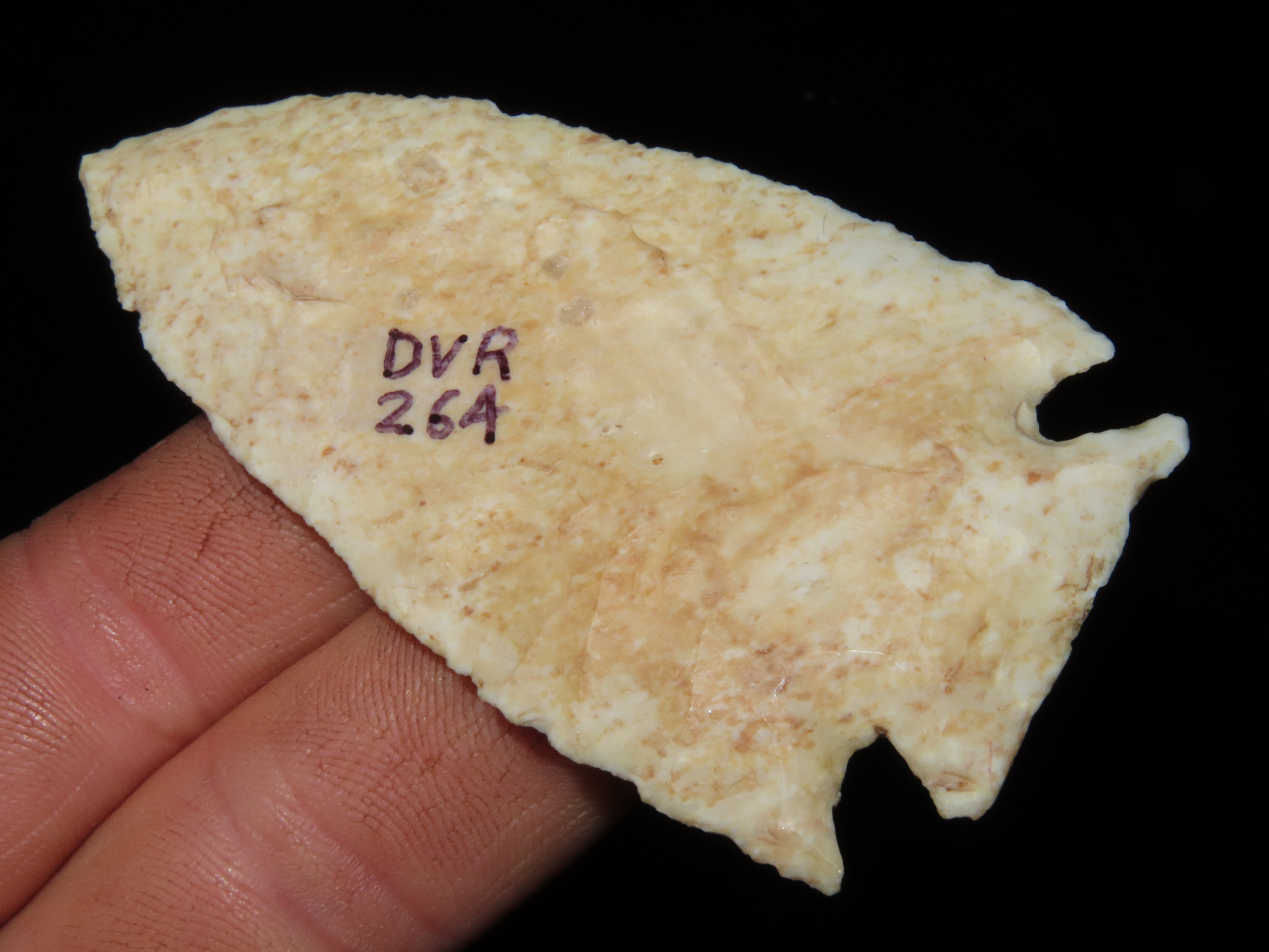 3 1/16″ KIRK CORNERNOTCH, JERSEY COUNTY ILLINOIS, SUPER THIN & WELL FLAKED EXAMPLE, EX DALE RECTOR COLLECTION, INDIAN ARROWHEAD, ARTIFACT