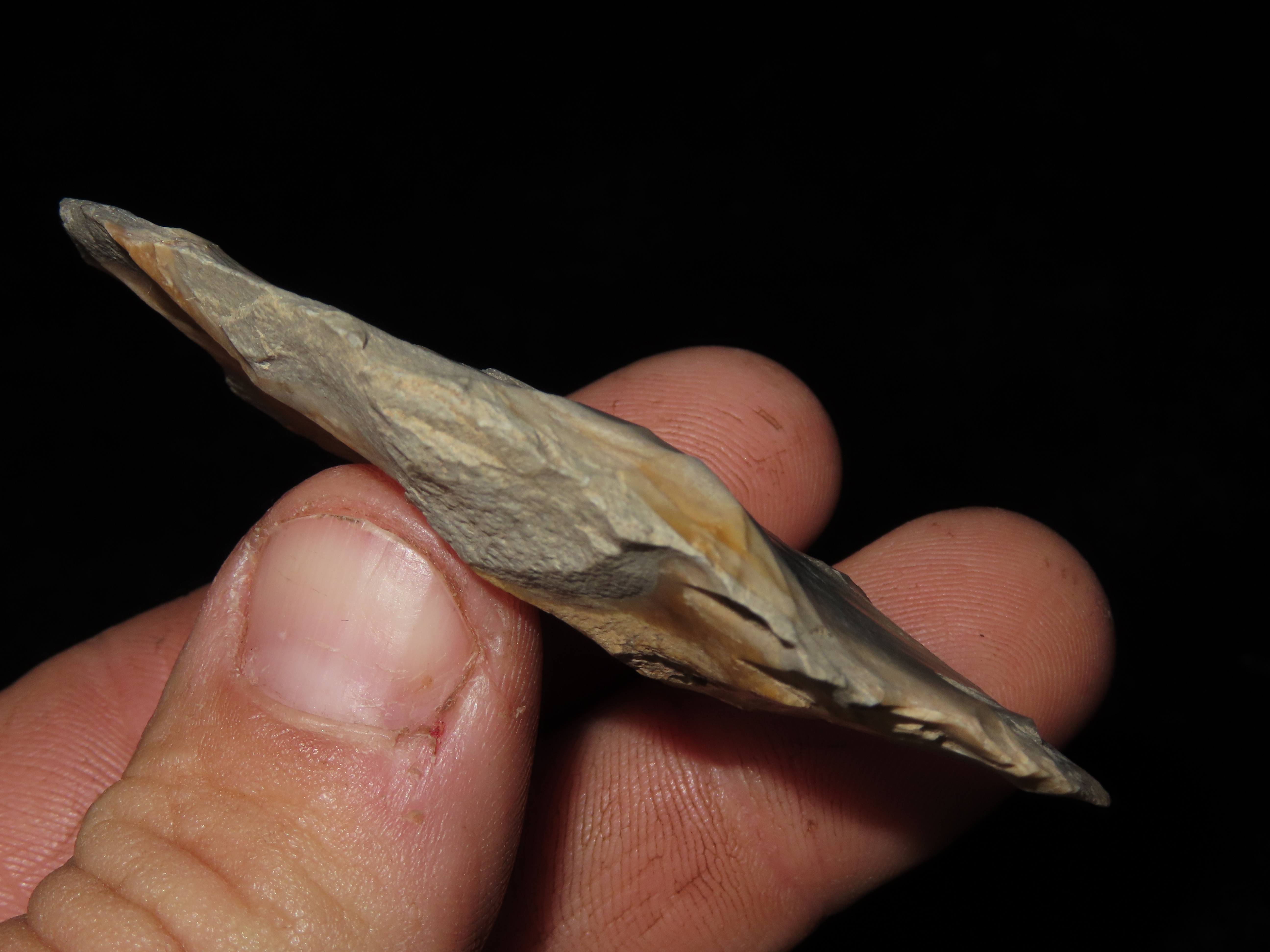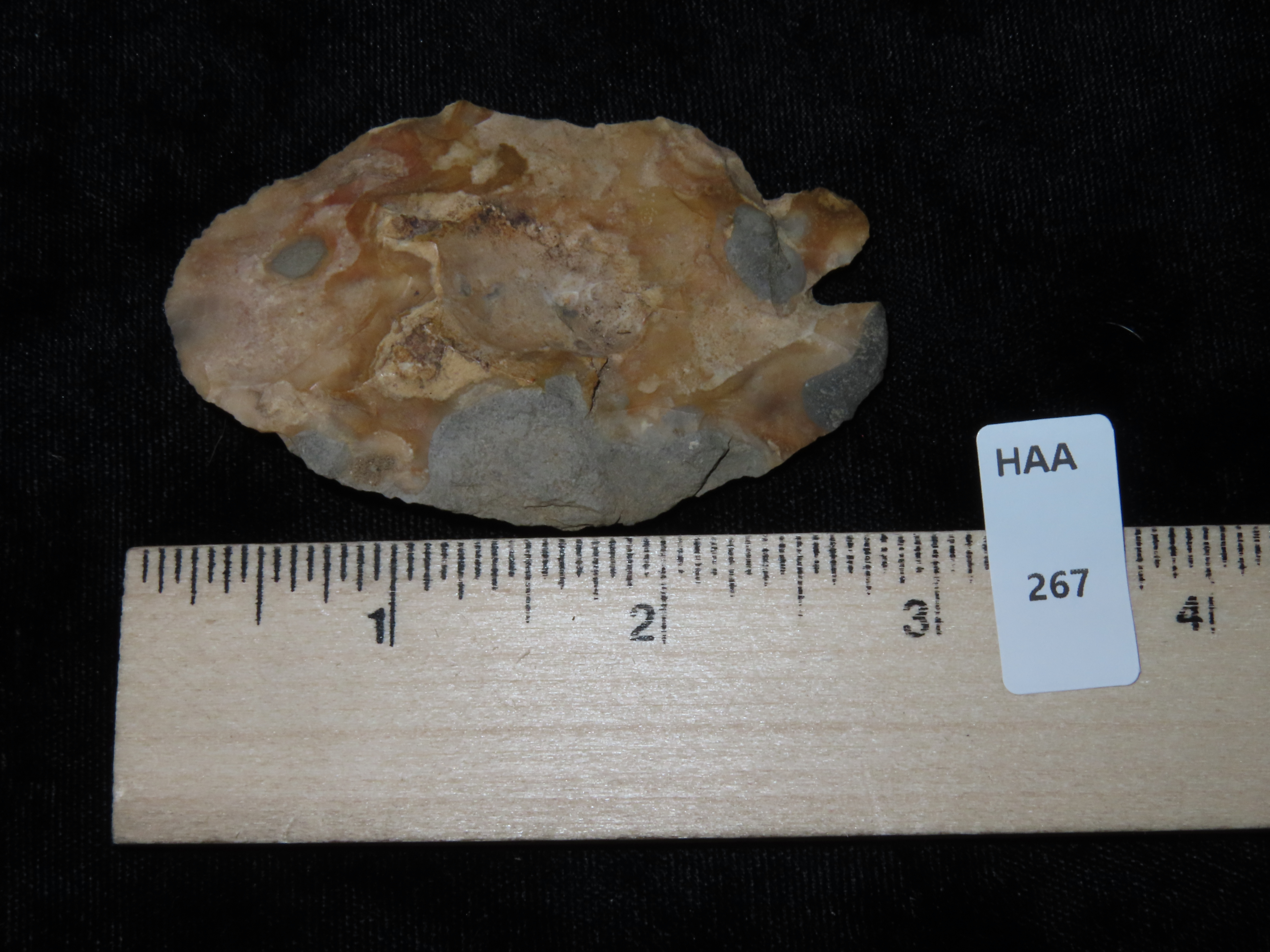 2 3/4" MOZARKITE CORNER TANG KNIFE, SALINE COUNTY MISSOURI, NICE COLORFUL RARE EXAMPLE FOR THE AREA, NO BRAINER PATINA