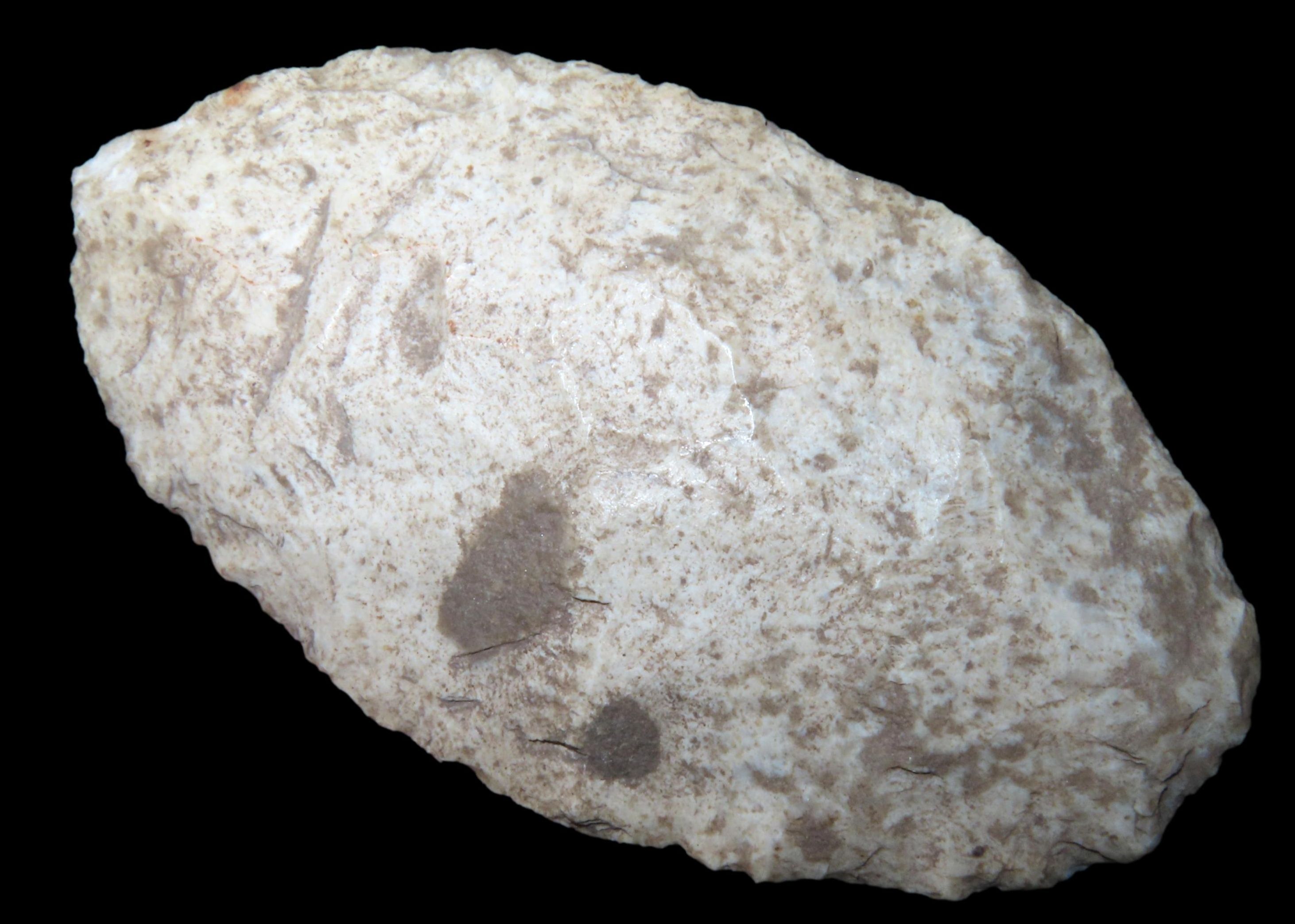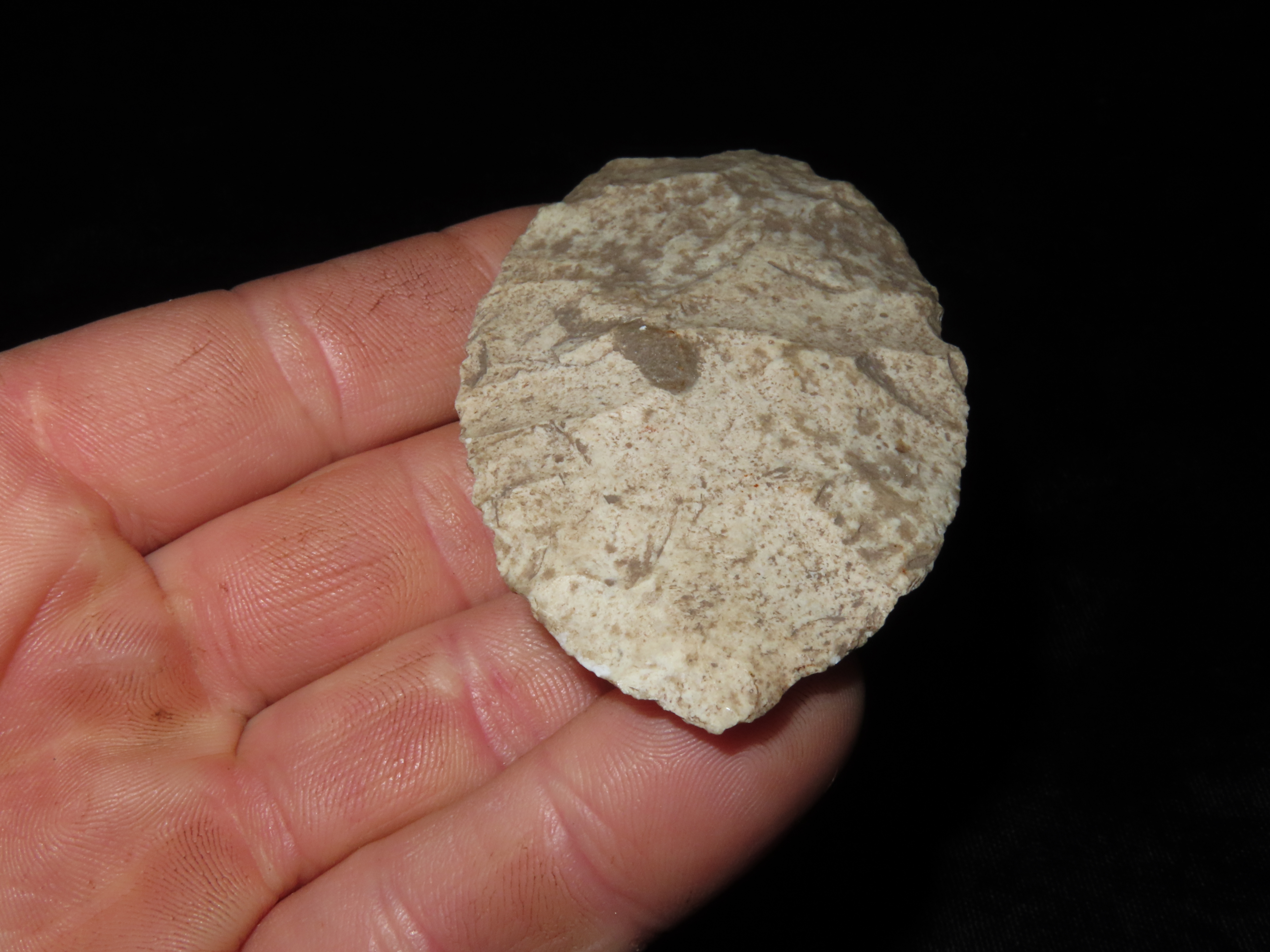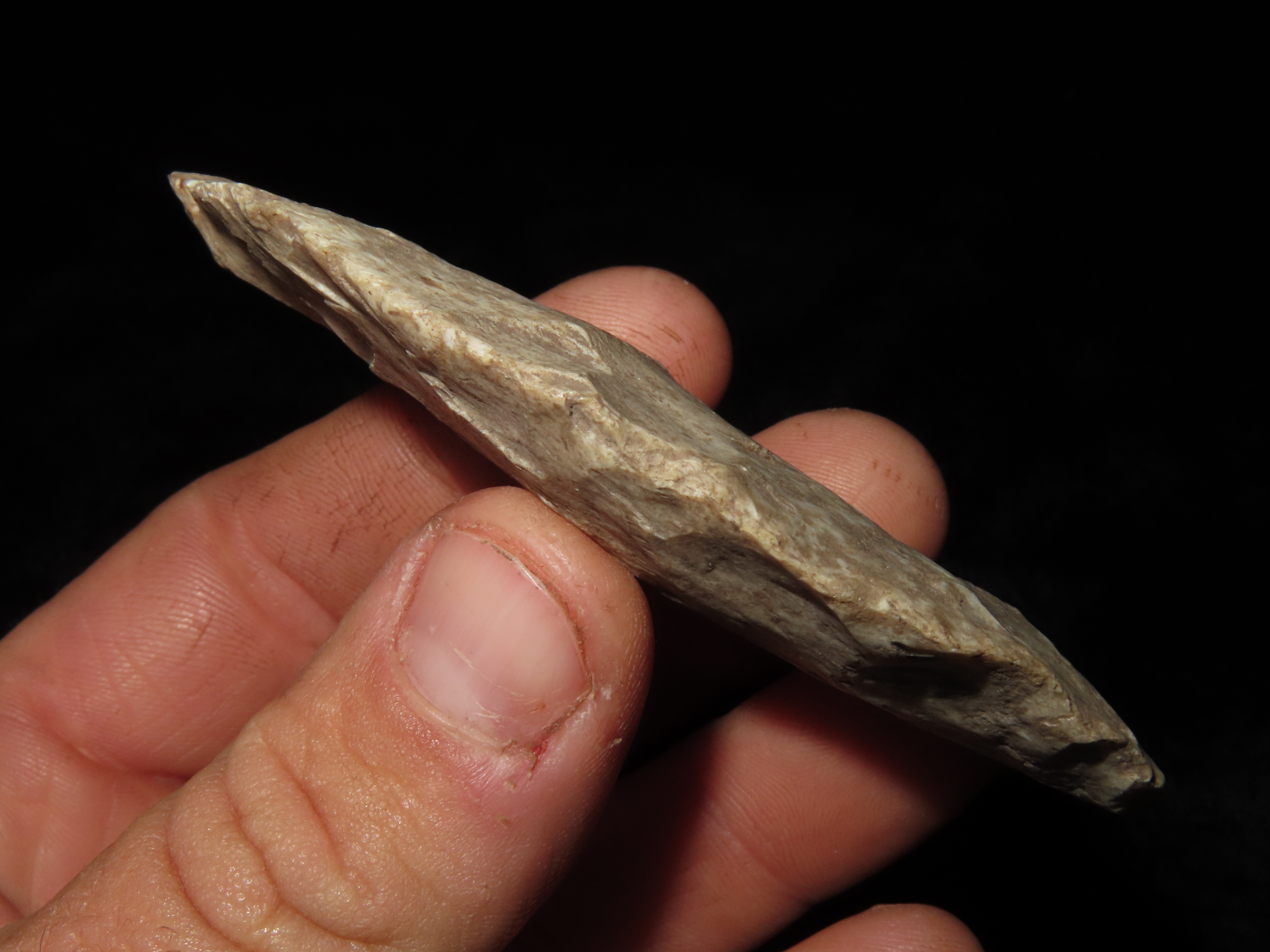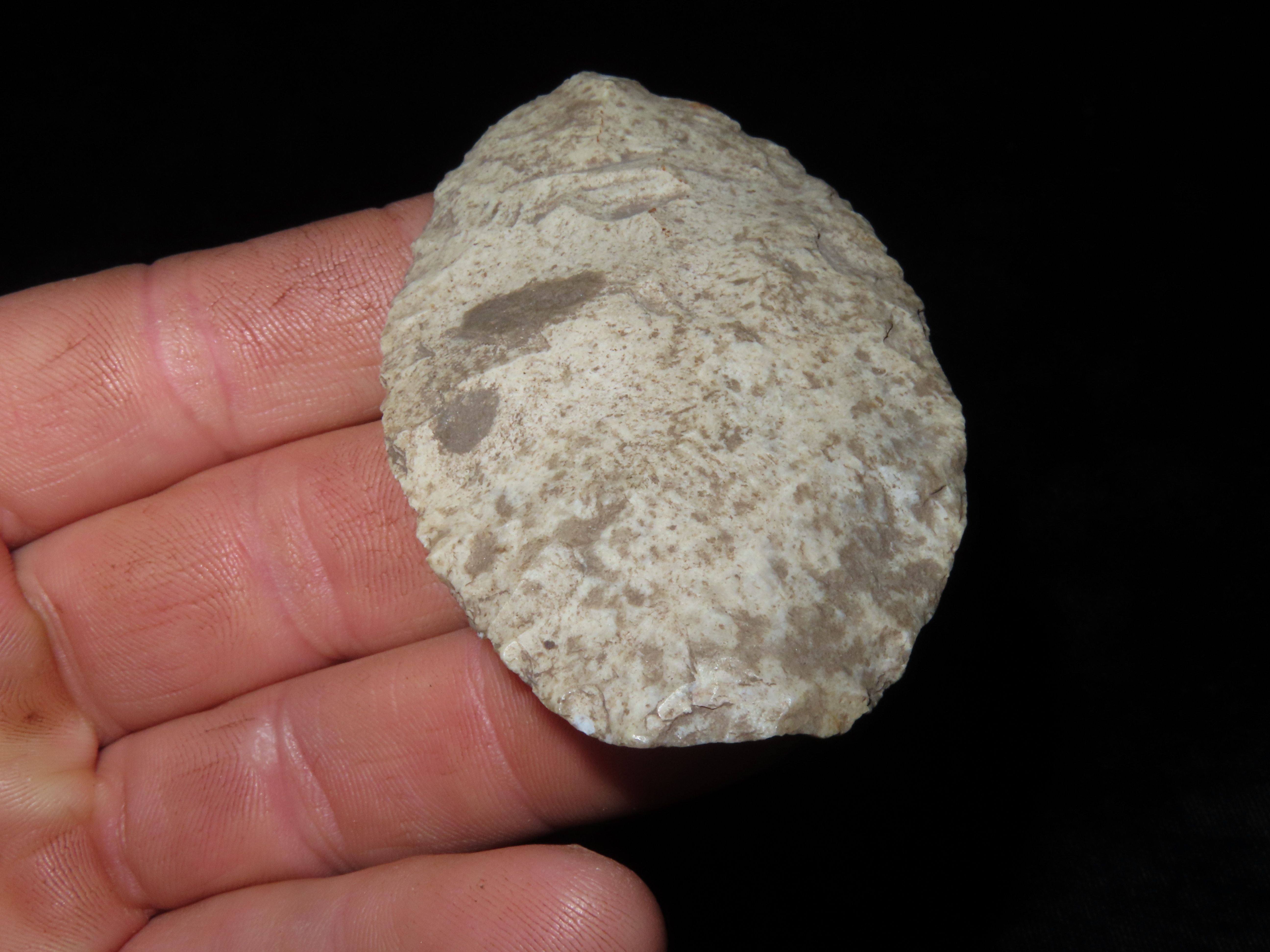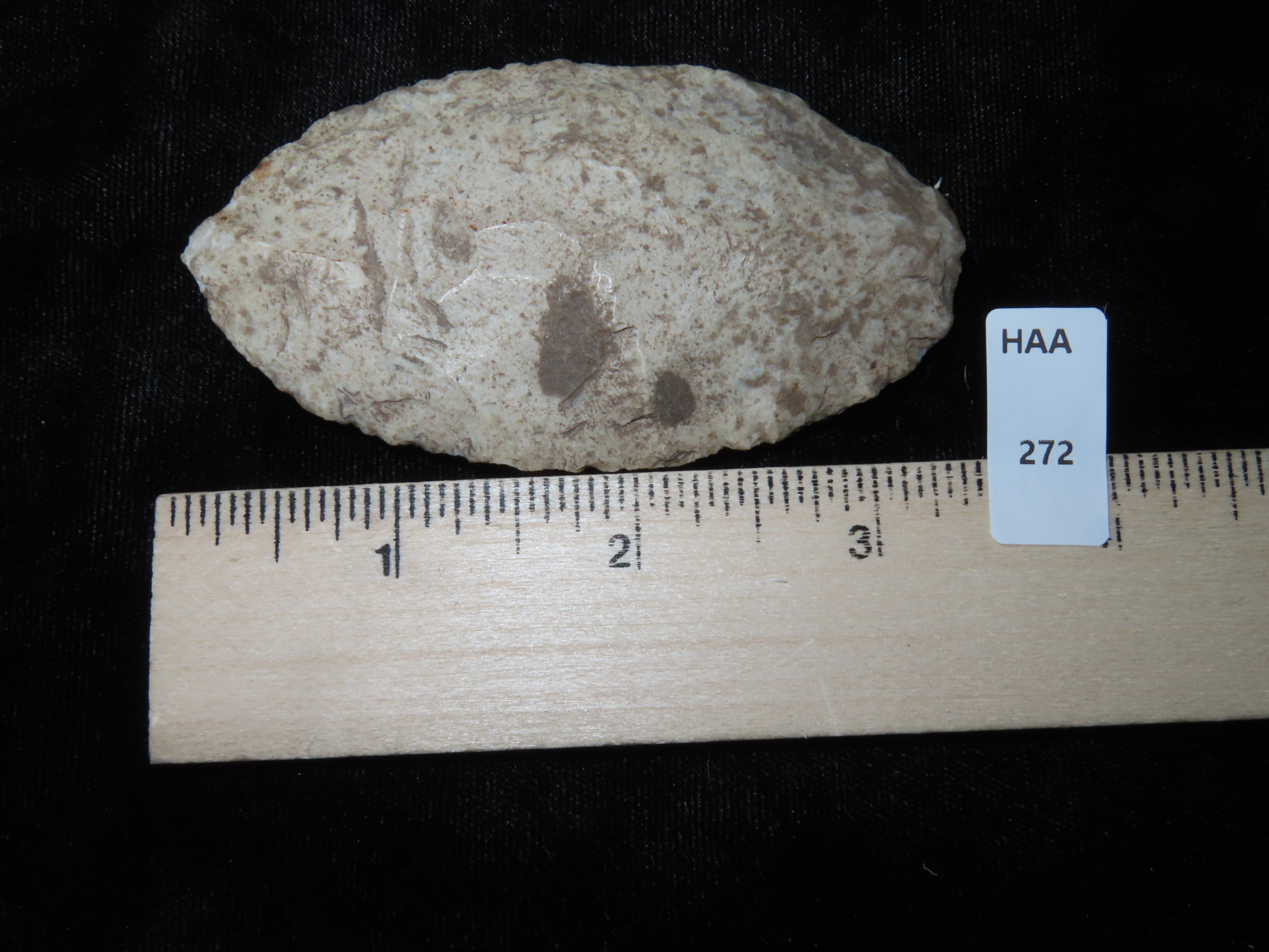 3 3/8″ EARLY OVOID KNIFE BLADE, ADAMS COUNTY ILLLINOIS, NICE EARLY FLAKING, GREAT COLOR AND NO BRAINER PATINA, INDIAN ARROWHEAD, ARTIFACT
