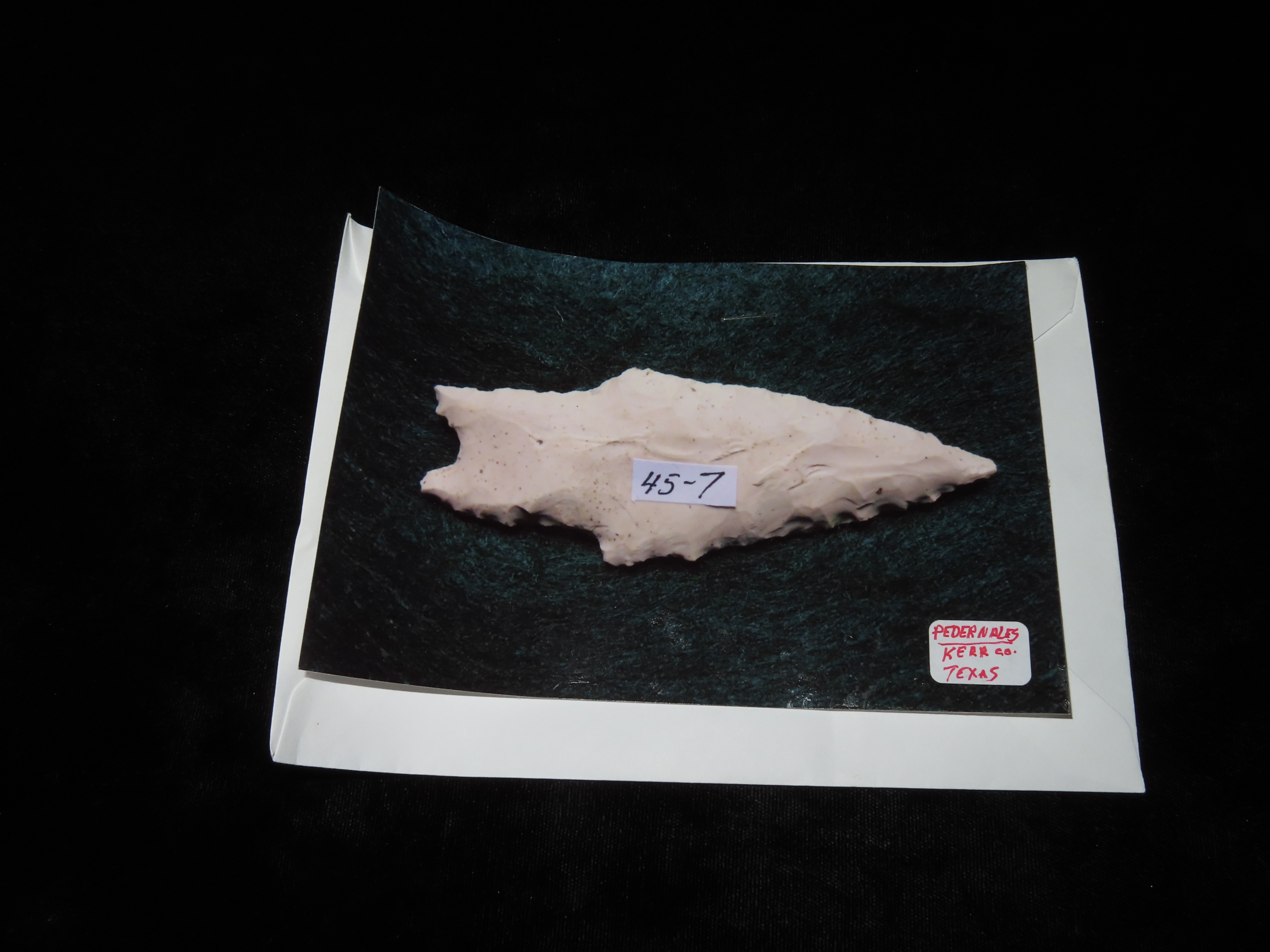 2 7/8″ PEDERNALES, KERR COUNTY TEXAS, NICE CLASSIC PERD, EX DR. TED RAUCK COLLECTION, INDIAN ARROWHEAD, ARTIFACT