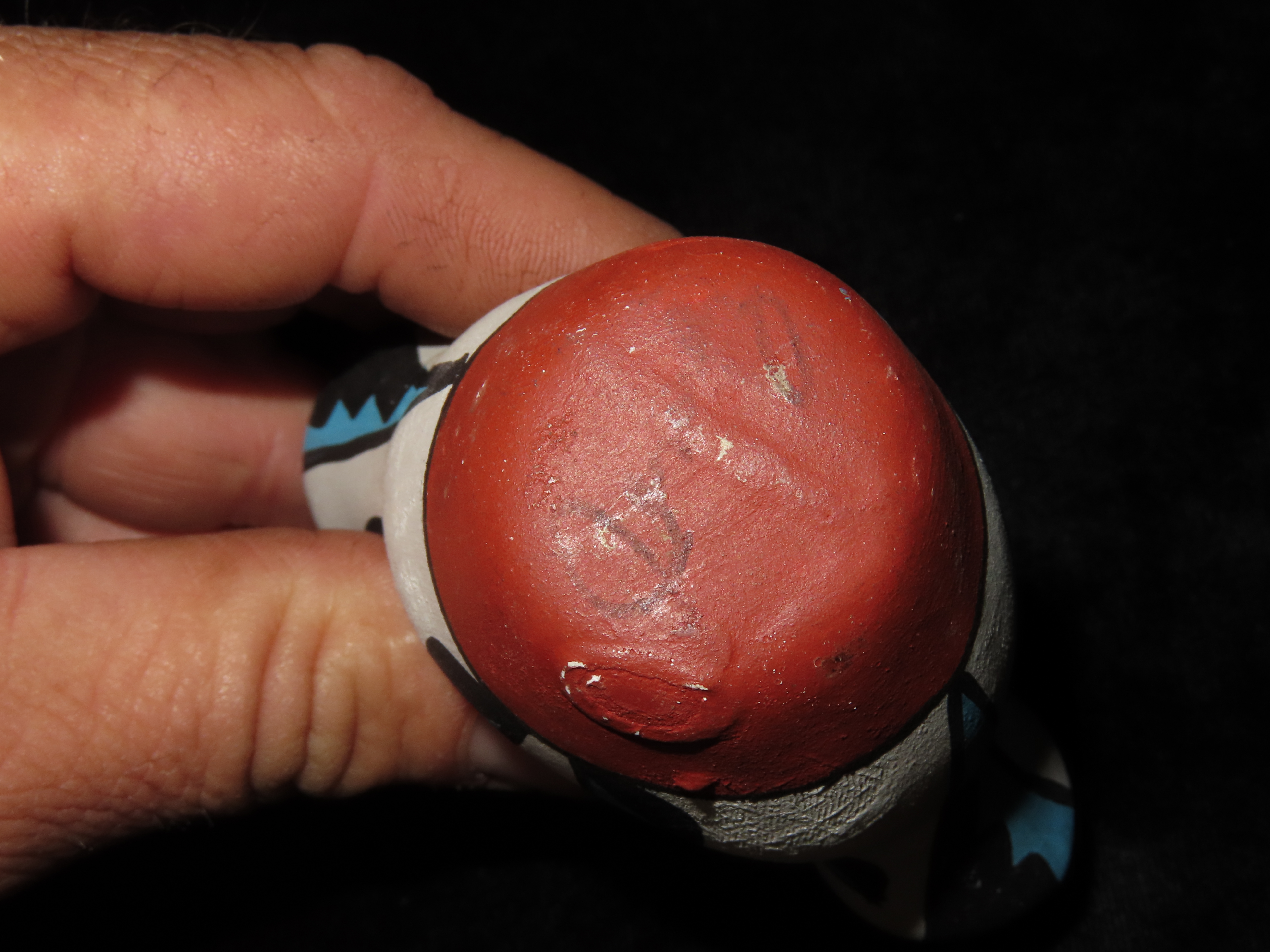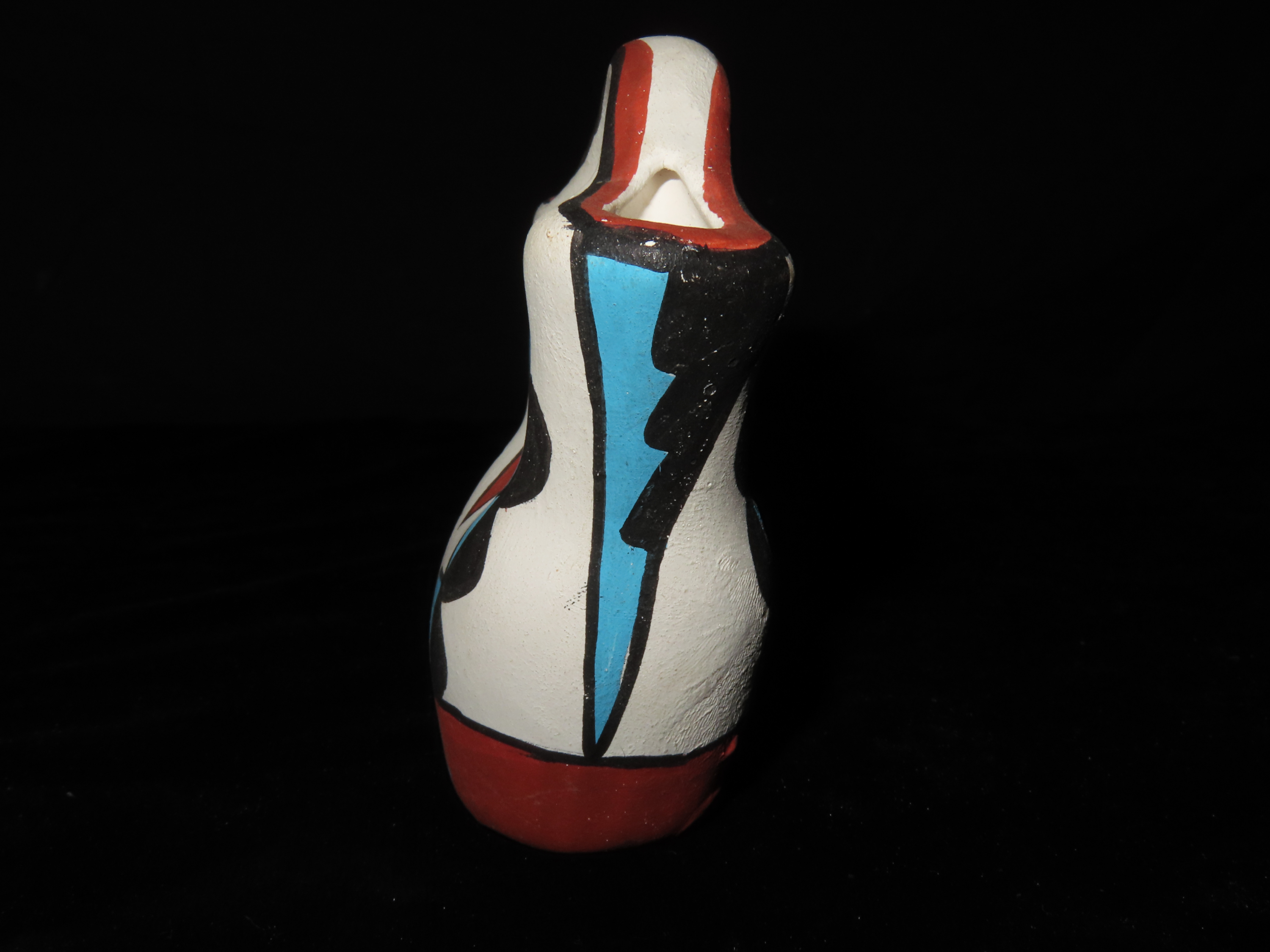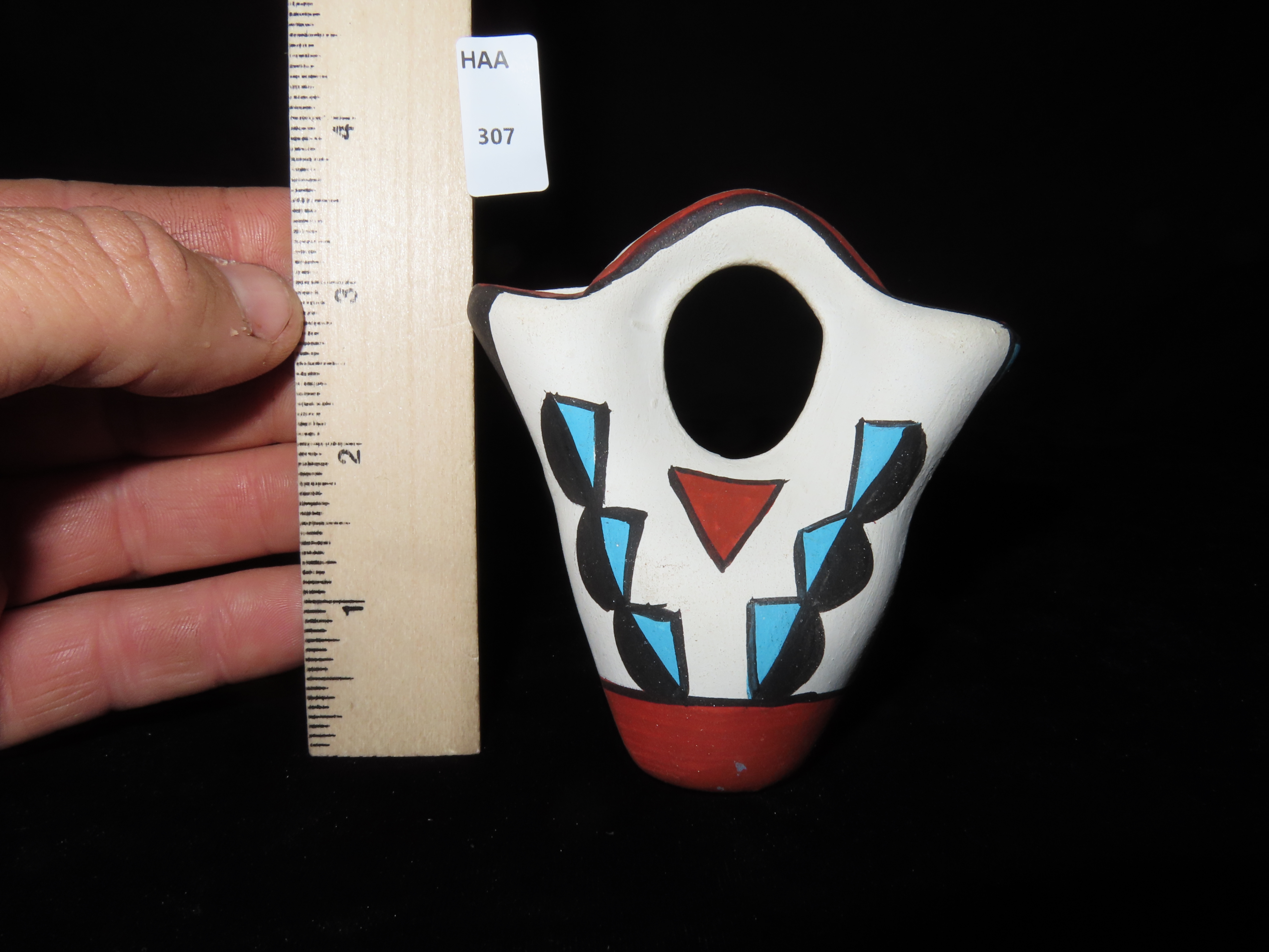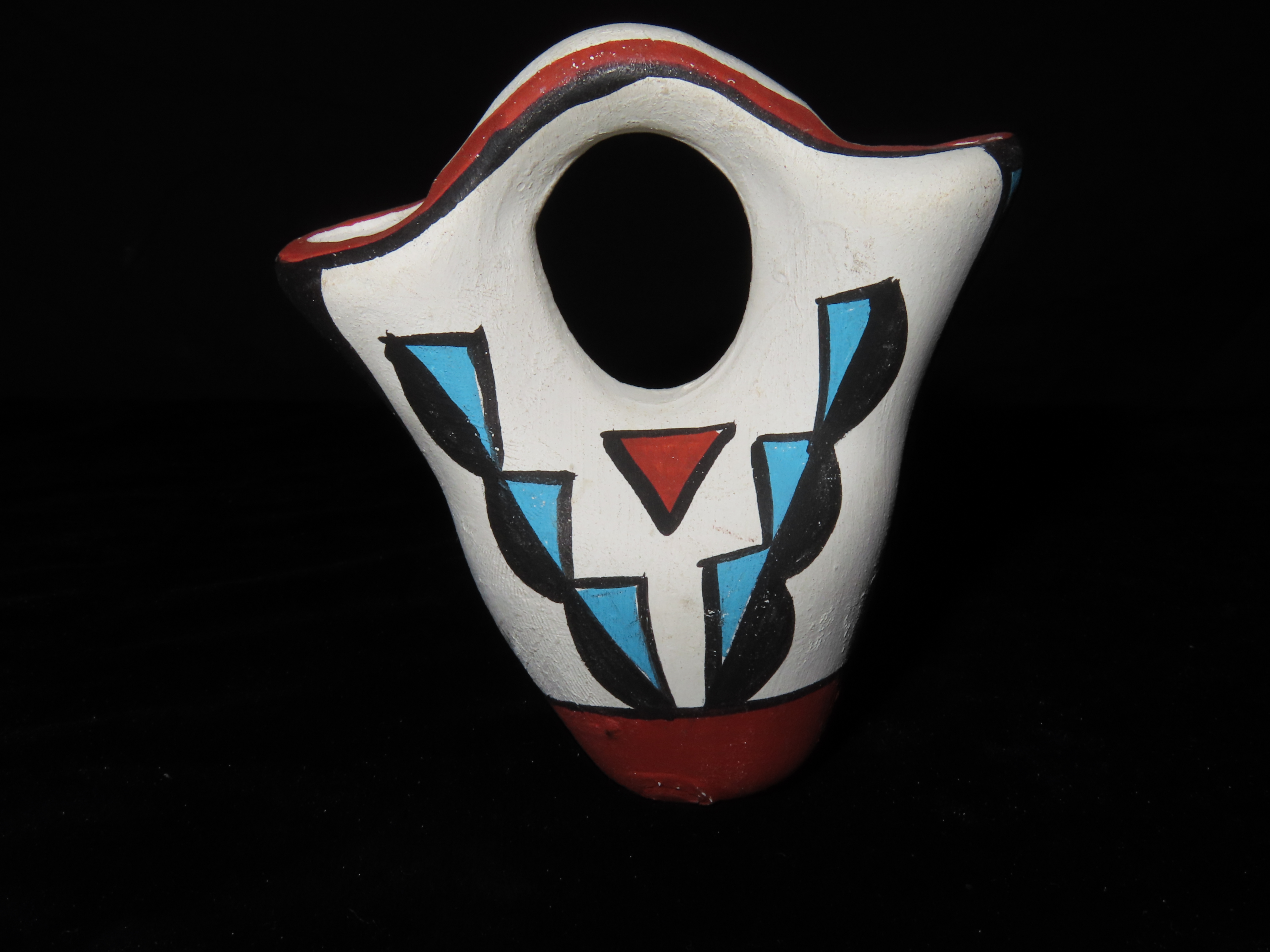 MINIATURE 3 3/4″ TALL ACOMA POTTERY WEDDING VASE, NICE COLORFUL HAND PAINTED DESIGN, NATIVE AMERICAN INDIAN POT, CIRCA 1950’S