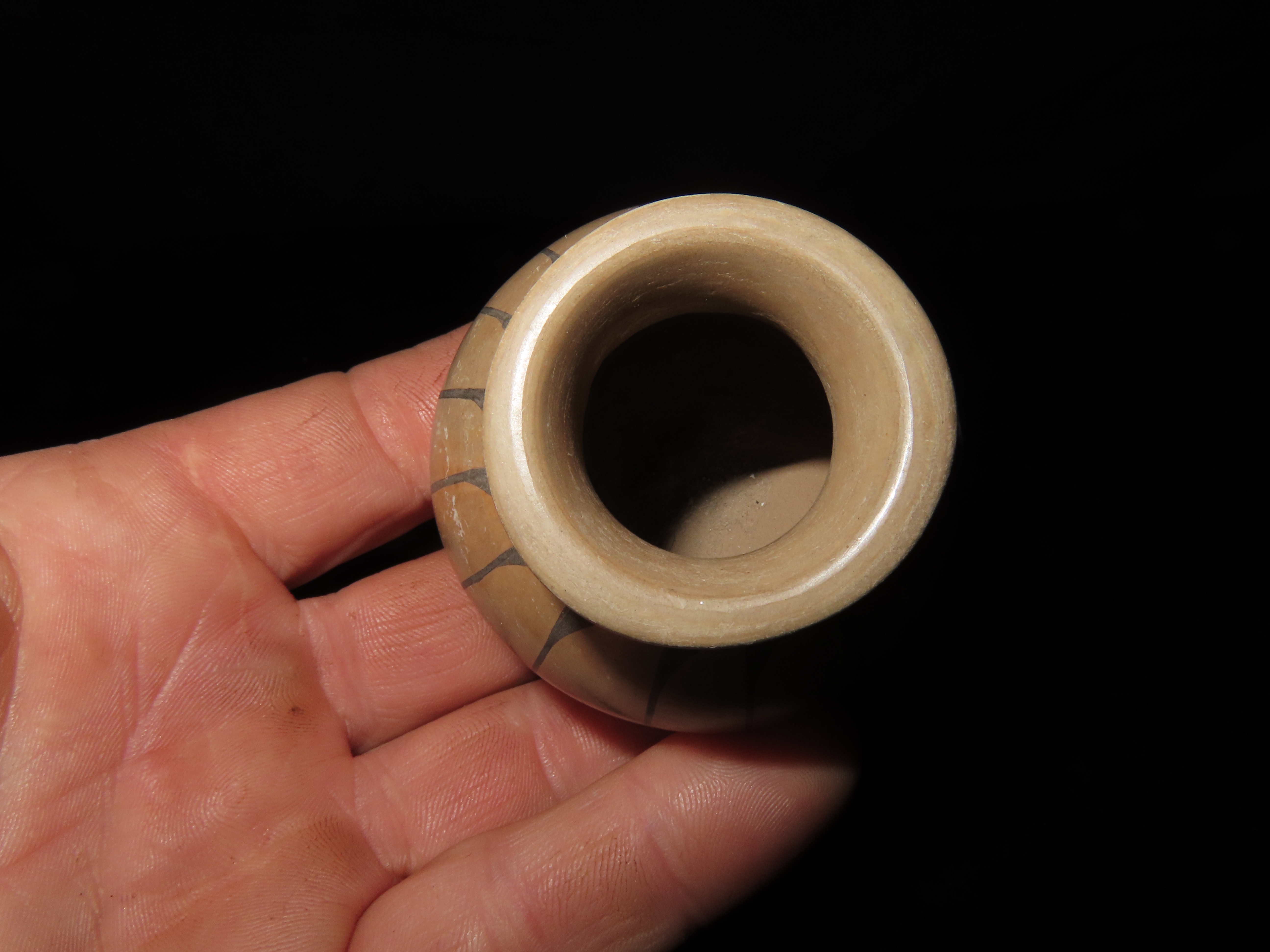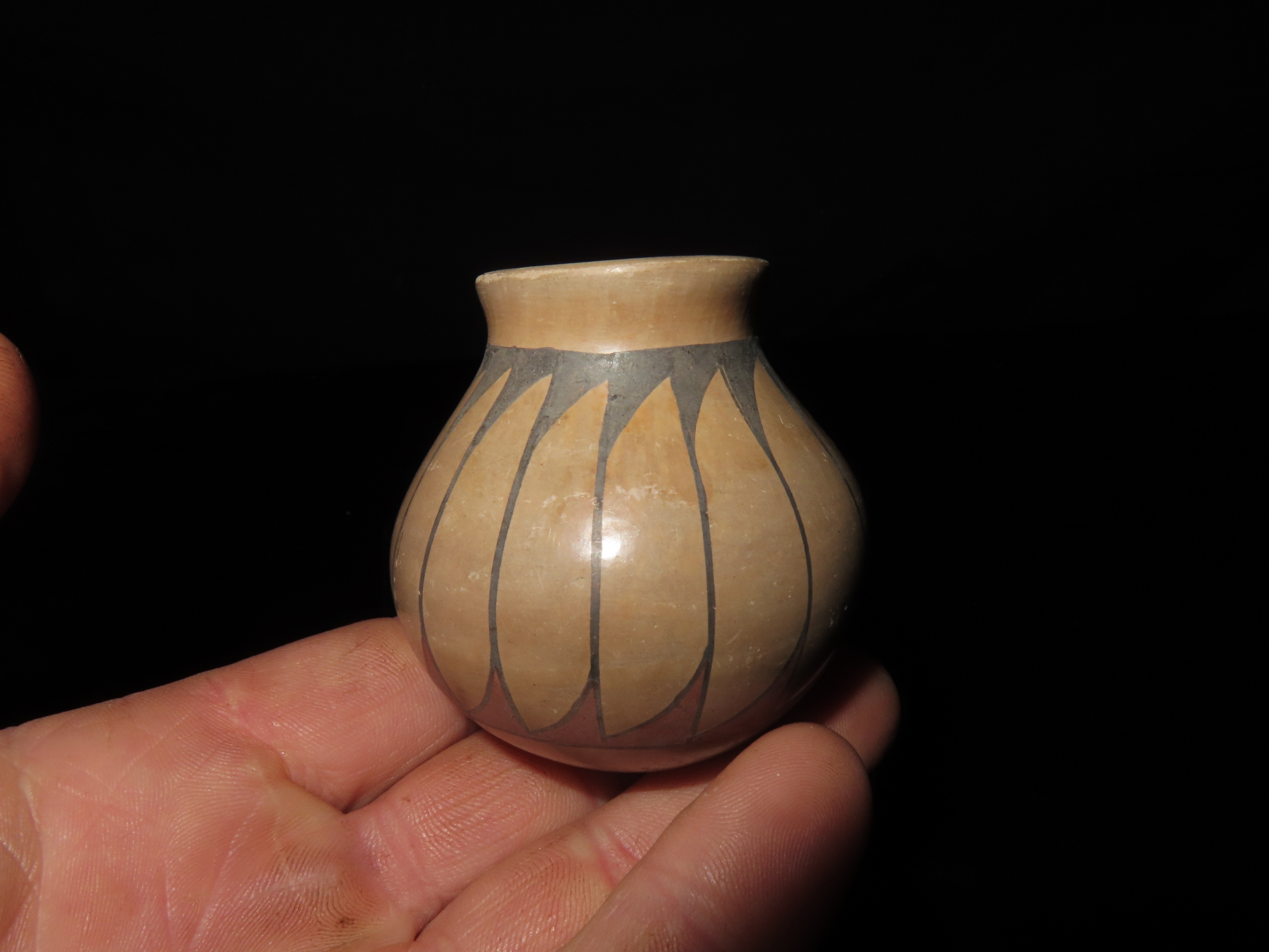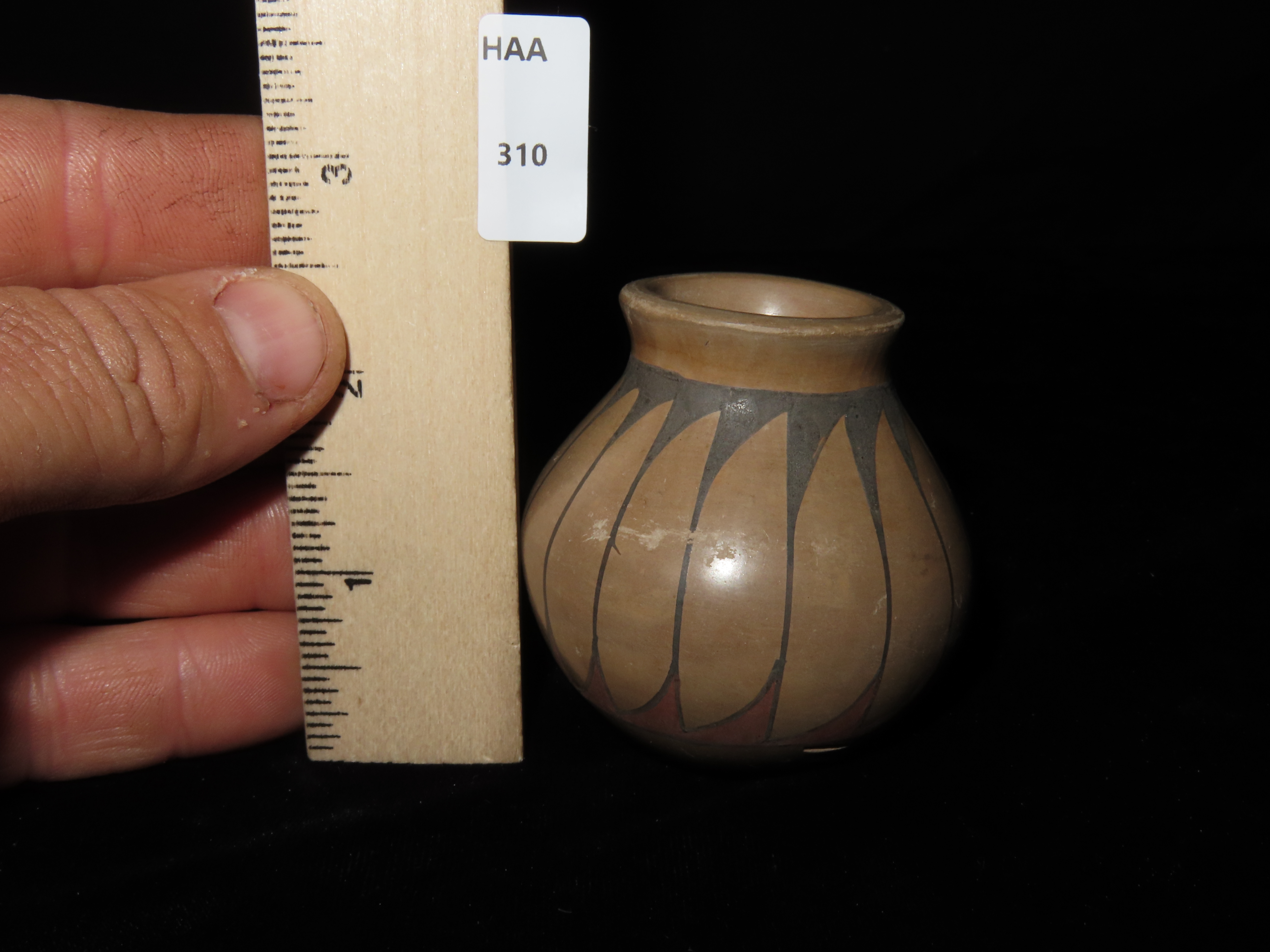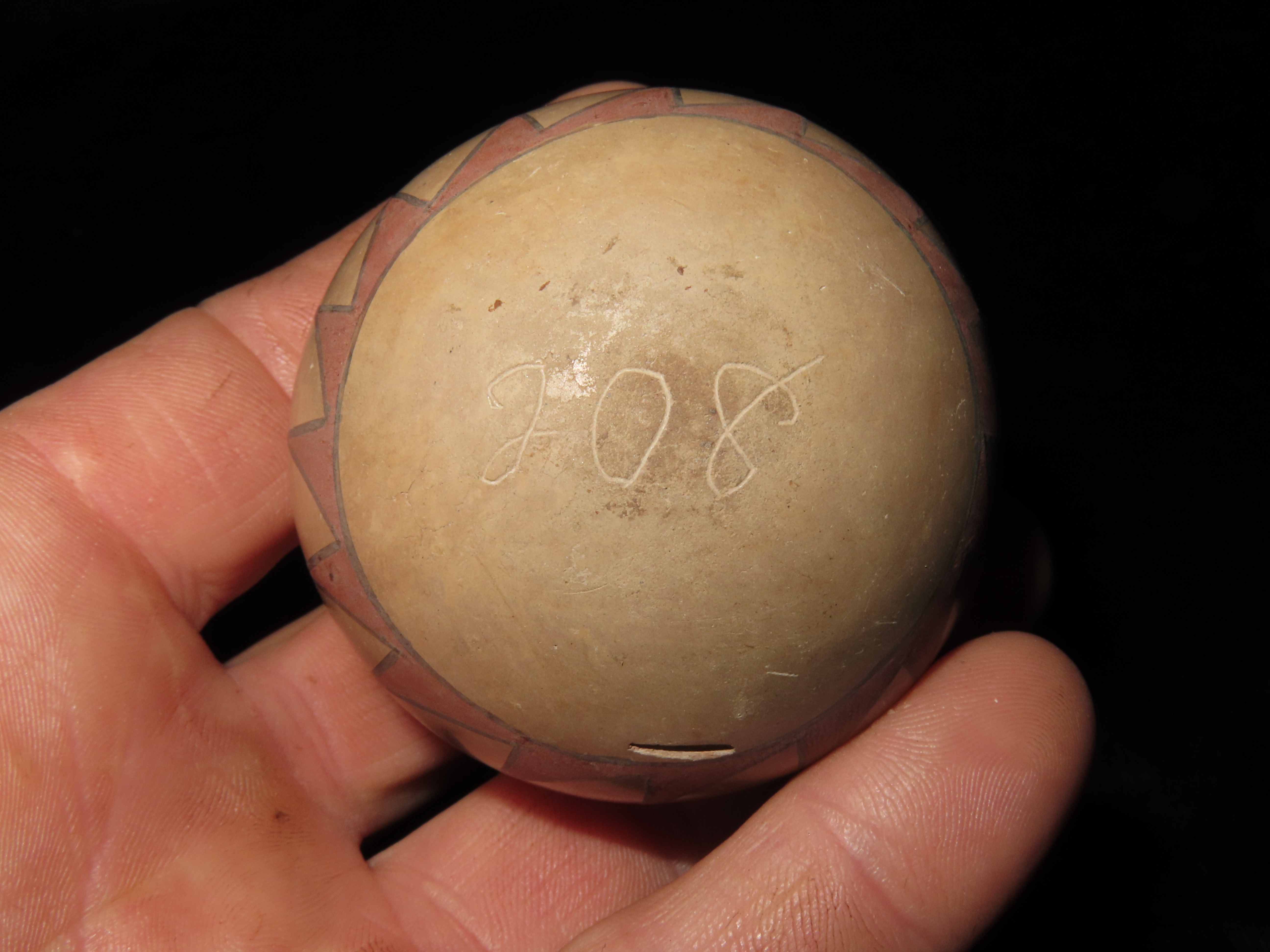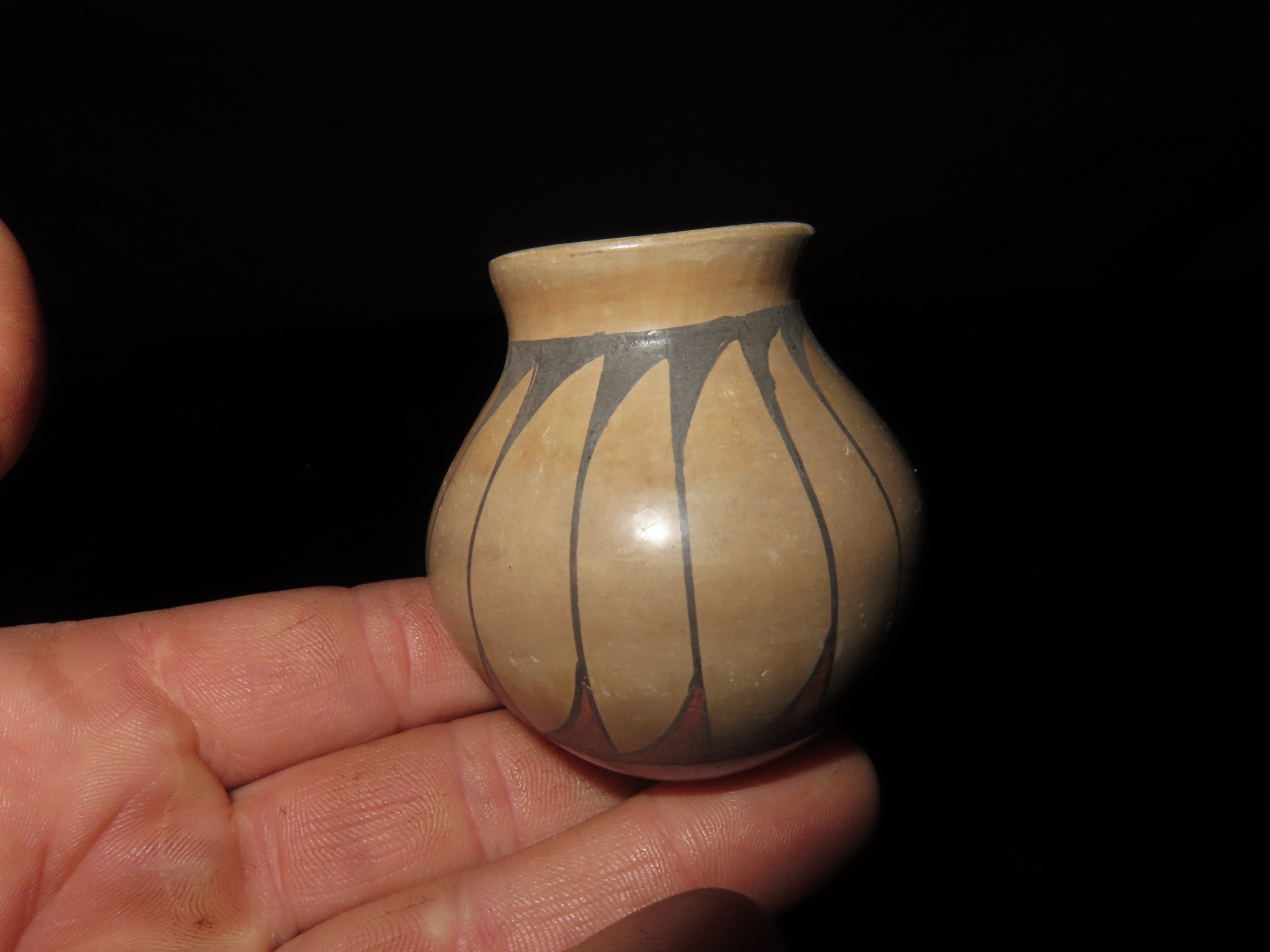 MATA ORTIZ MINIATURE POTTERY JAR, MINI POT, HAND PAINTED VESSEL, NUMBERED “208” ON BOTTOM