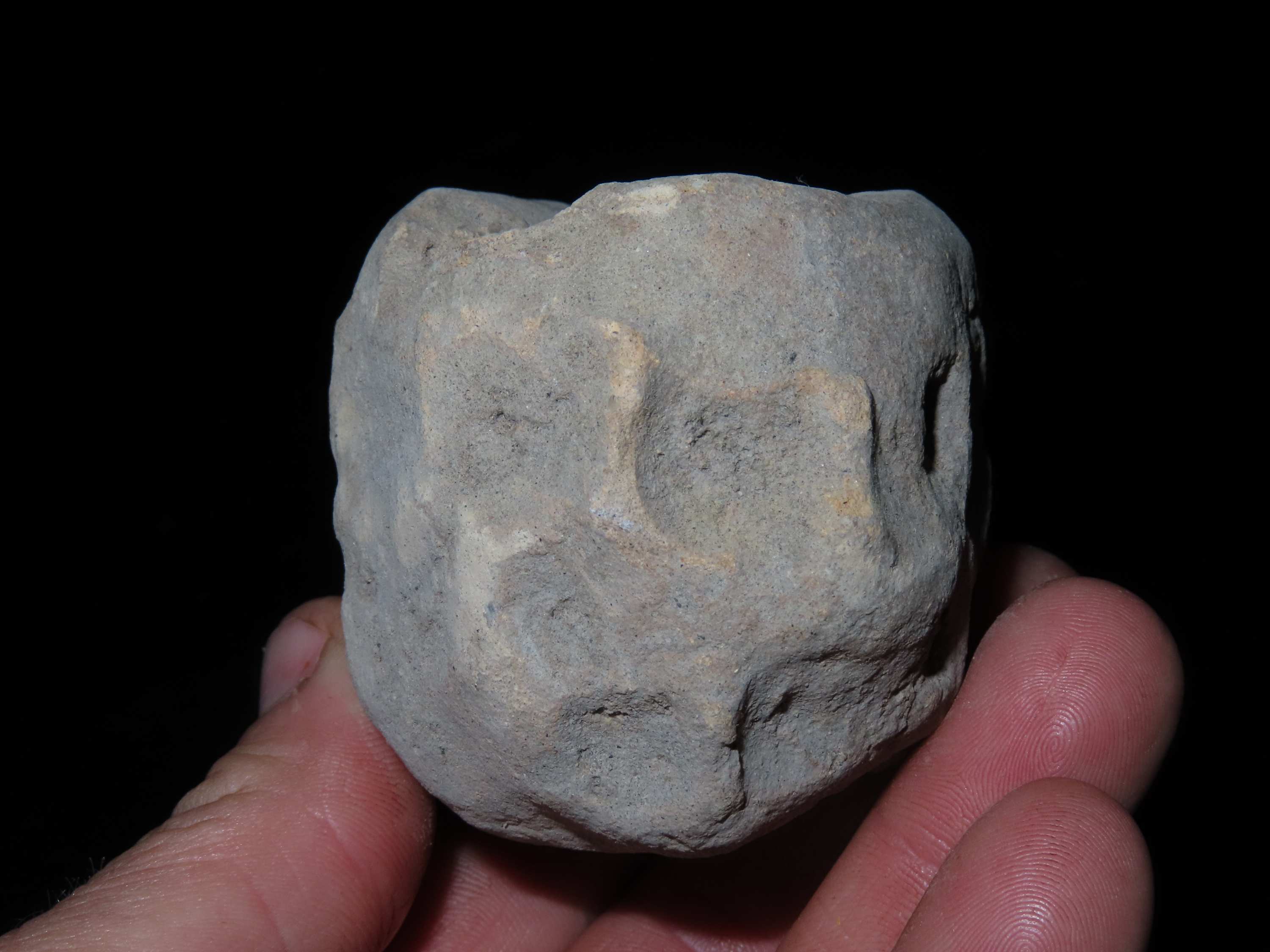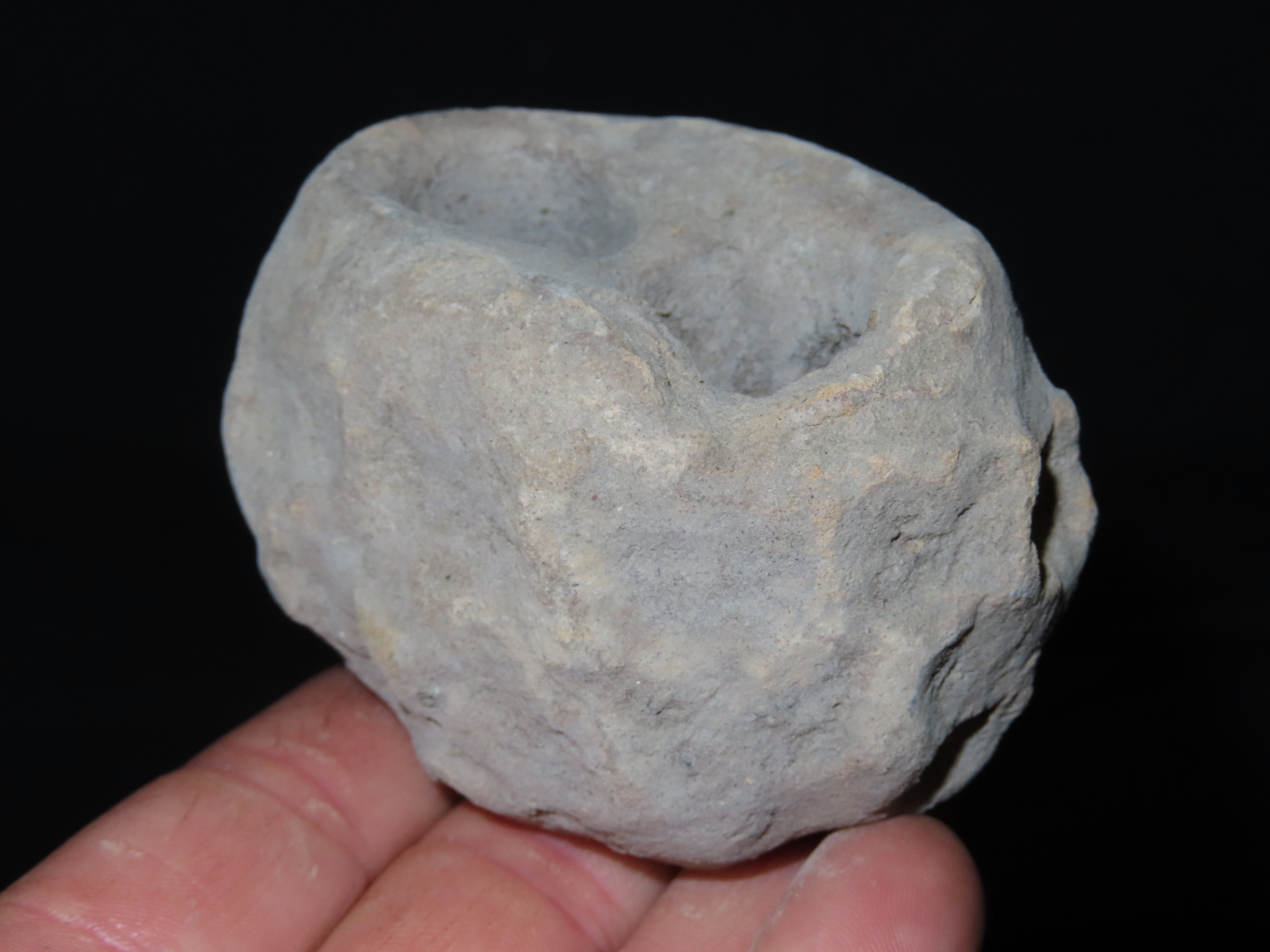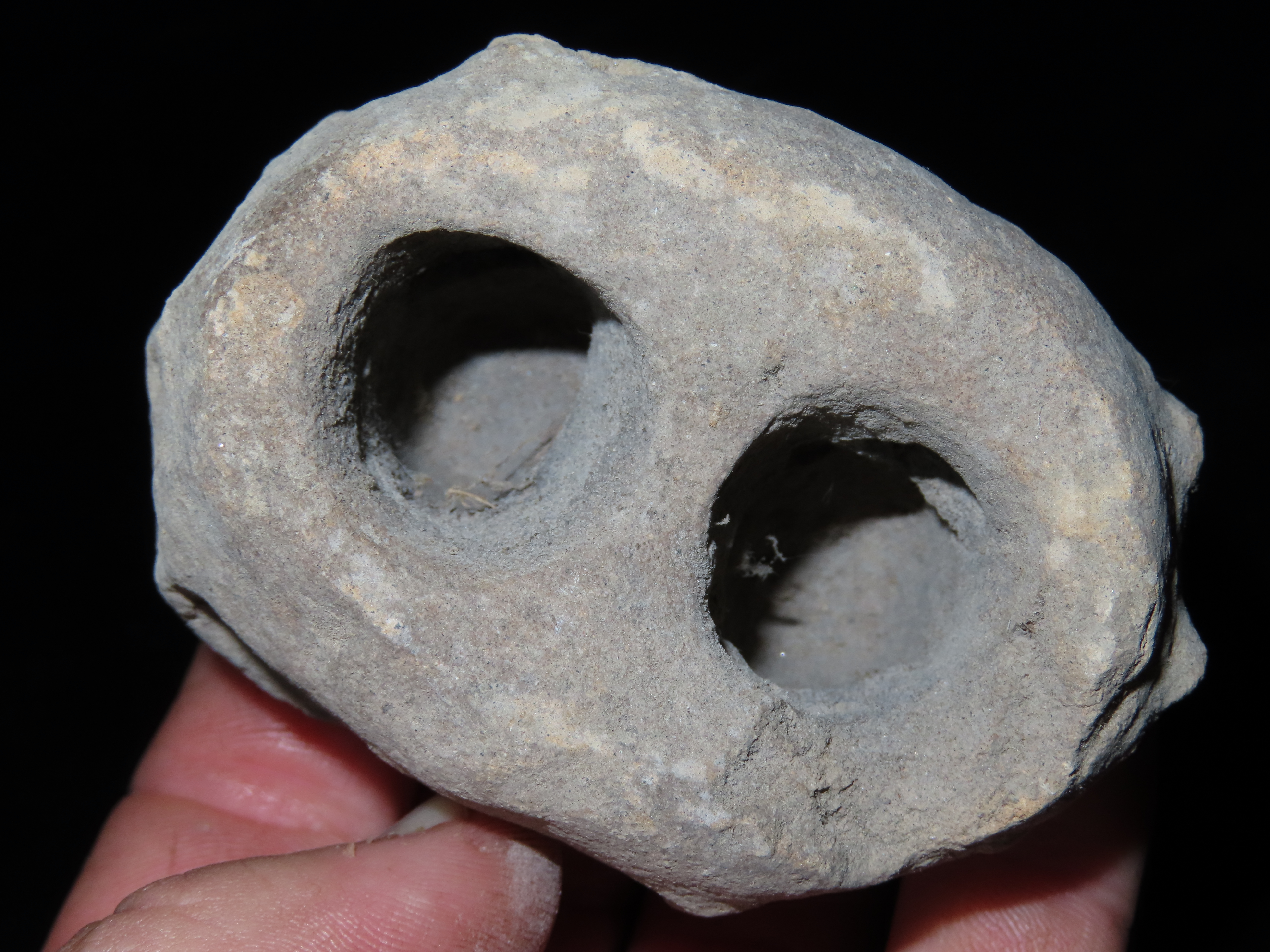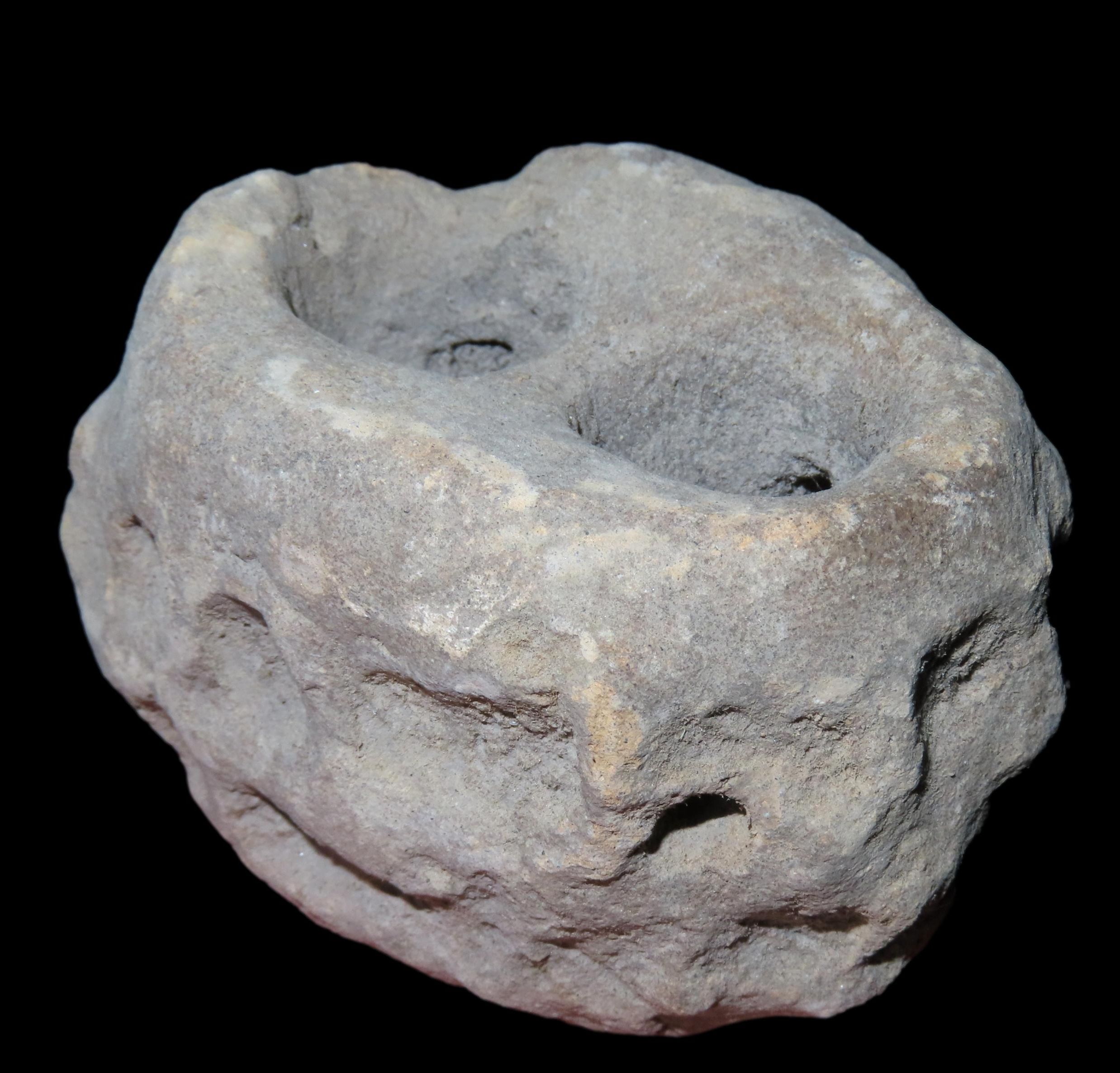 3 1/8″ PRECOLUMBIAN DOUBLE CHAMBER POISON POT FROM MEXICO, MINI DESIGNED POTTERY CONTAINER, SOLID
