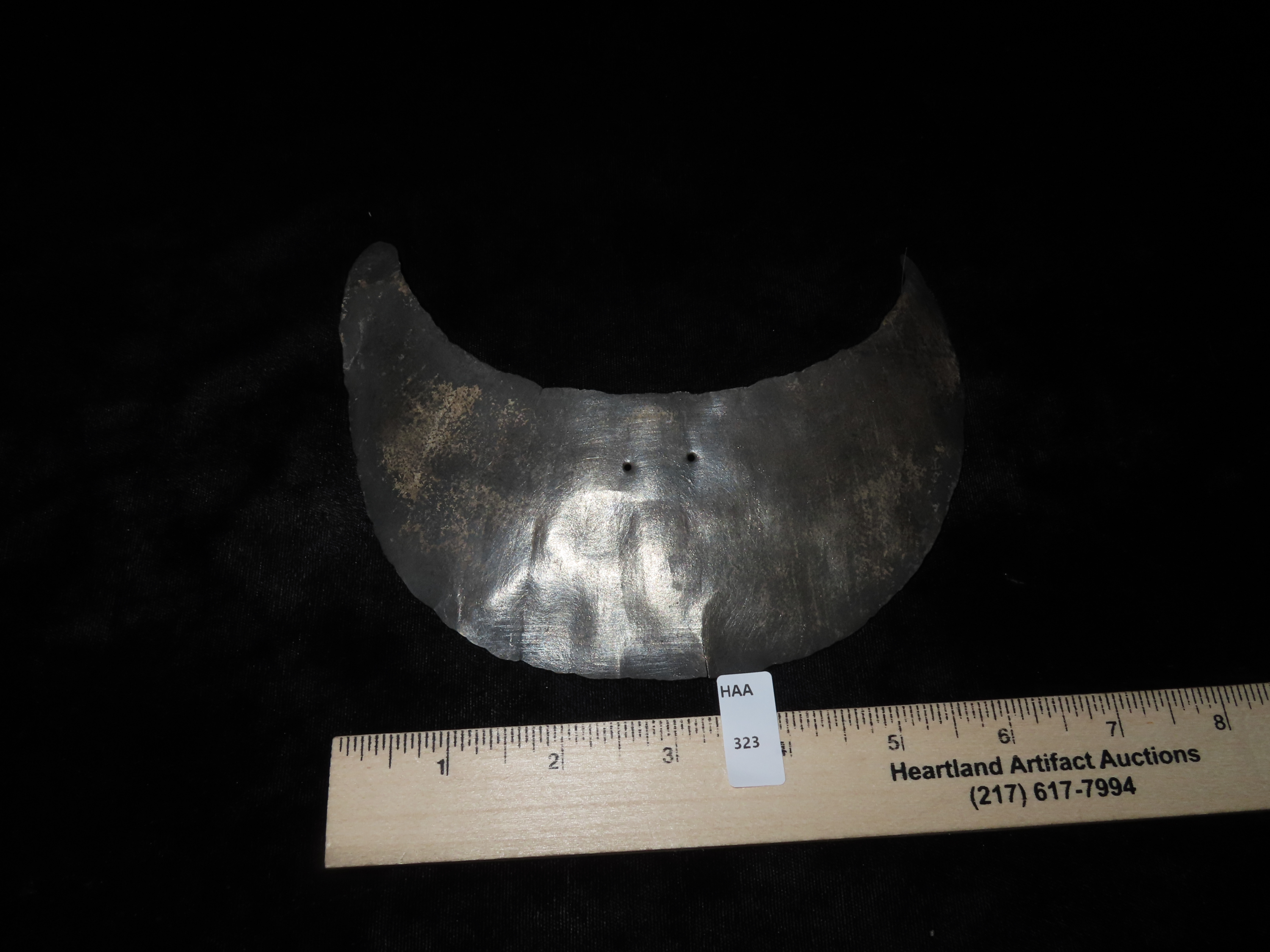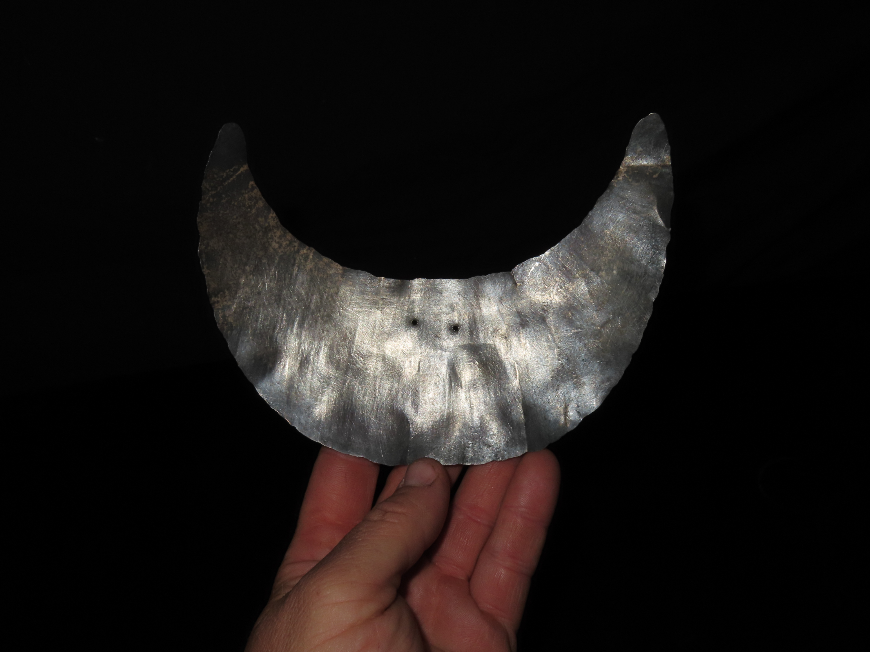 7″ INCA SILVER BREASTPLATE / GORGET WITH TWO SUSPENSION HOLES IN THE CENTER, PRE-COLUMBIAN FROM MEXICO / PERU