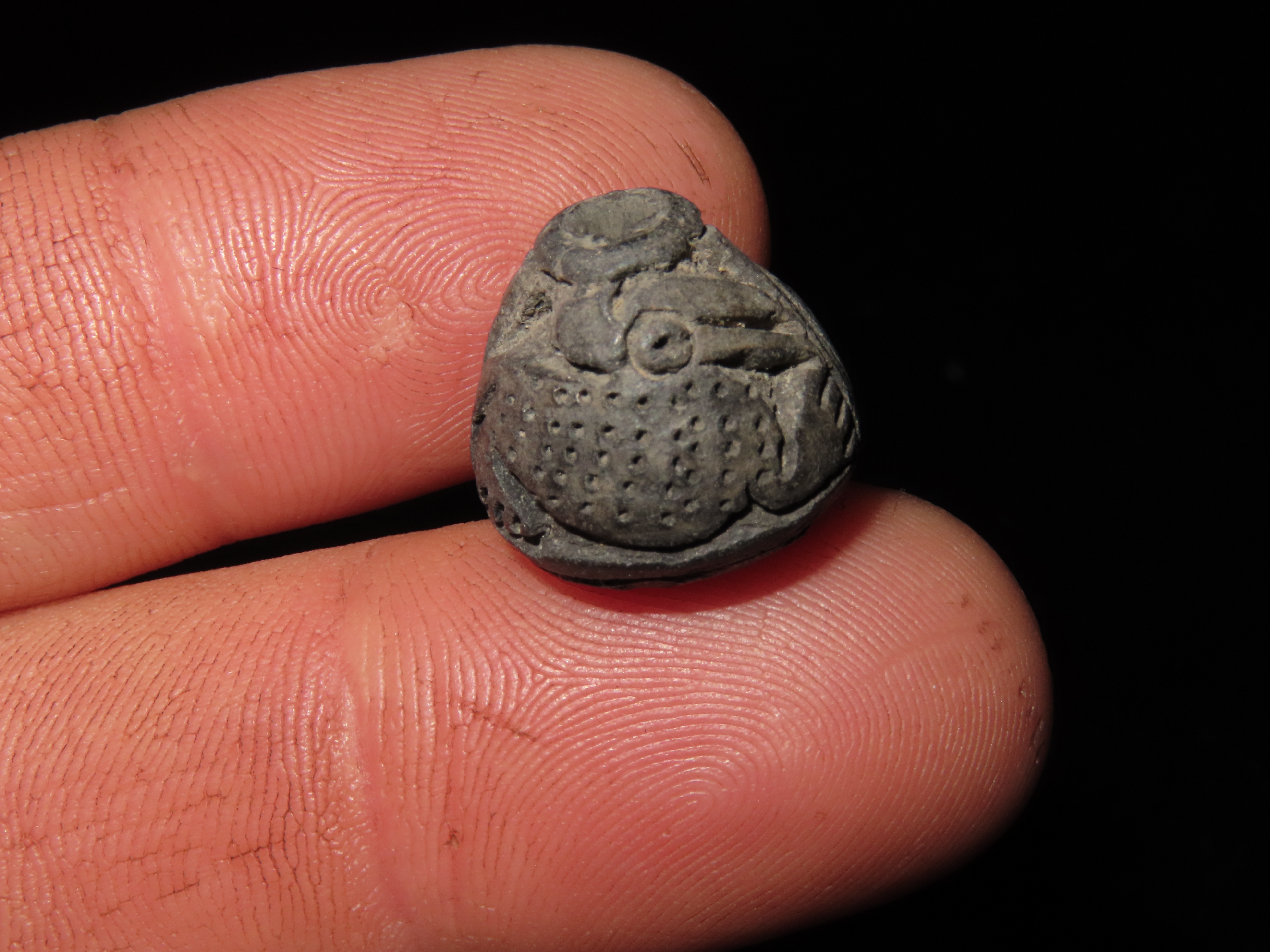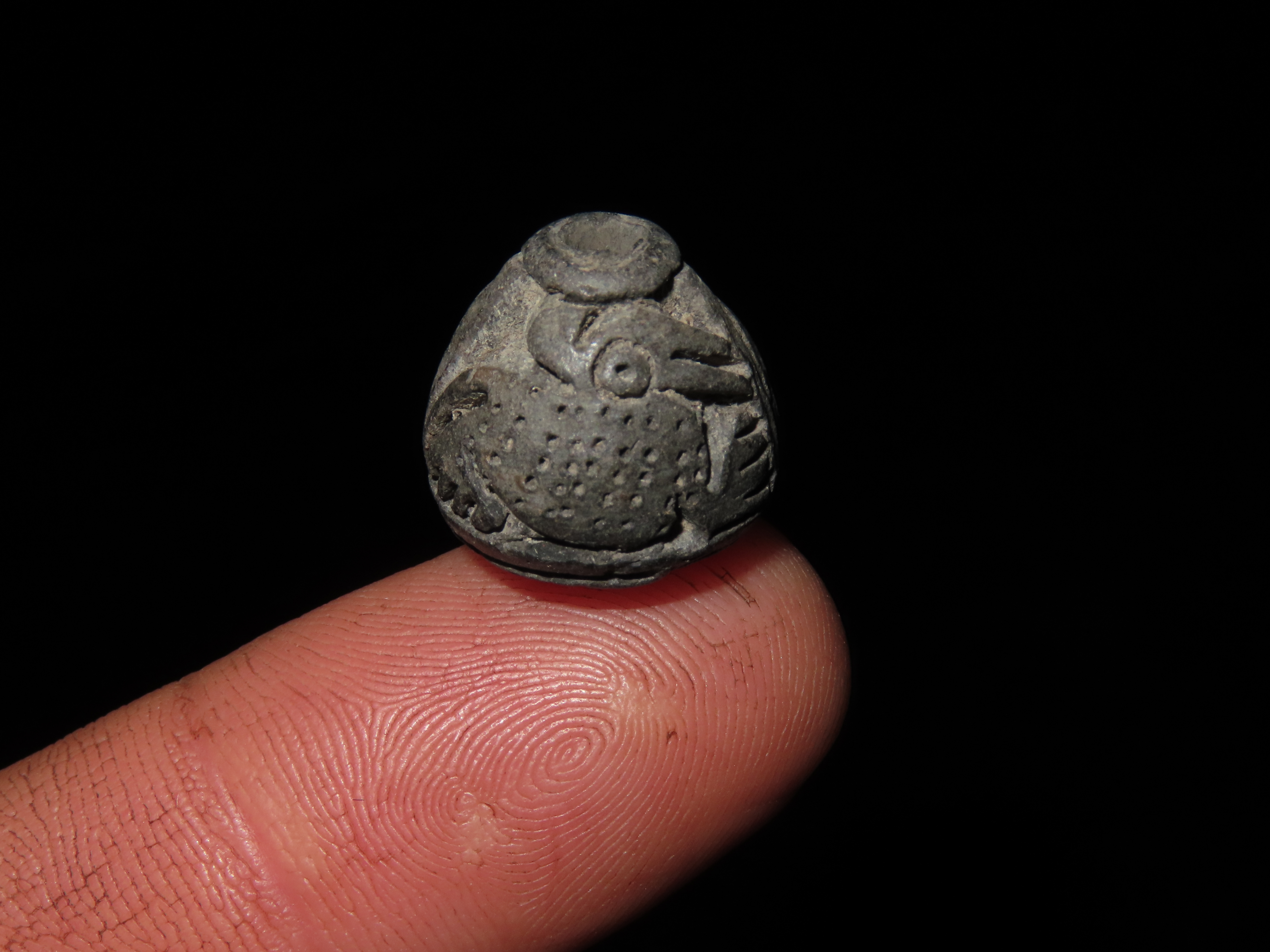 PRE-COLUMBIAN BIRD EFFIGY BEAD, VERY INTRICATE BIRD ENGRAVED ON BOTH SIDES, GREAT DETAILED EXAMPLE, MEXICO