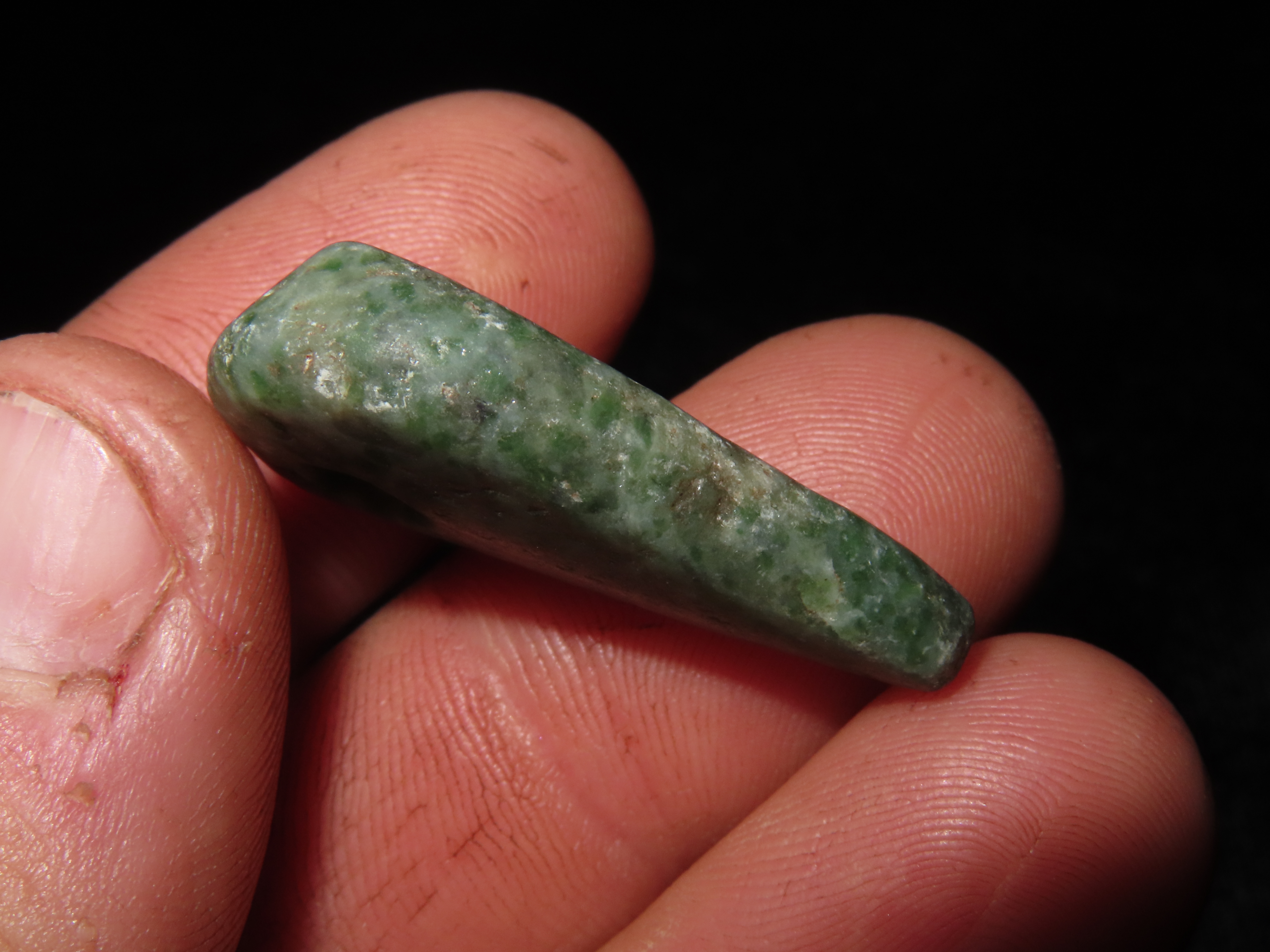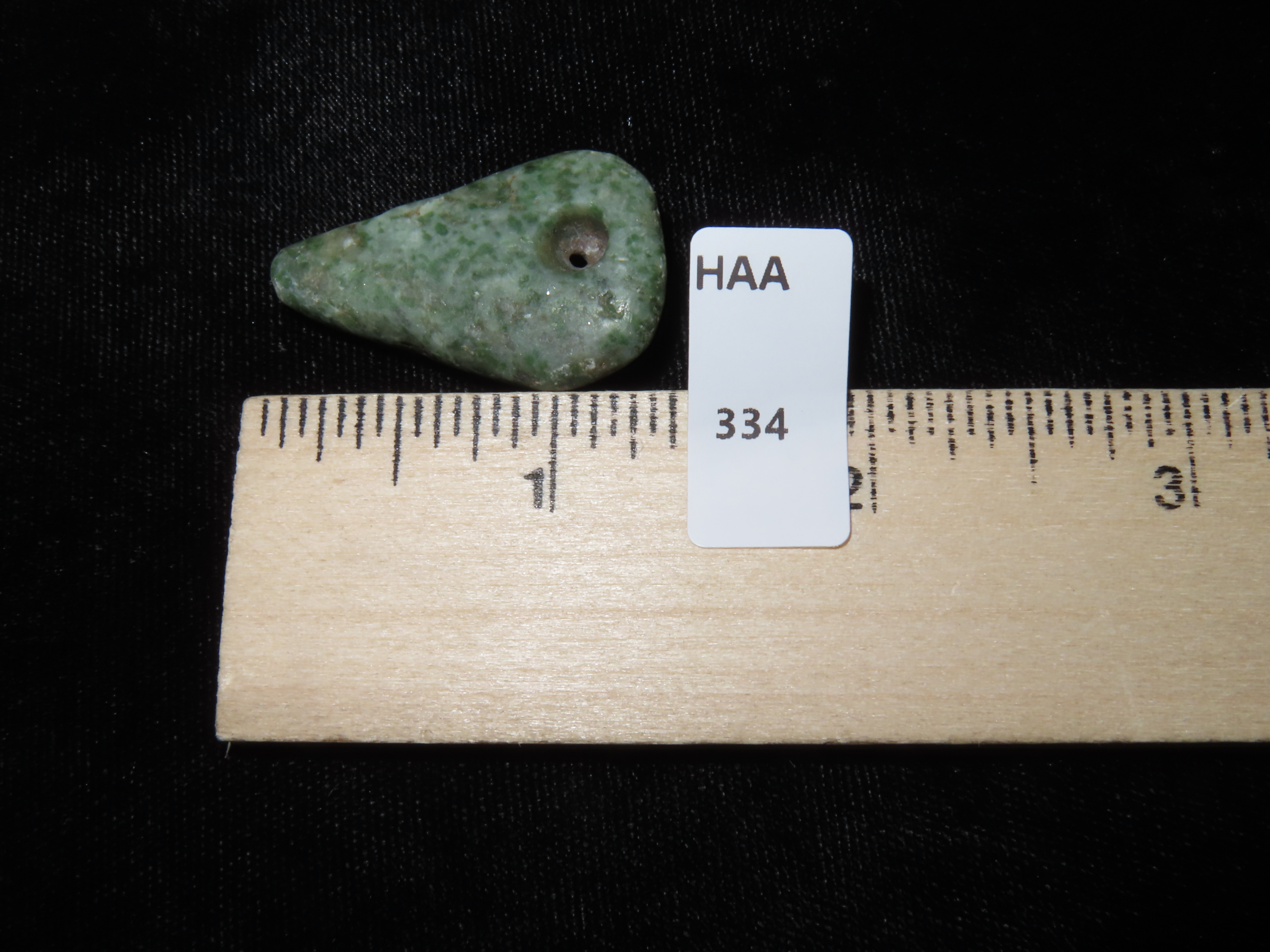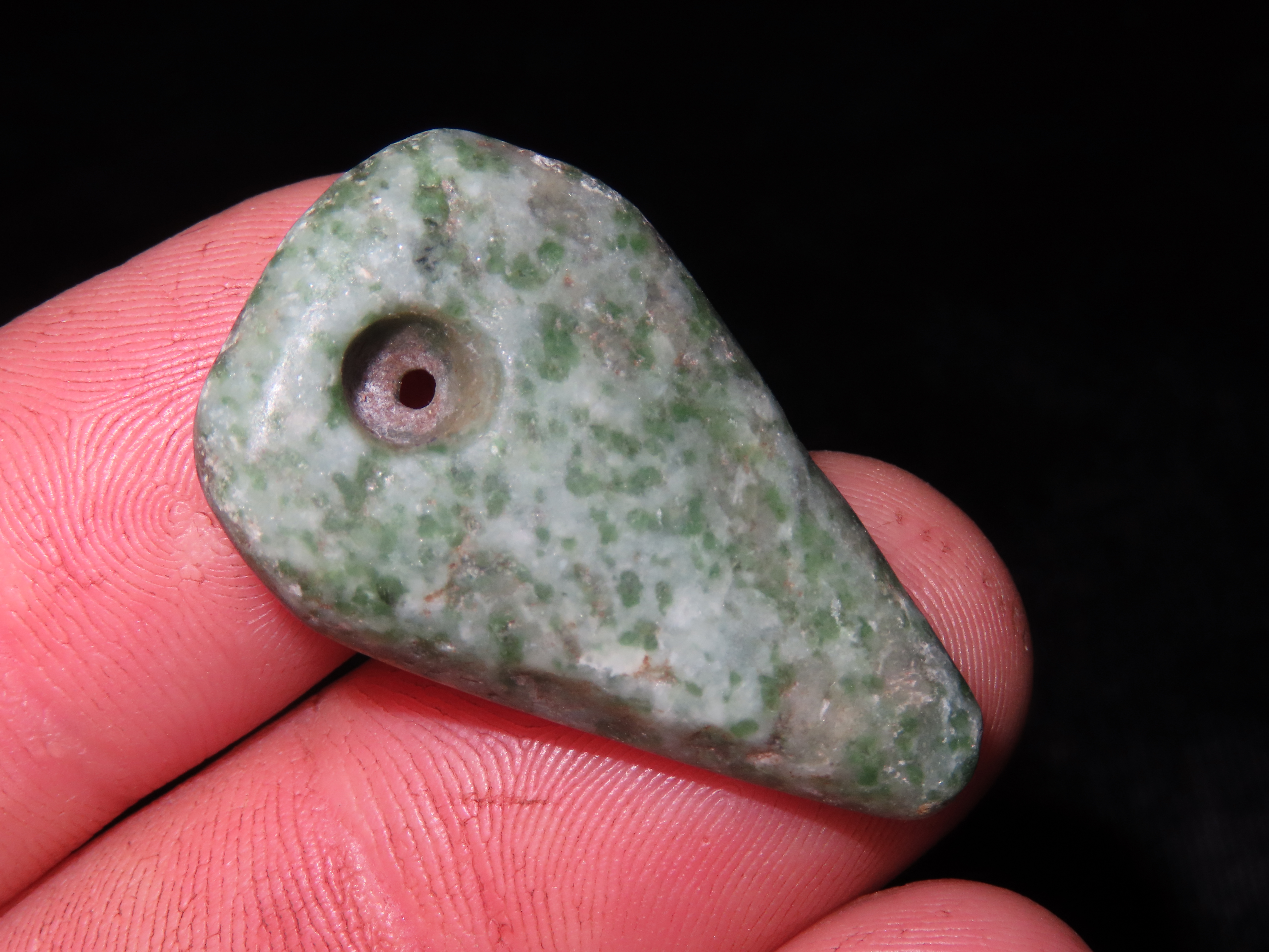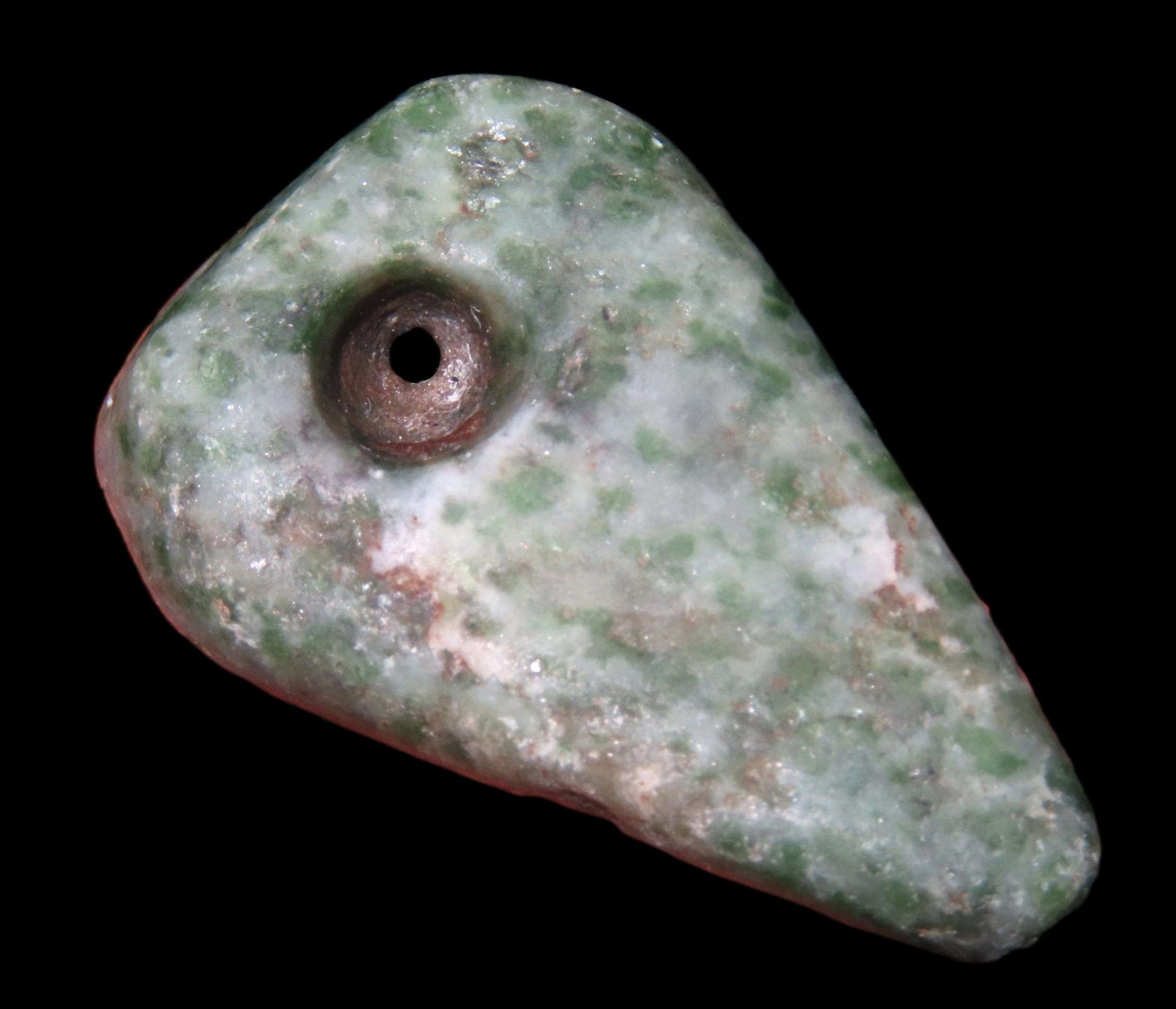 BEAUTIFUL MEZCALA JADE / JADEITE DRILLED STONE PENDANT, NICELY SHAPED AND WELL POLISHED, PRECOLUMBIAN MFROM MEXICO
