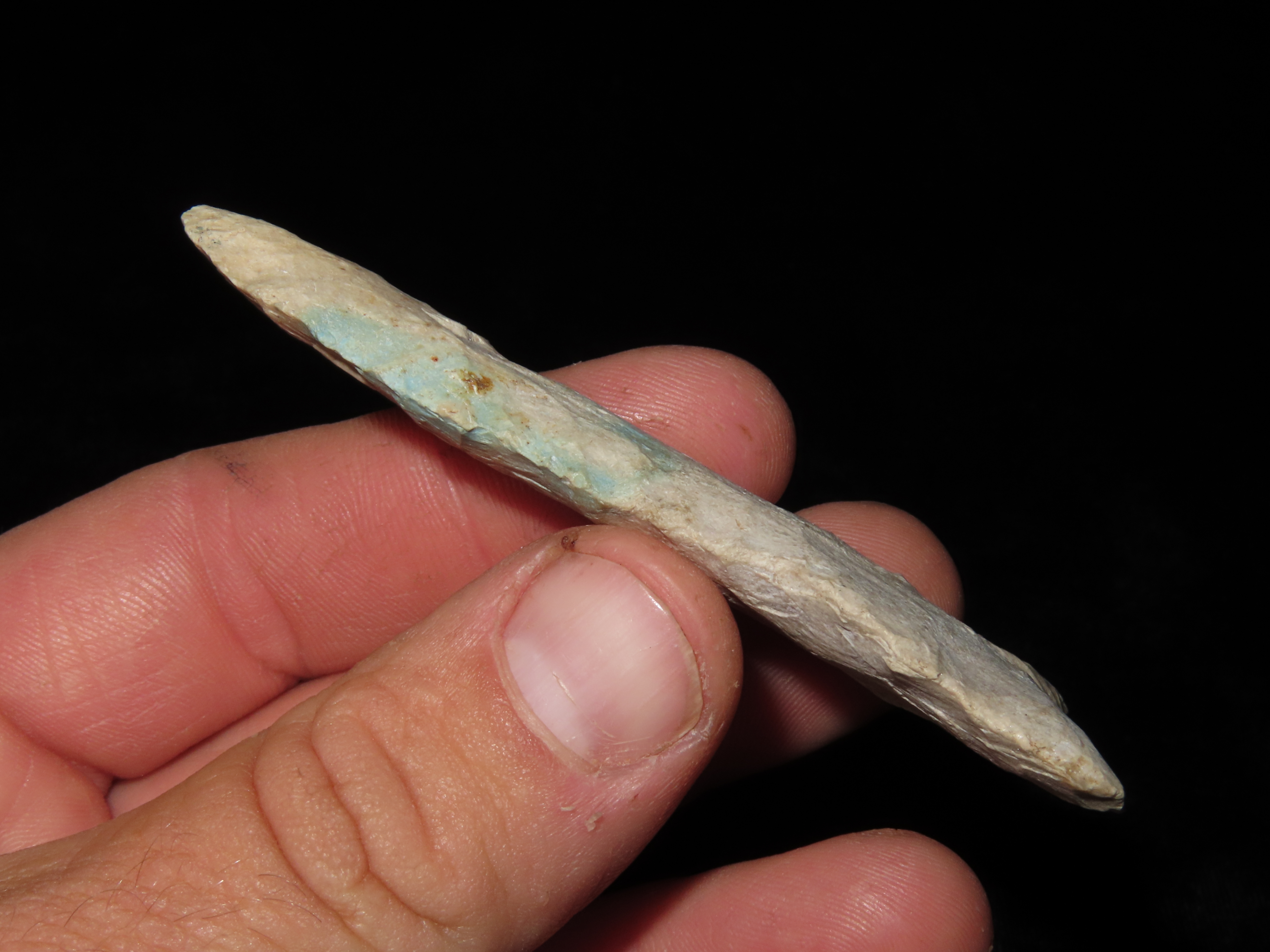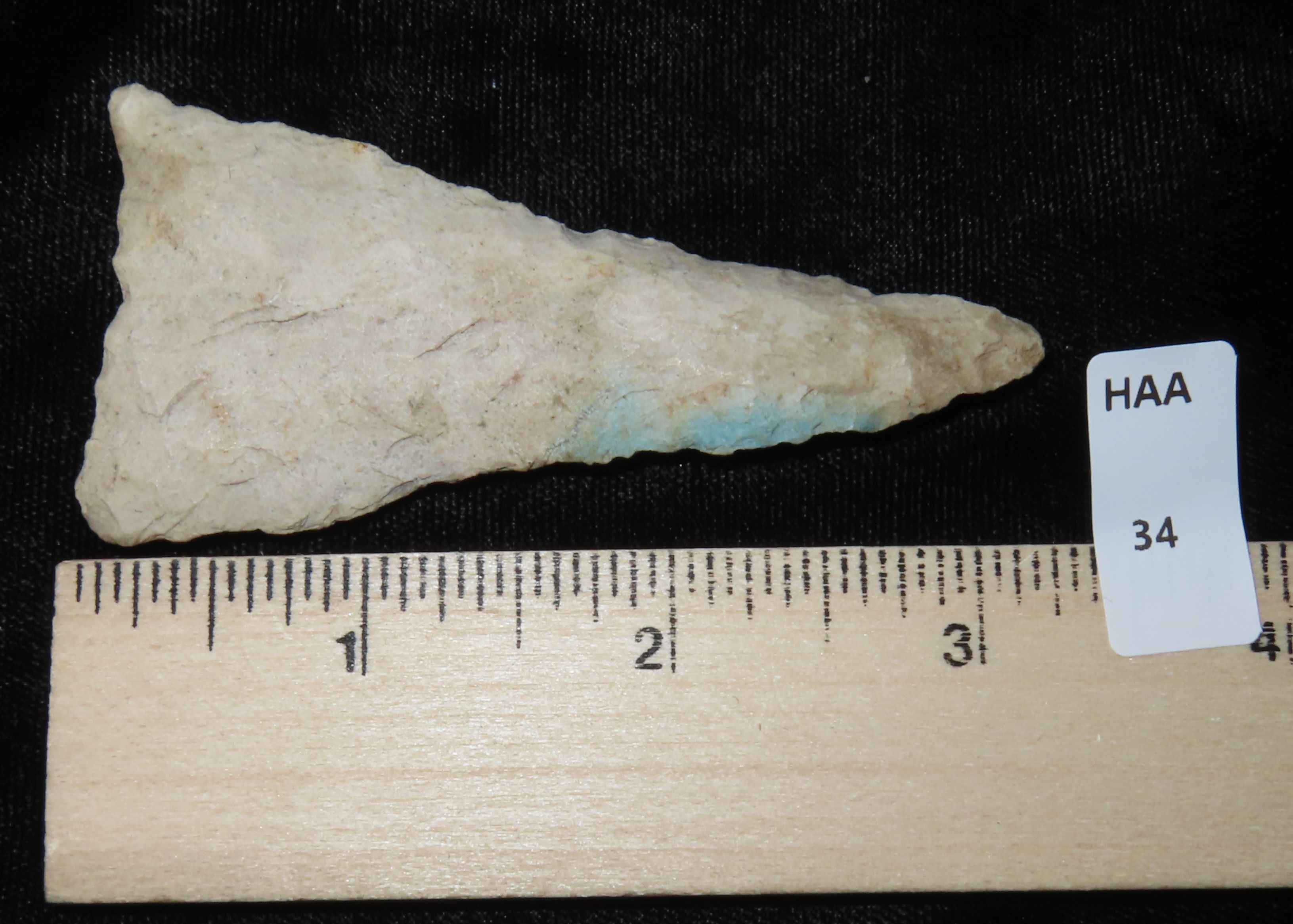 3 5/16″ DALTON FOUND IN PETTIS COUNTY MISSOURI, NICE LARGE EXAMPLE, WELL PATINATED, INDIAN ARROWHEAD, ARTIFACT