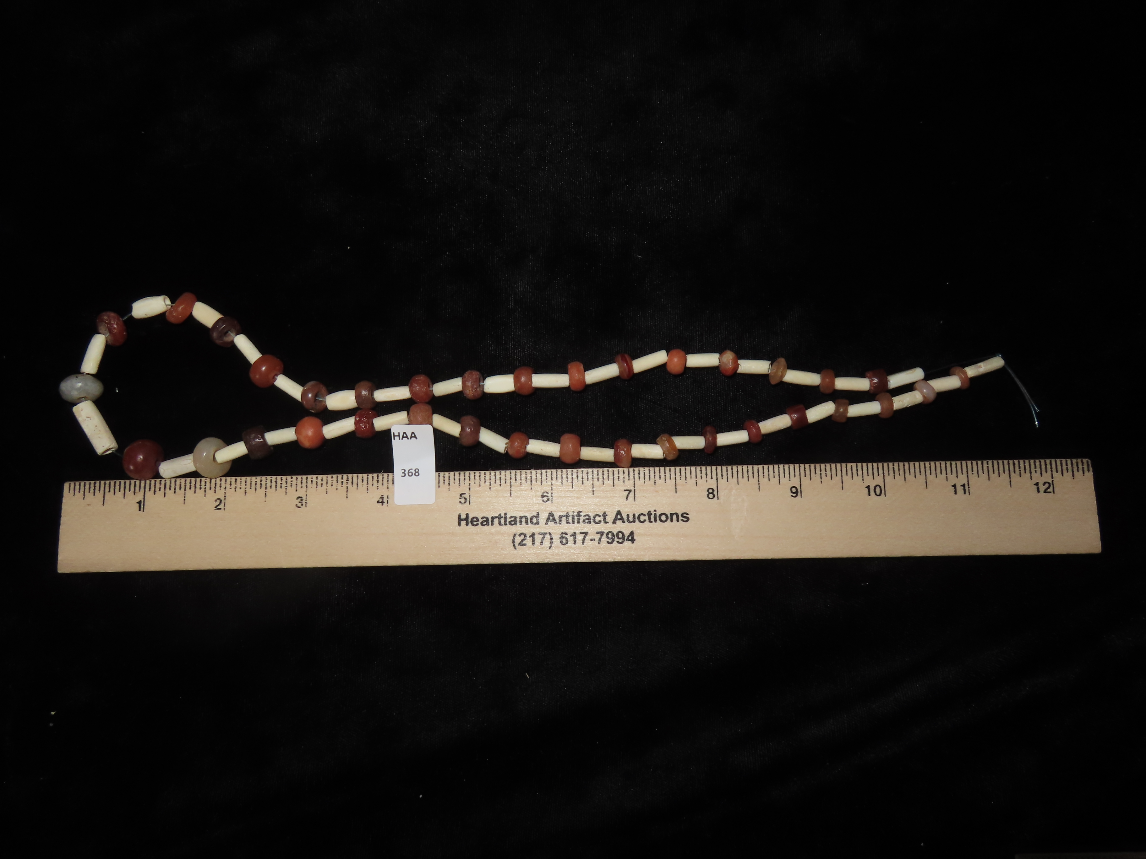 AMAZING 24″ QUARTZ & SHELL BEAD NECKLACE FROM MEXICO, PRE-COLUMBIAN, INCREDIBLE HIGHLY POLISHED RED & WHITE QUARTZ BEADS WITH NICE LONG SHELL TUBE BEAD SPACERS