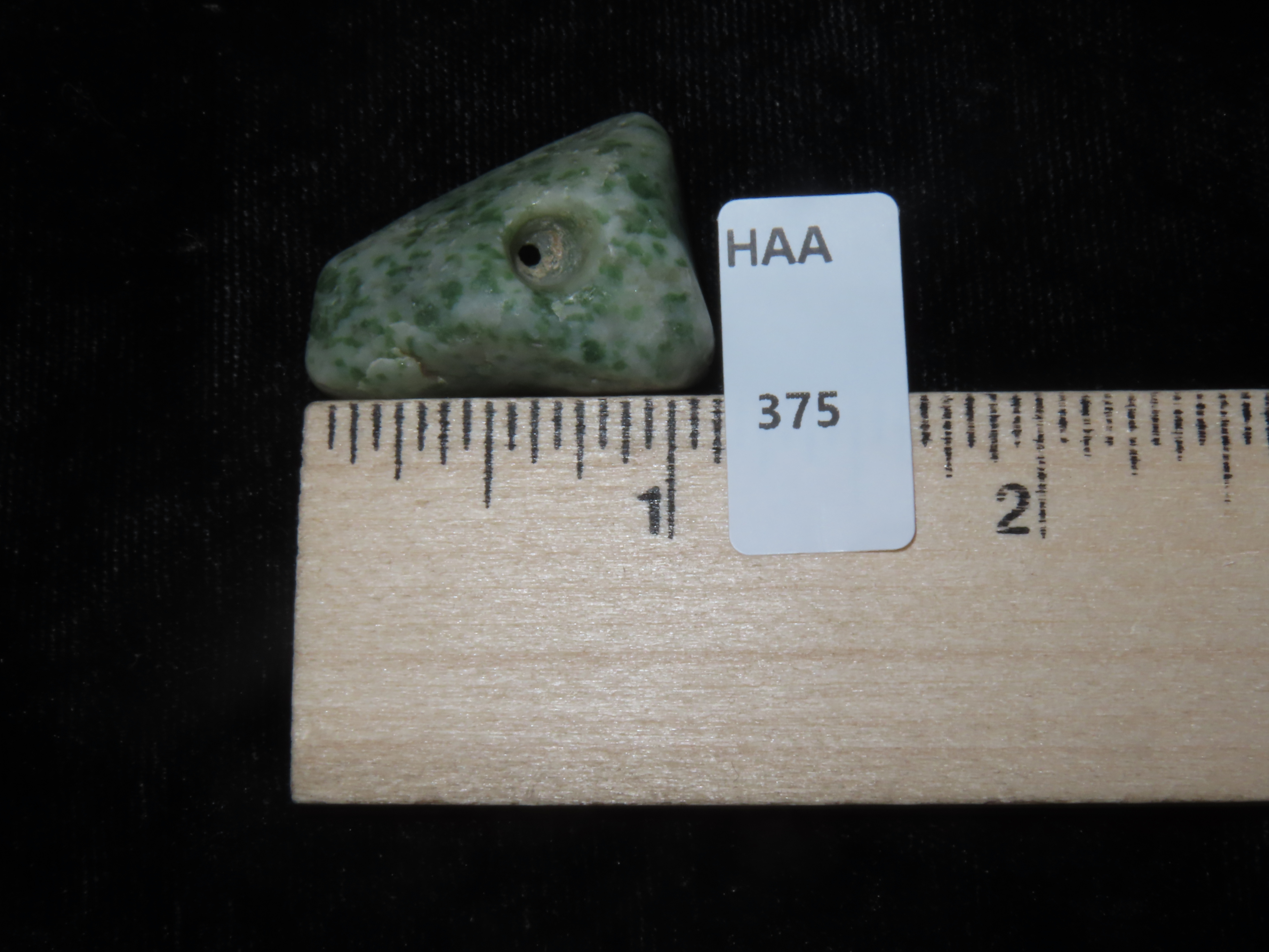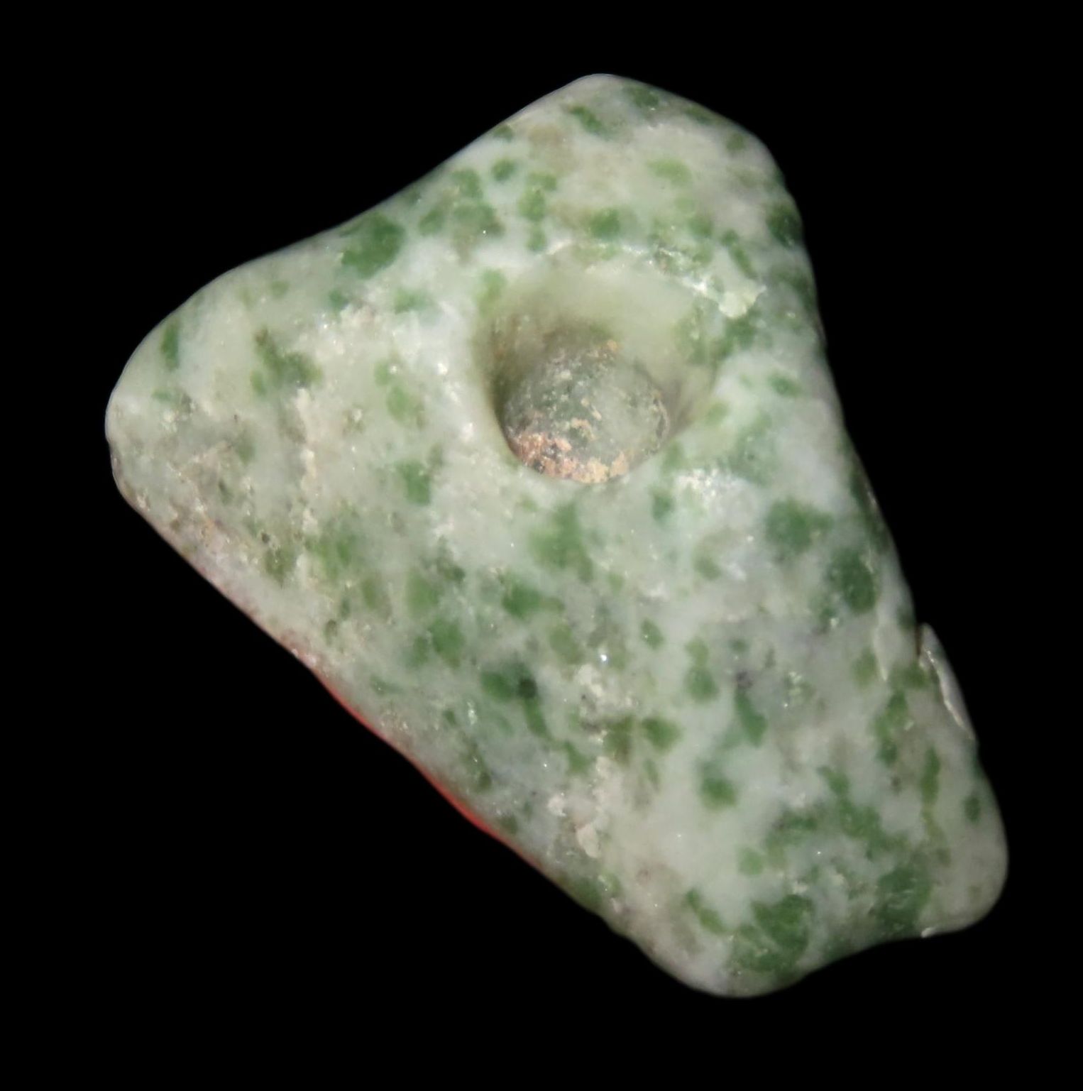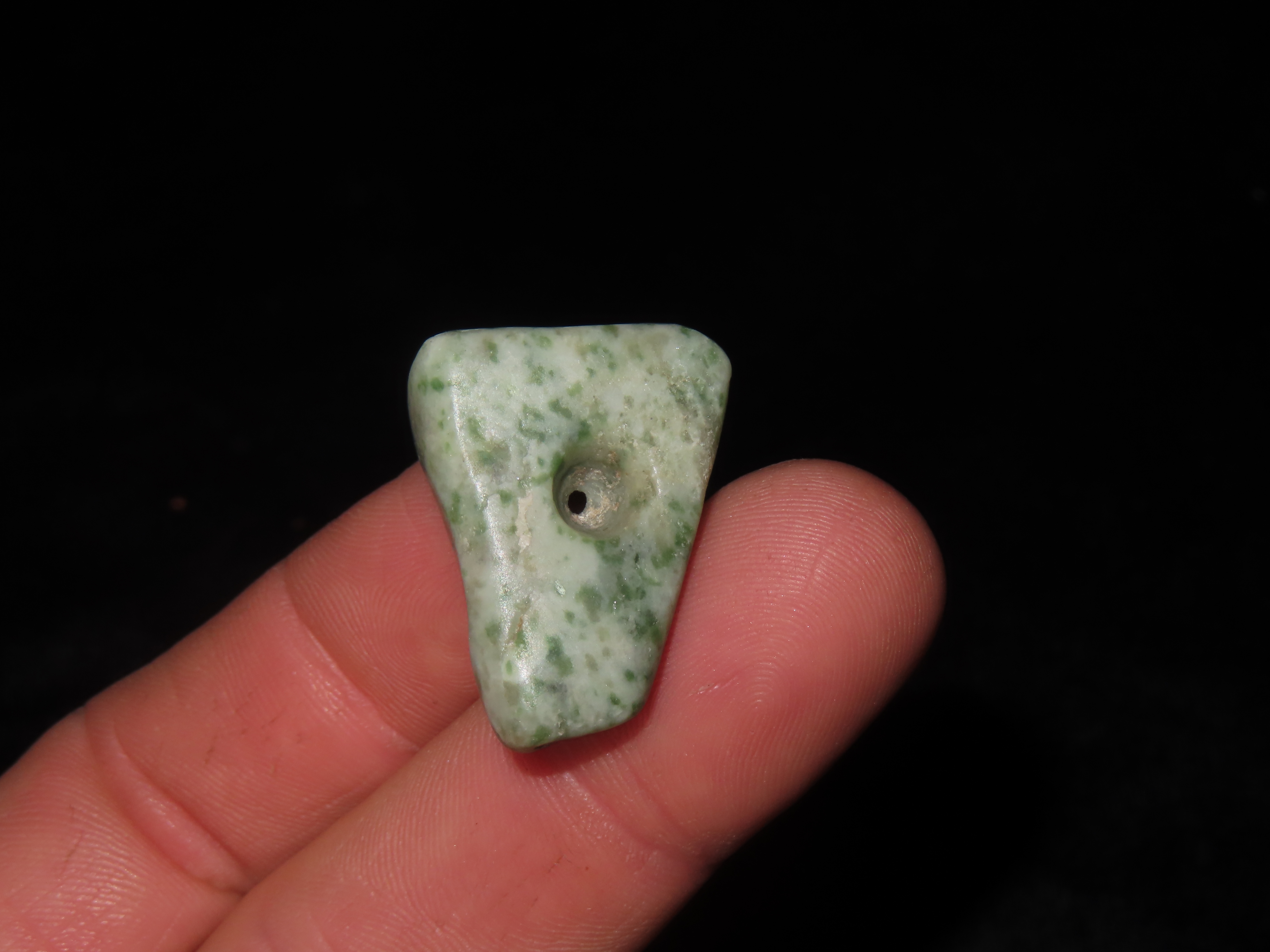 LARGER COLORFUL JADEITE MEZCALA PENDANT FROM MEXICO, DRILLED STONE BEAD WITH GREAT COLOR & NICE POLISH