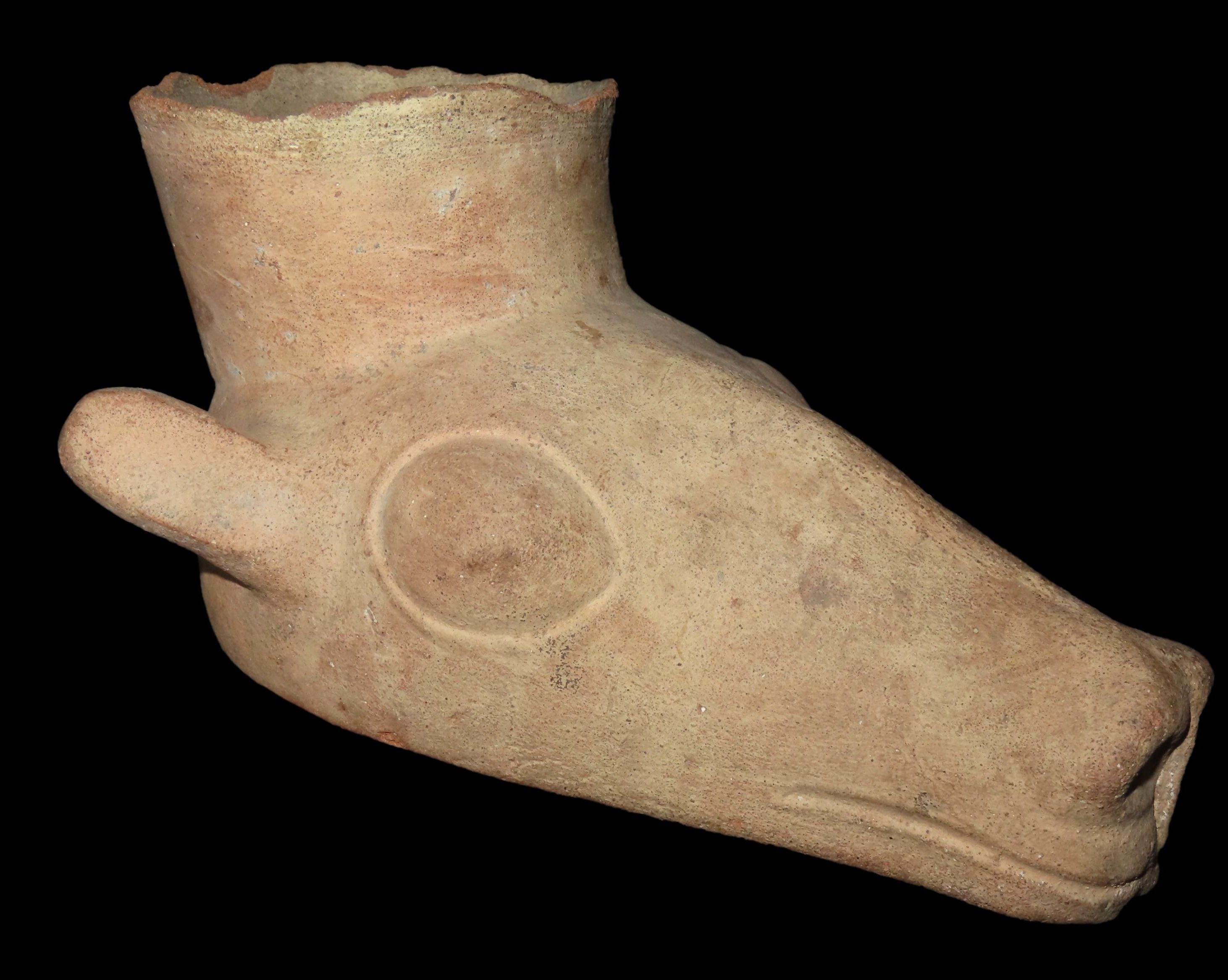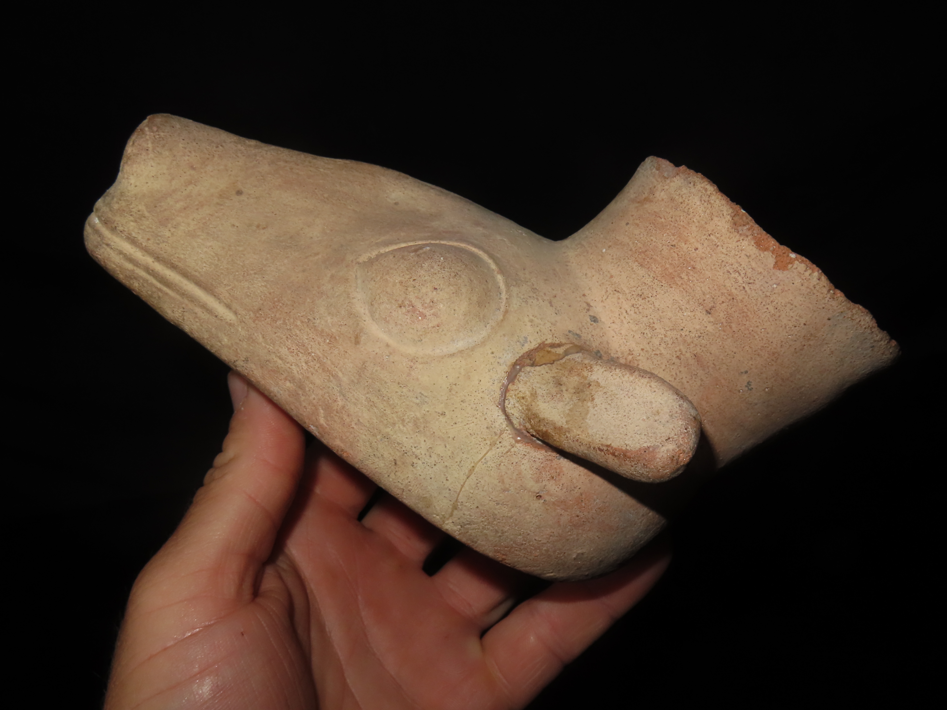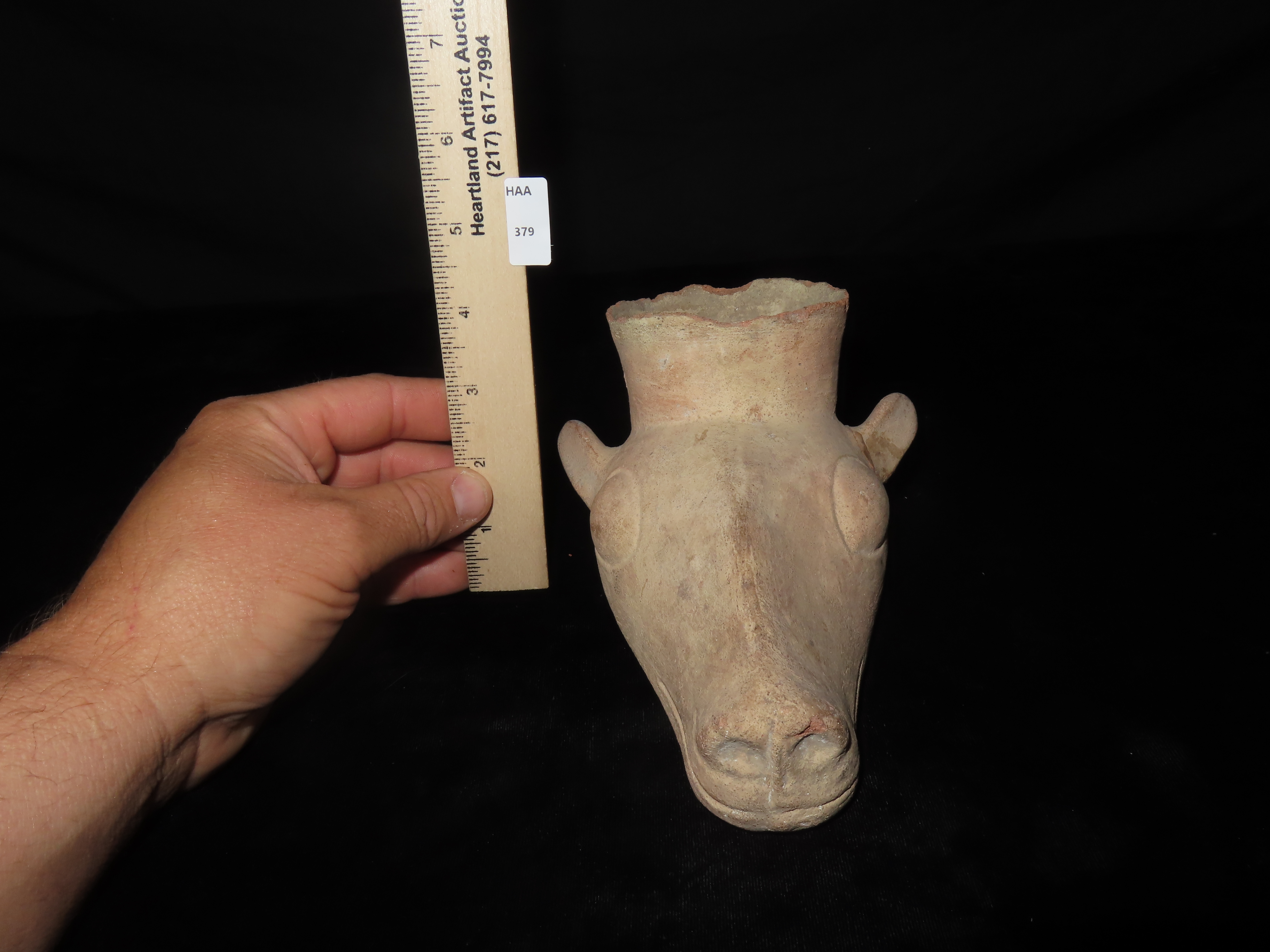 INCREDIBLE 7 1/2″ LLAMA / DEER EFFIGY POT FROM PERU, VERY DETAILED EXAMPLE, PRE-COLUMBIAN POTTERY BOWL, JAR, VESSEL, ONE EAR IS GLUED BACK ON