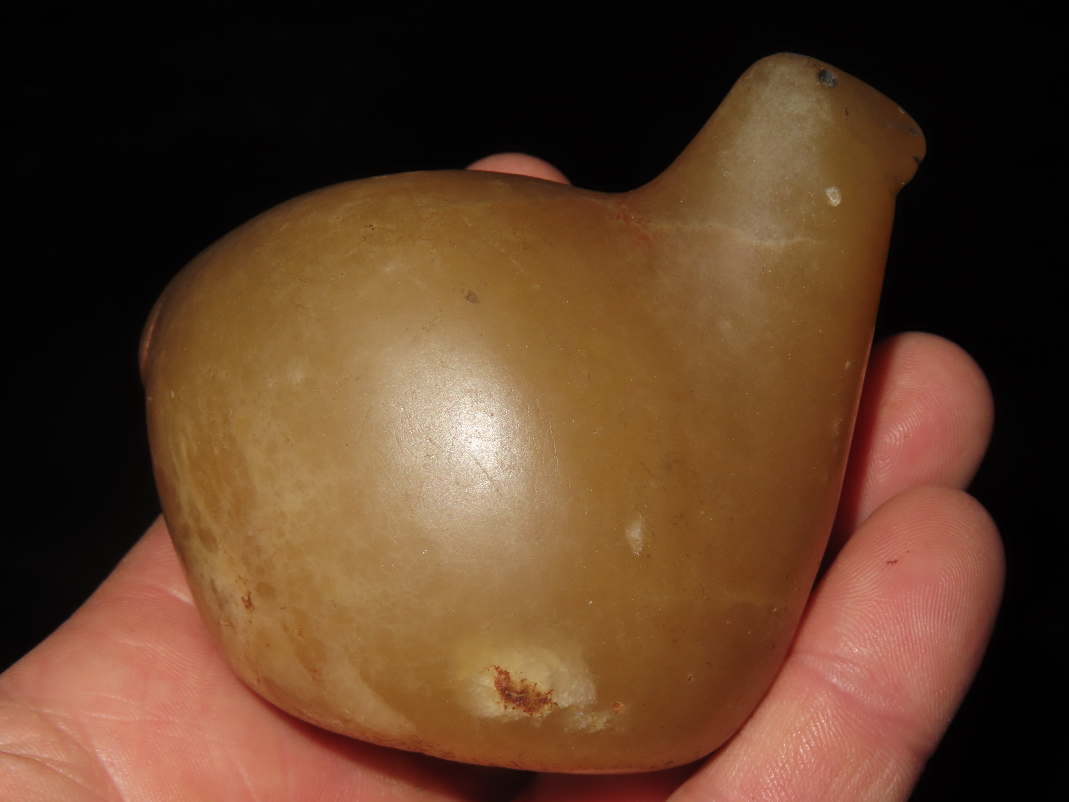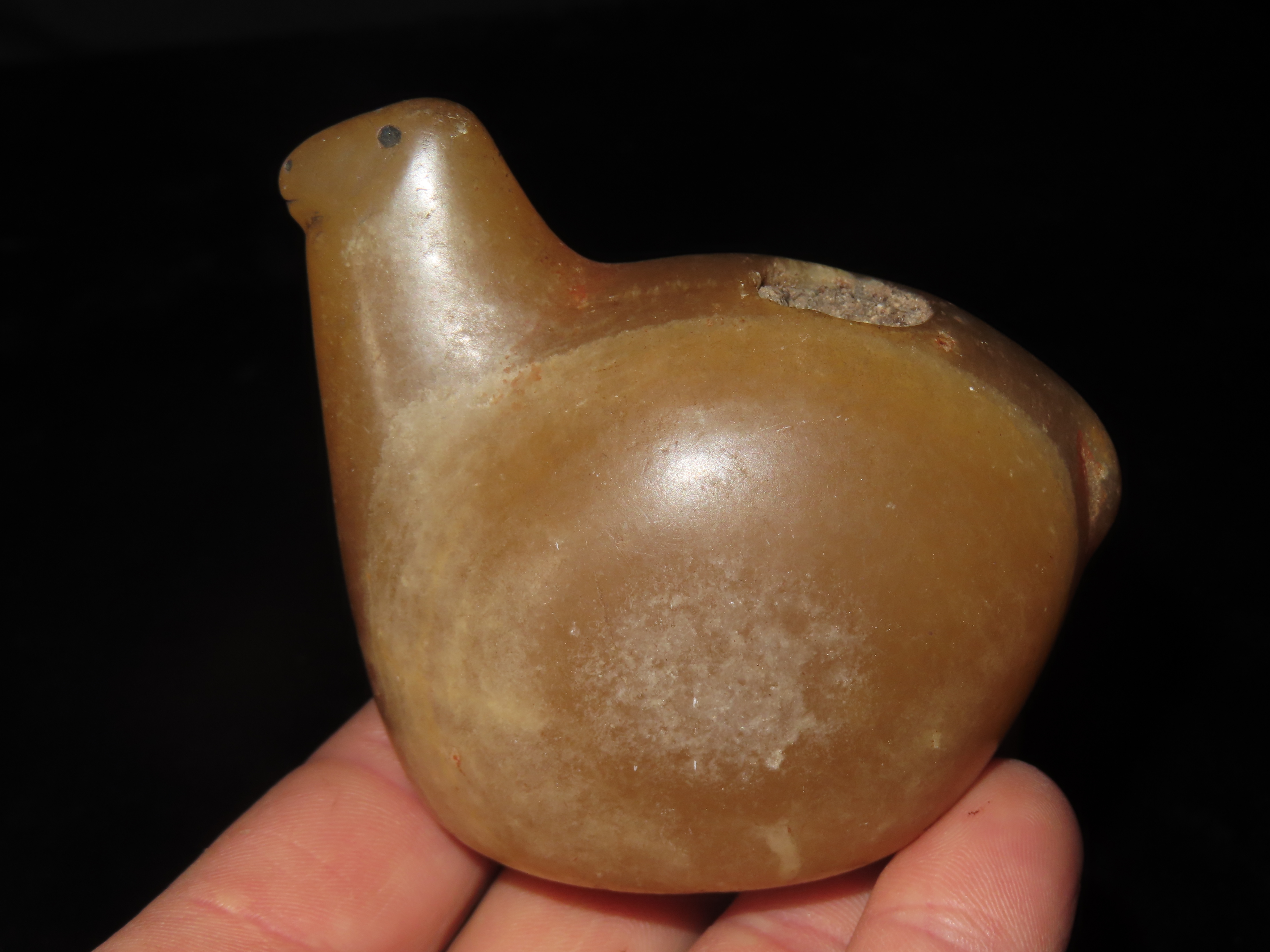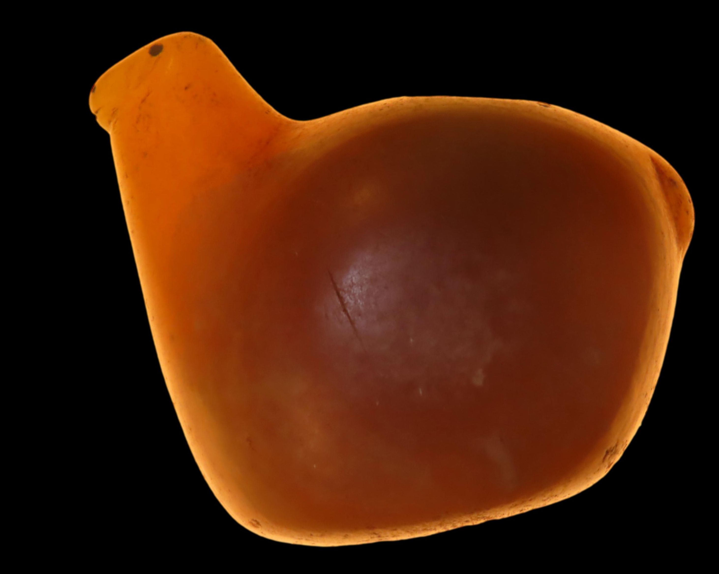 TRANSLUCENT QUARTZ OE ONYX CANOPA, HIGHLY POLISHED EXAMPLE, NO BRAINER AGE & PATINA, FOUND IN PERU, LLAMA VOTIVE CONTAINER