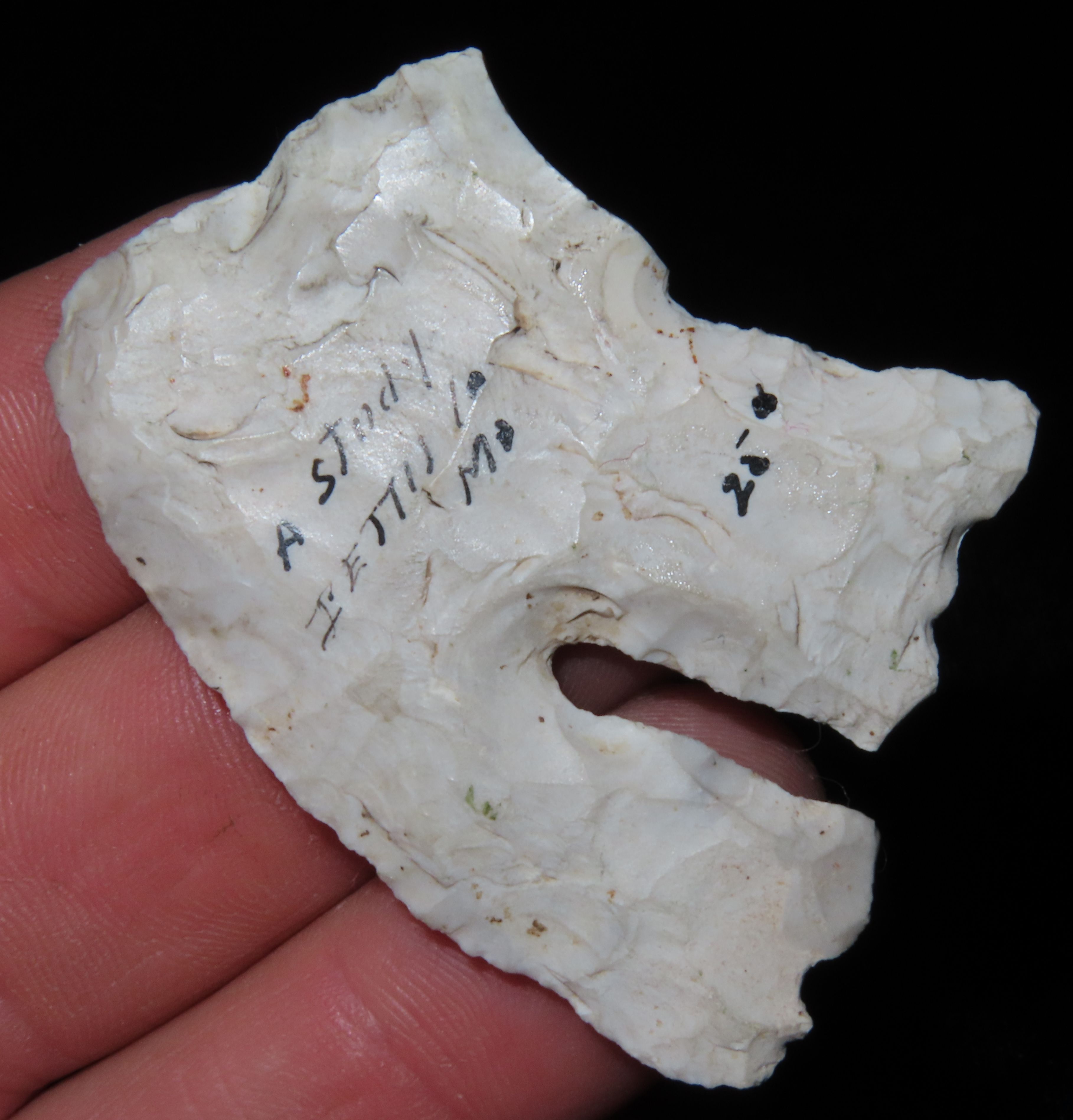 2 1/8″ CALF CREEK FOUND IN PETTIS COUNTY MISSOURI, AMAZING DEEP NOTCHES, CLASSIC EXAMPLE, VERY THIN, INDIAN ARROWHEAD, ARTIFACT