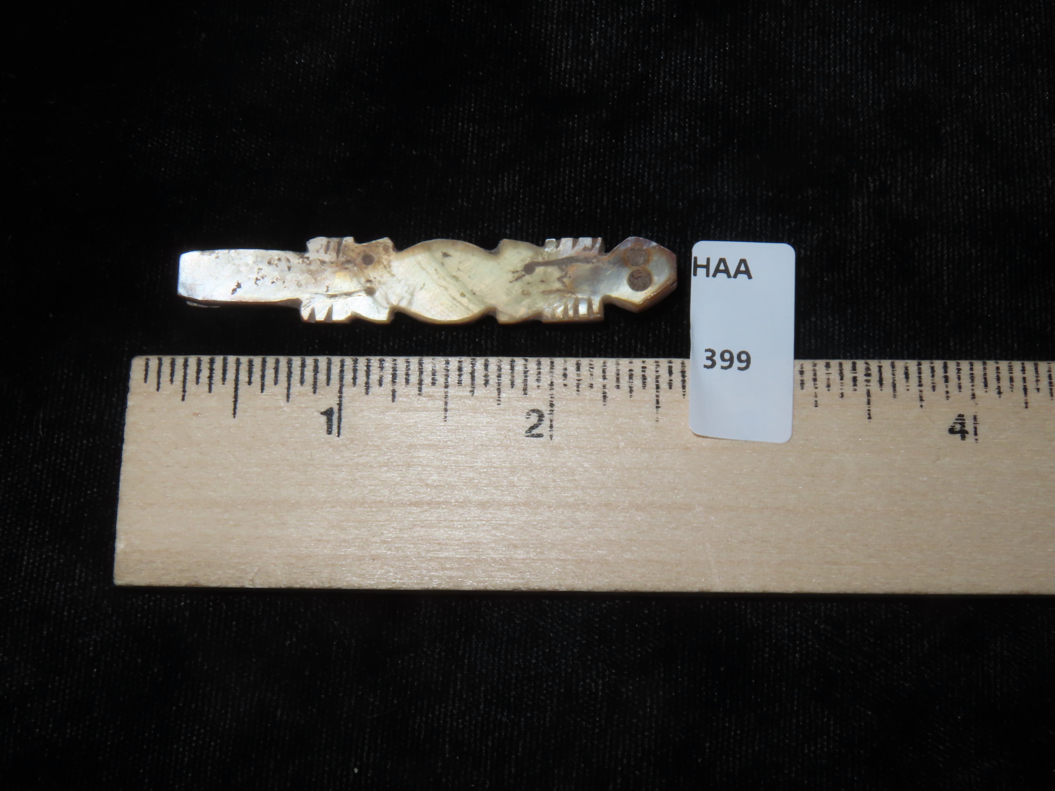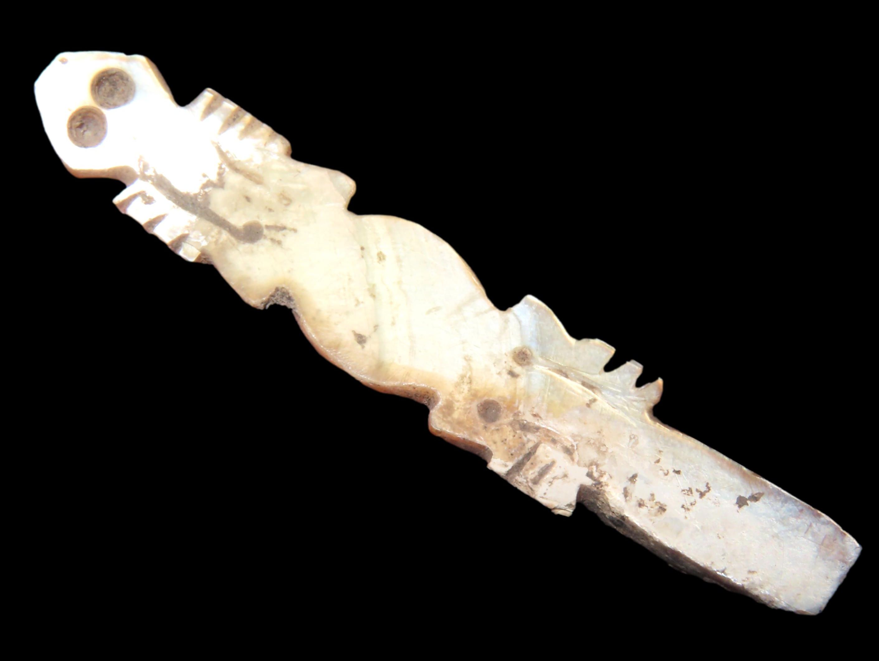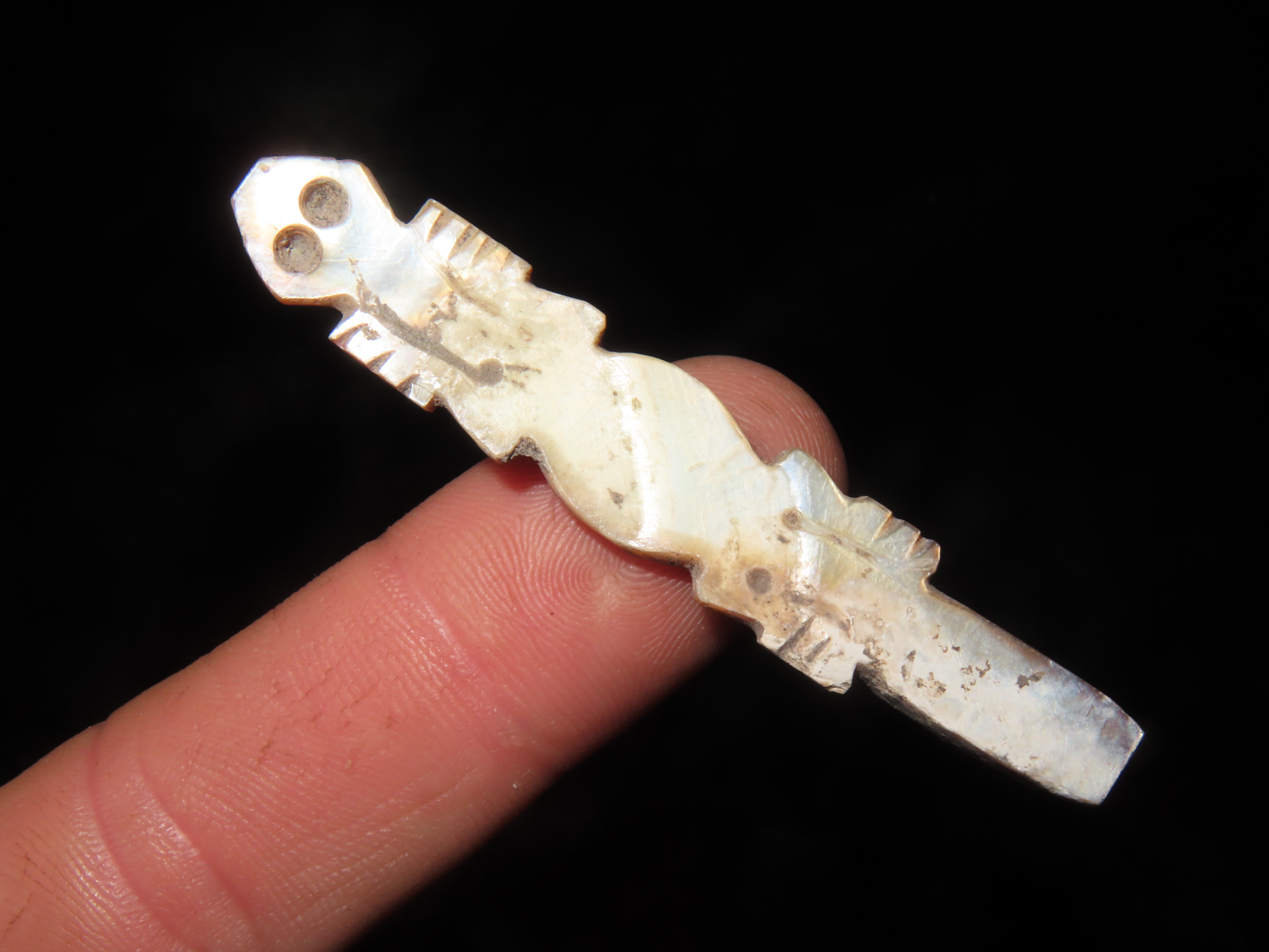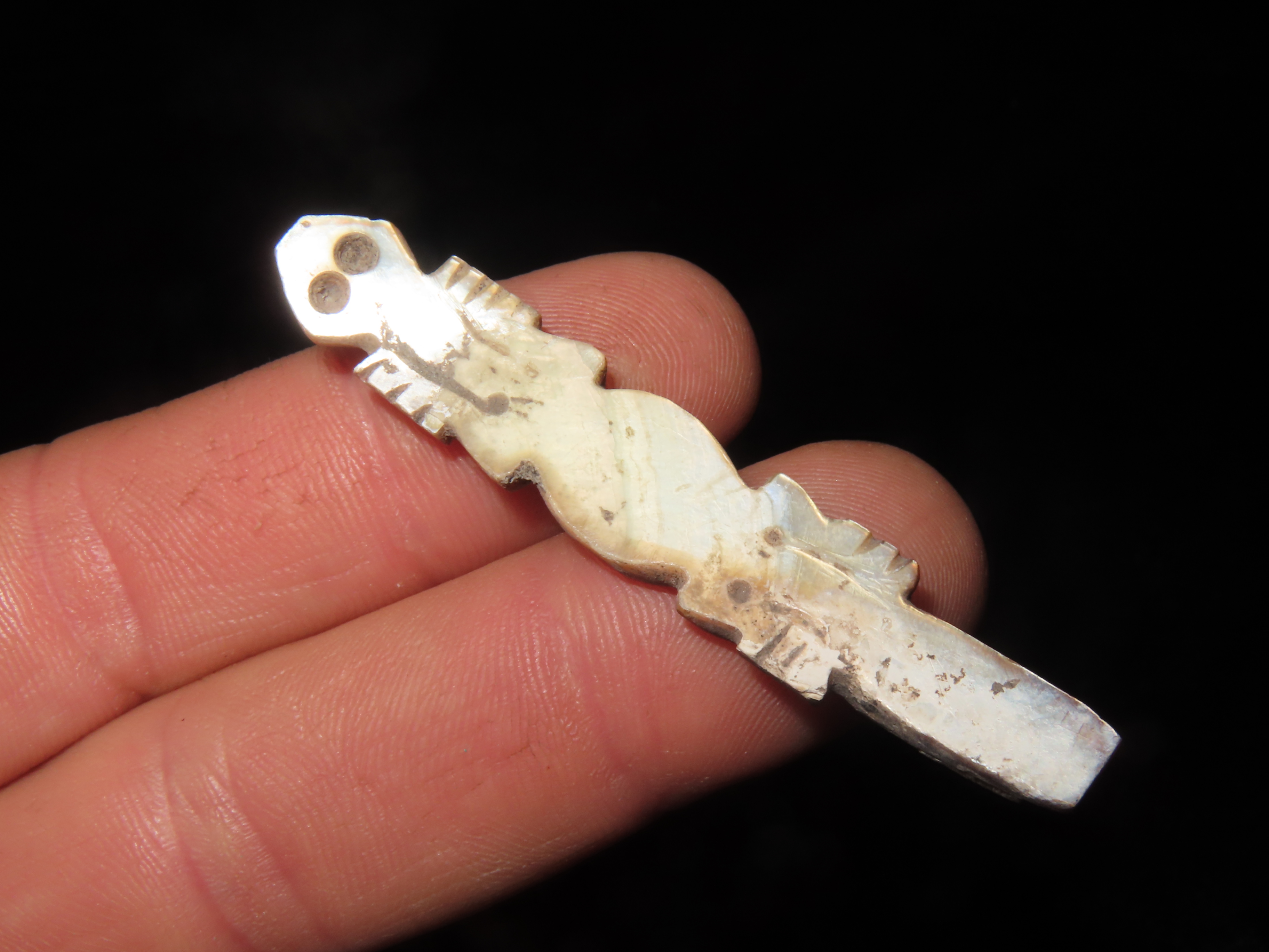 2 7/16″ SHELL LIZARD EFFIGY PENDANT FROM MEXICO, COLIMA CULTURE, CIRCA 200BC-200-AD, EX DR HARNER COLLECTION