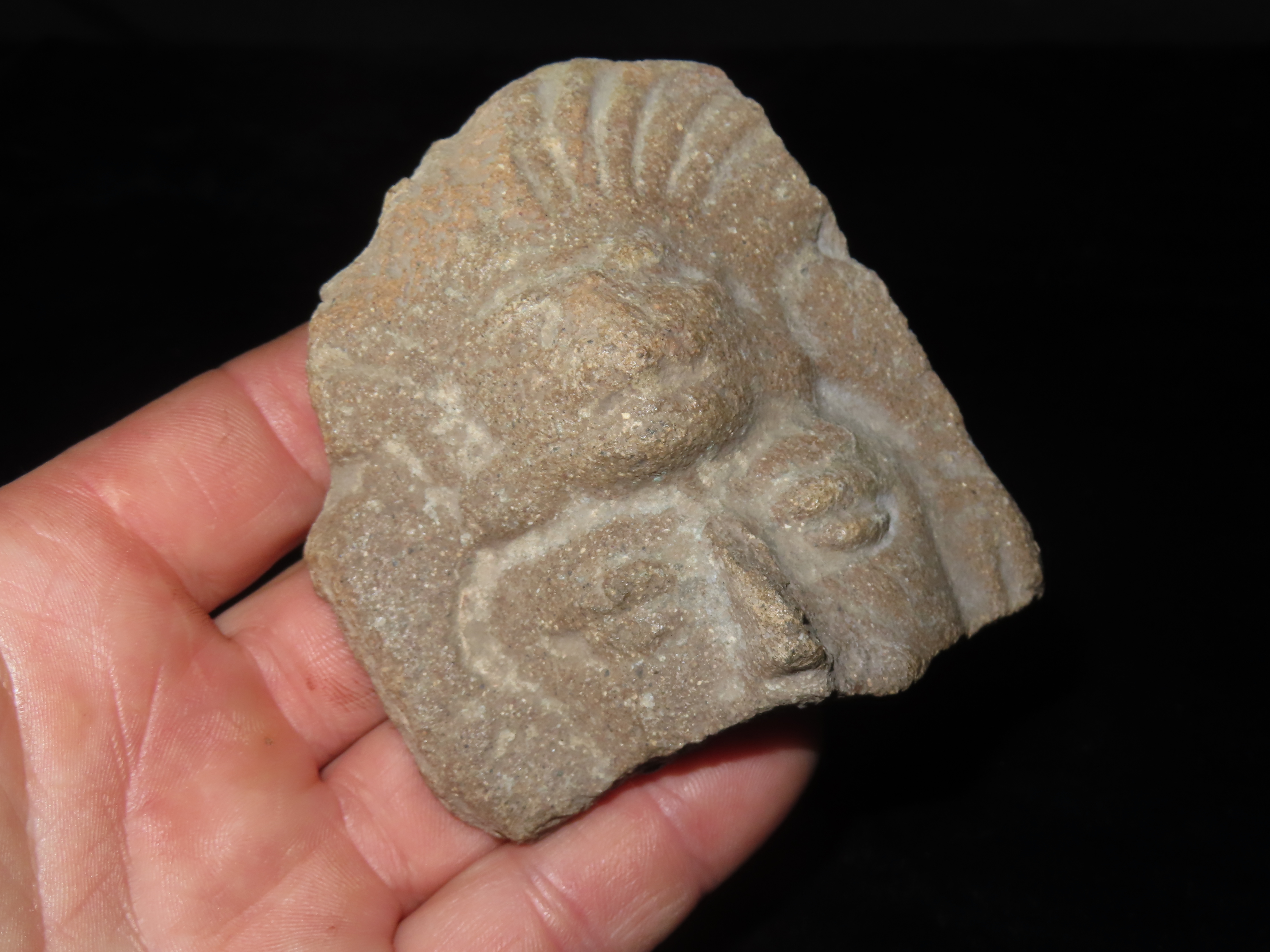 LARGE DETAILED AZTEC HUMAN HEAD OFF A LARGER FIGURE, VERY NICE DESIGN, GIVES A GLIMPSE INTO WHAT THEY LOOKED LIKE BACK THEN