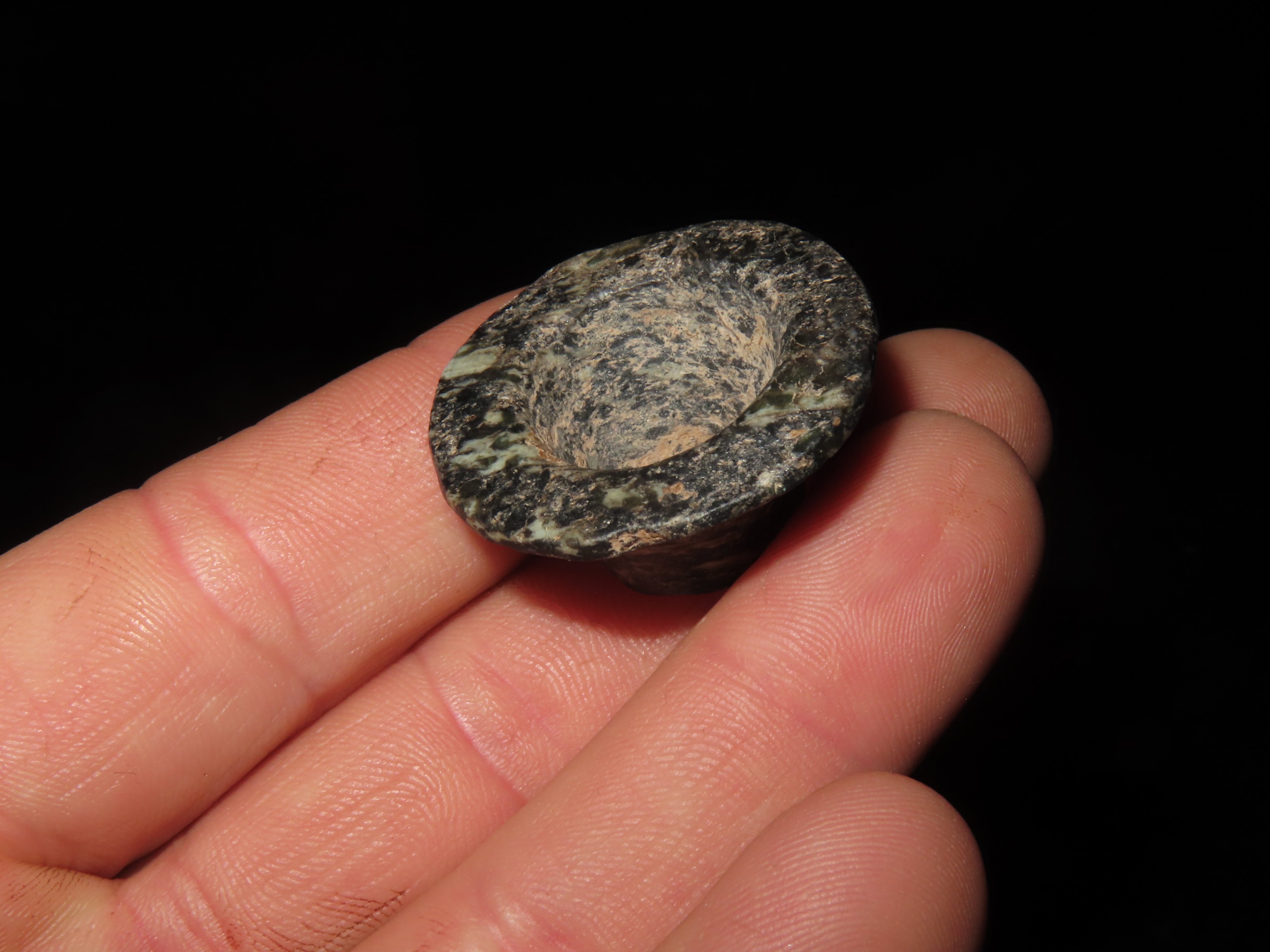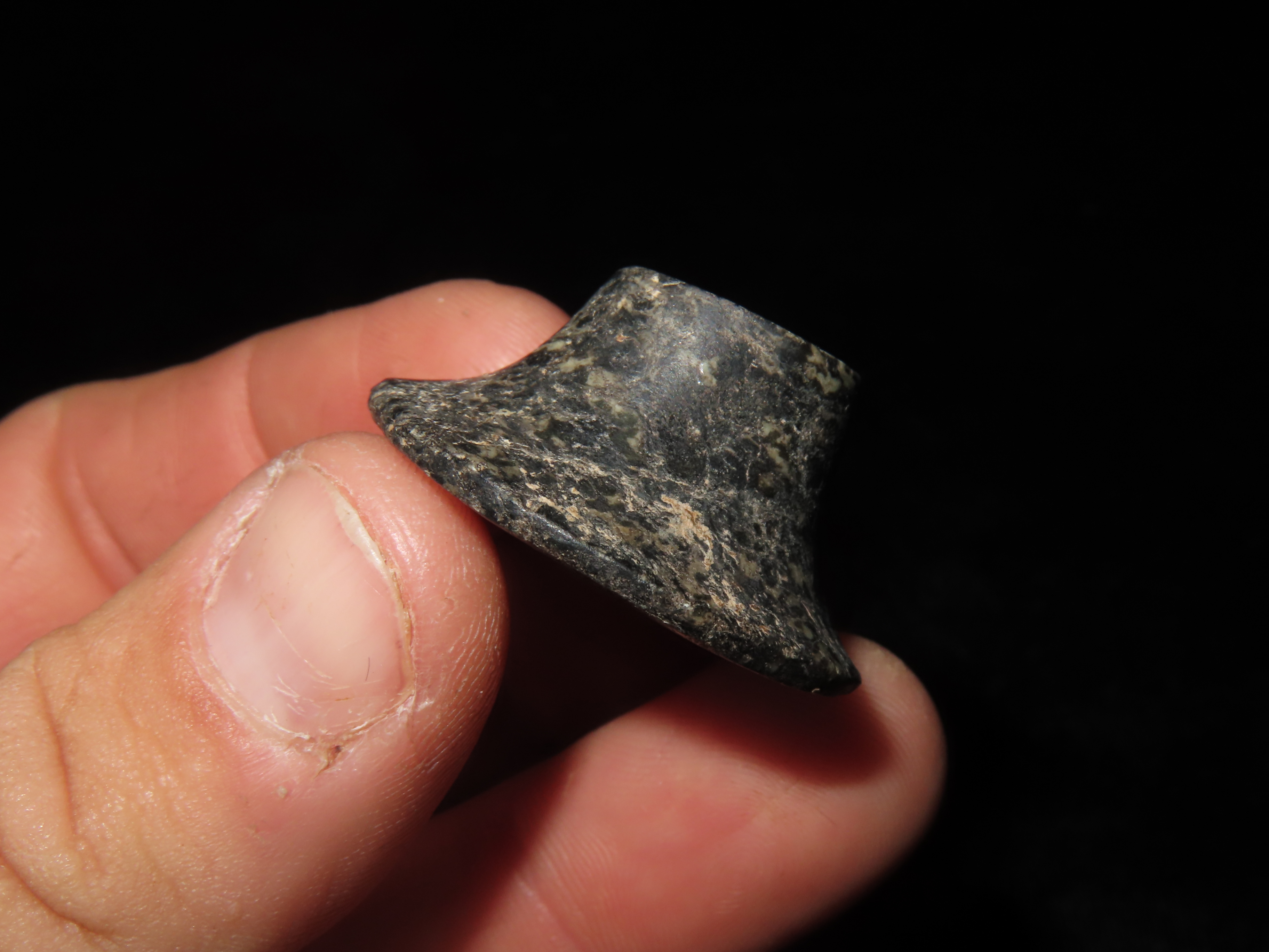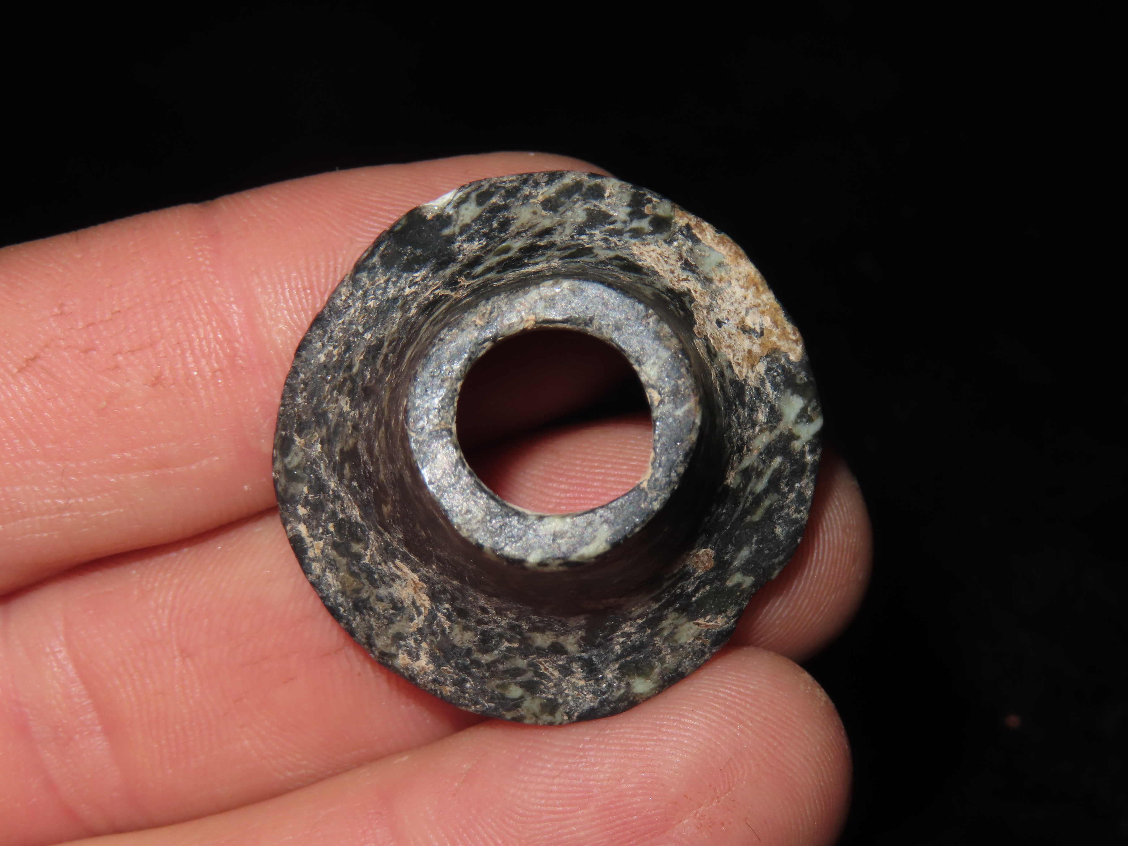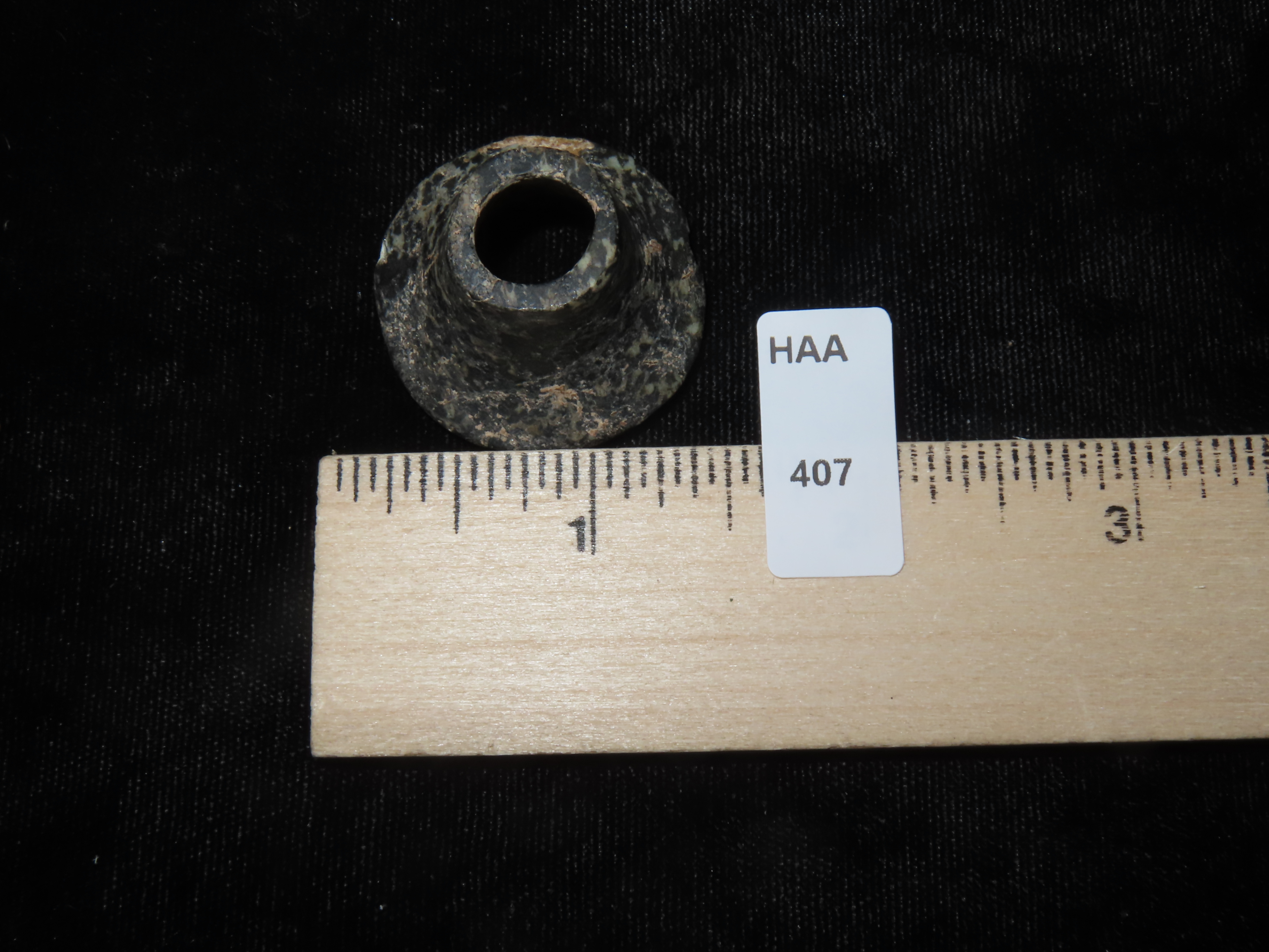 1 5/16″ PRECOLUMBIAN MAYAN JADEITE EAR SPOOL / FLARE FROM MEXICO, EX DR HARNER COLLECTION