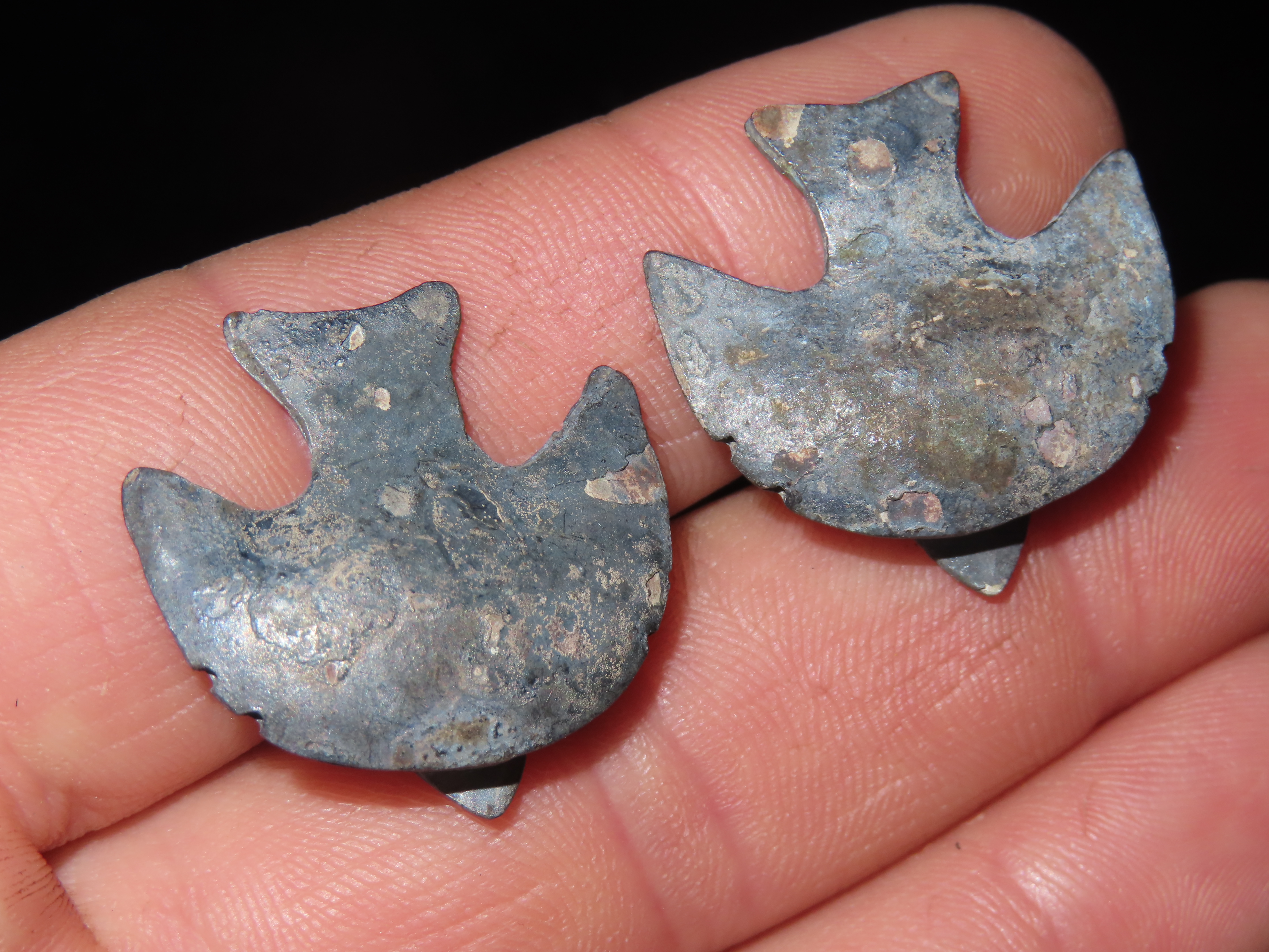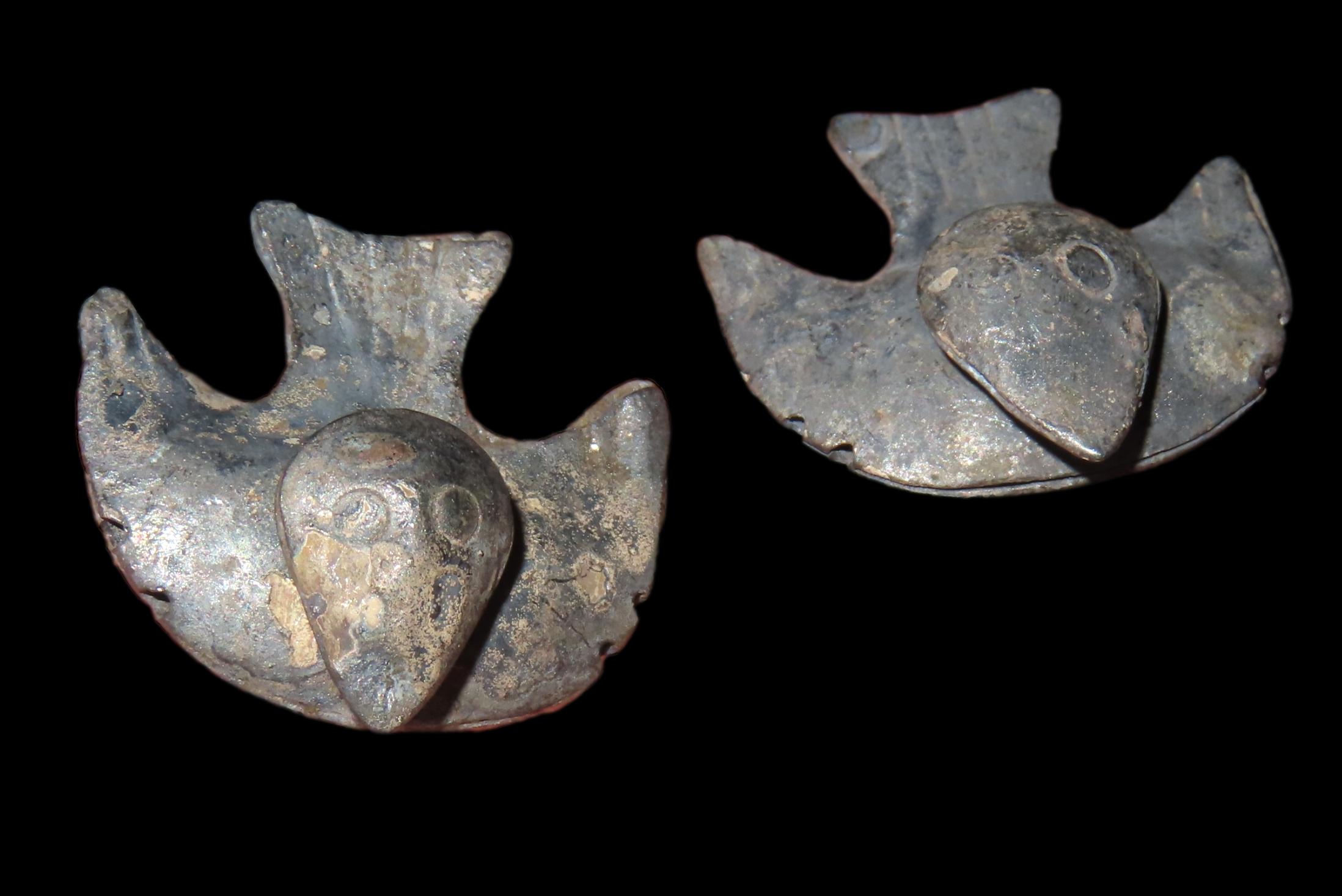NICE PAIR OF PRE-COLUMBIAN SILVER BIRD EFFIGY PENDANTS FROM PERU