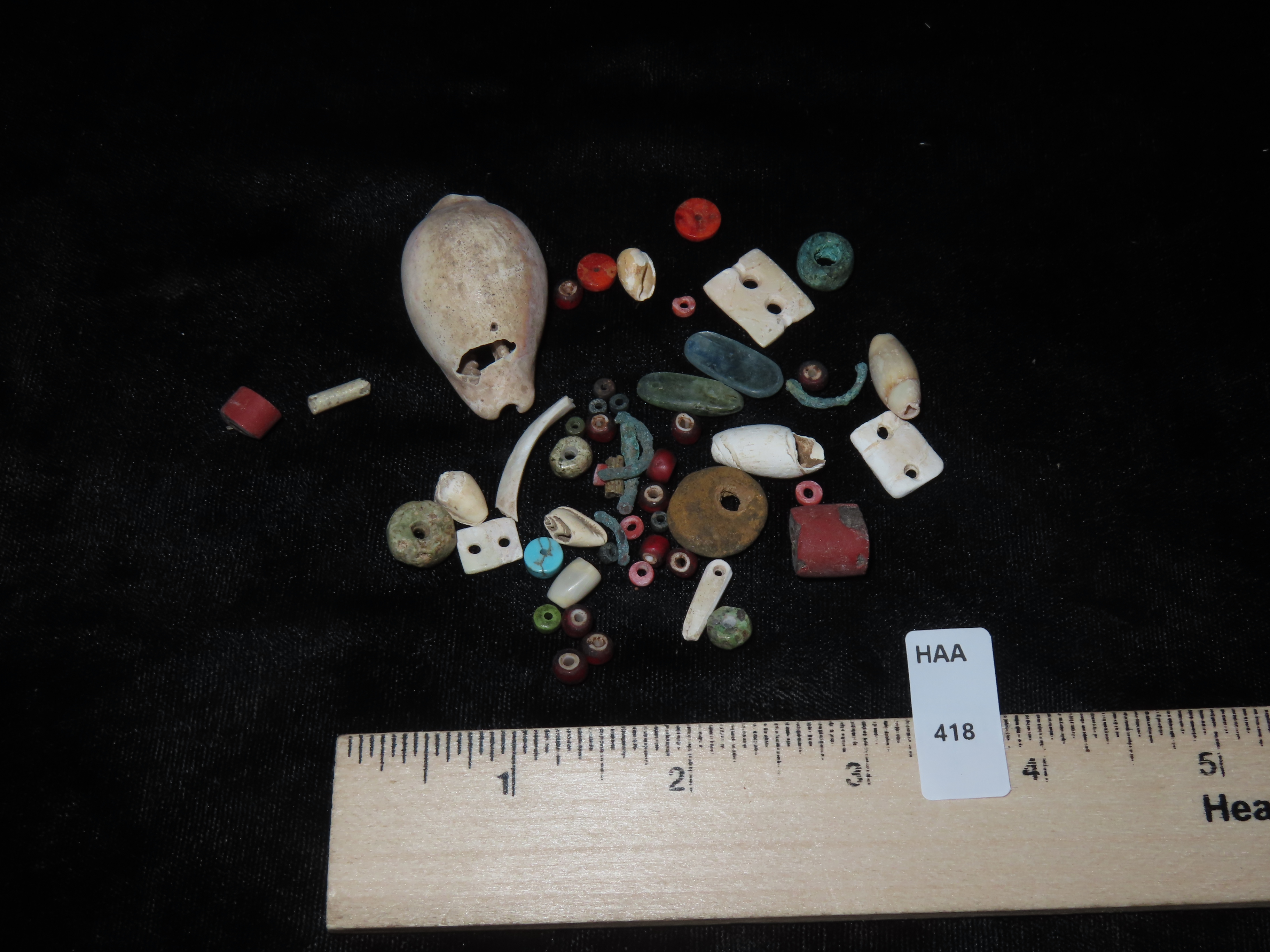 NICE GROUP OF STONE, SHELL, BONE, & COPPER BEADS FROM MEXICO, PRECOLUMBIAN ARTIFACTS
