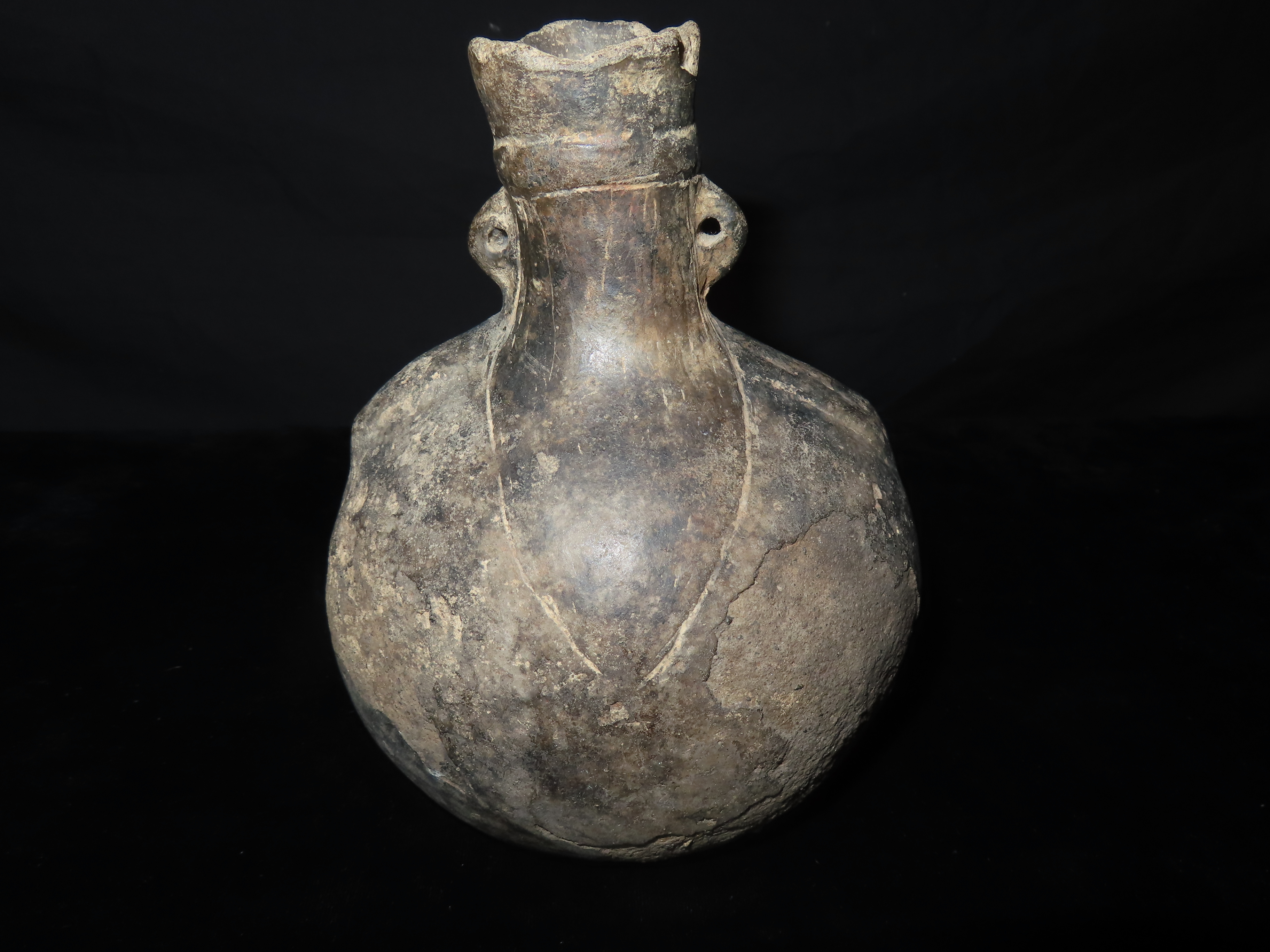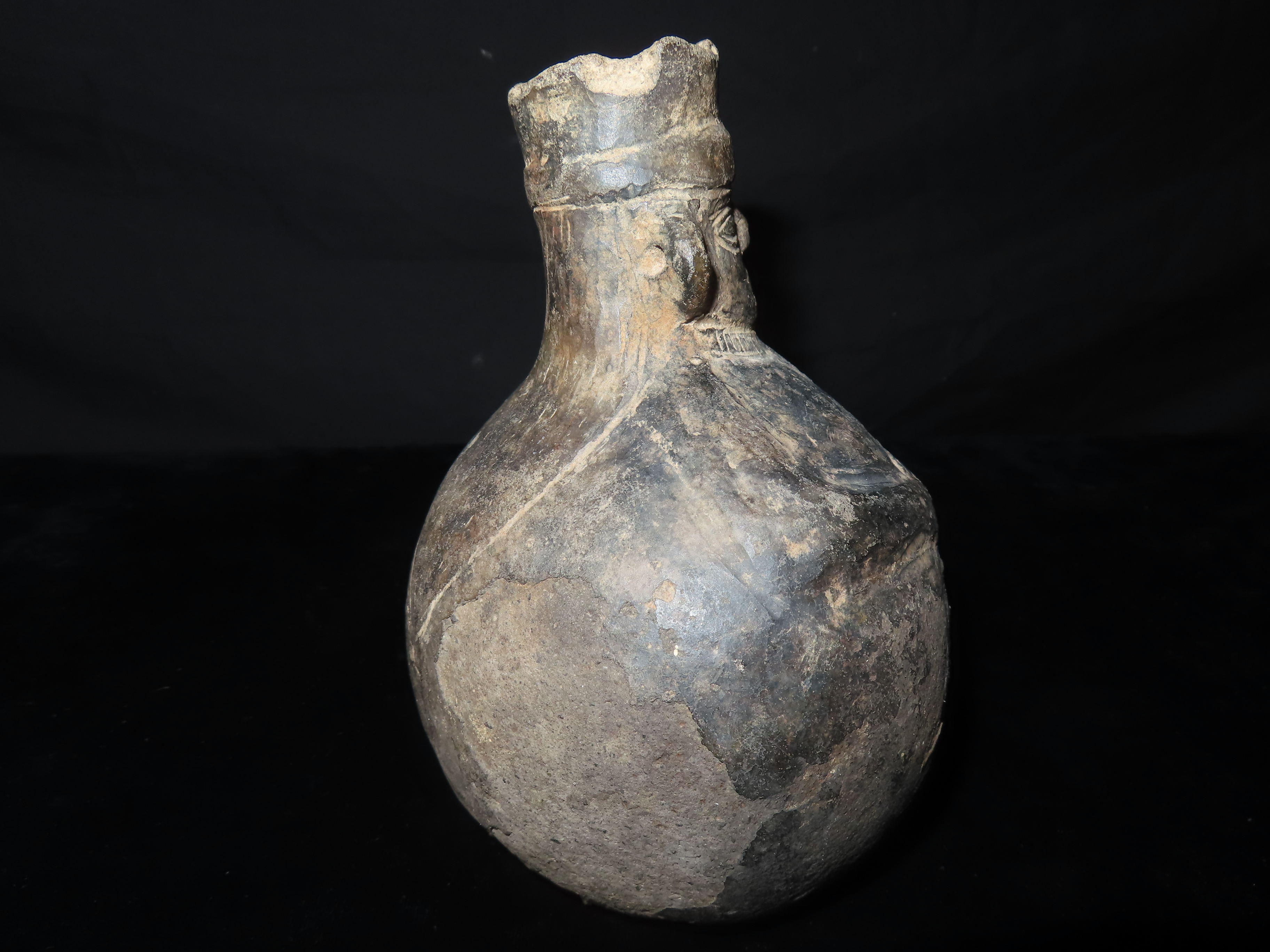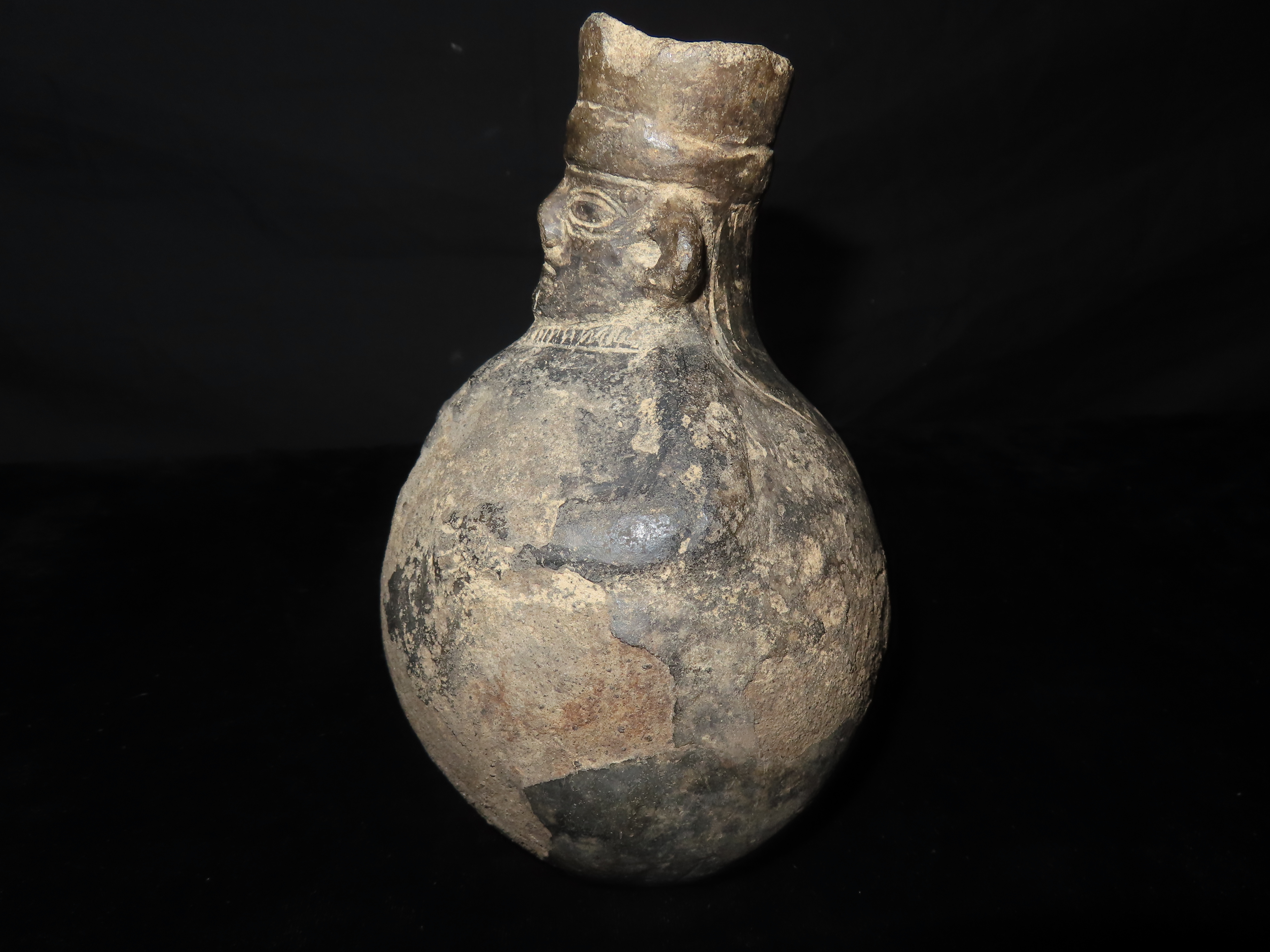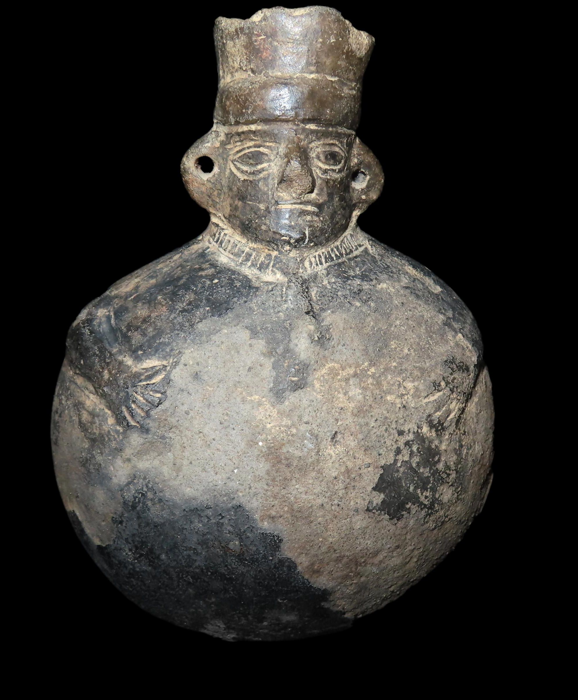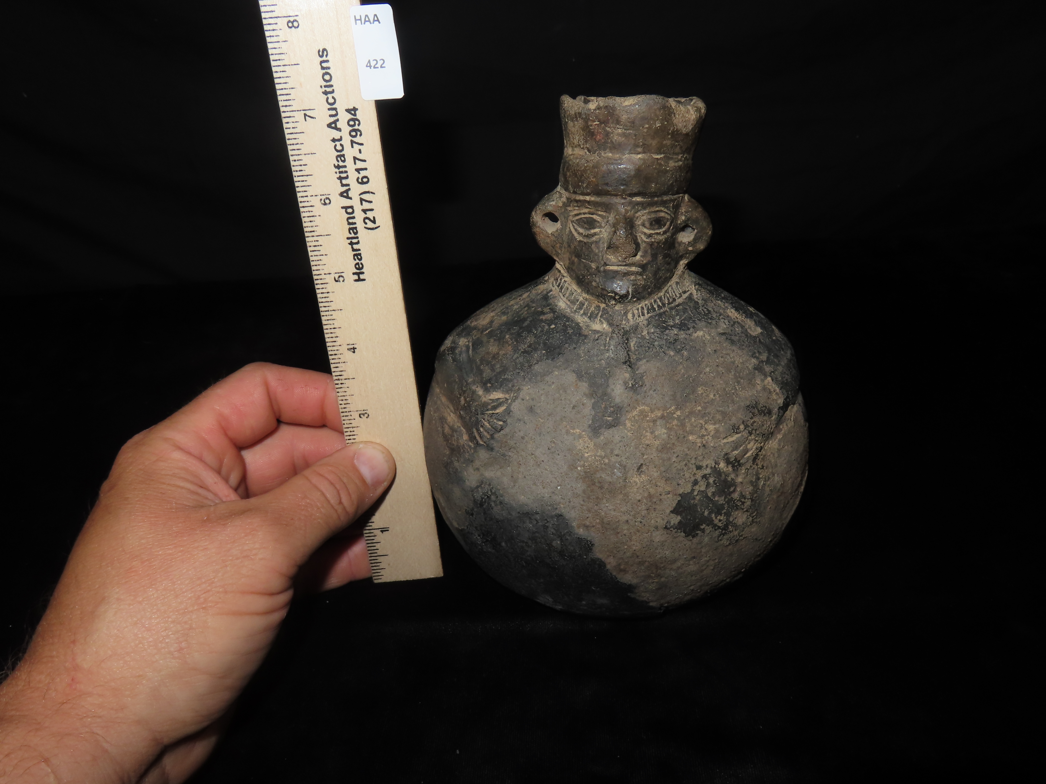 7″ INCA POTTERY HUMAN EFFIGY OLLA / VESSEL, GREAT OLD PRECOLUMBIAN RELIC, STANDS UP NICELY, GREAT DETAIL WITH SOME SURFACE EROSION AS SEEN