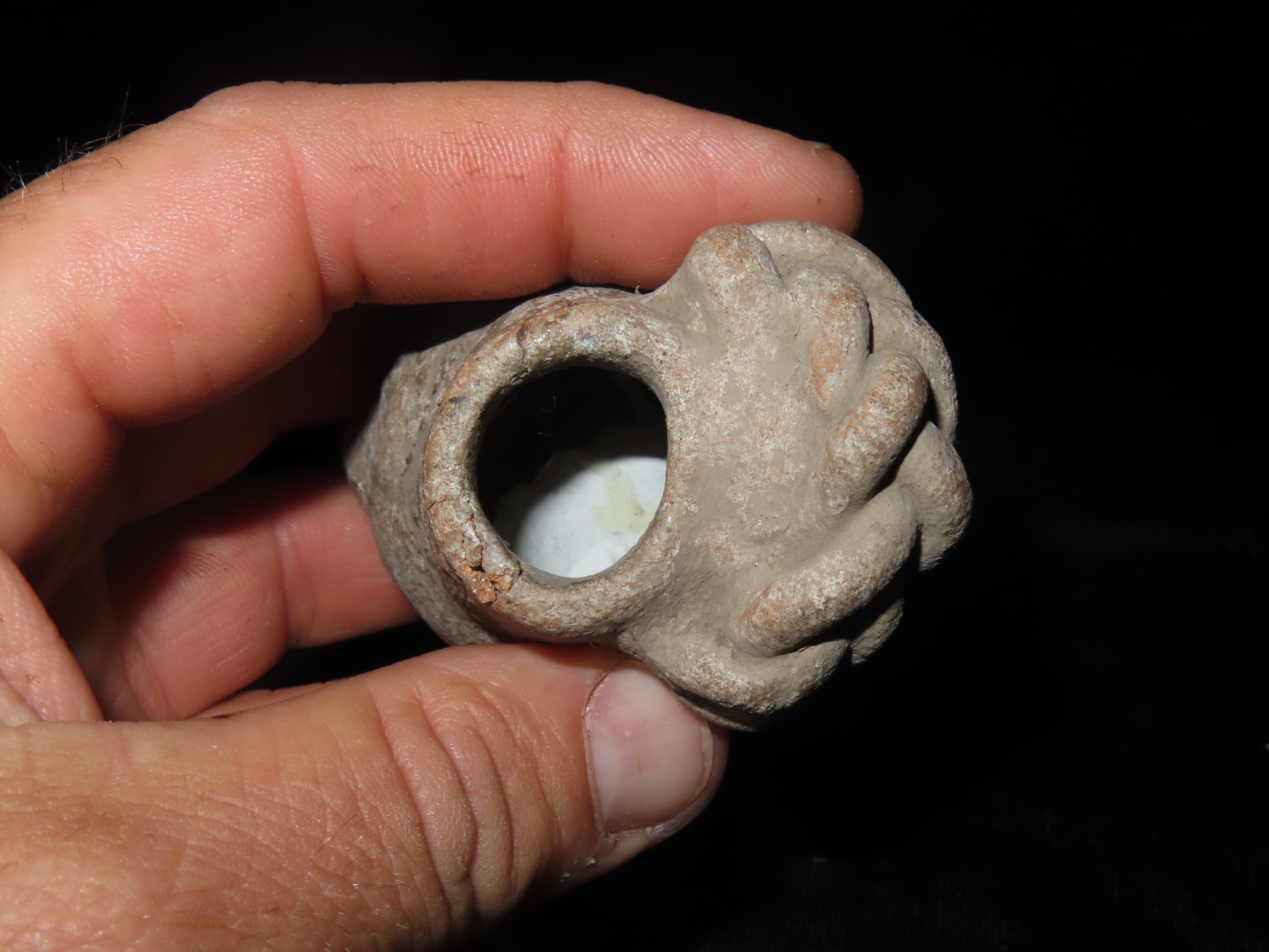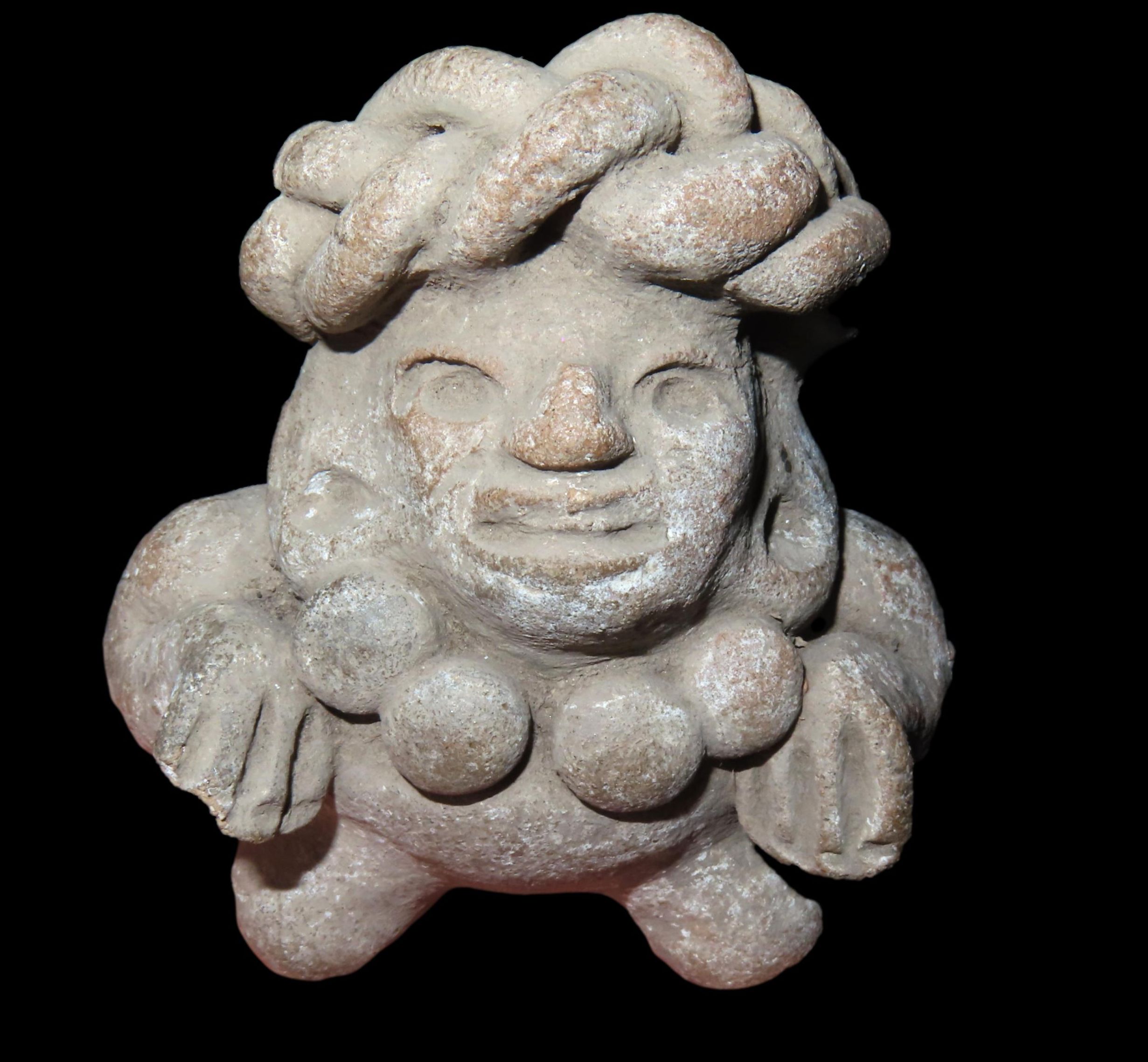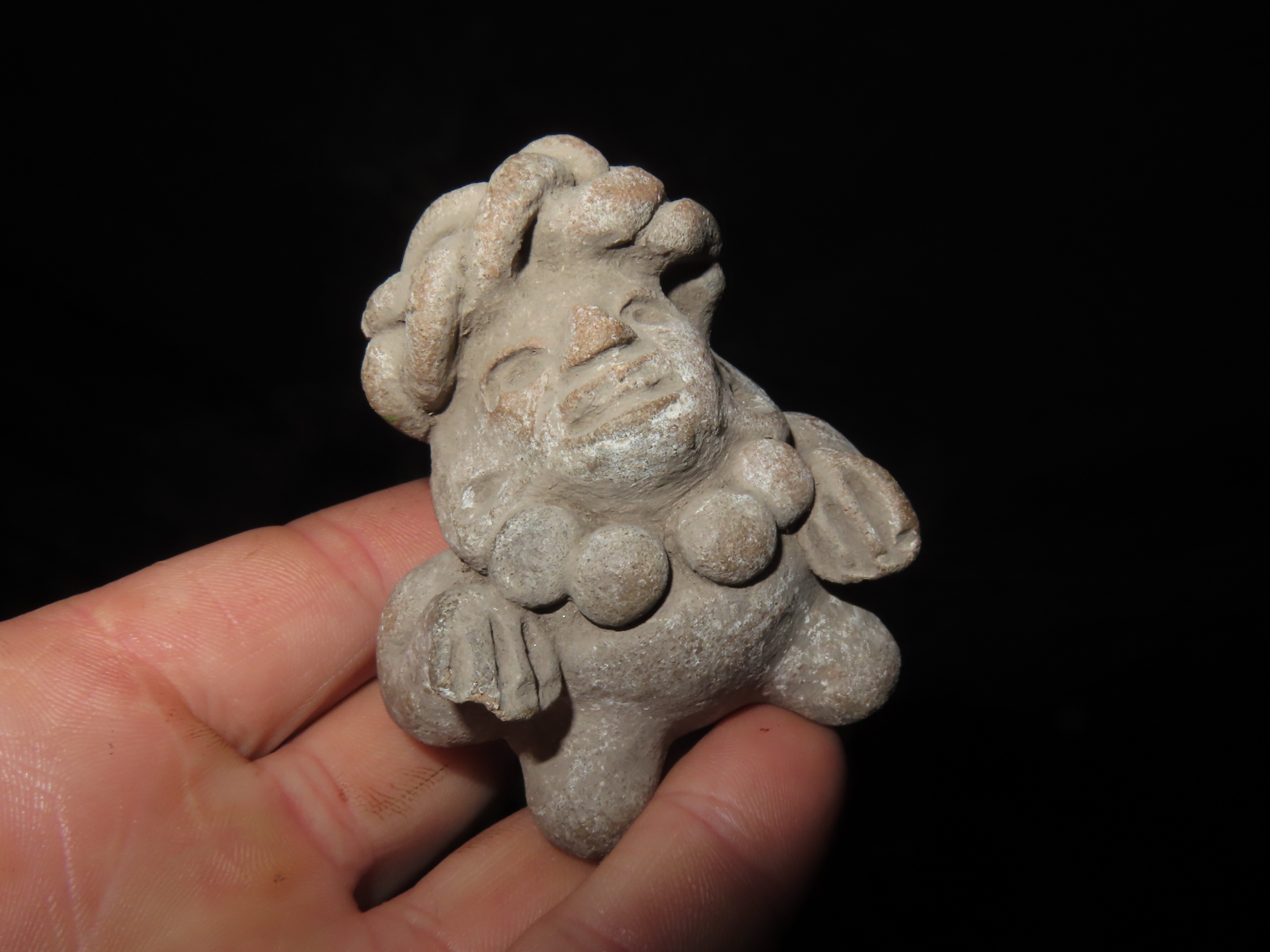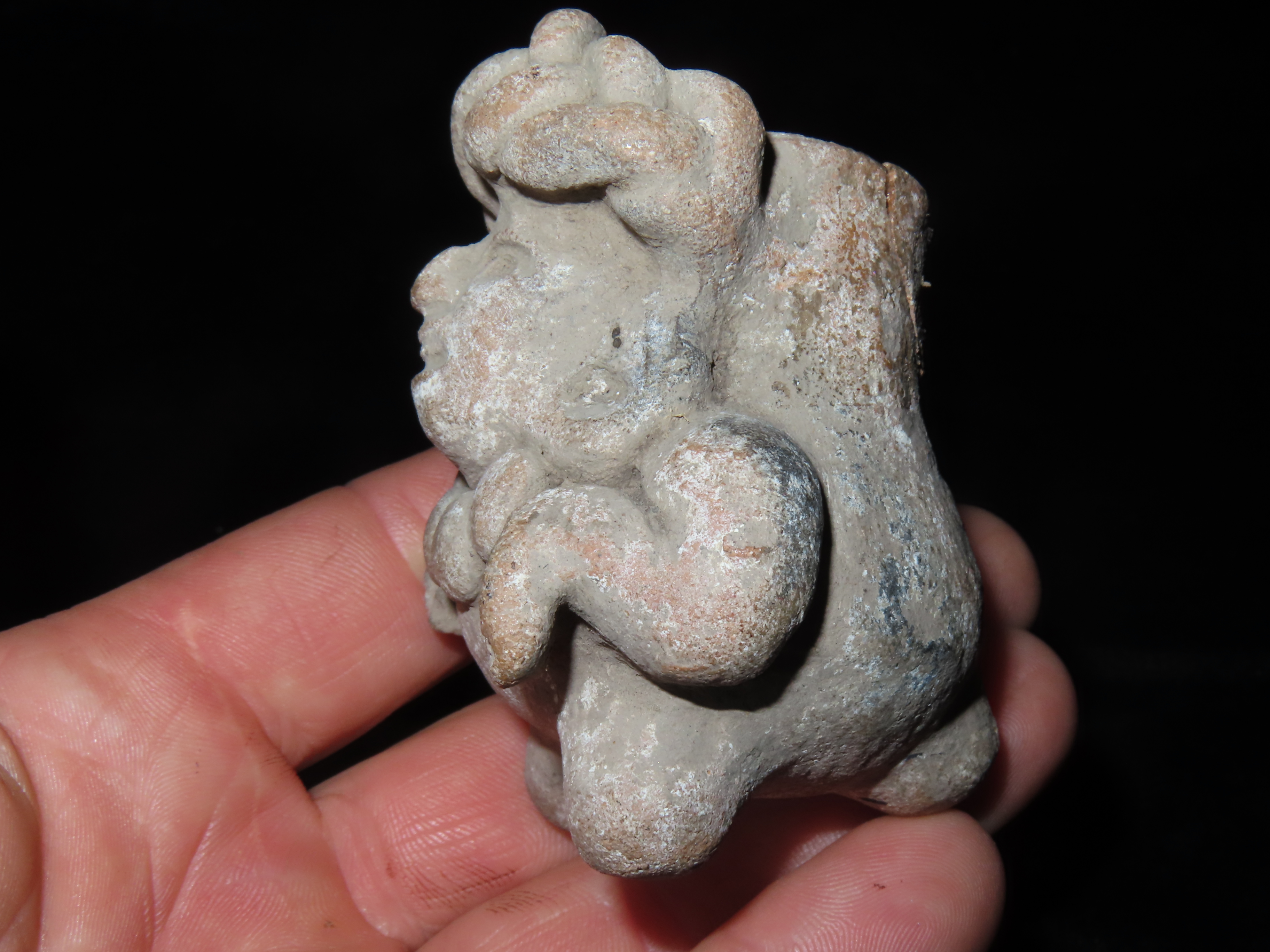 OUTSTANDING HUMAN EFFIGY MINI POTTERY VESSEL FOUND NEAR ZAPOTECAS, OAXACA-MEXICO, NICE DETAILED EXAMPLE, SMALL CHIPS BROKEN AND GLUED ON RIM