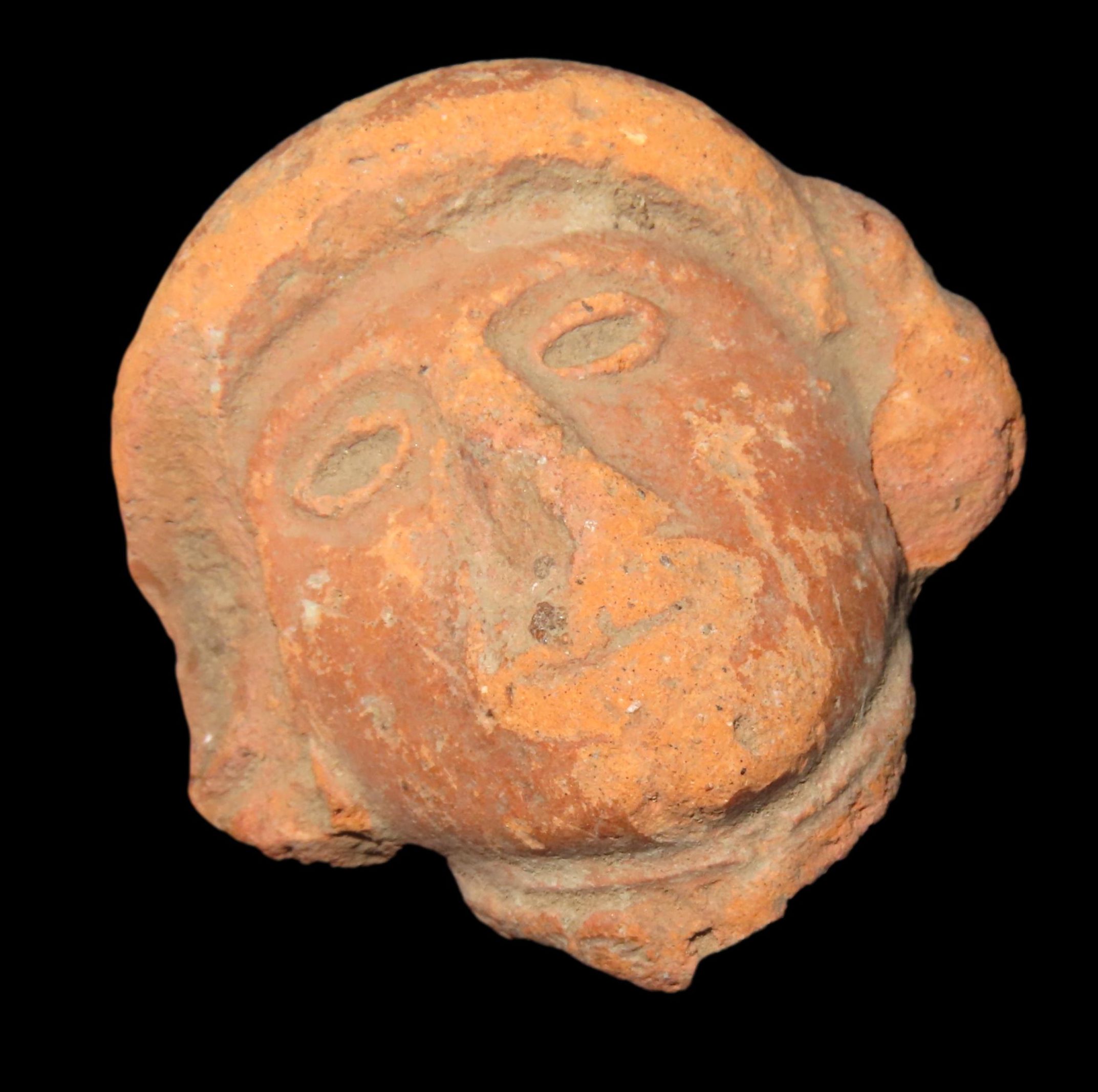VERY DETAILED PRECOLUMBIAN POTTERY HEAD, FACE, OFF OF A ONCE LARGER STATUE, FOUND IN MEXICO, NICELY DETAILED EXAMPLE
