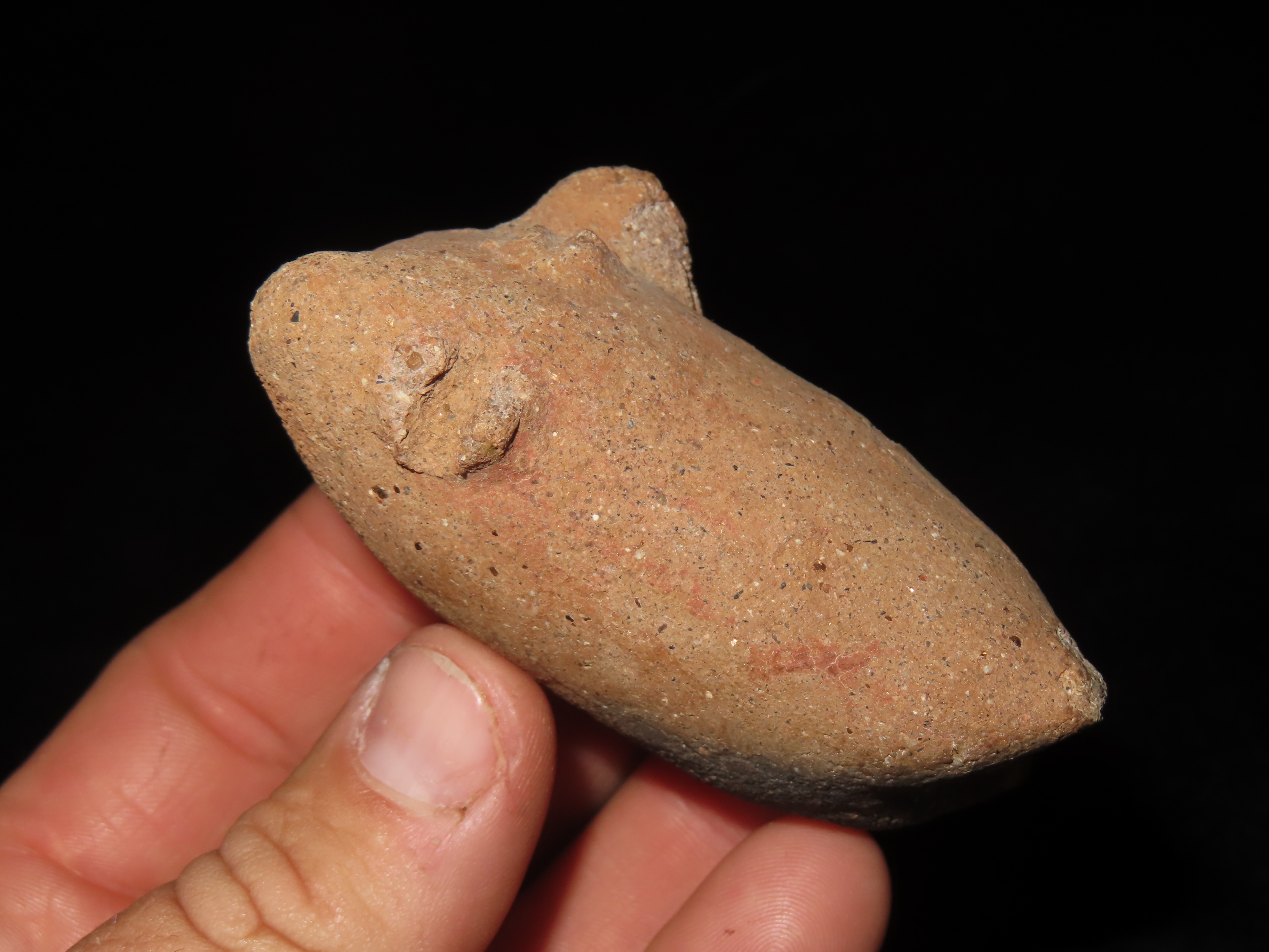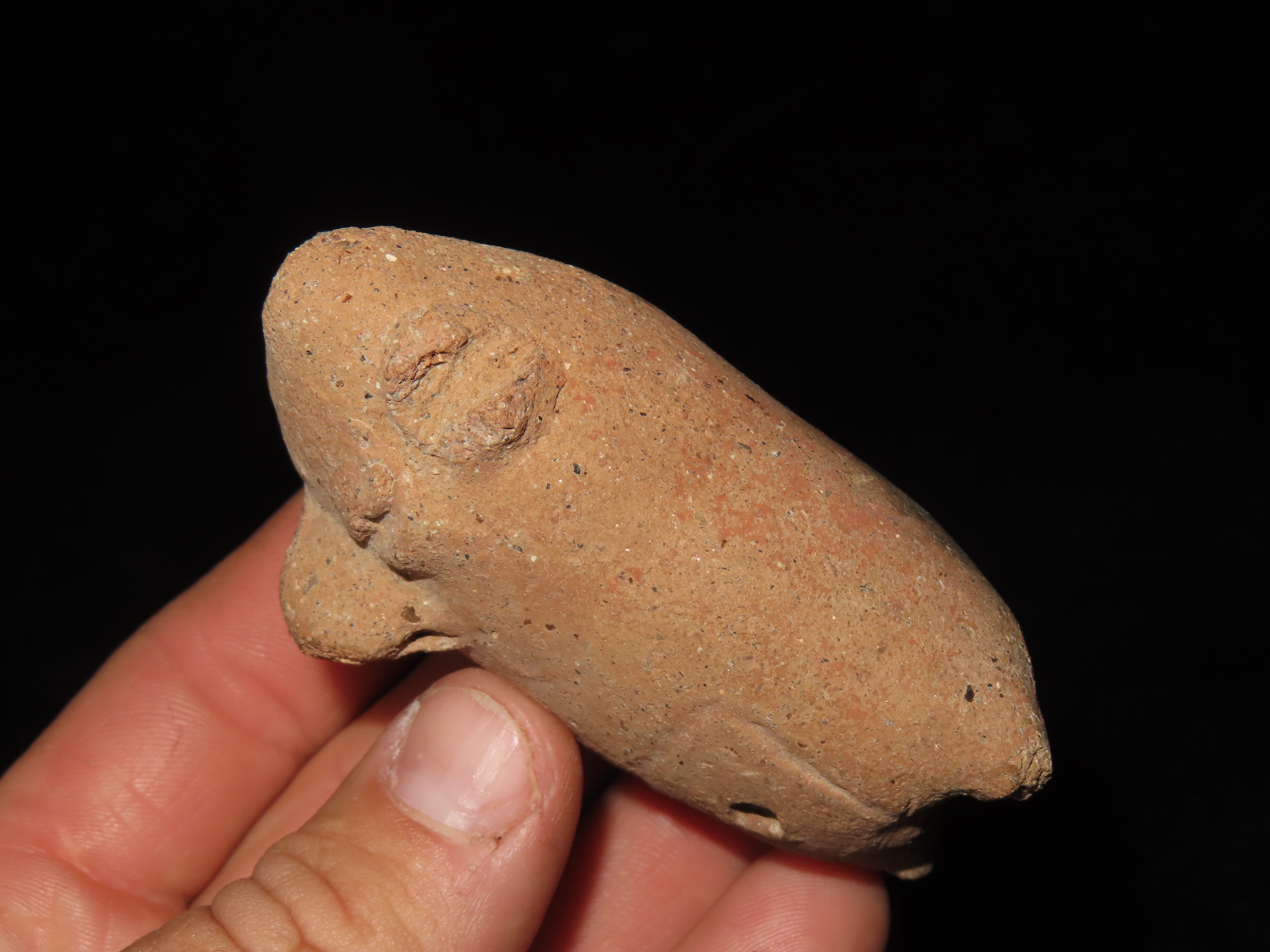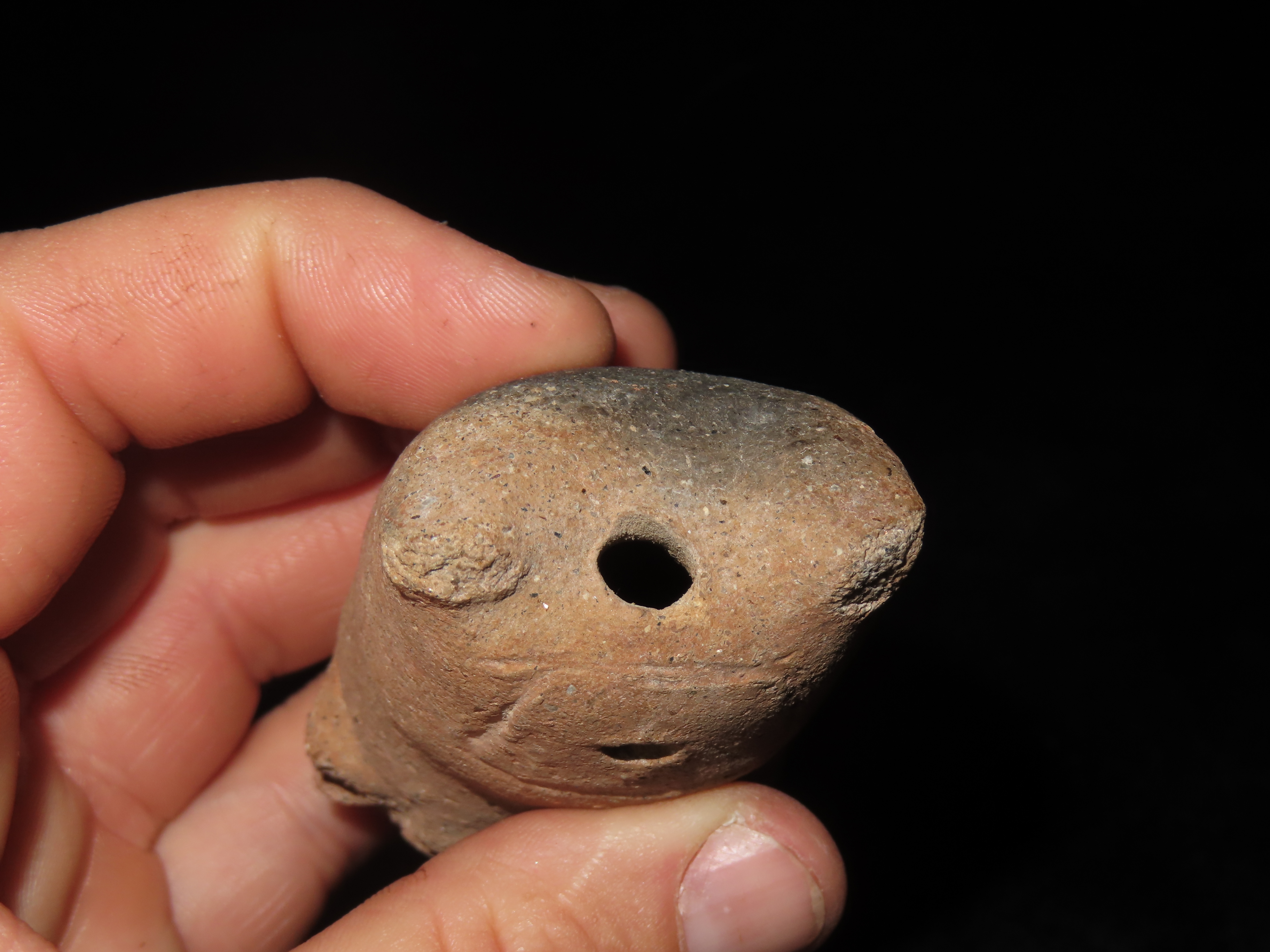 PRECOLUMBIAN HUMAN EFFIGY POTTERY FIGURE / WHISTLE? FROM MEXICO, 3″ TALL