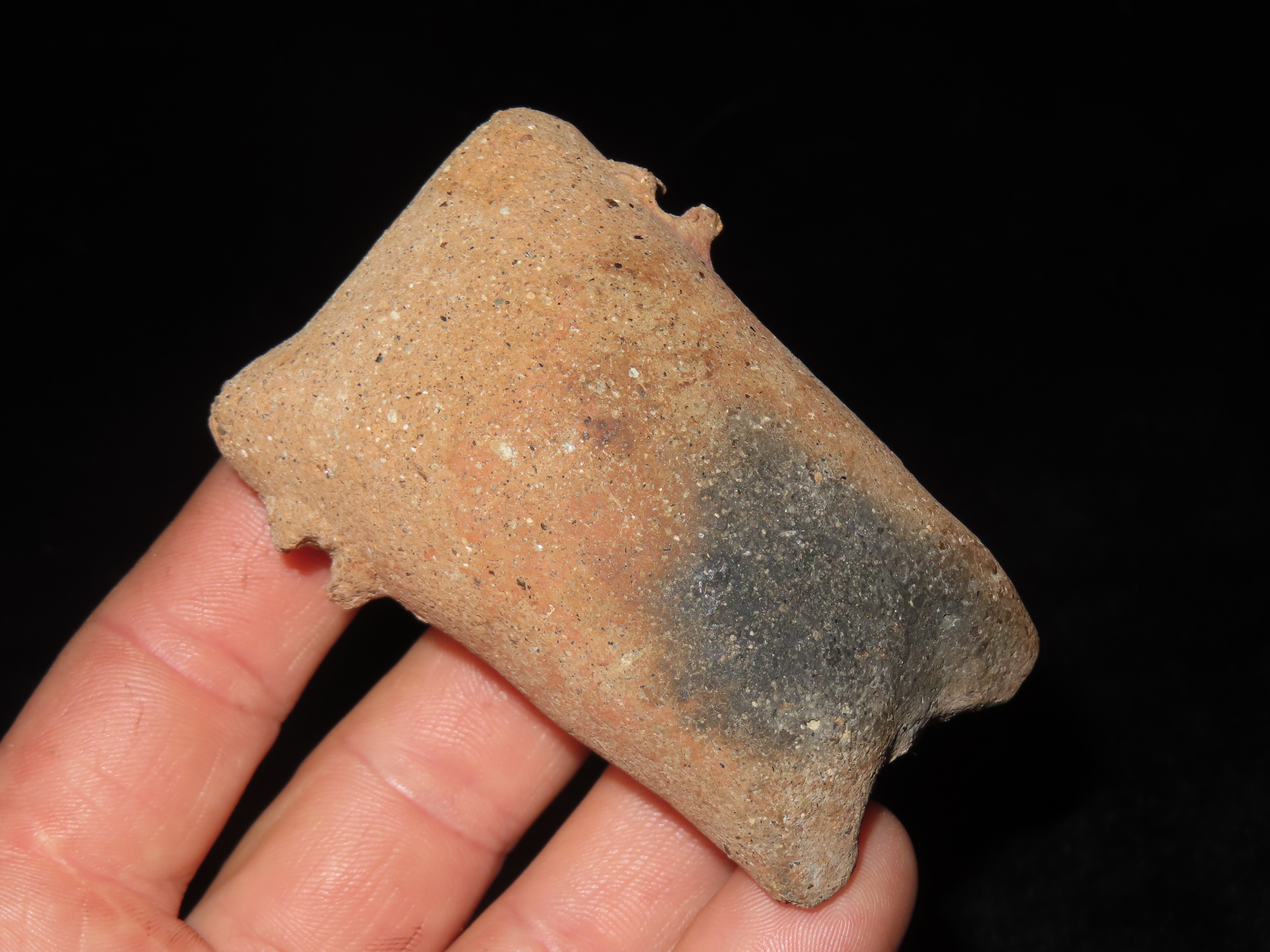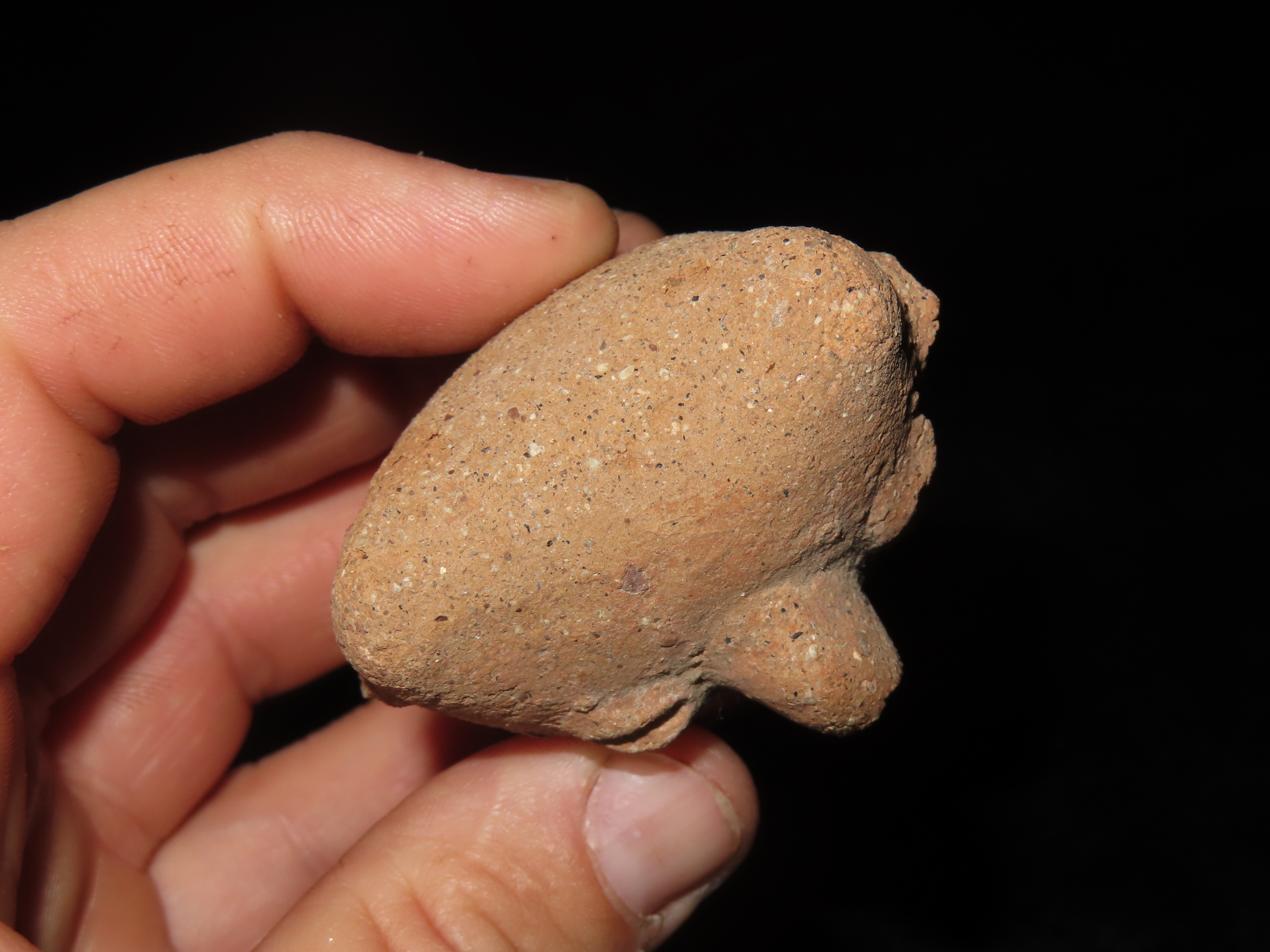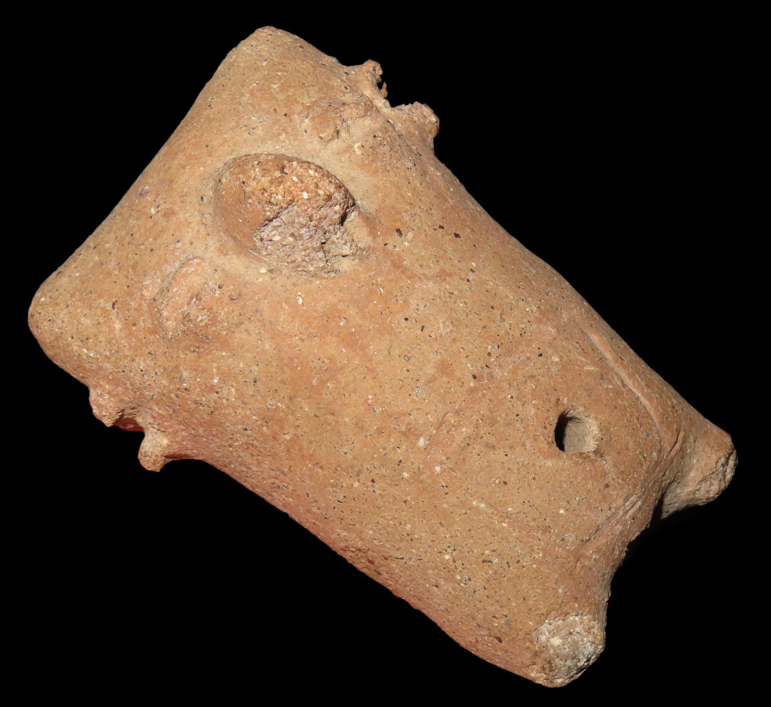 PRECOLUMBIAN HUMAN EFFIGY POTTERY FIGURE / WHISTLE? FROM MEXICO, 3″ TALL