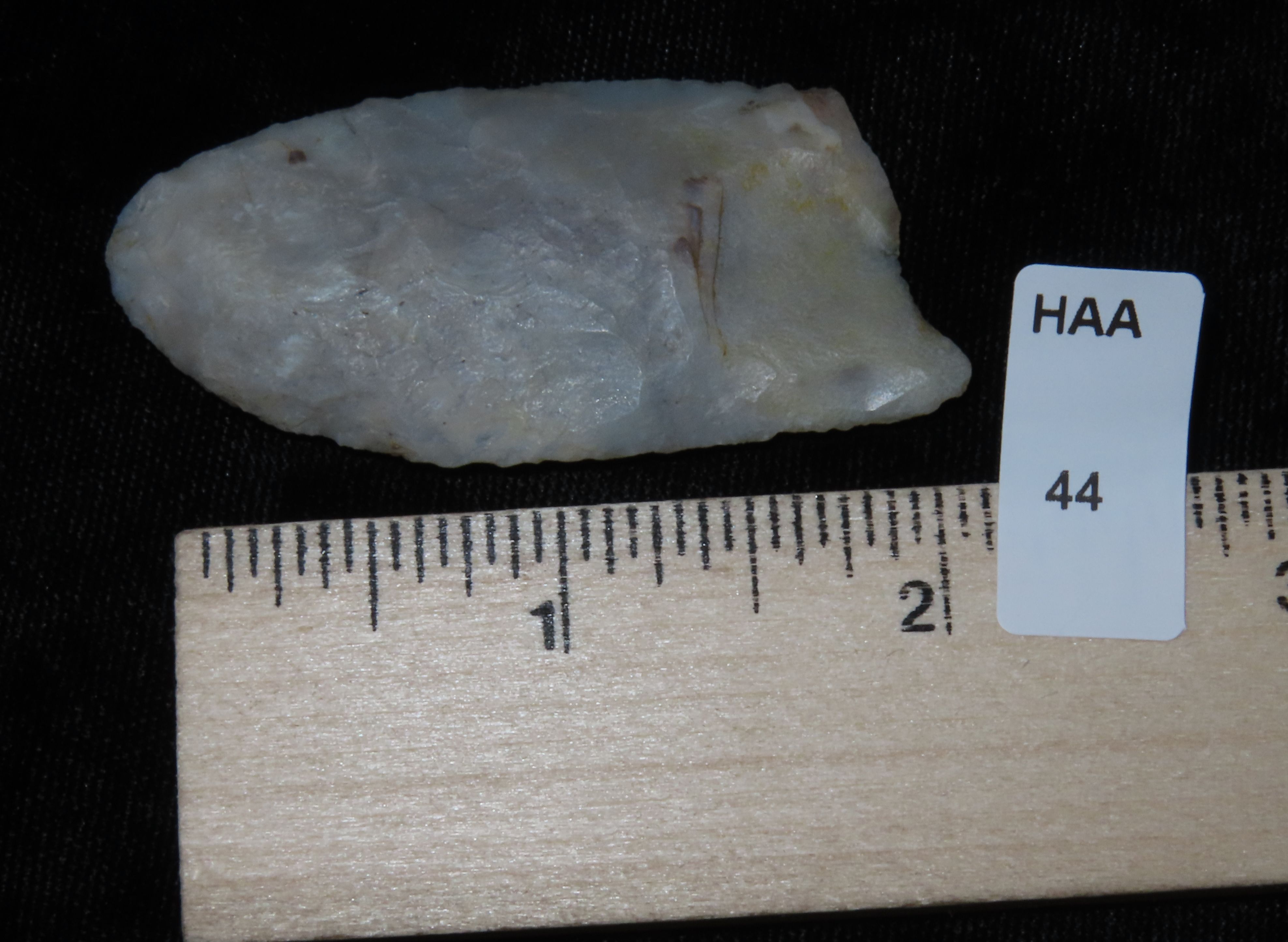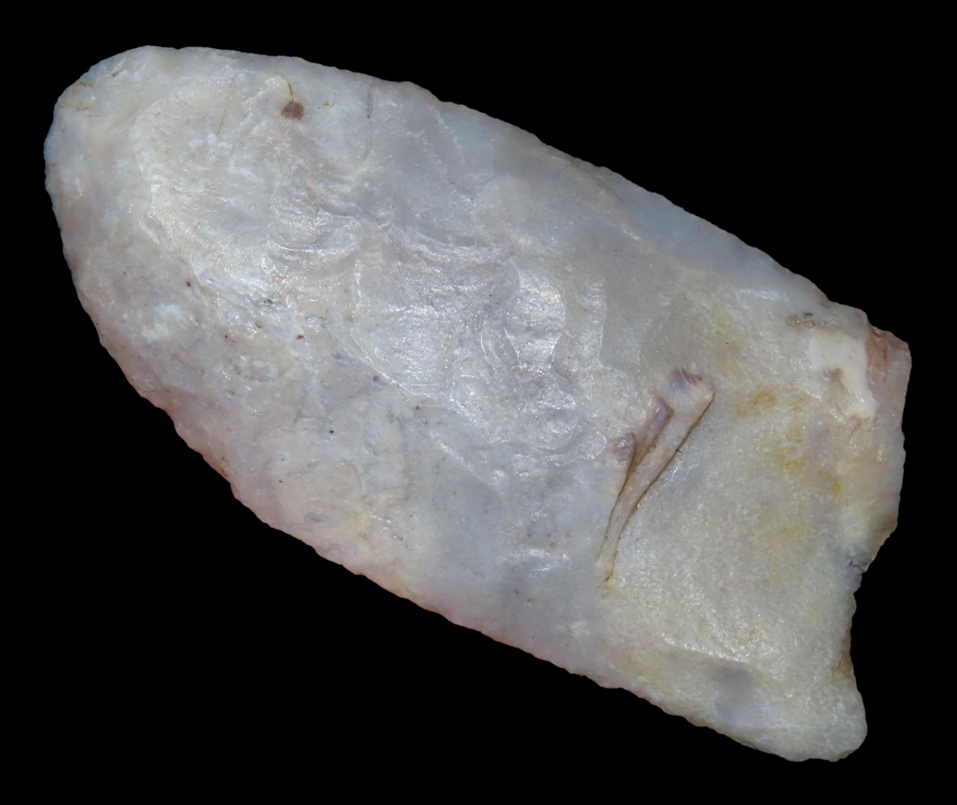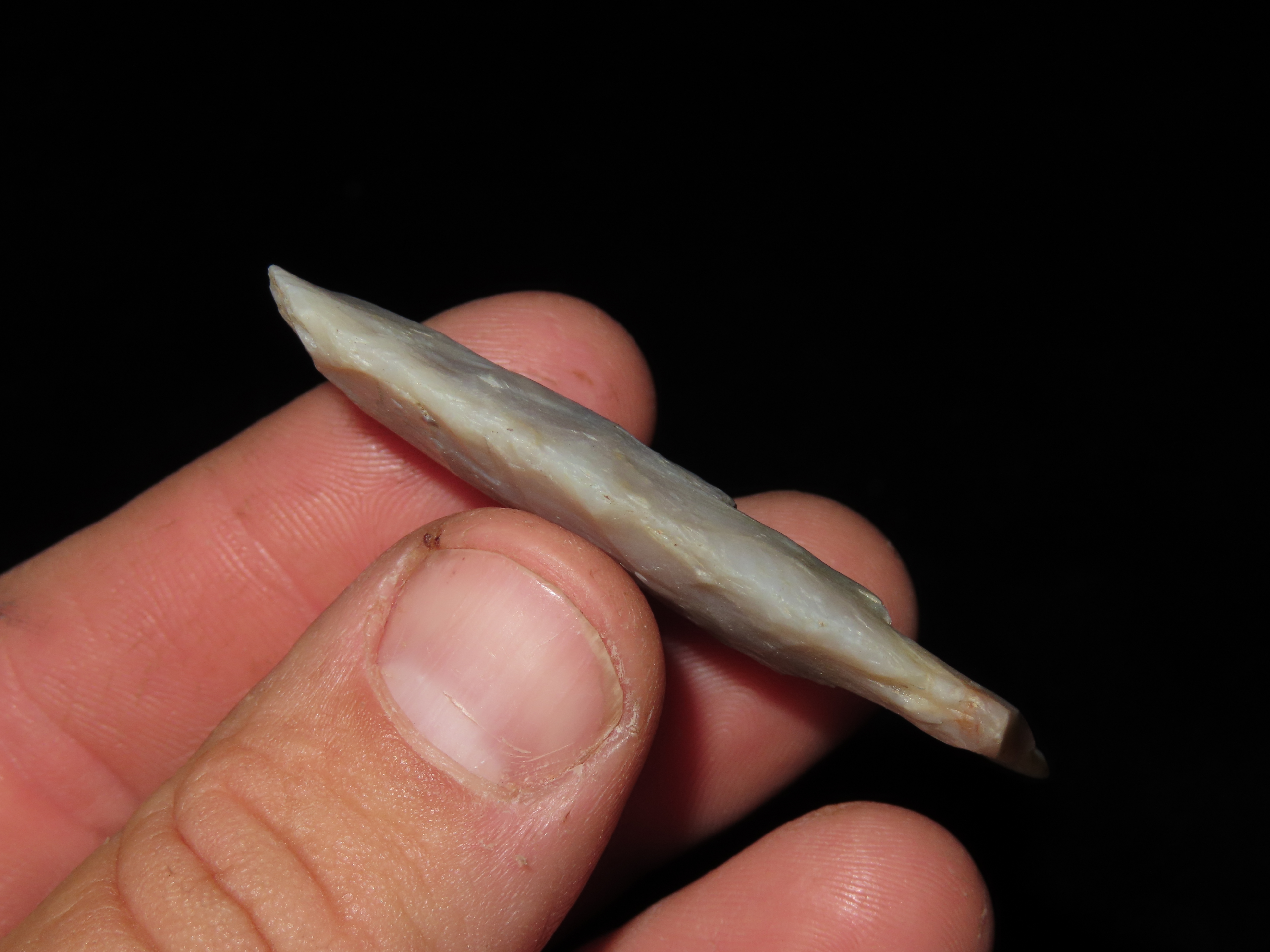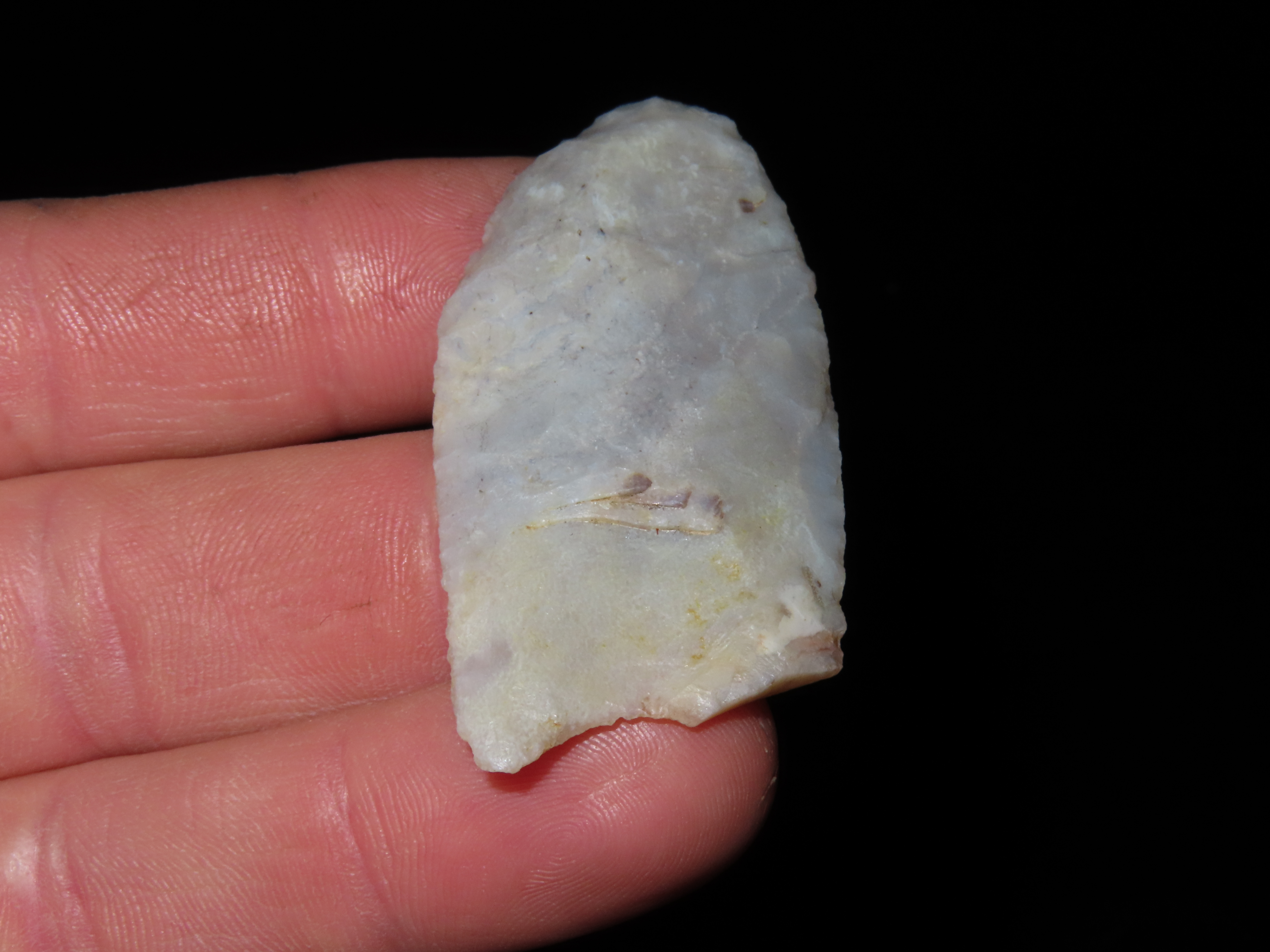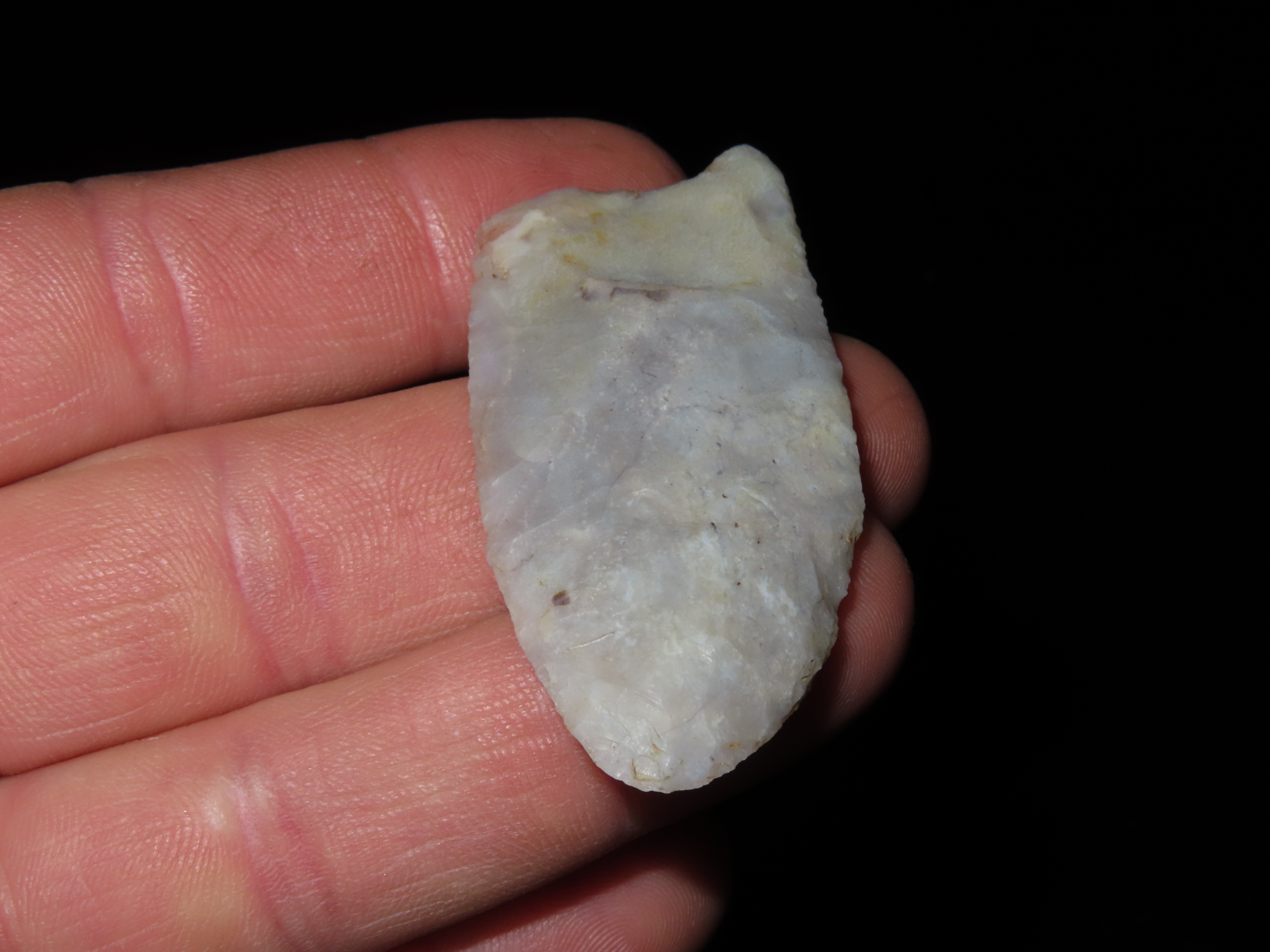 2 7/16″ HIGHLY TRANSLUCENT CLOVIS FOUND IN JEFFERSON COUNTY ILLINOIS, MADE FROM A BEAUTIFUL PIECE OF HIGH RIDGE CHERT, FLUTED PALEO CLOVIS