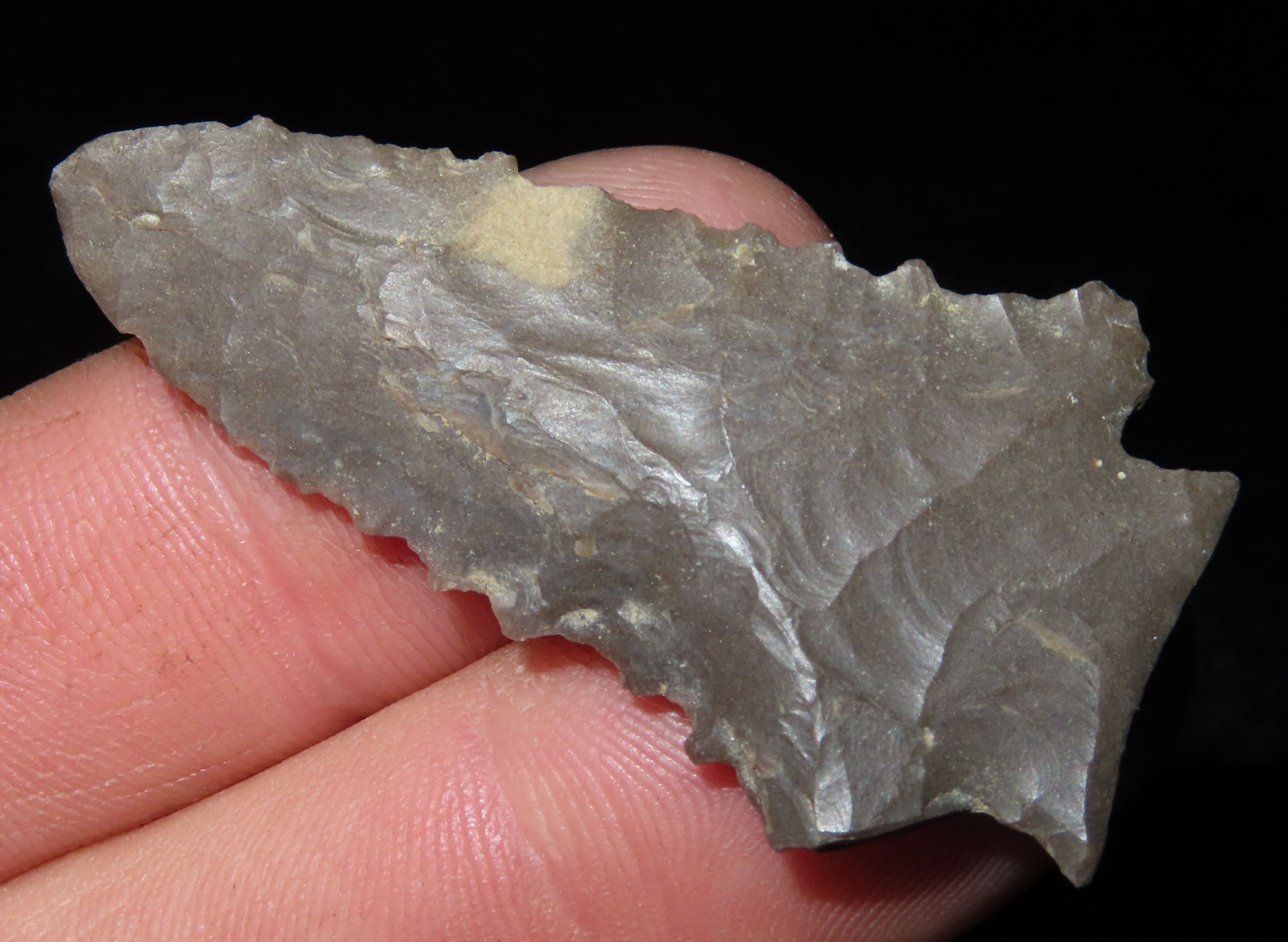 2″ SERRATED FRACTURED BASE DECATUR FOUND IN LYON COUNTY KENTUCKY, GREAT CLASSIC EXAMPLE, INDIAN ARROWHEAD, ARTIFACT
