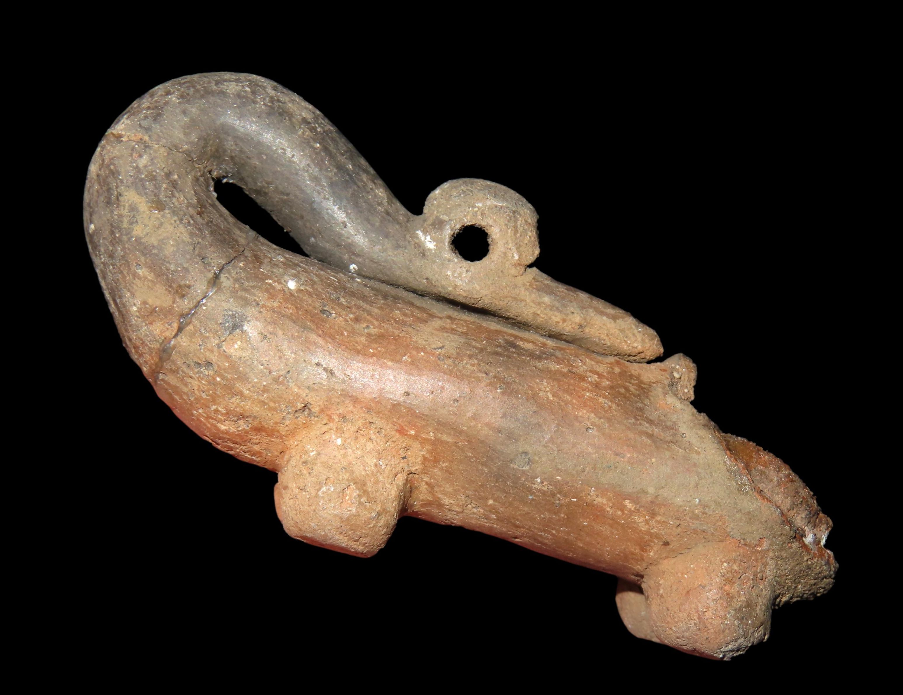 PRECOLUMBIAN POTTERY BIRD / ANIMAL EFFIGY FIGURE / STATUE FROM WEST MEXICO, MISSING A PORTION ON THE REAR