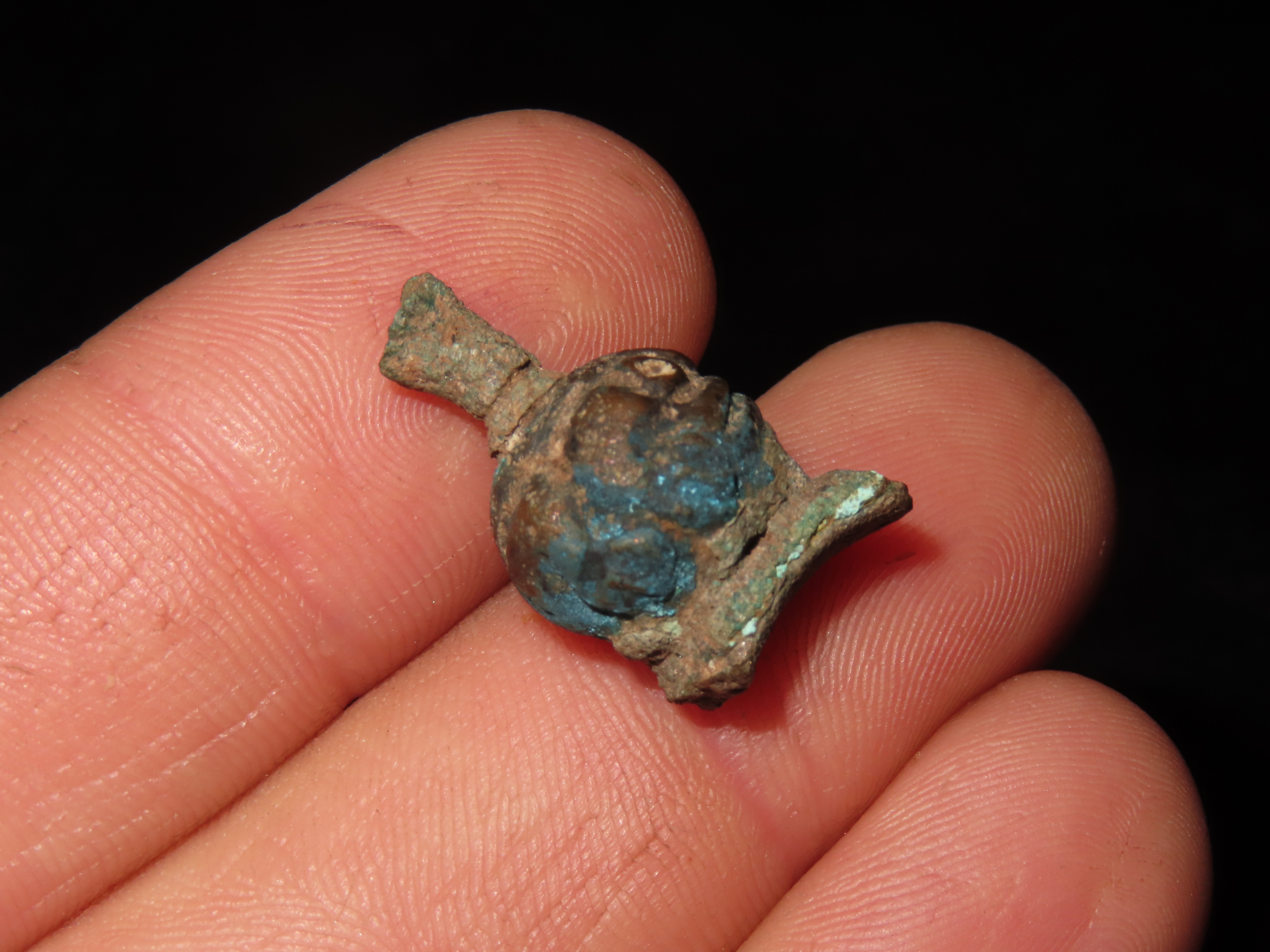RARE PIECE OF A COPPER RELIC WITH A HUMAN FACE, WHATS RARE ABOUT IT IS THE ANCIENT BLUE PAINT IT IS COATED IN, ALL ORIGINAL