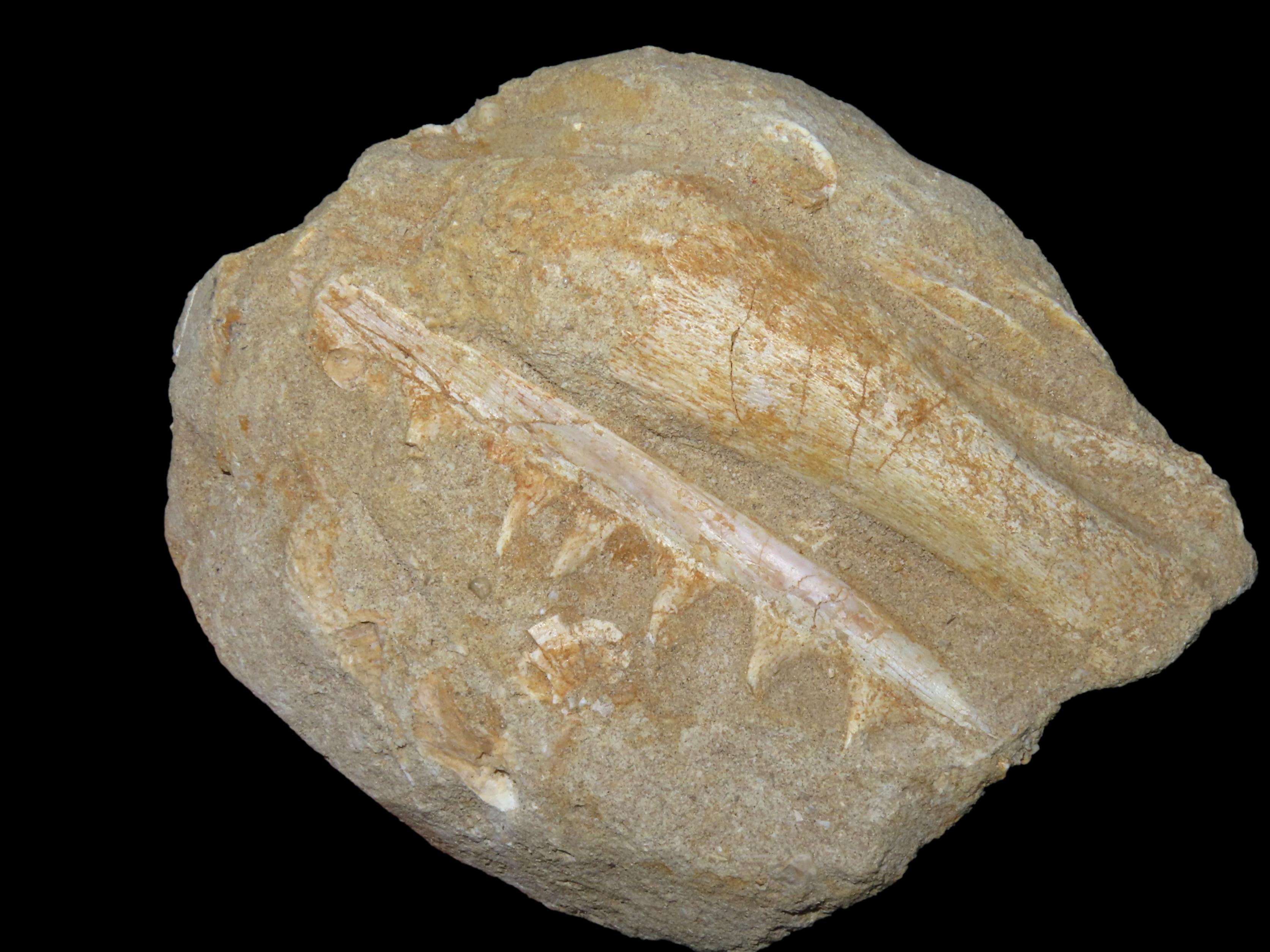 NICE DINOSAUR FOSSIL JAW BONE / TOOTH IN MATRIX FROM MOROCCO, PALEOCENE TO MIOCENE AGE, 66 MILLION TO 5 MILLION YEARS OLD